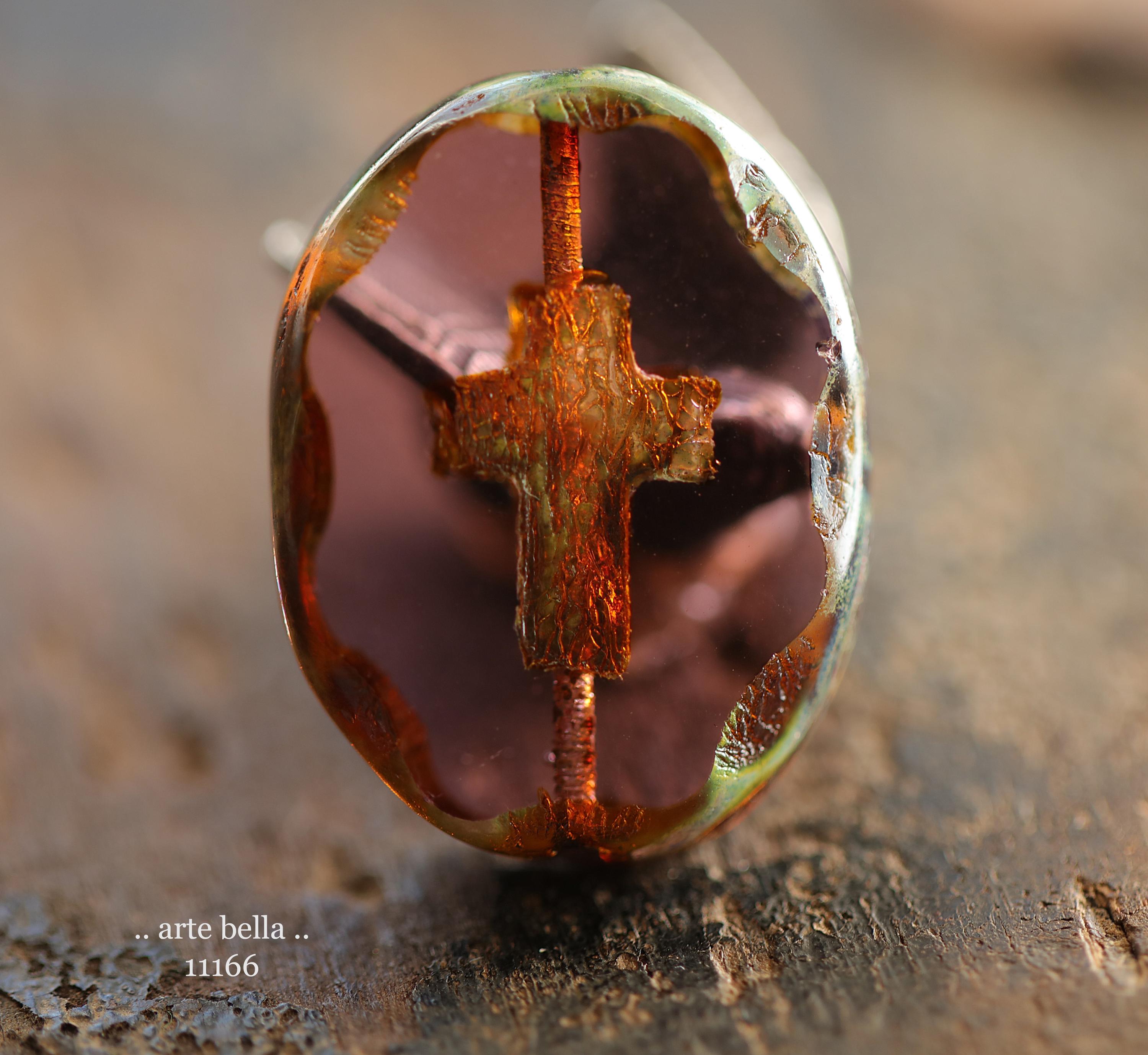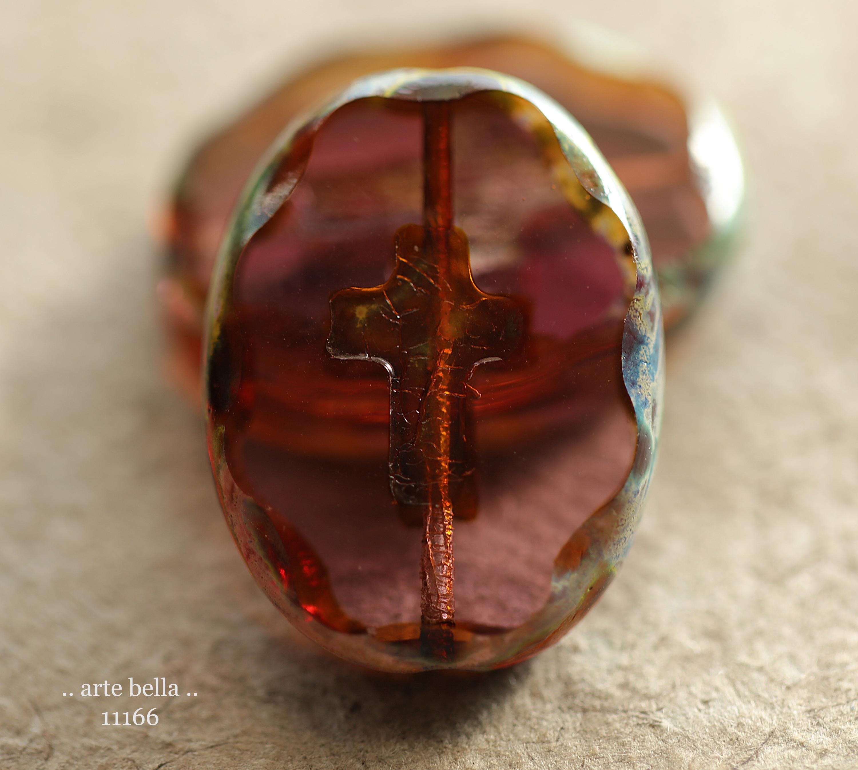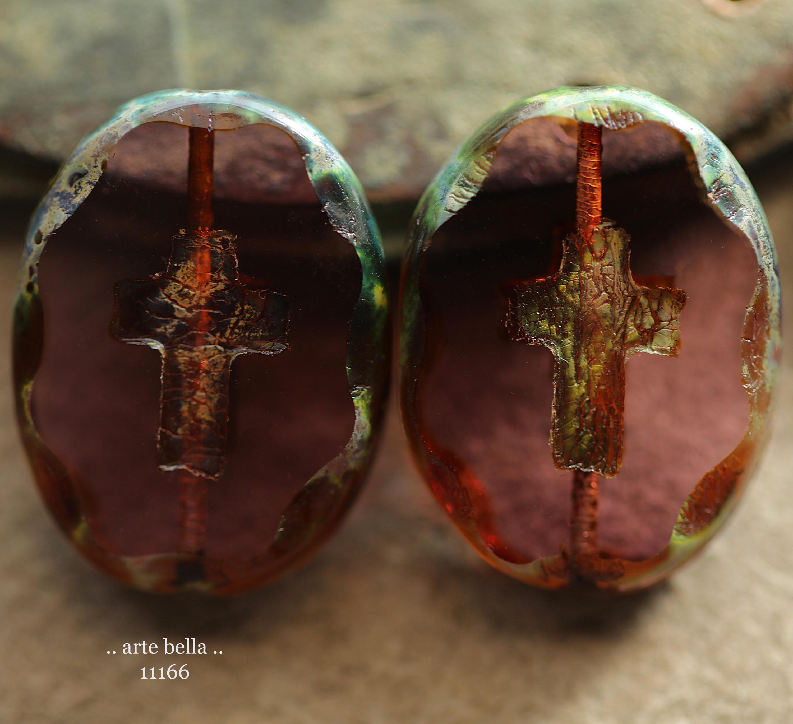 New .. EARTHY LAVENDER CROSSES .. 2 Premium Picasso Czech Glass Oval Cross Bead Mix 25x19mm (11166-2) .. jewelry making supplies