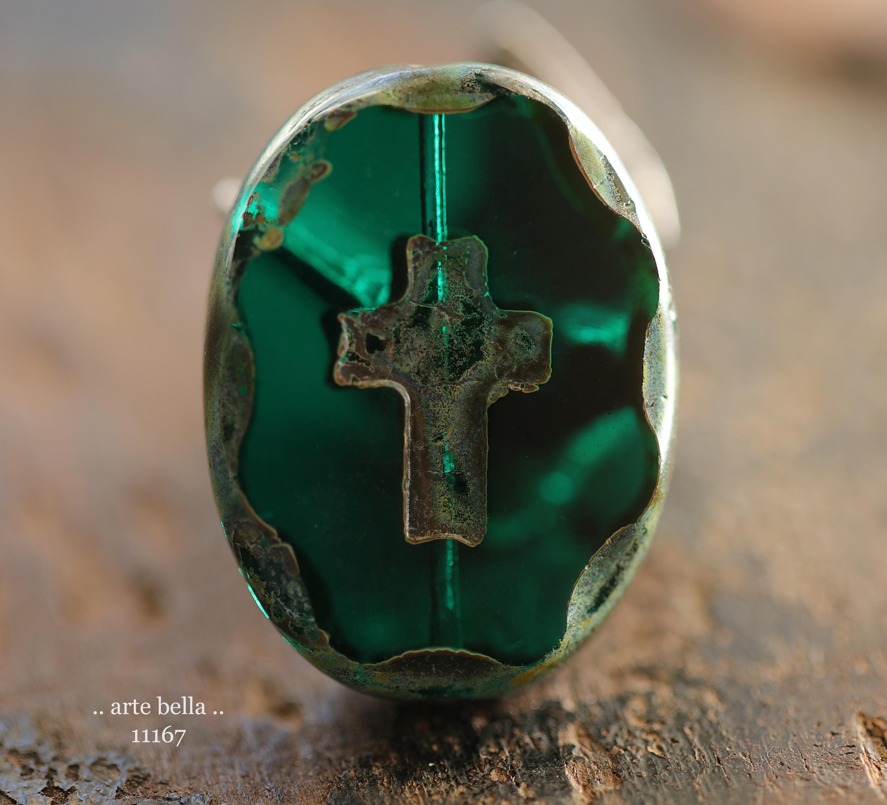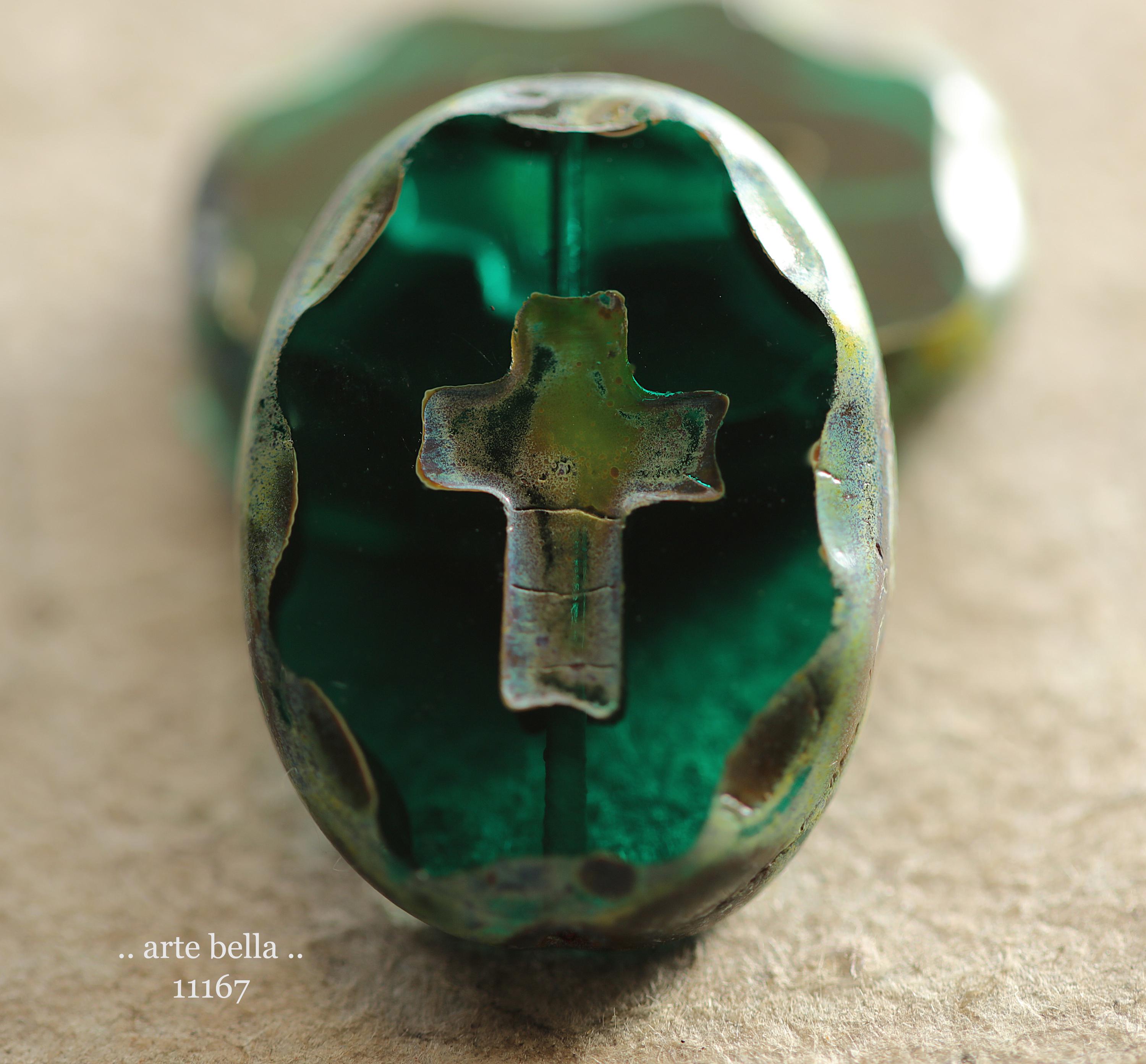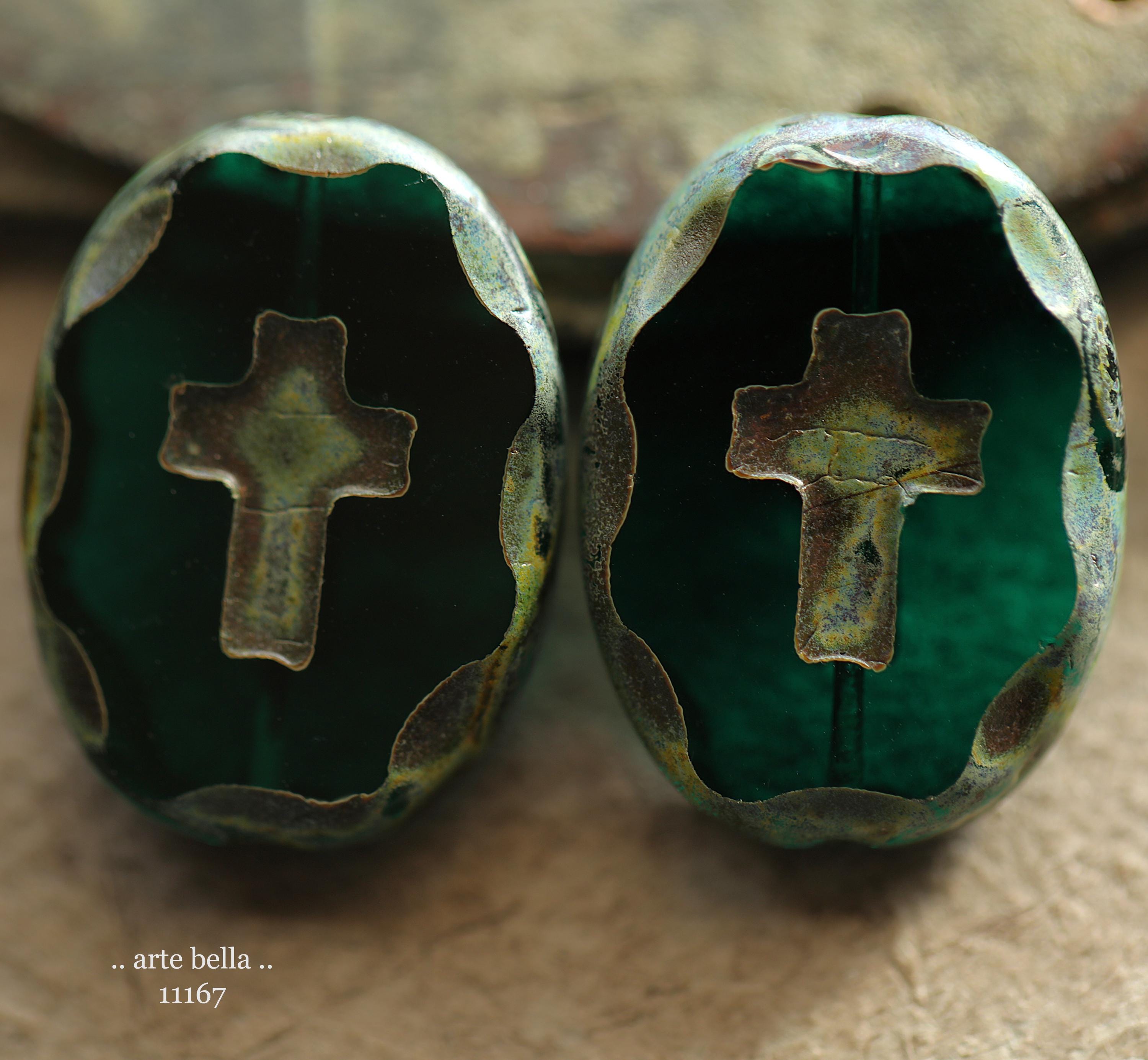 New .. DEEP OCEAN CROSSES No. 2 .. 2 Premium Picasso Czech Glass Oval Cross Bead Mix 25x19mm (11167-2) .. jewelry making supplies