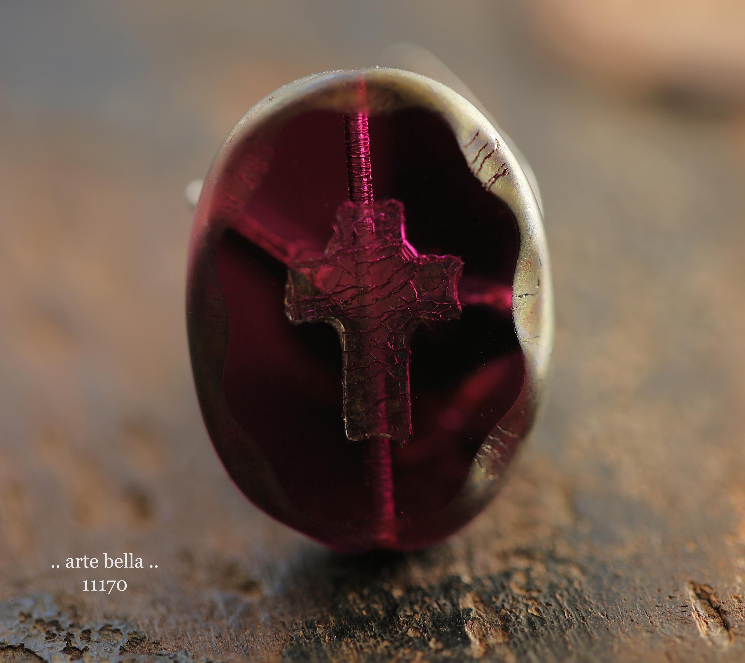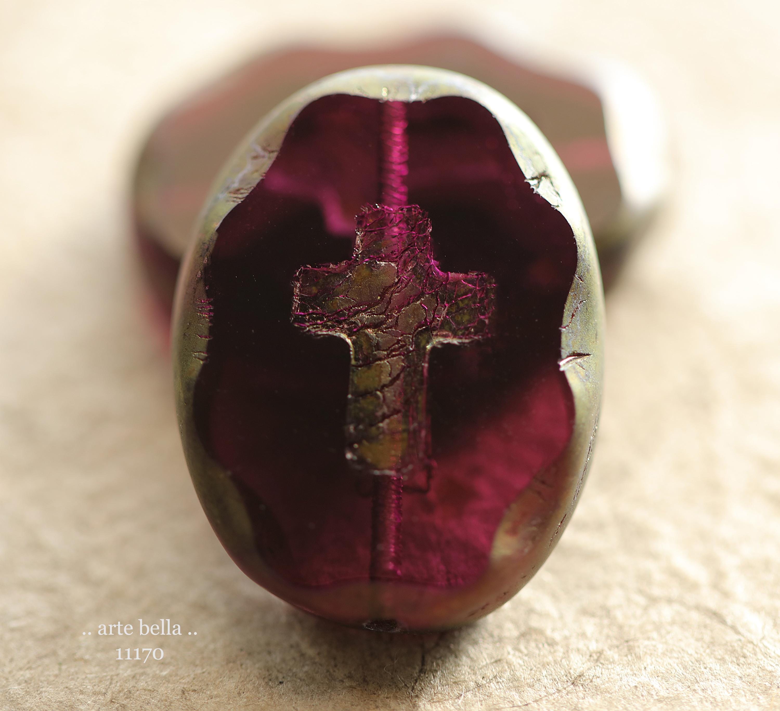 New .. BRONZED PLUM CROSSES .. 2 Premium Picasso Czech Glass Oval Cross Bead Mix 25x19mm (11170-2) .. jewelry making supplies