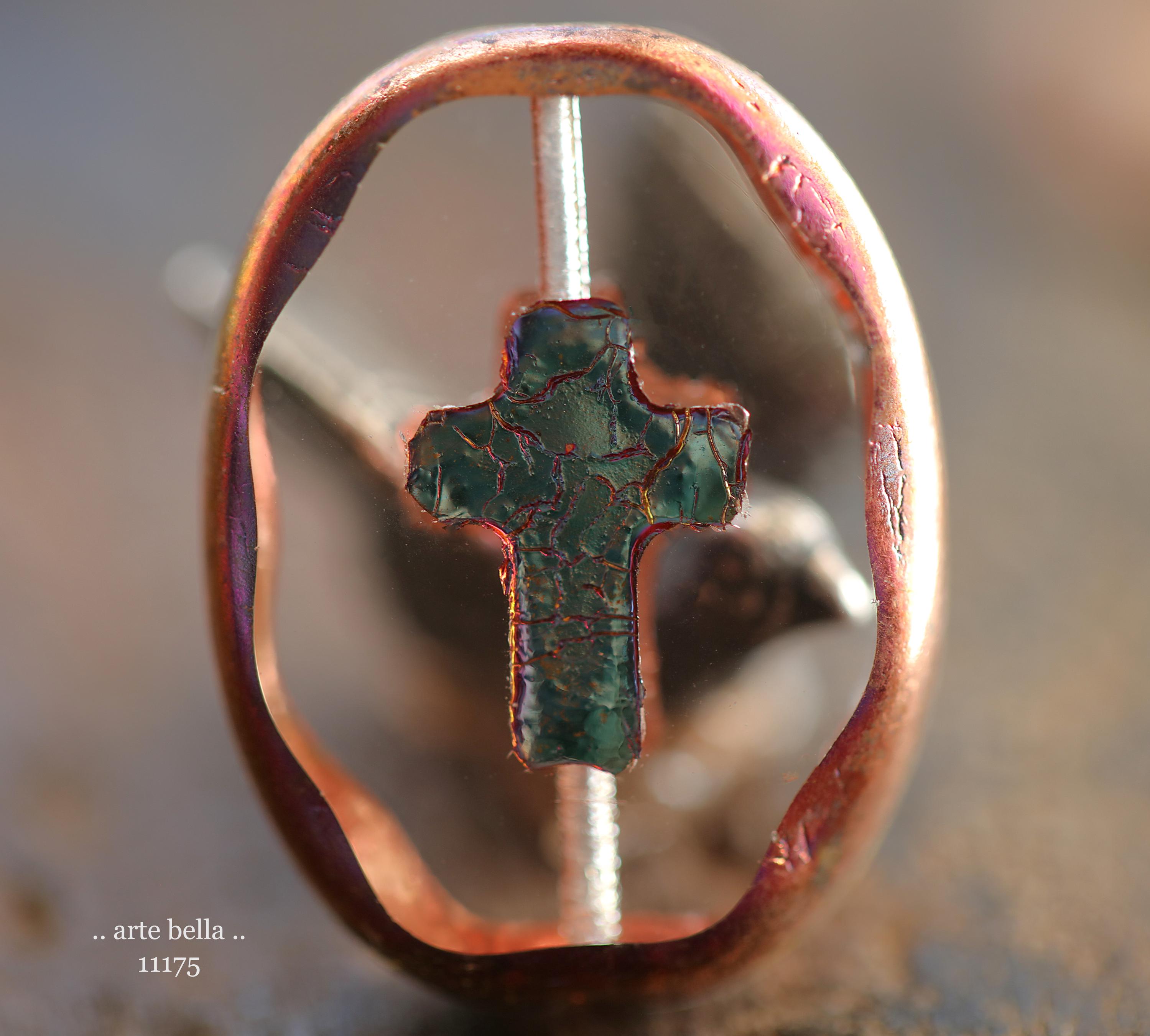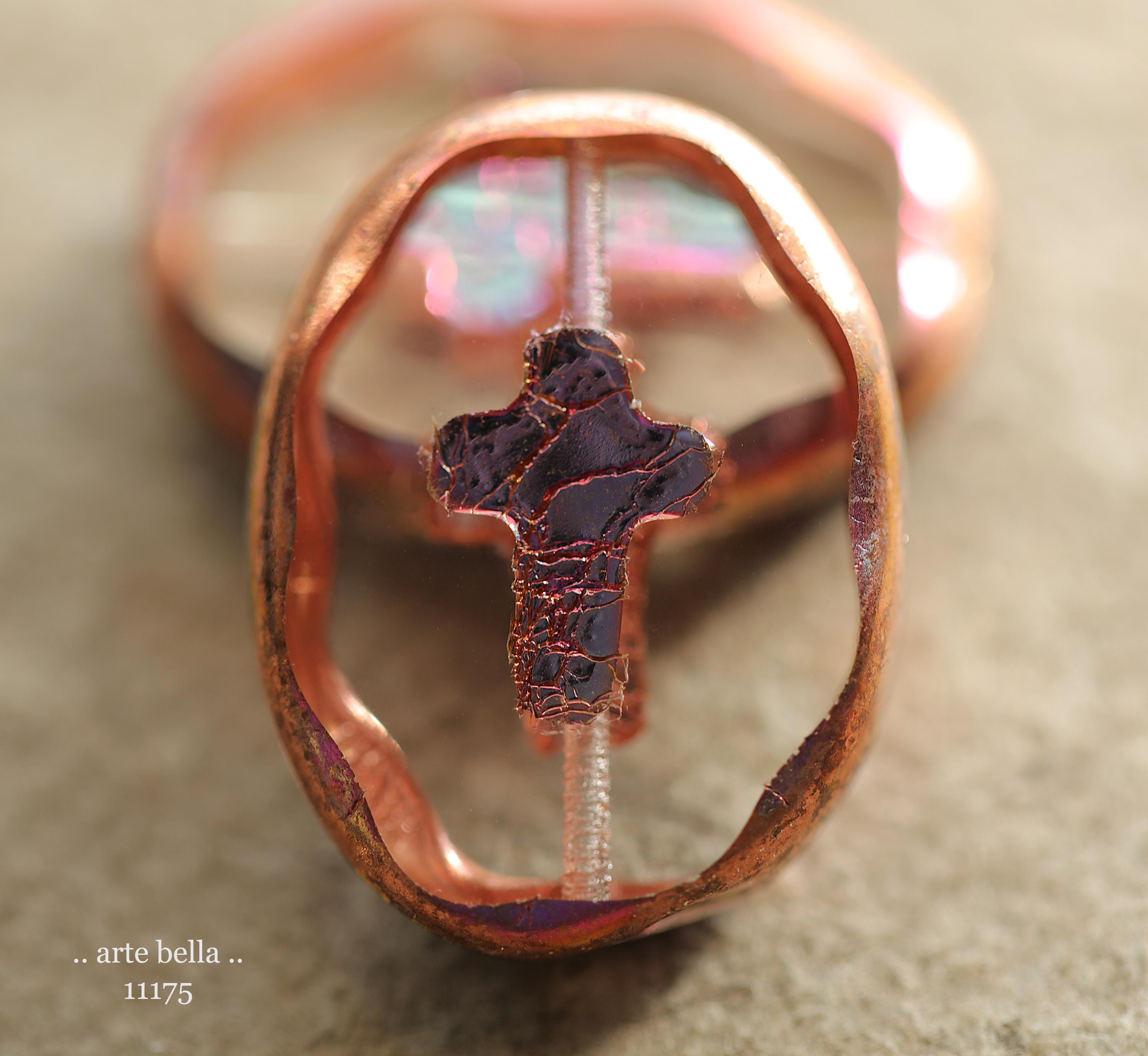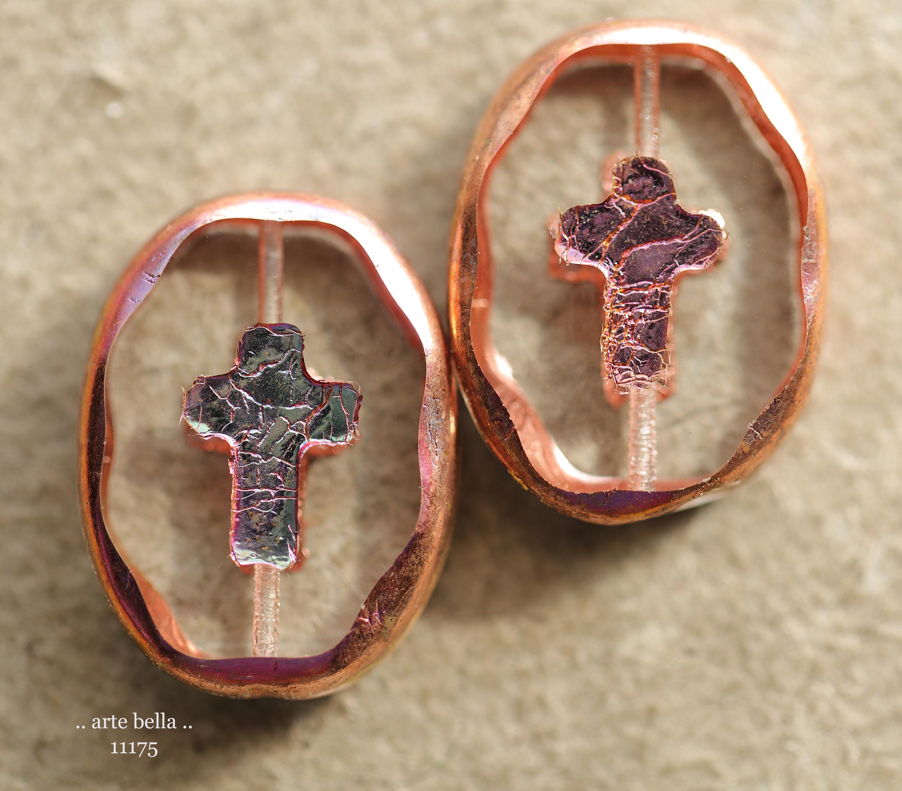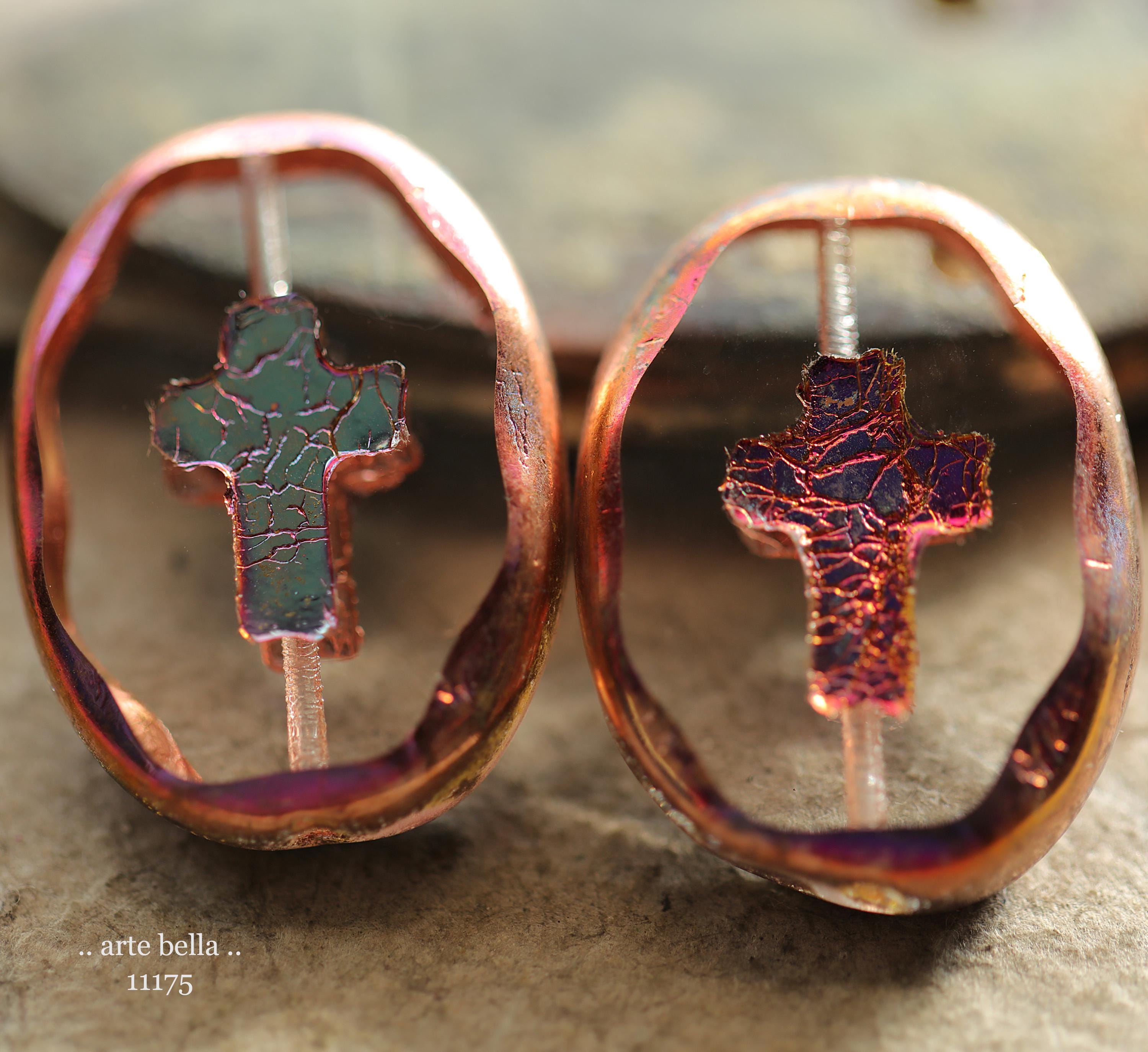 New .. MYSTIC RAINBOW CROSSES .. 2 Premium Czech Glass Oval Cross Bead Mix 25x19mm (11175-2) .. jewelry making supplies