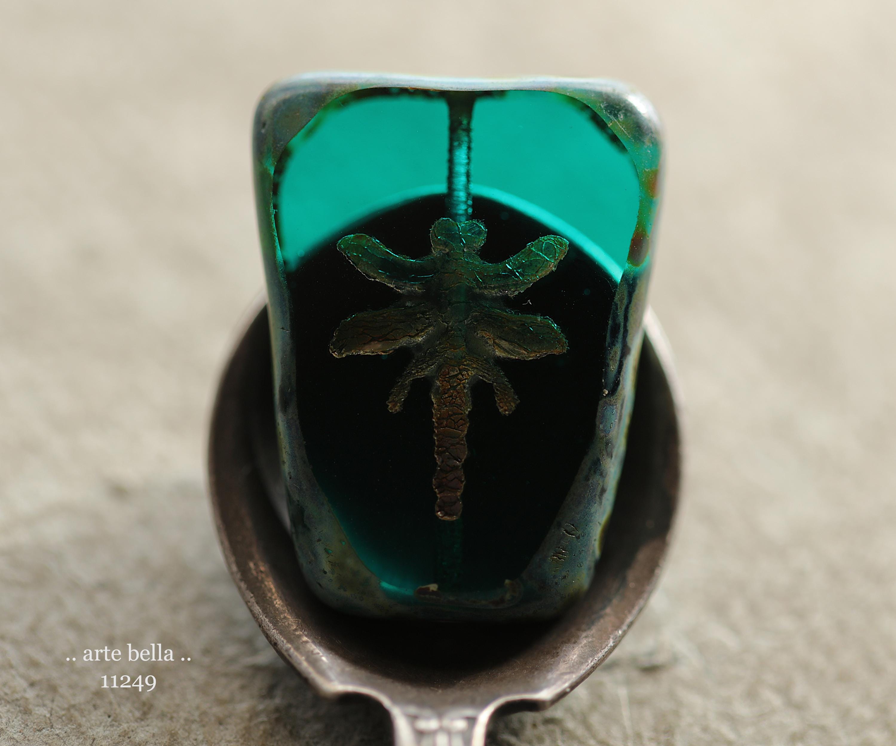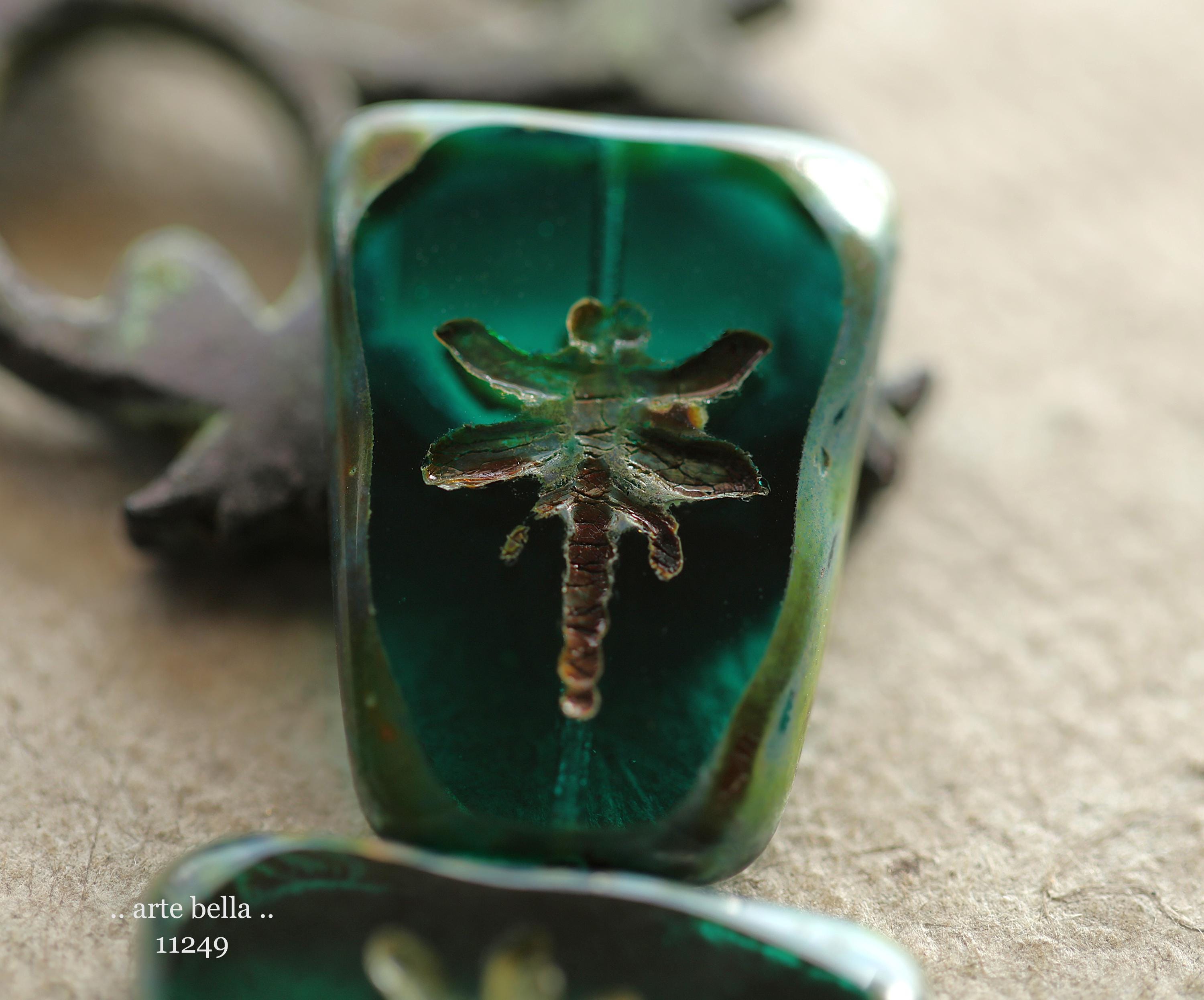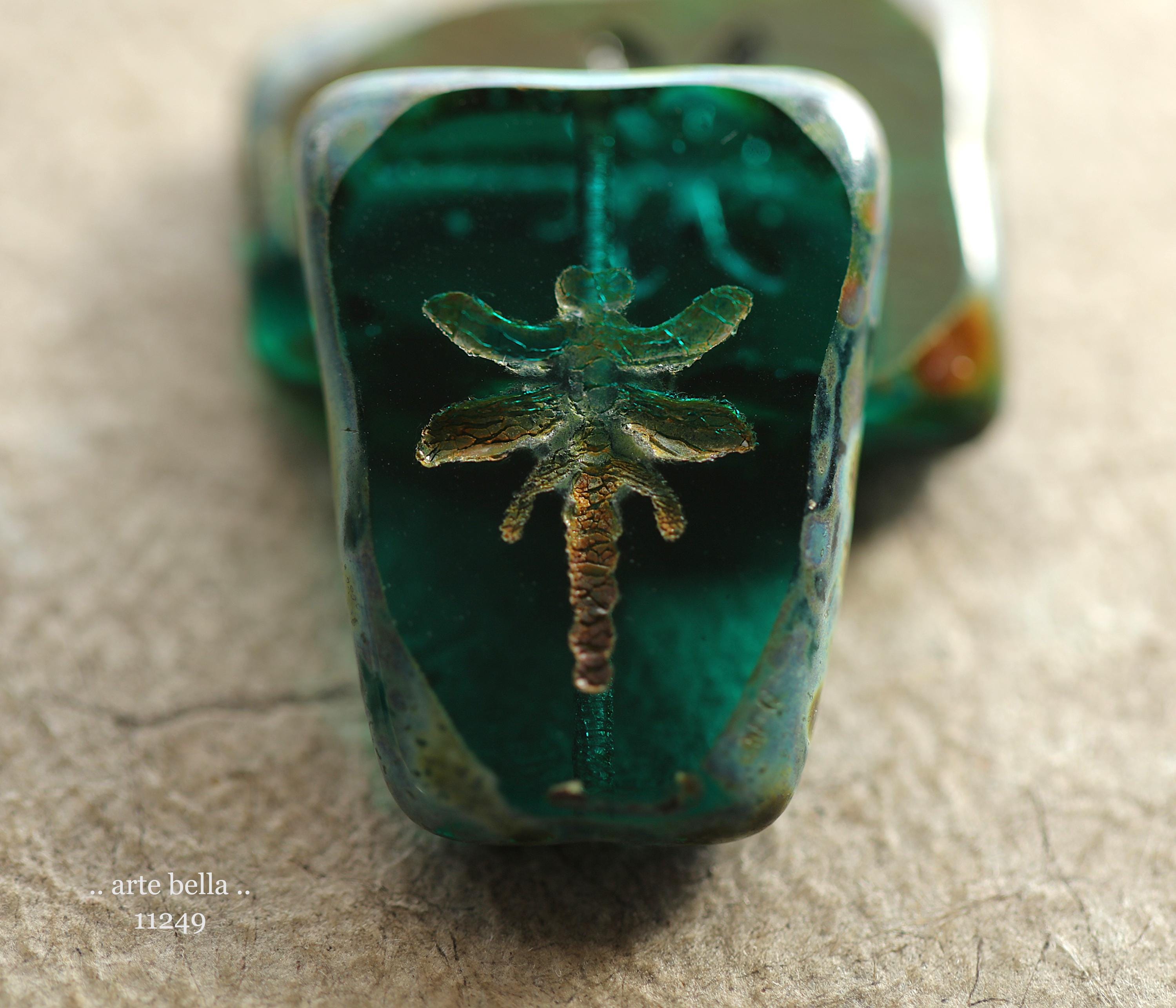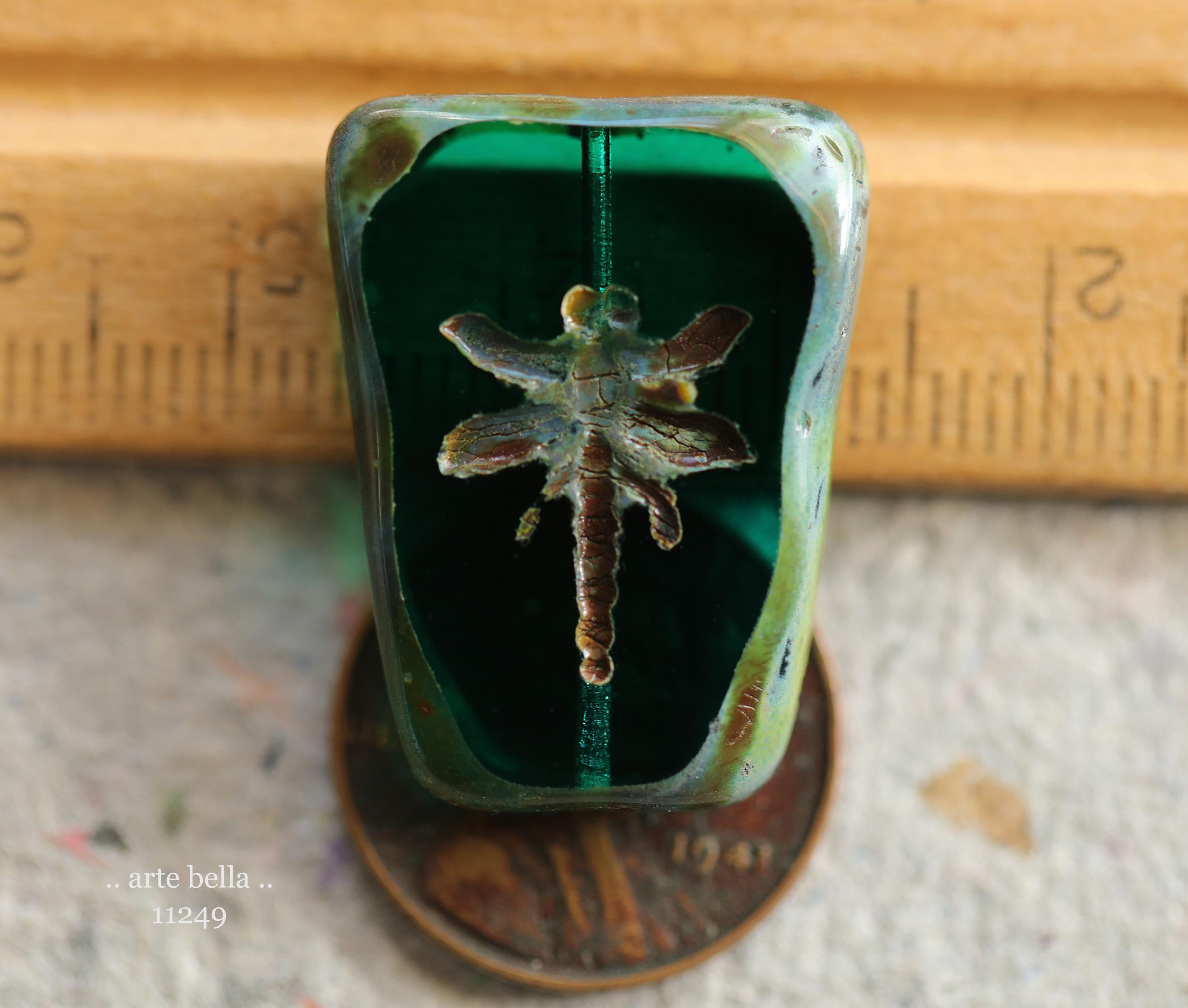 New .. EARTHY DEEP OCEAN Dragonflies .. 2 Premium Picasso Czech Glass Dragonfly Bead/Pendants 28x20mm (11249-2) .. jewelry supplies