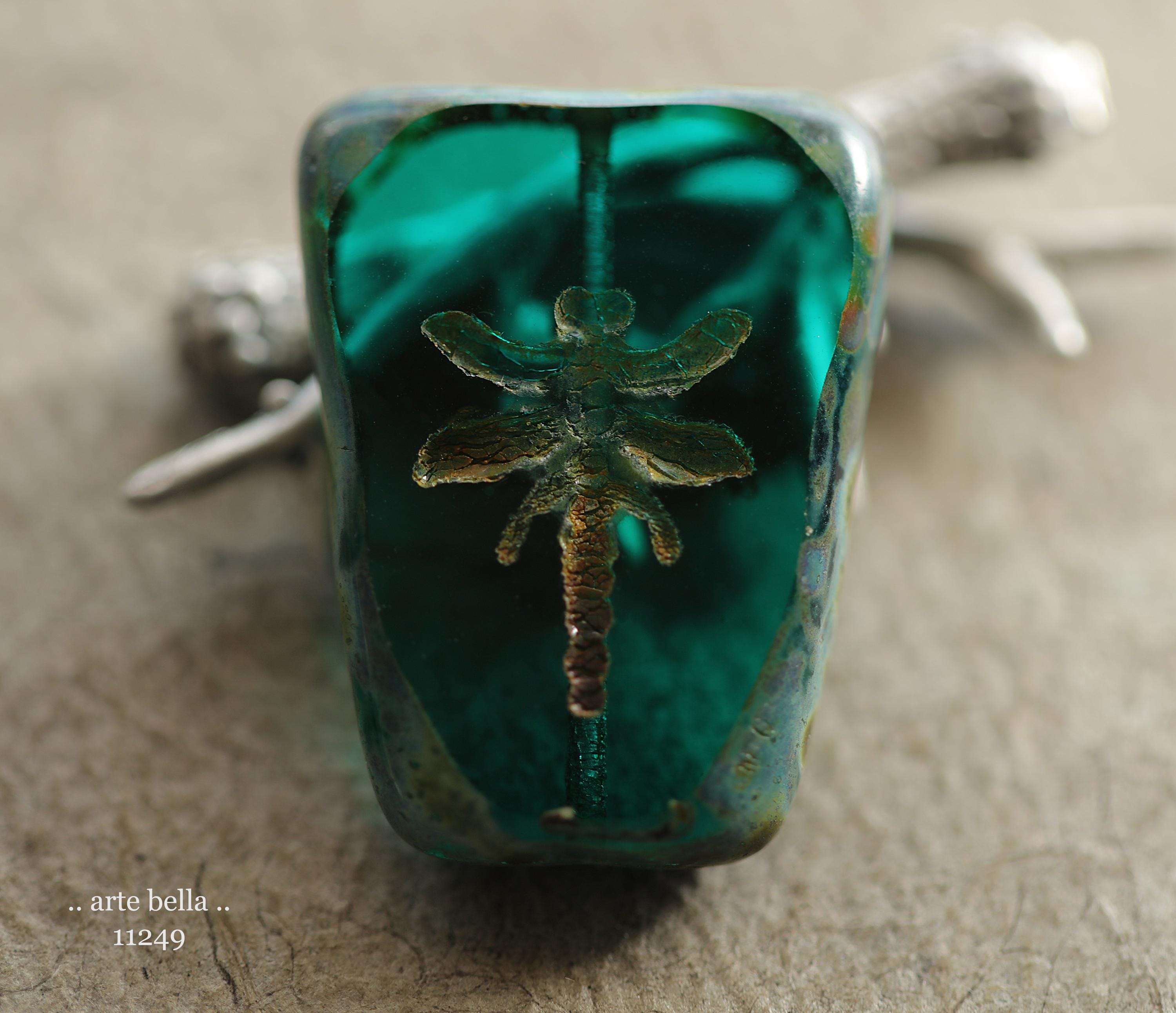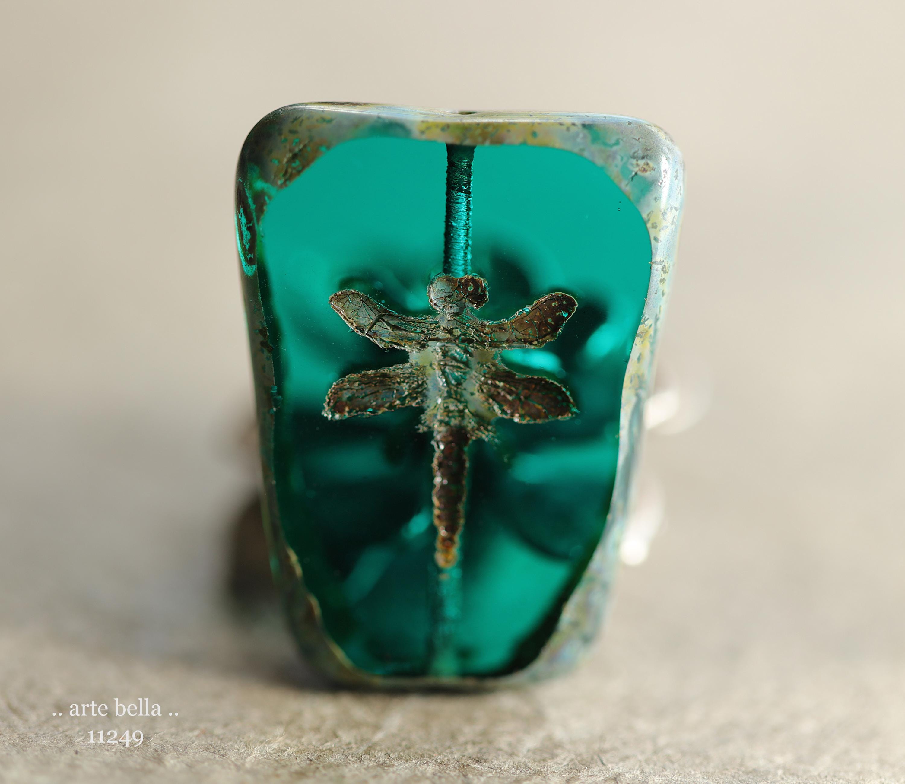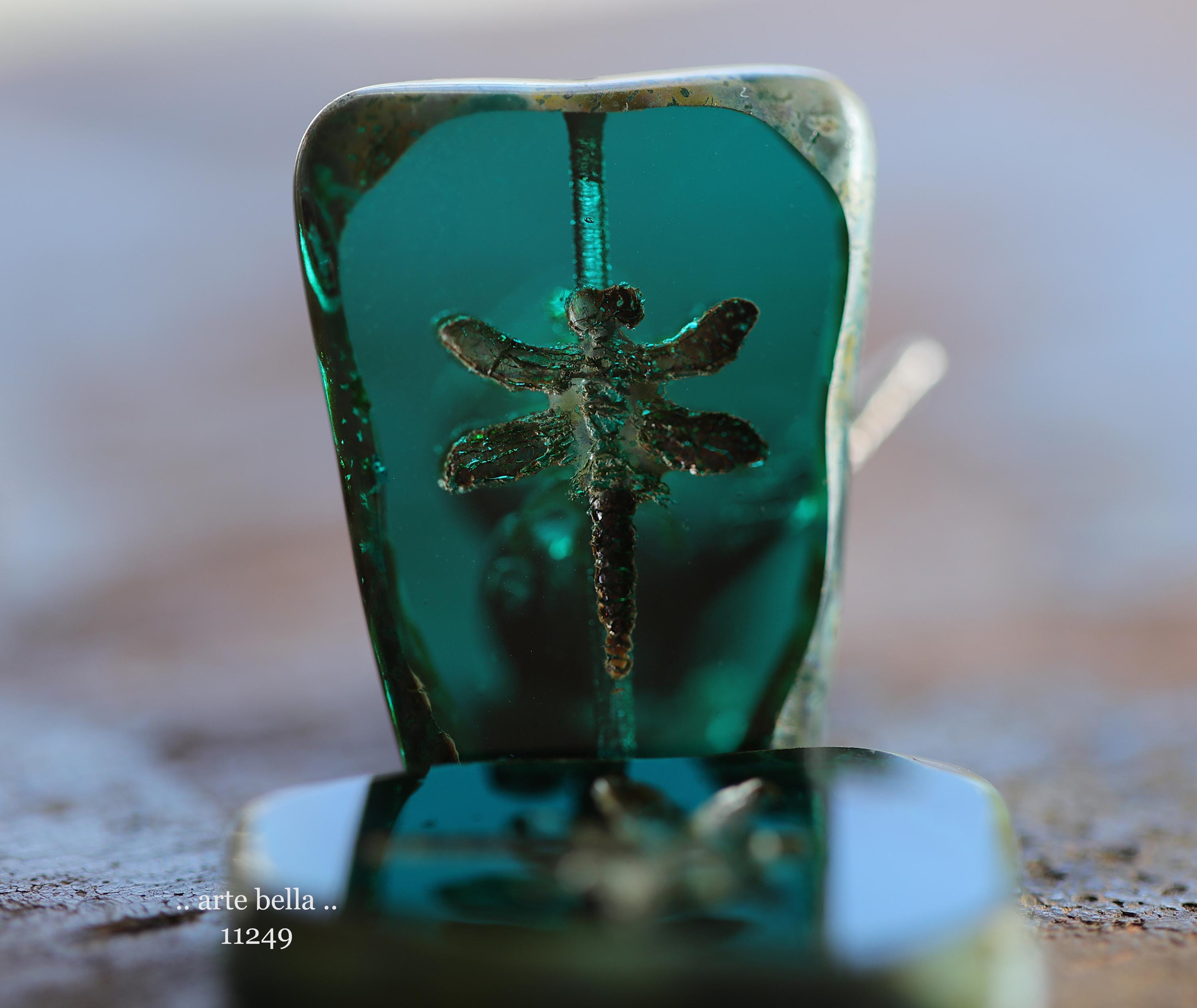 New .. EARTHY DEEP OCEAN Dragonflies .. 2 Premium Picasso Czech Glass Dragonfly Bead/Pendants 28x20mm (11249-2) .. jewelry supplies