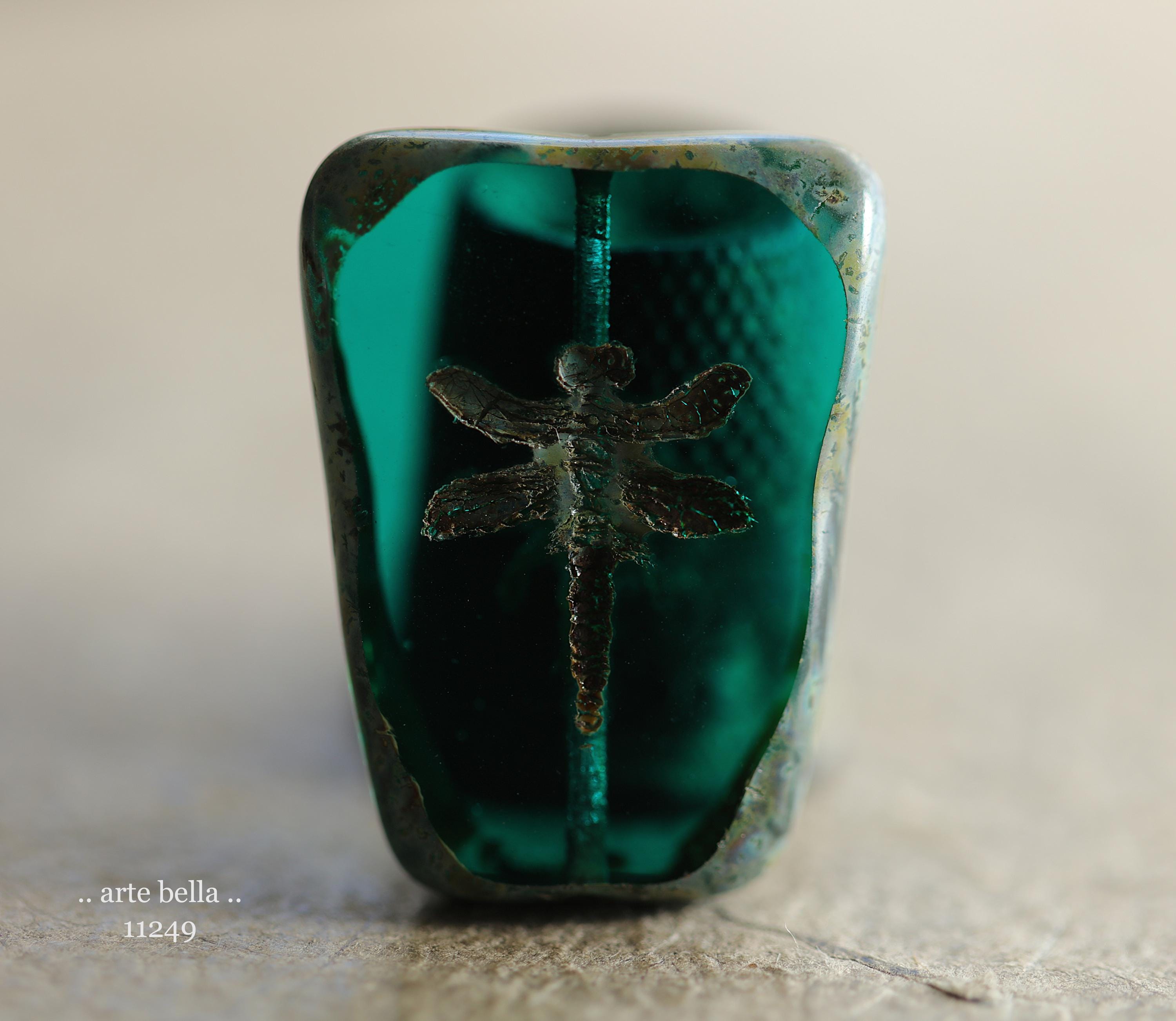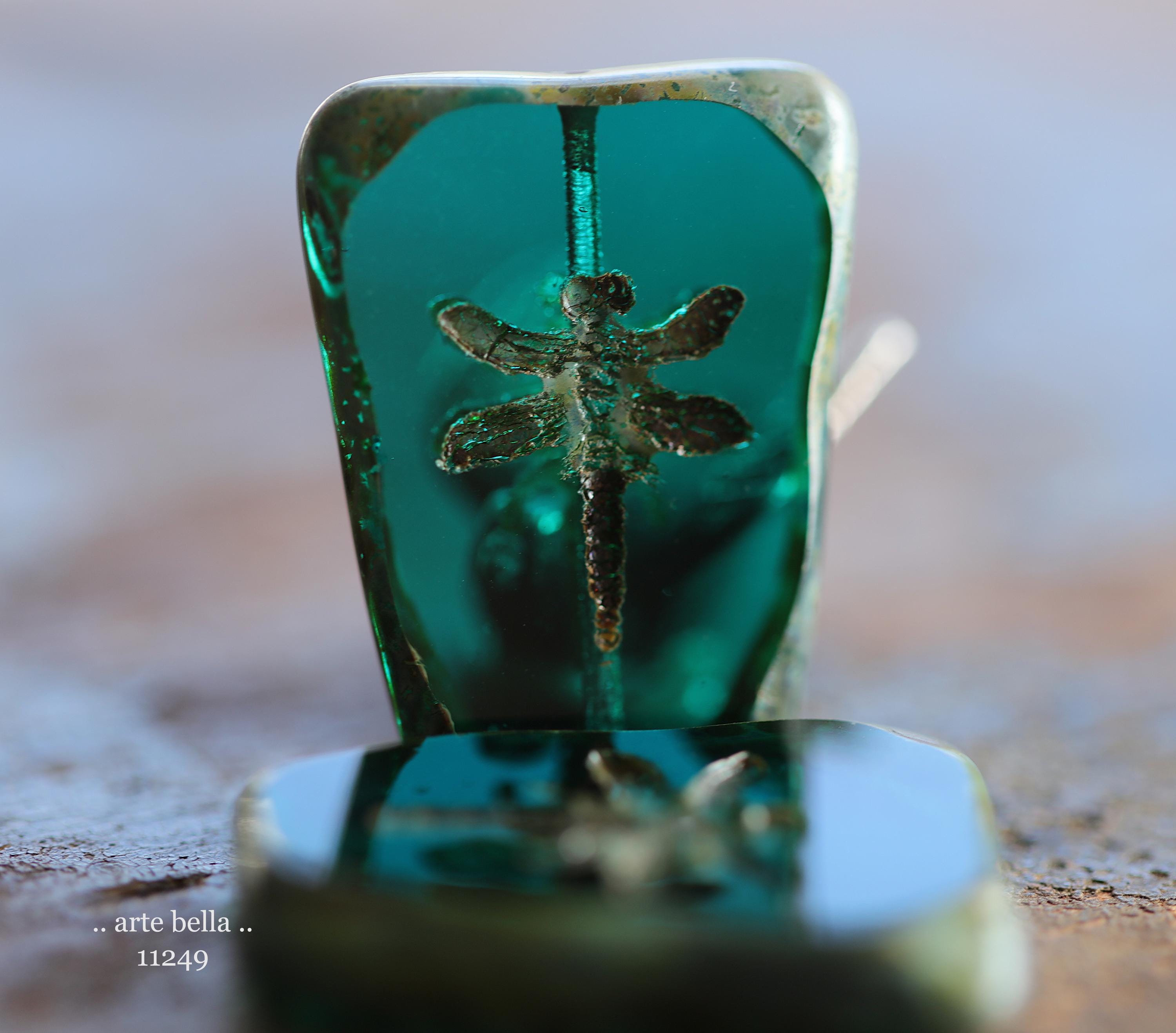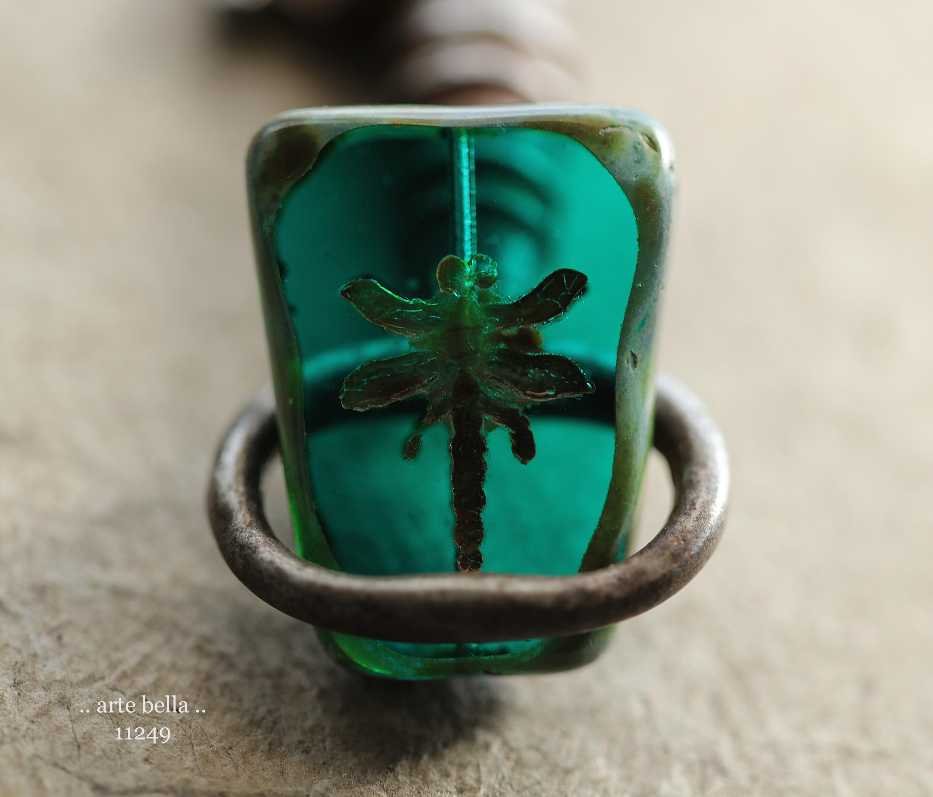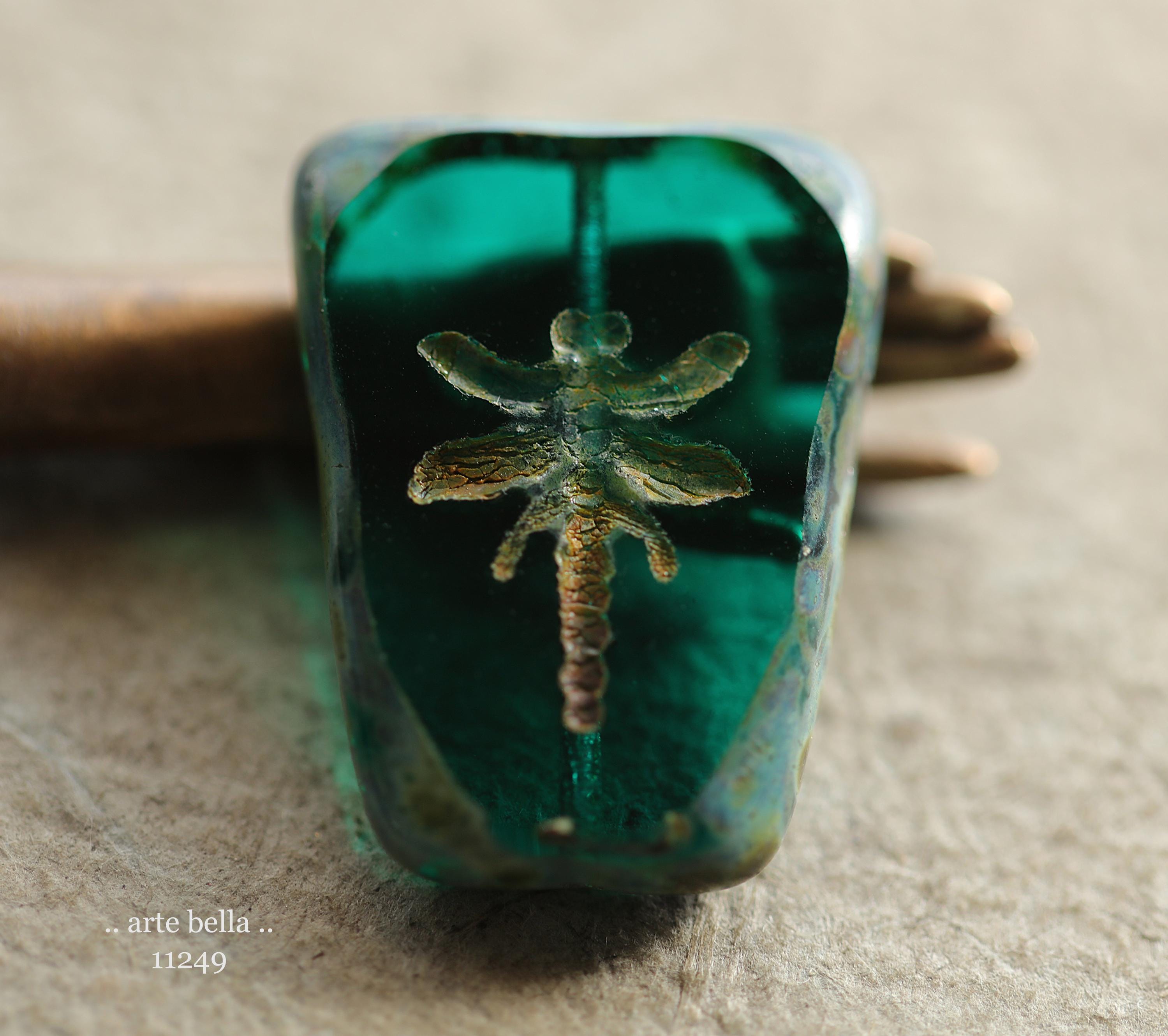 New .. EARTHY DEEP OCEAN Dragonflies .. 2 Premium Picasso Czech Glass Dragonfly Bead/Pendants 28x20mm (11249-2) .. jewelry supplies