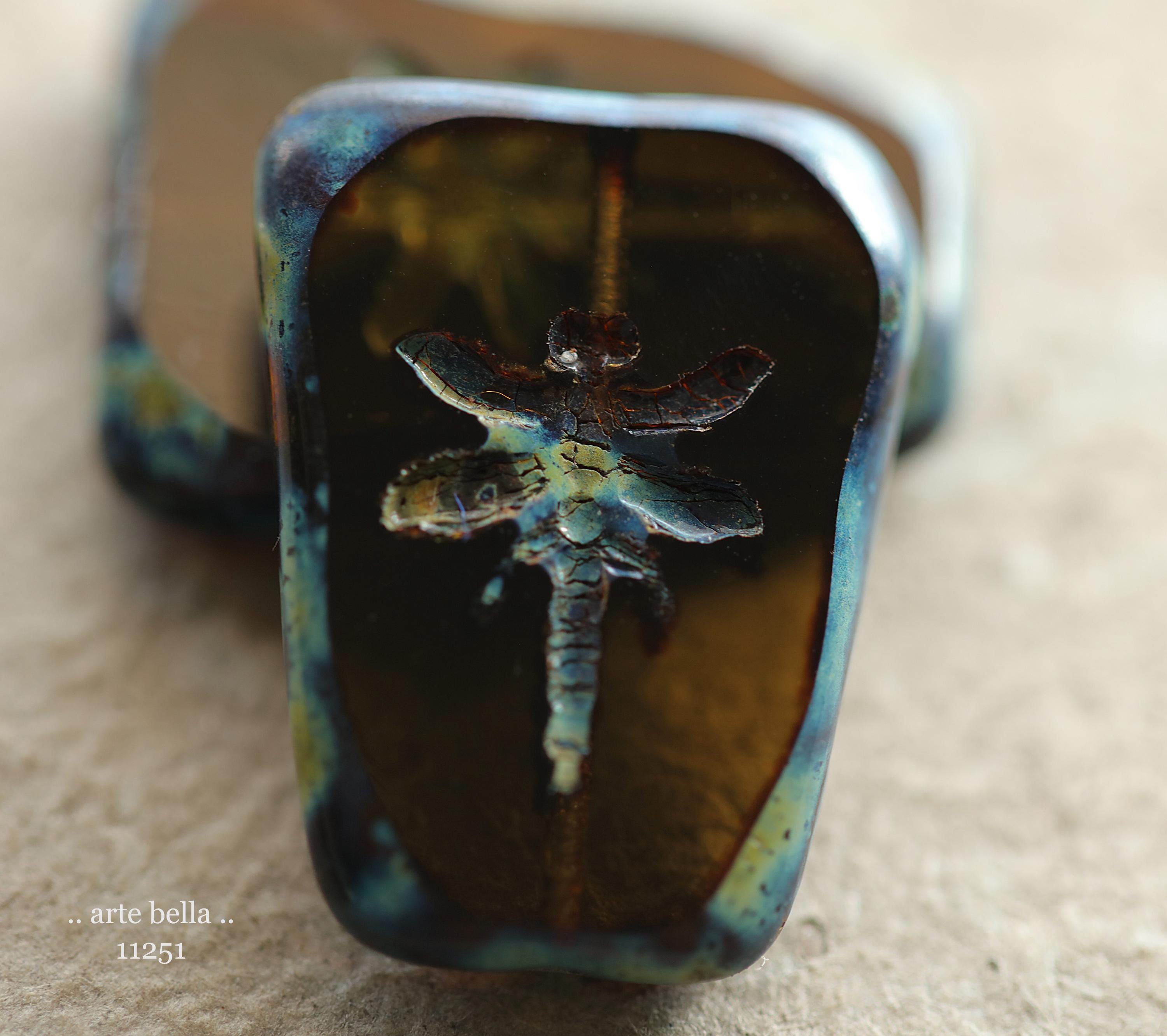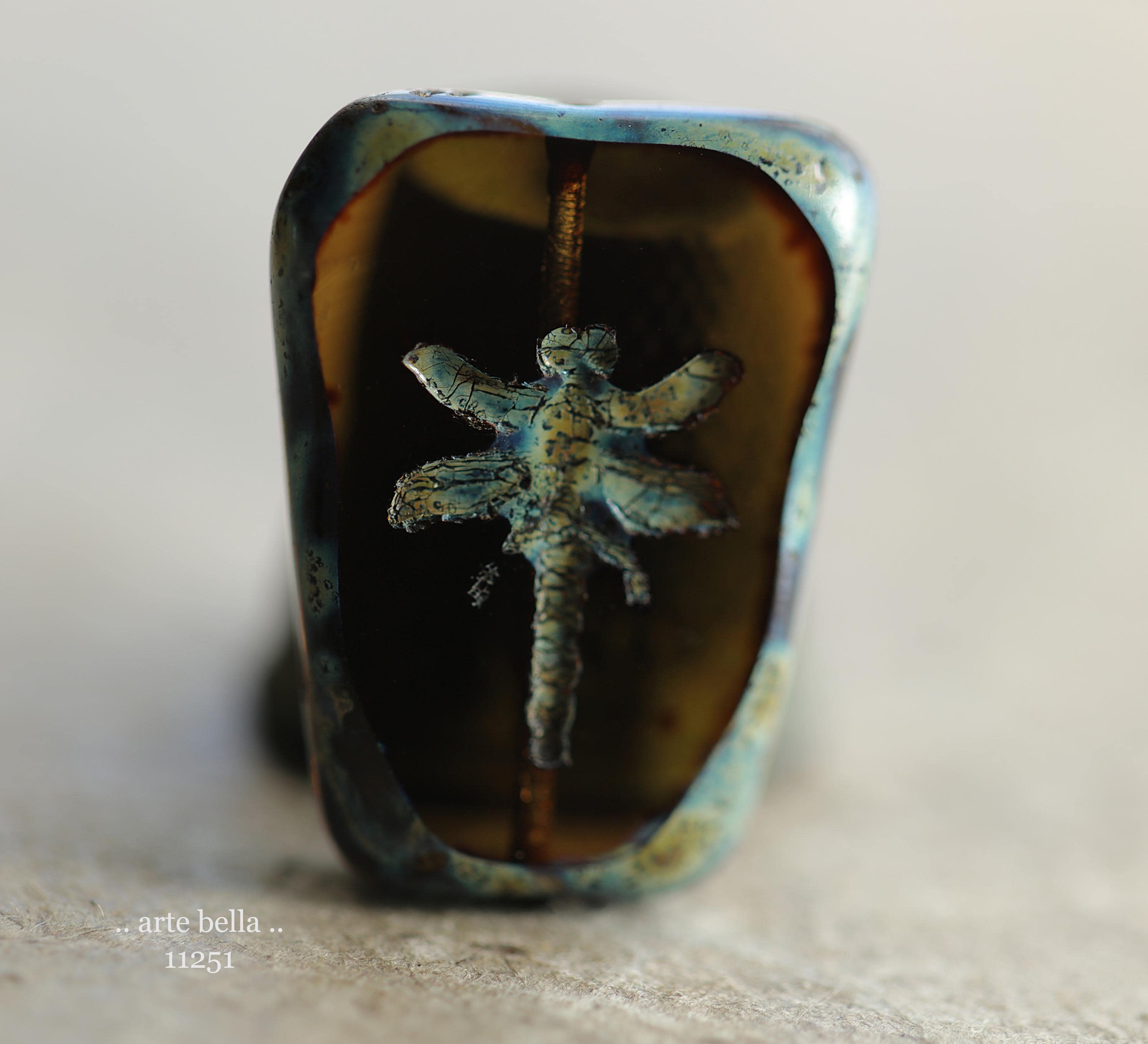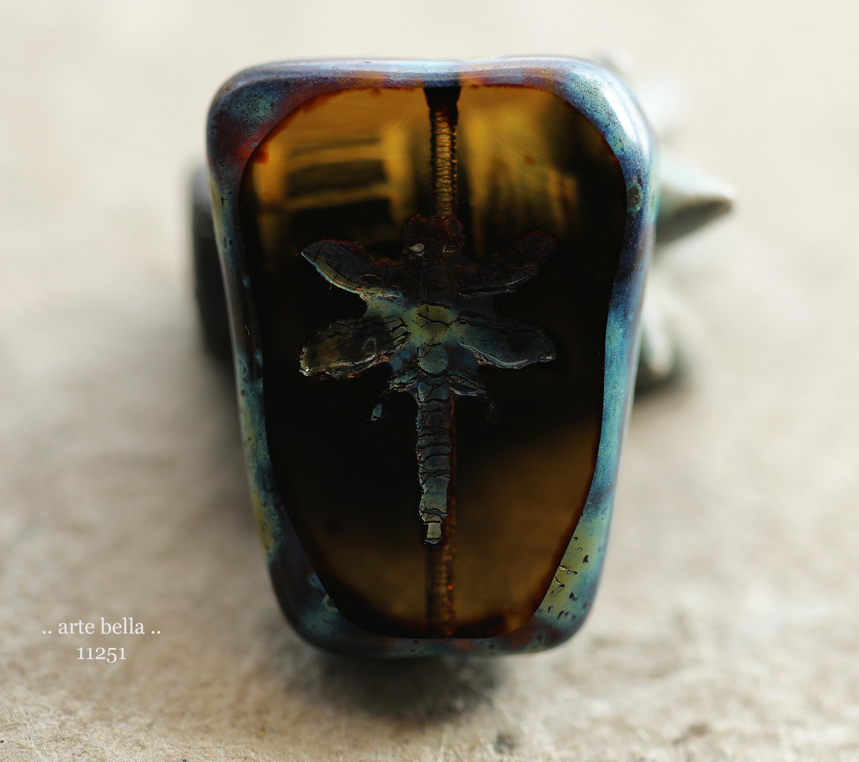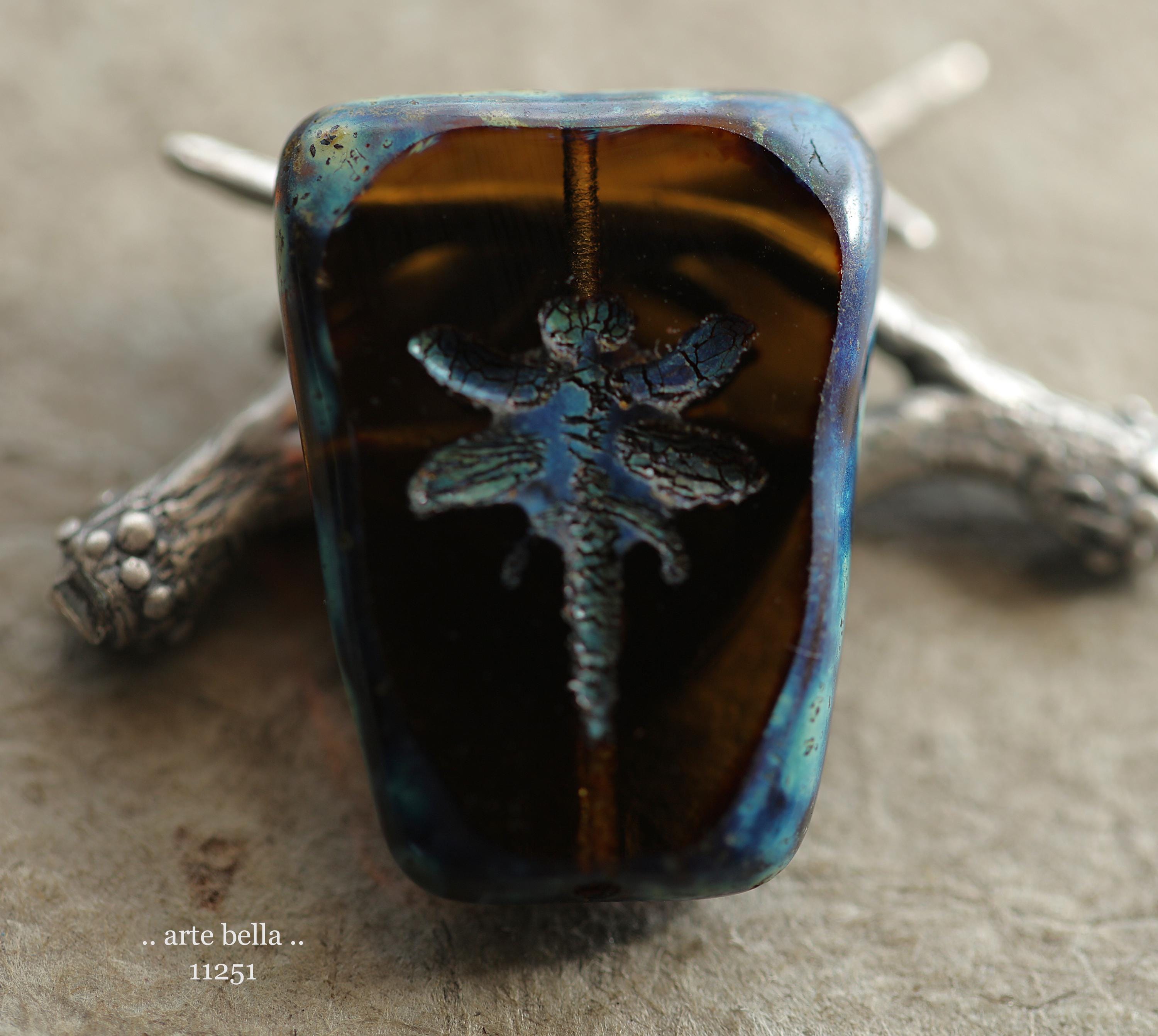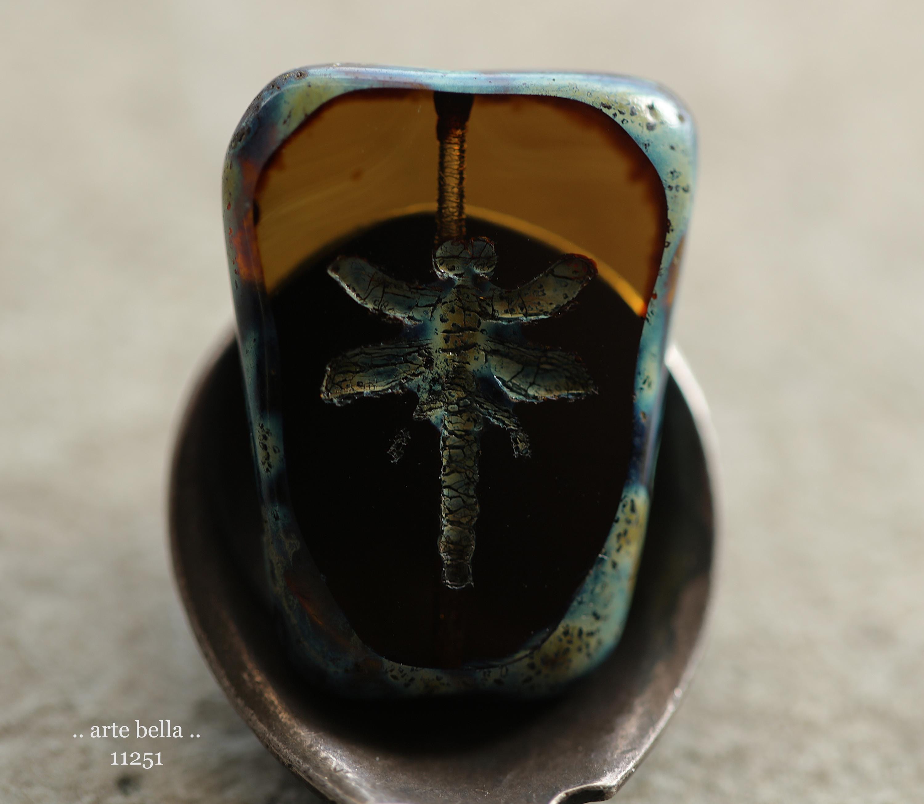 New .. EARTHY SMOKEY TOPAZ Dragonflies .. 2 Premium Picasso Czech Glass Dragonfly Bead/Pendants 28x20mm (11251-2) .. jewelry supplies