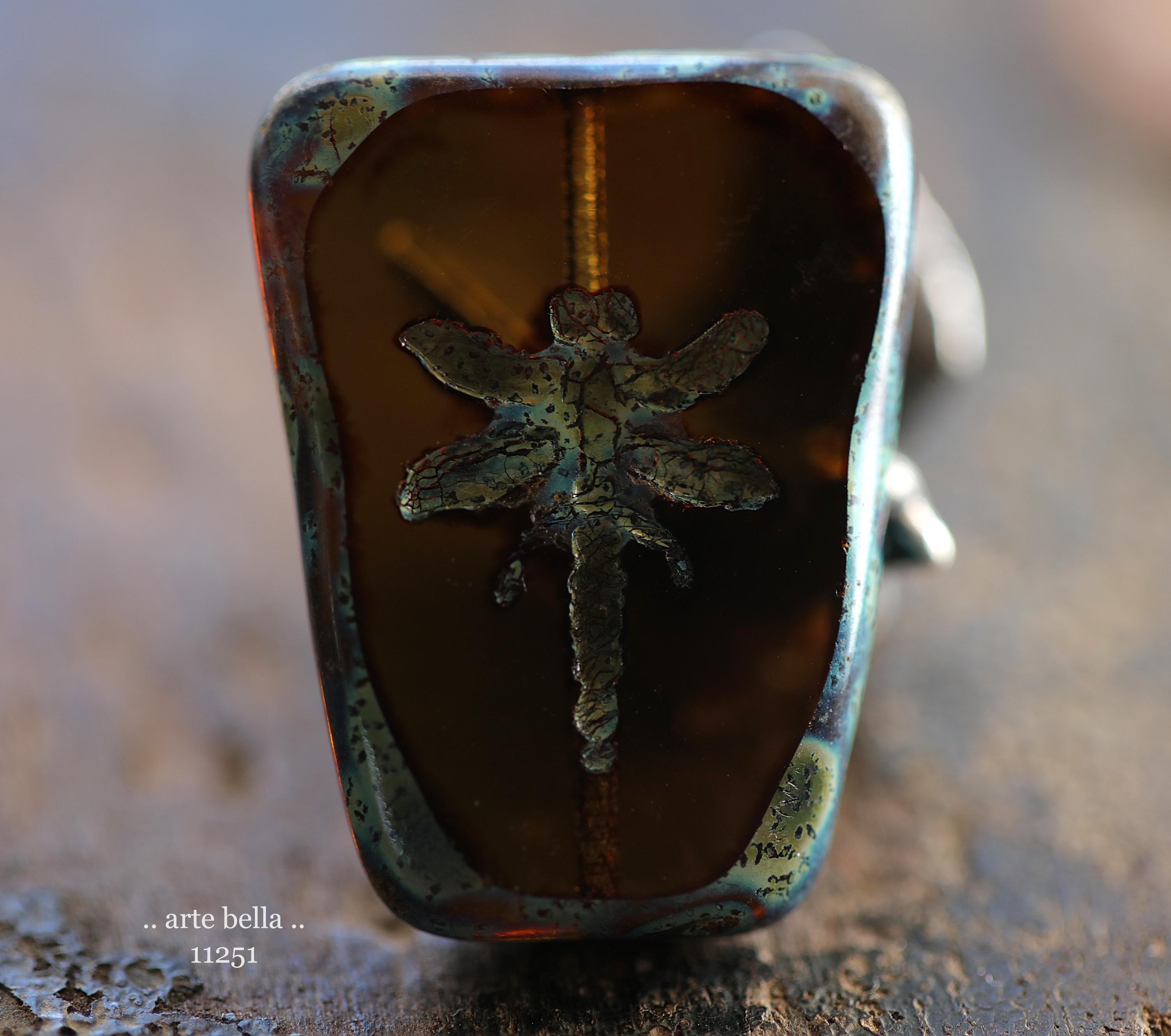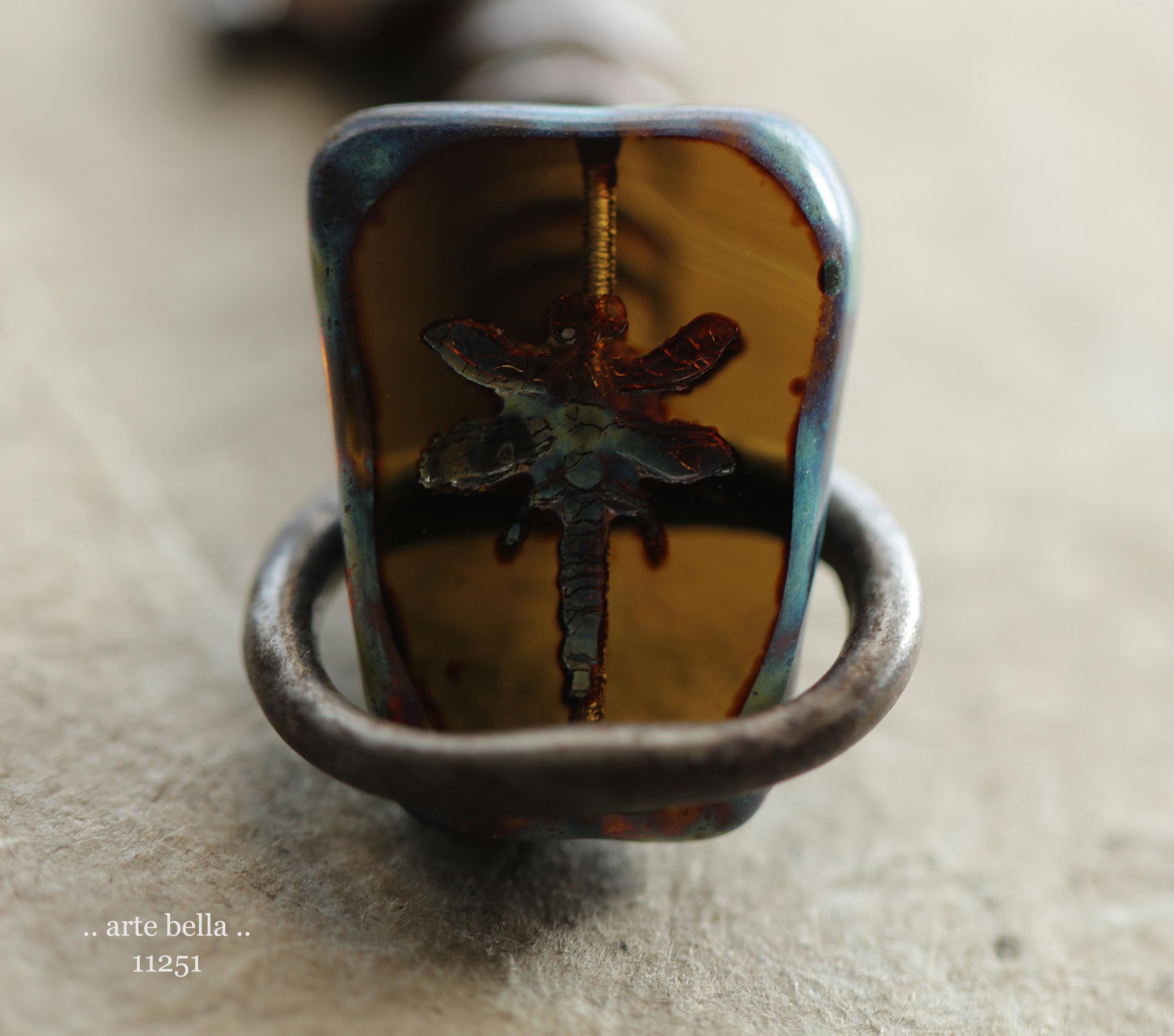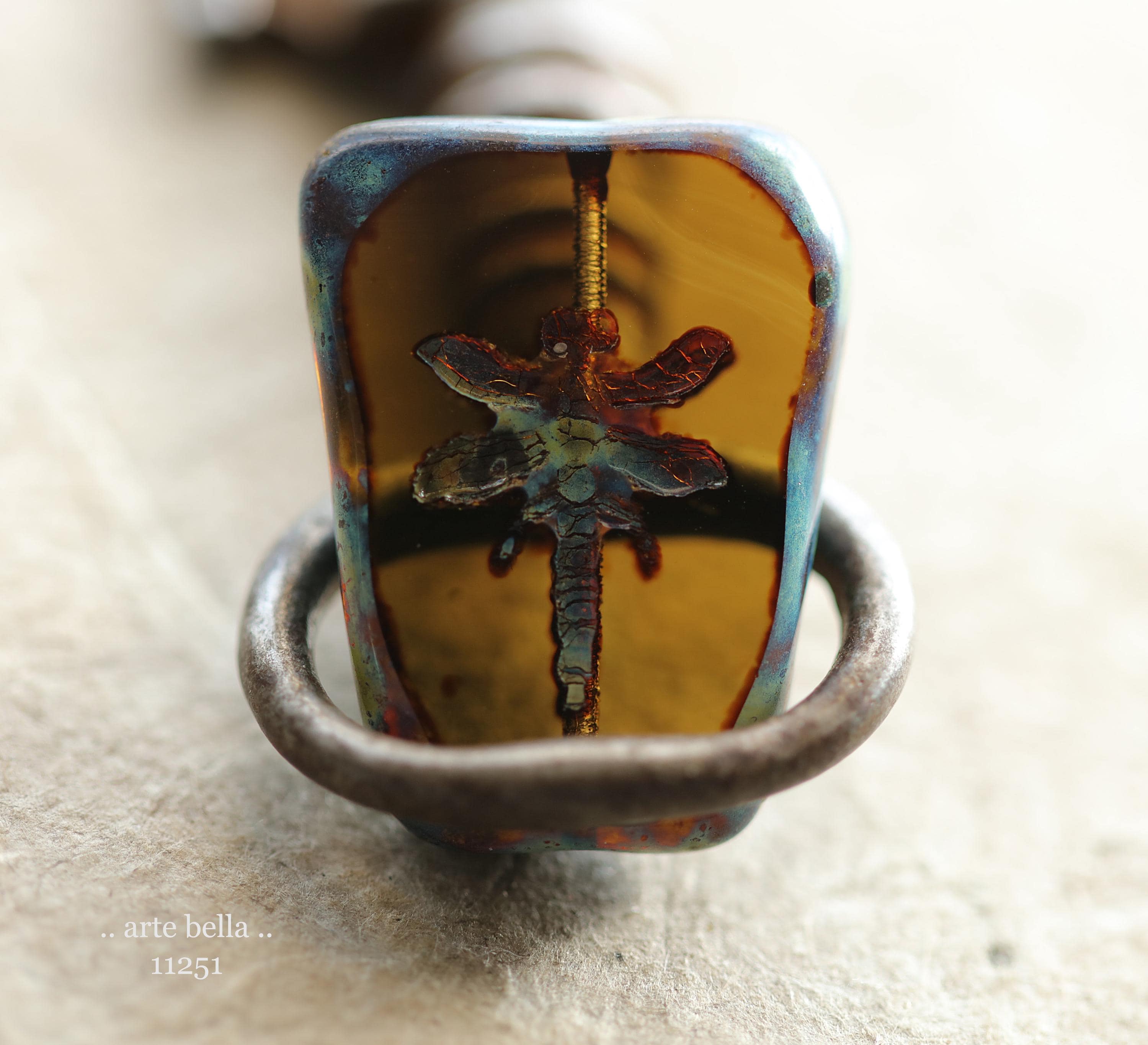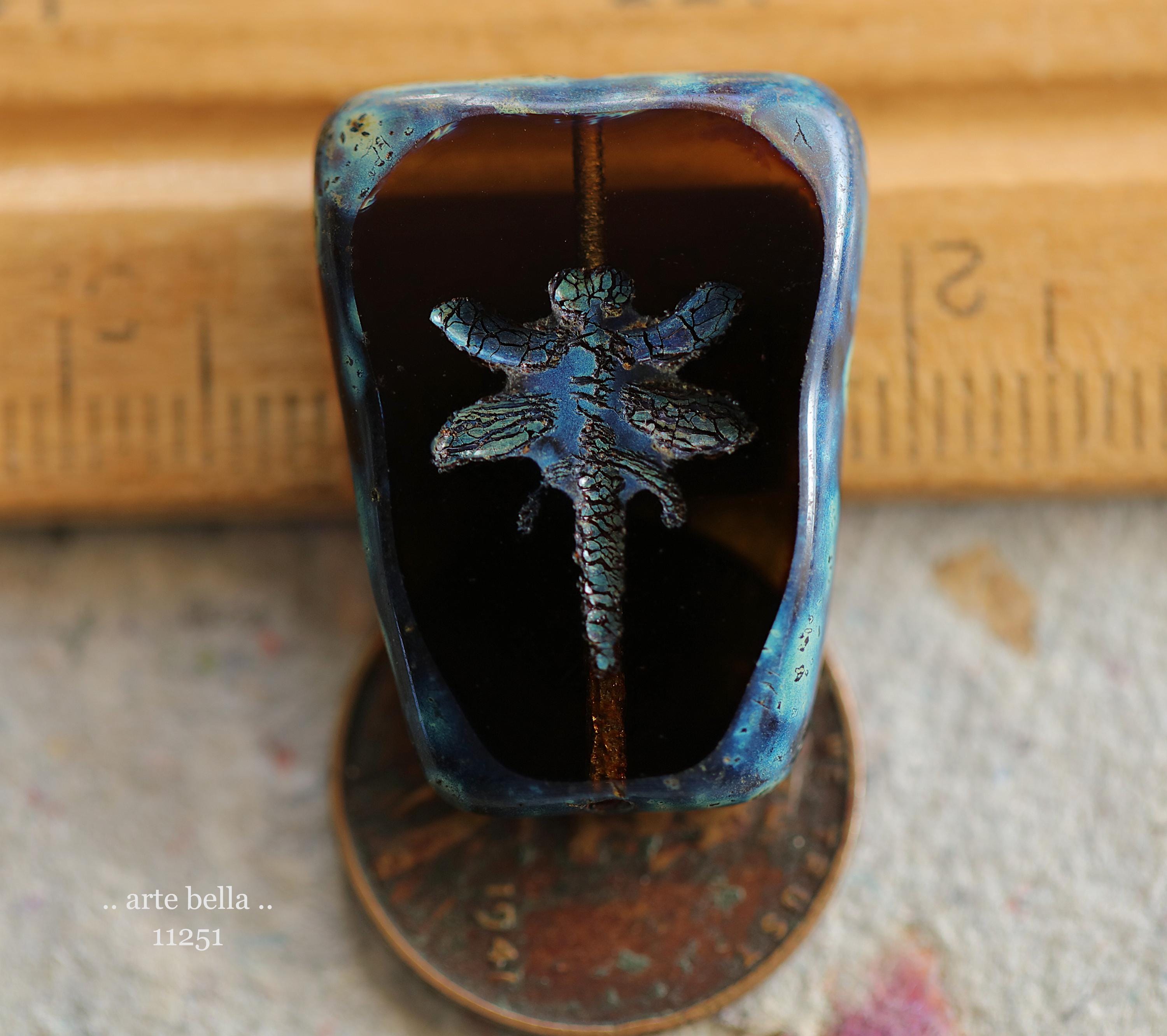 New .. EARTHY SMOKEY TOPAZ Dragonflies .. 2 Premium Picasso Czech Glass Dragonfly Bead/Pendants 28x20mm (11251-2) .. jewelry supplies