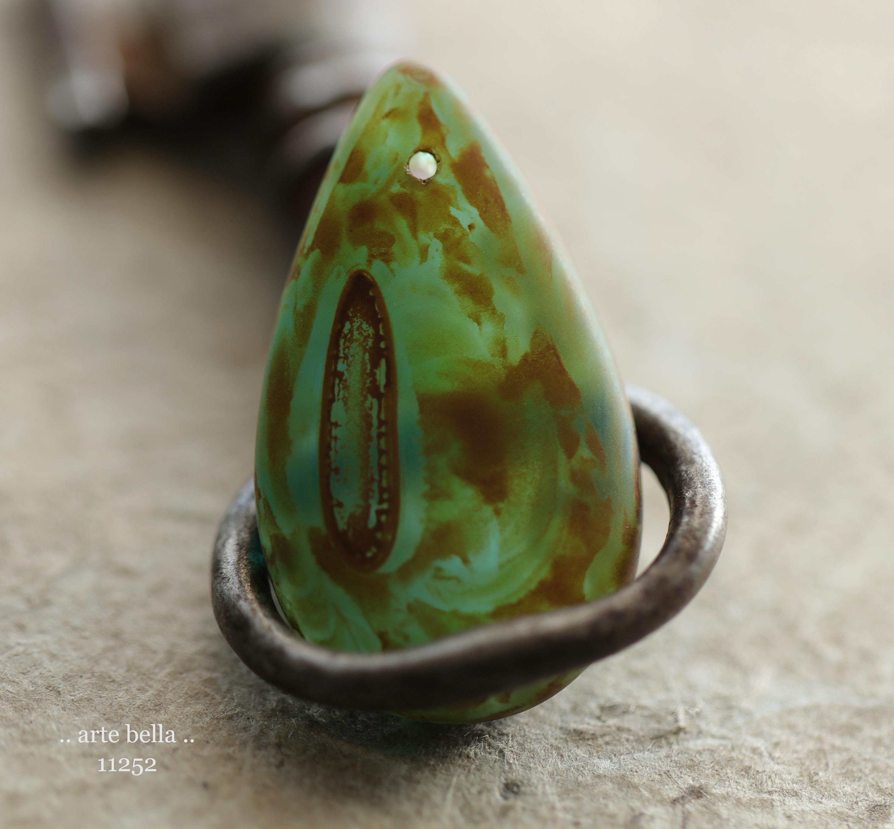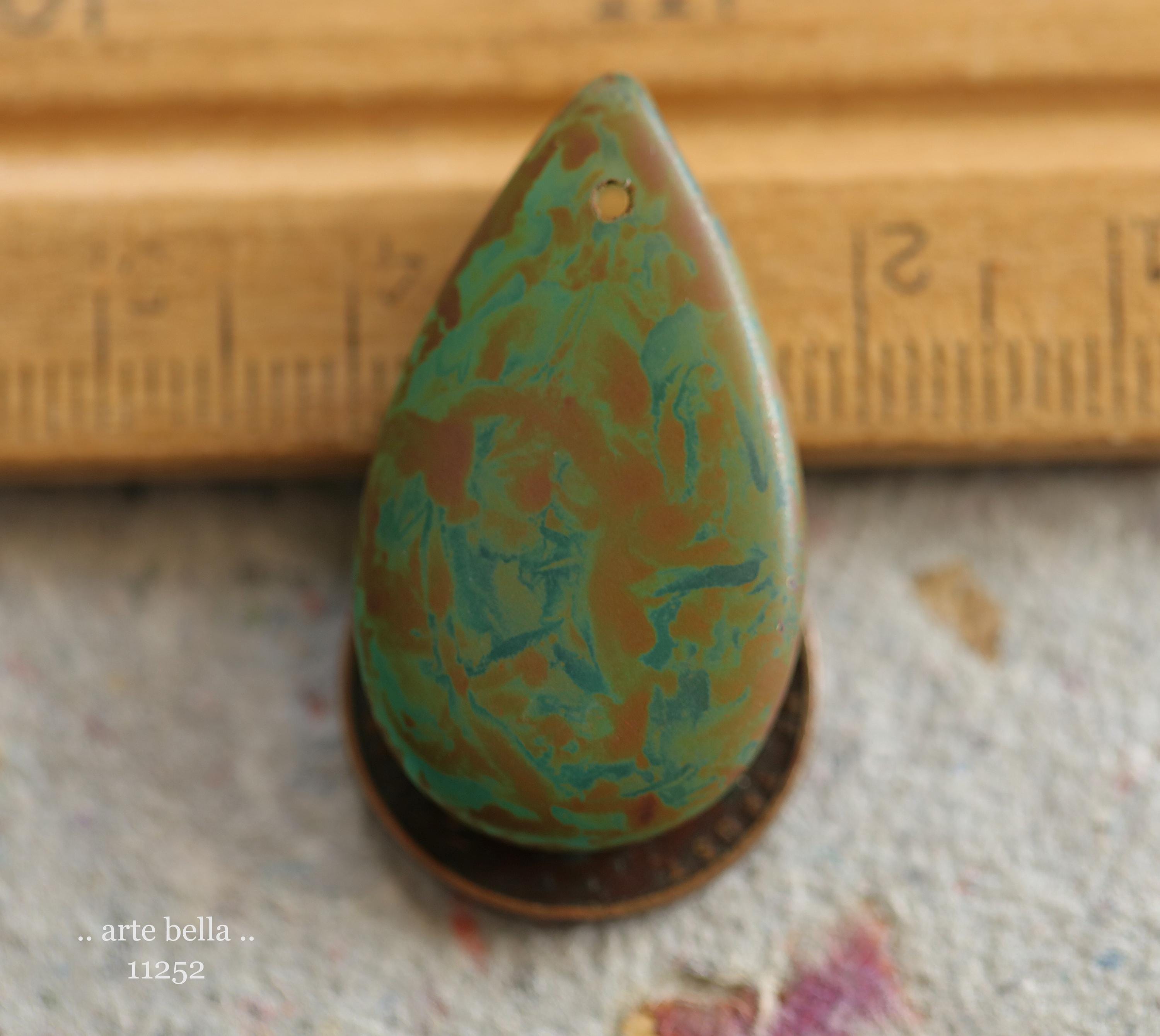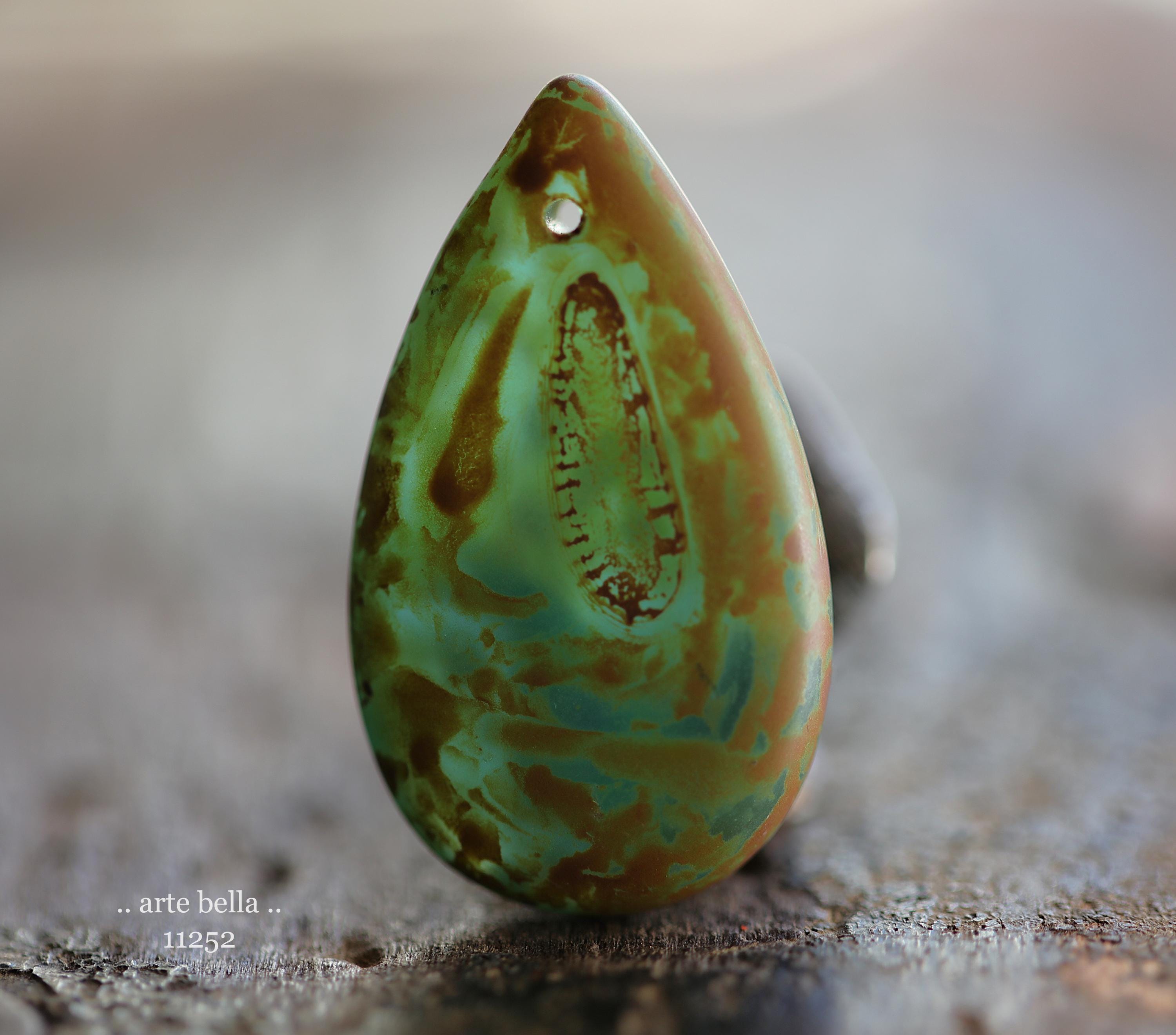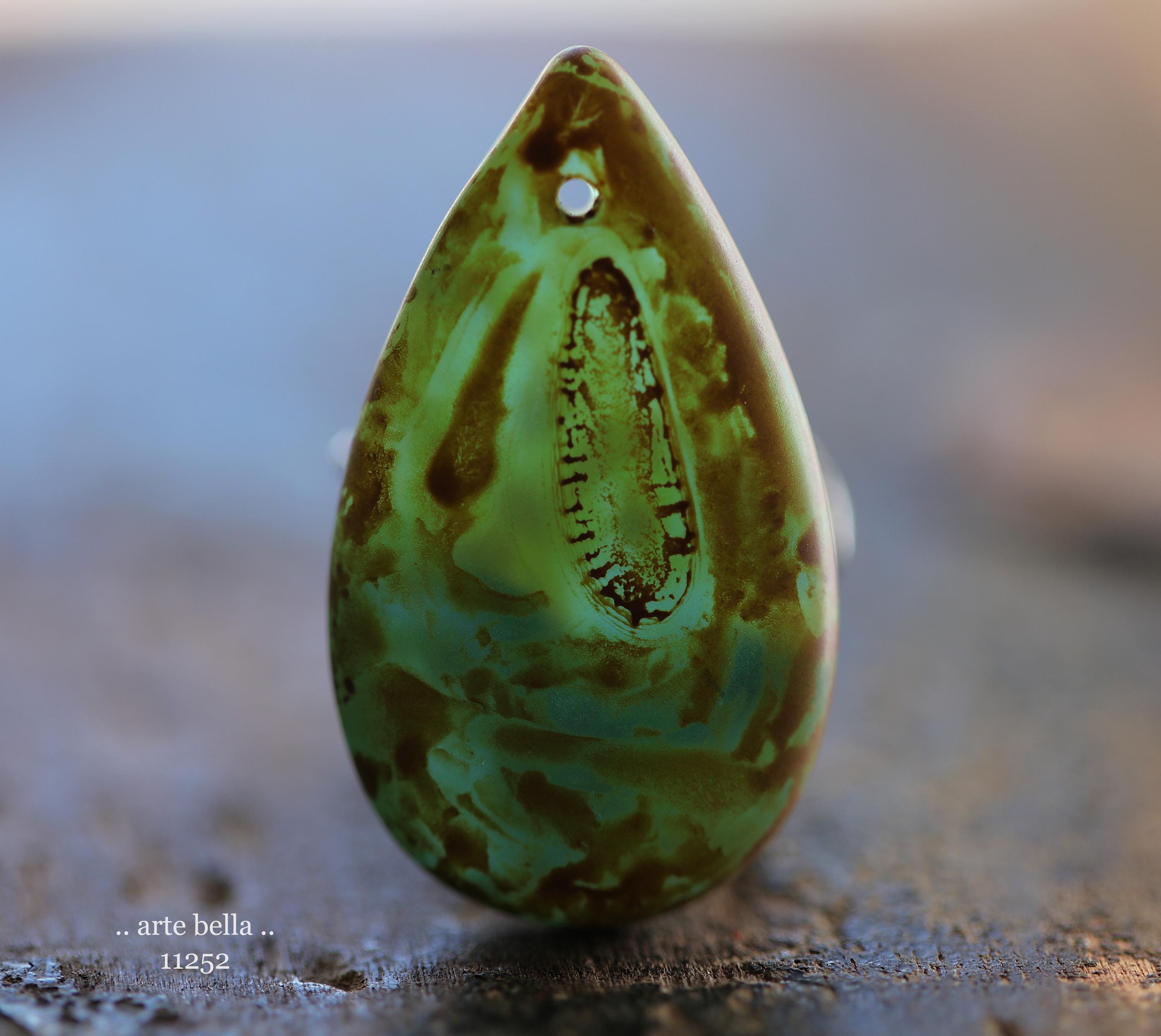 New .. MOSSY AQUA DROPS .. 2 Premium Matte Picasso Czech Glass Drop Pendant Beads 31x18mm (11252-2) .. jewelry supplies