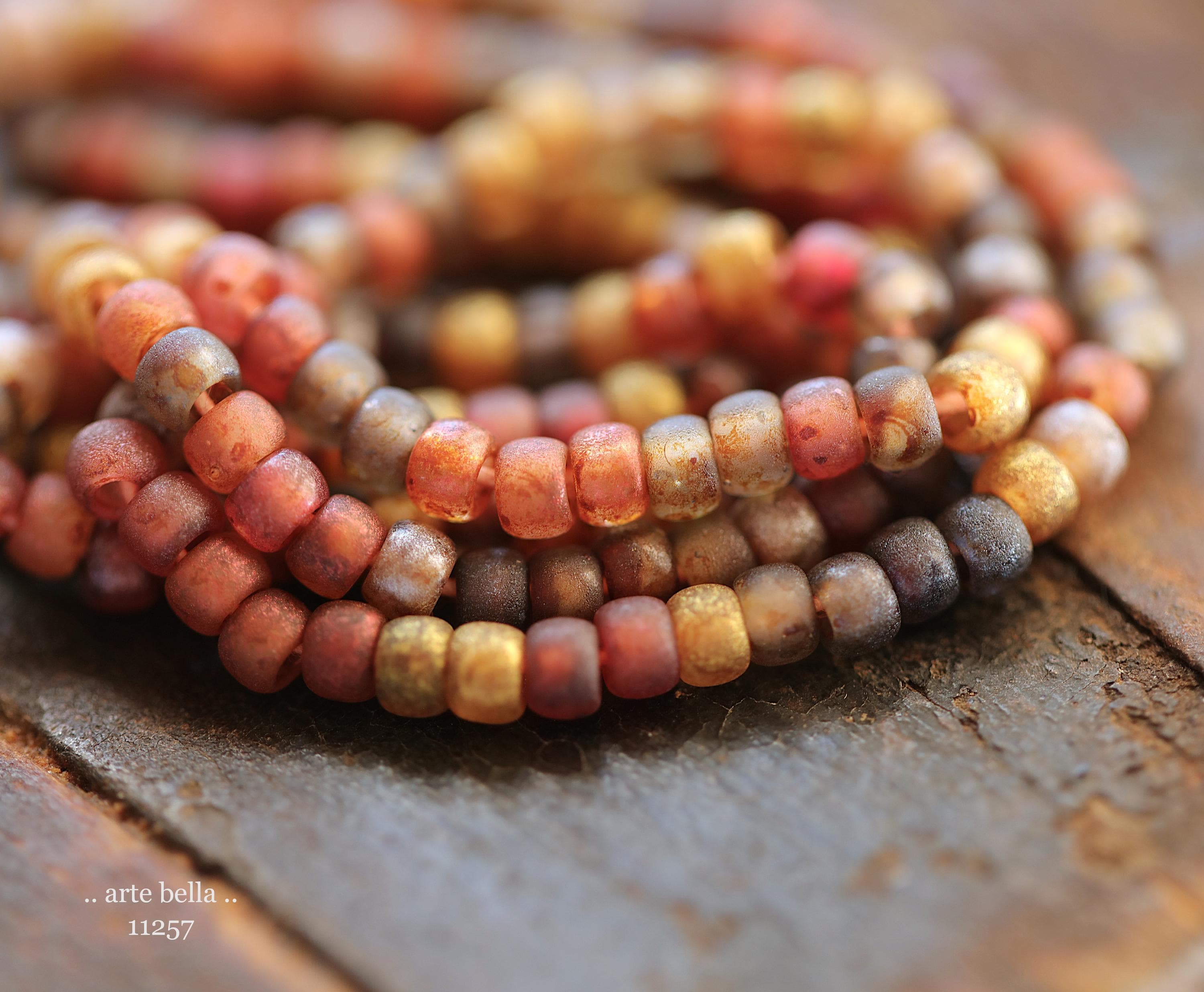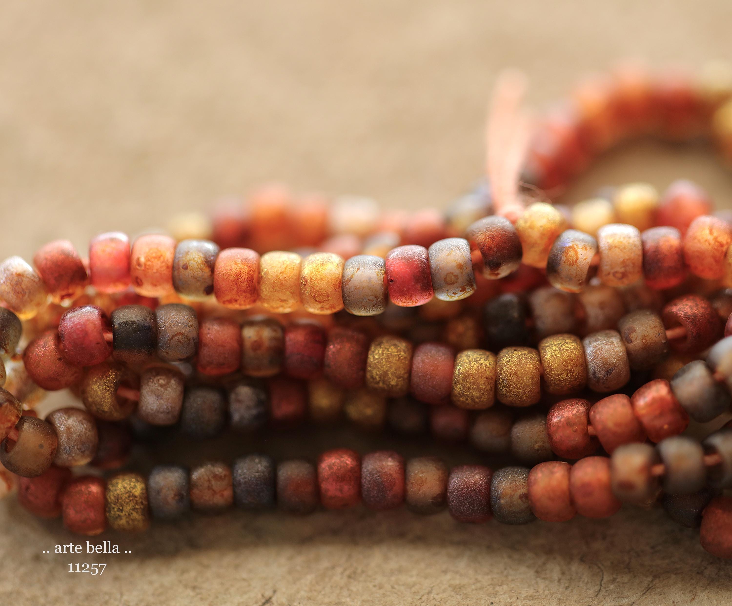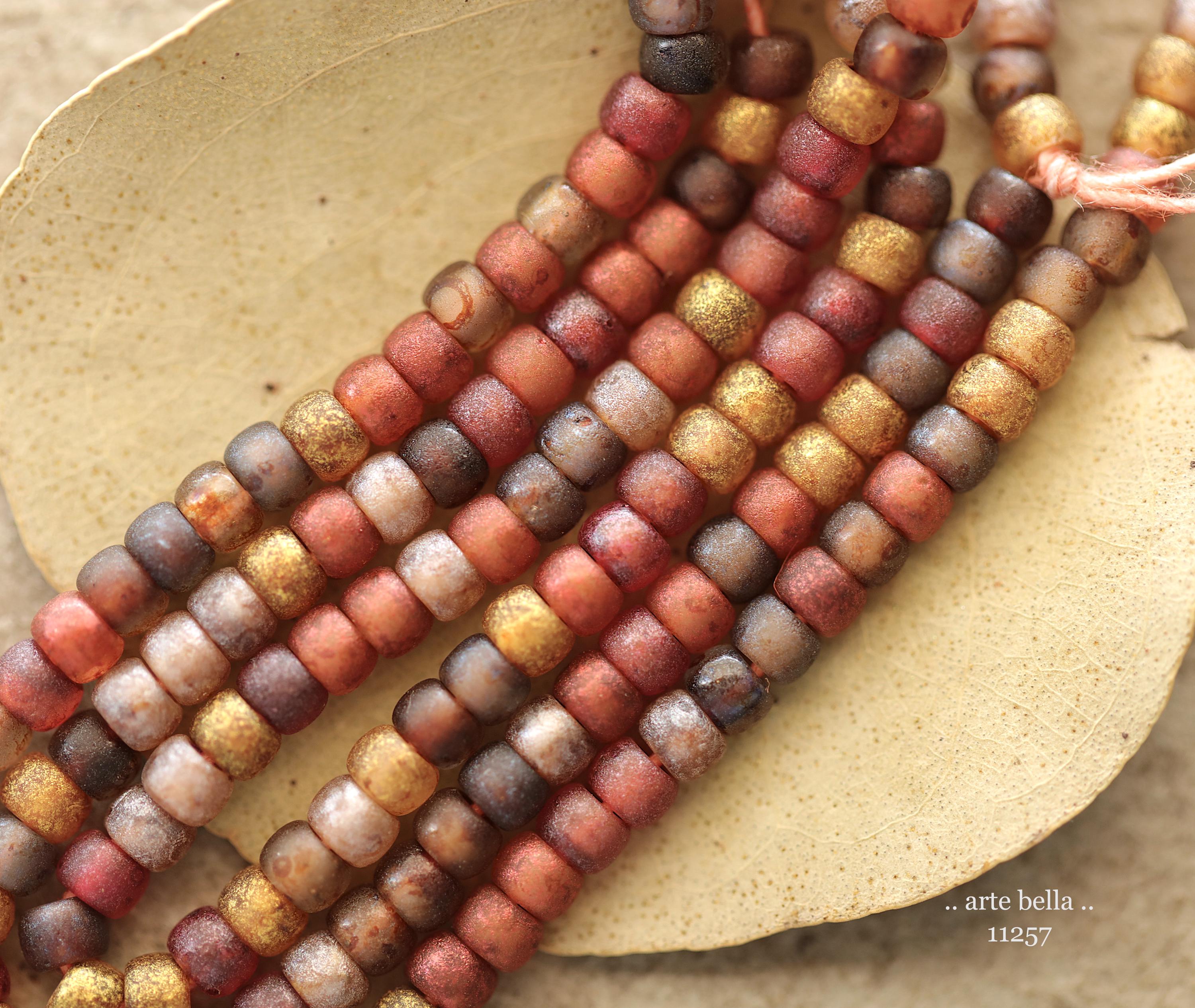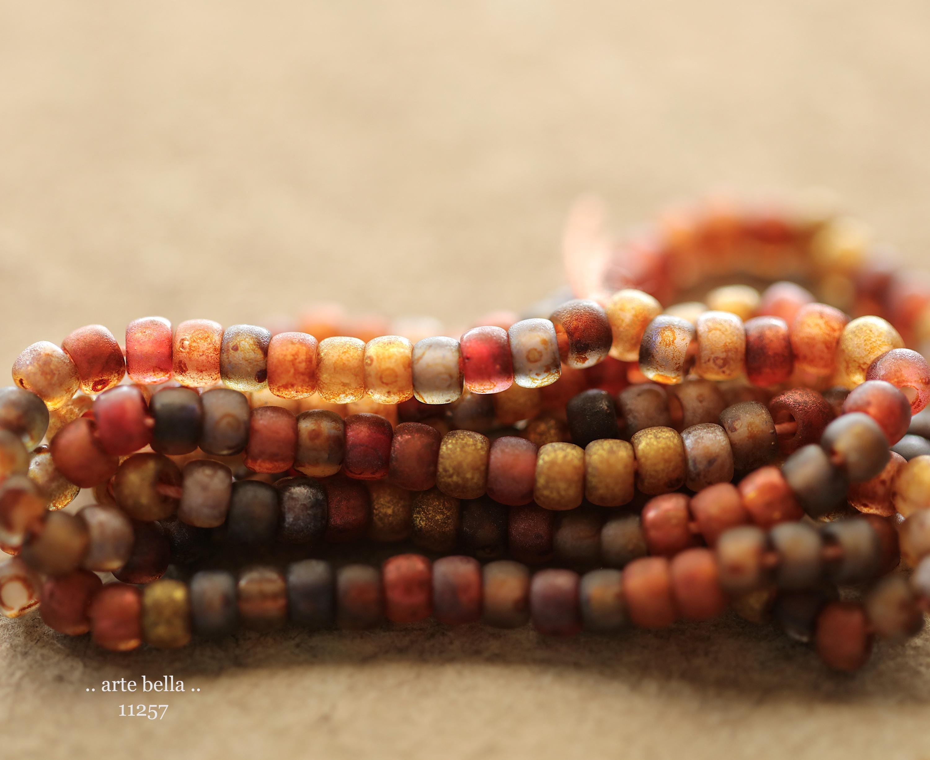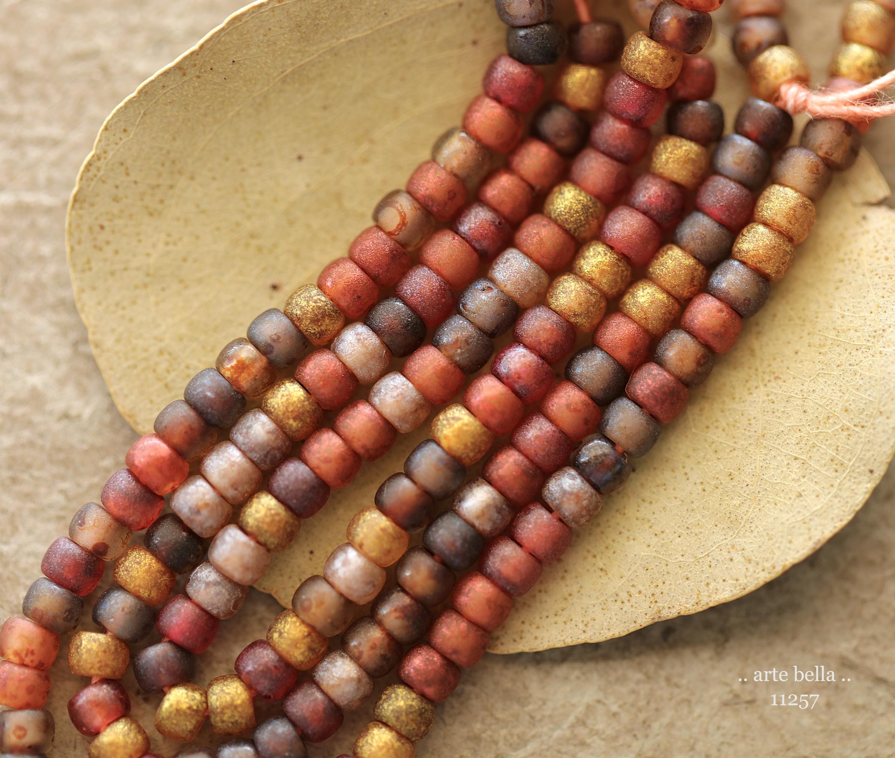 Great mix of etched matte aged seeds in various colors as noted in my pictures with an earthy Picasso and metallic luster finishes. **PLEASE NOTE: Size of the beads do vary as seen in my pictures. Please take this into account before ordering if you require beads to be a precise size for your project. Also, this is a random mix and I cannot guarantee you will receive each color pictured.**
