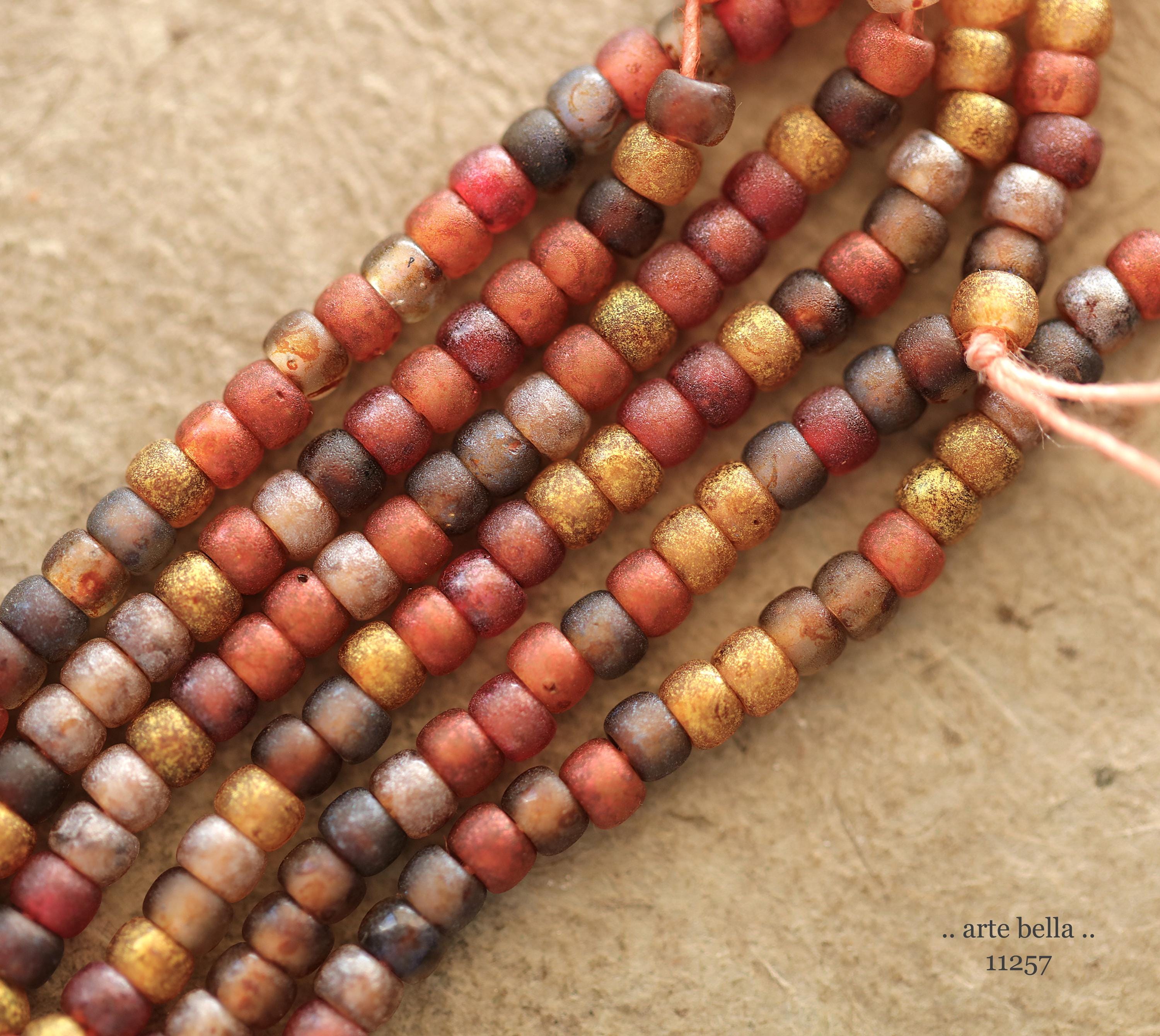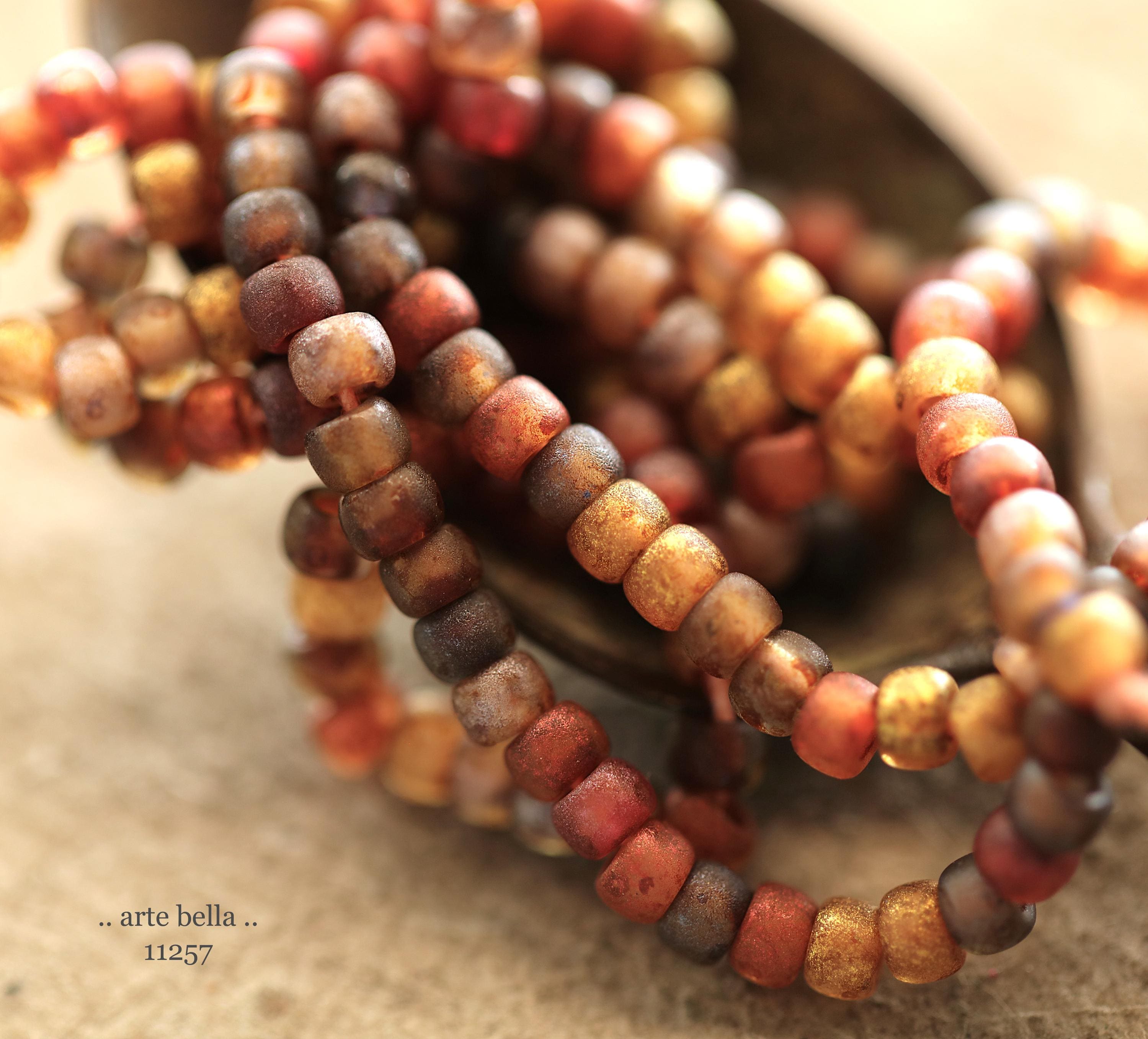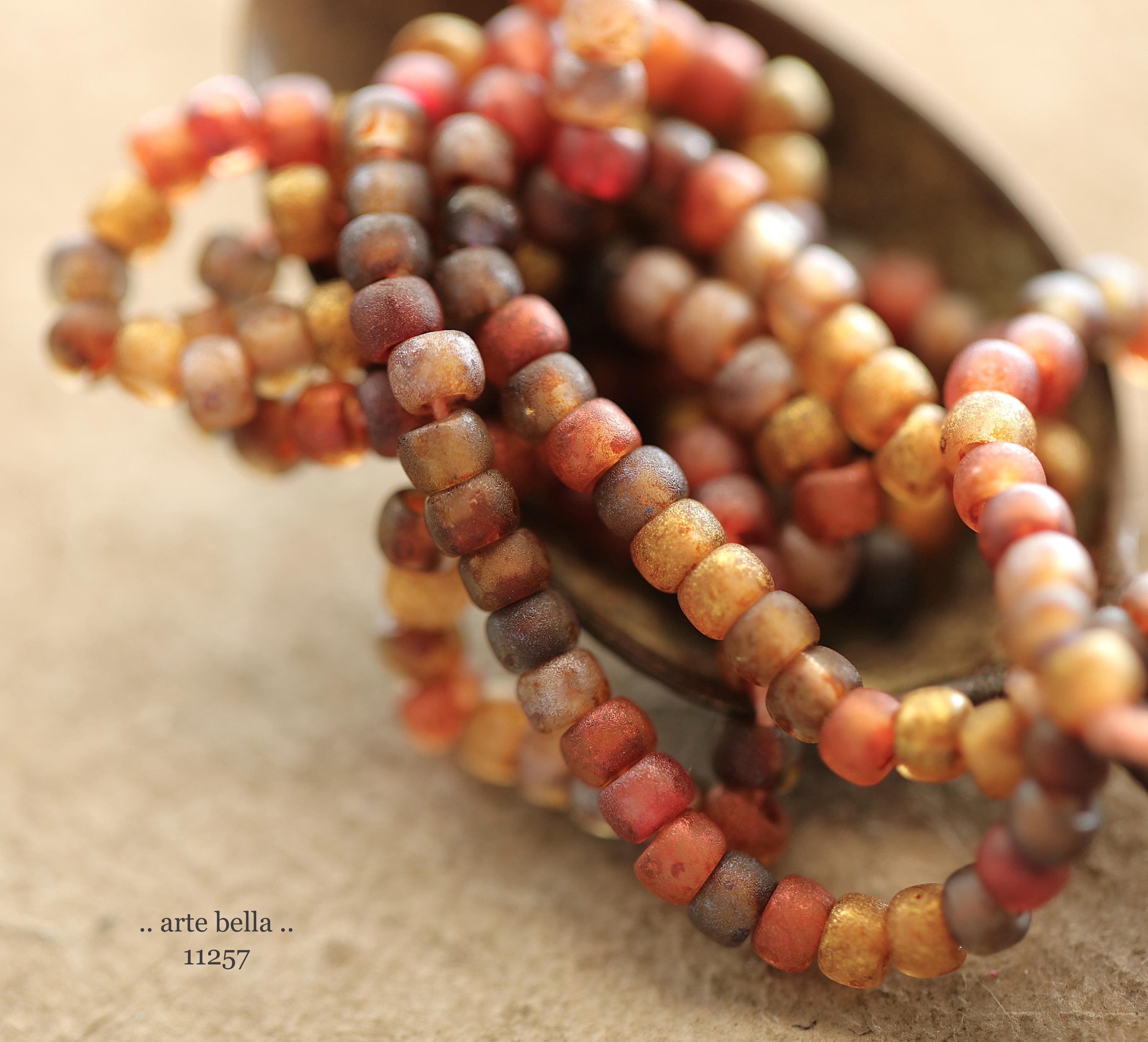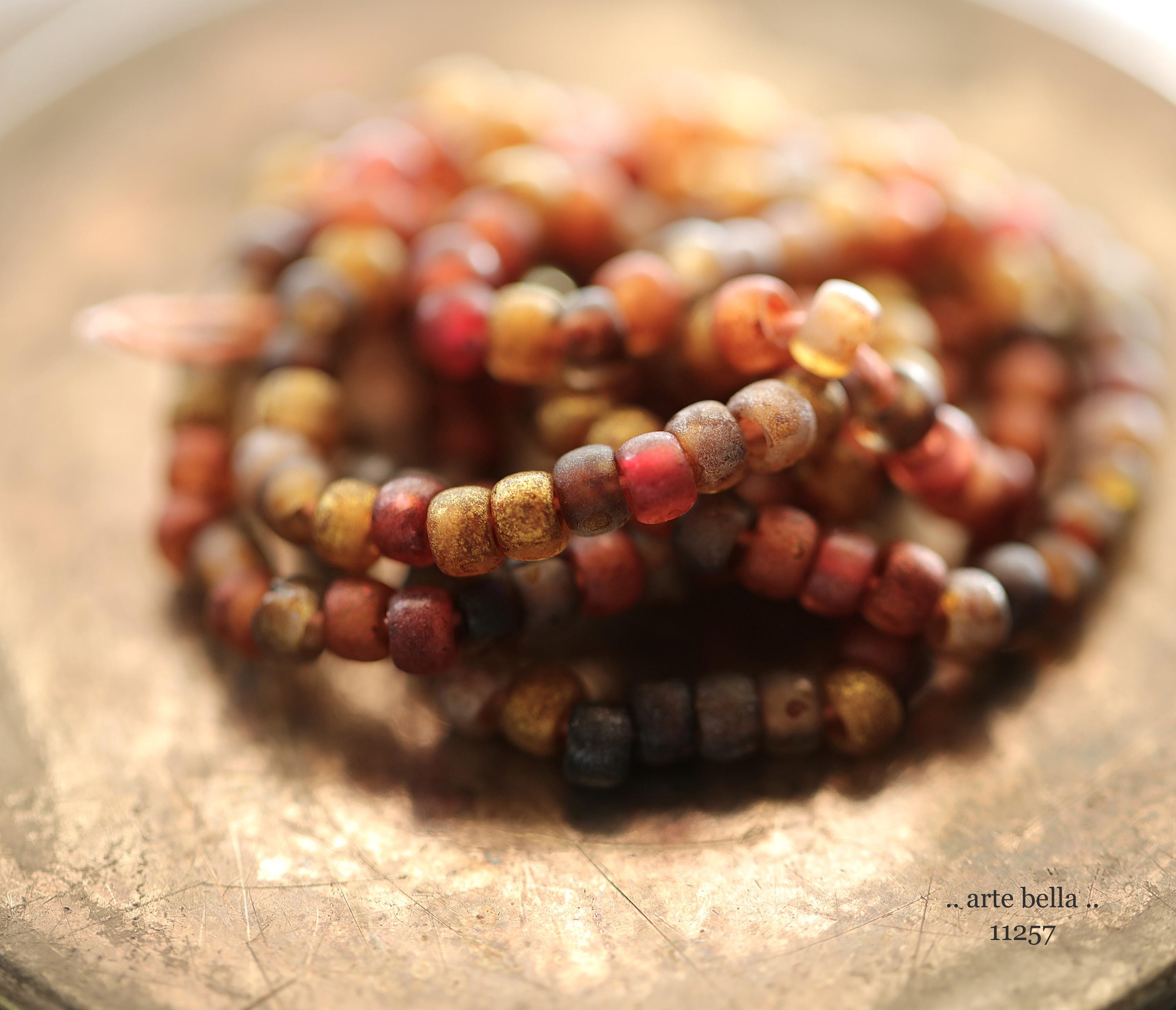 Great mix of etched matte aged seeds in various colors as noted in my pictures with an earthy Picasso and metallic luster finishes. **PLEASE NOTE: Size of the beads do vary as seen in my pictures. Please take this into account before ordering if you require beads to be a precise size for your project. Also, this is a random mix and I cannot guarantee you will receive each color pictured.**