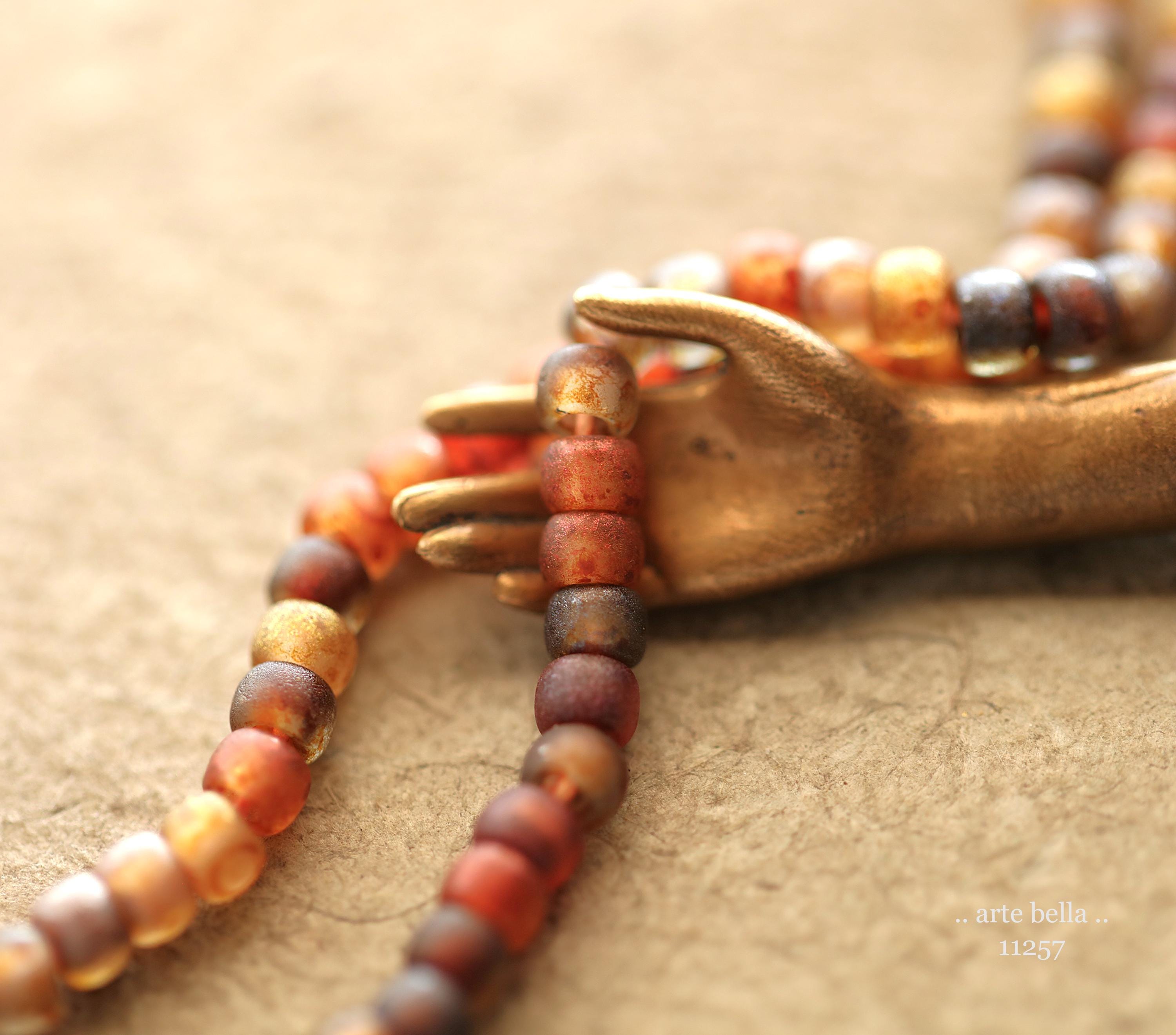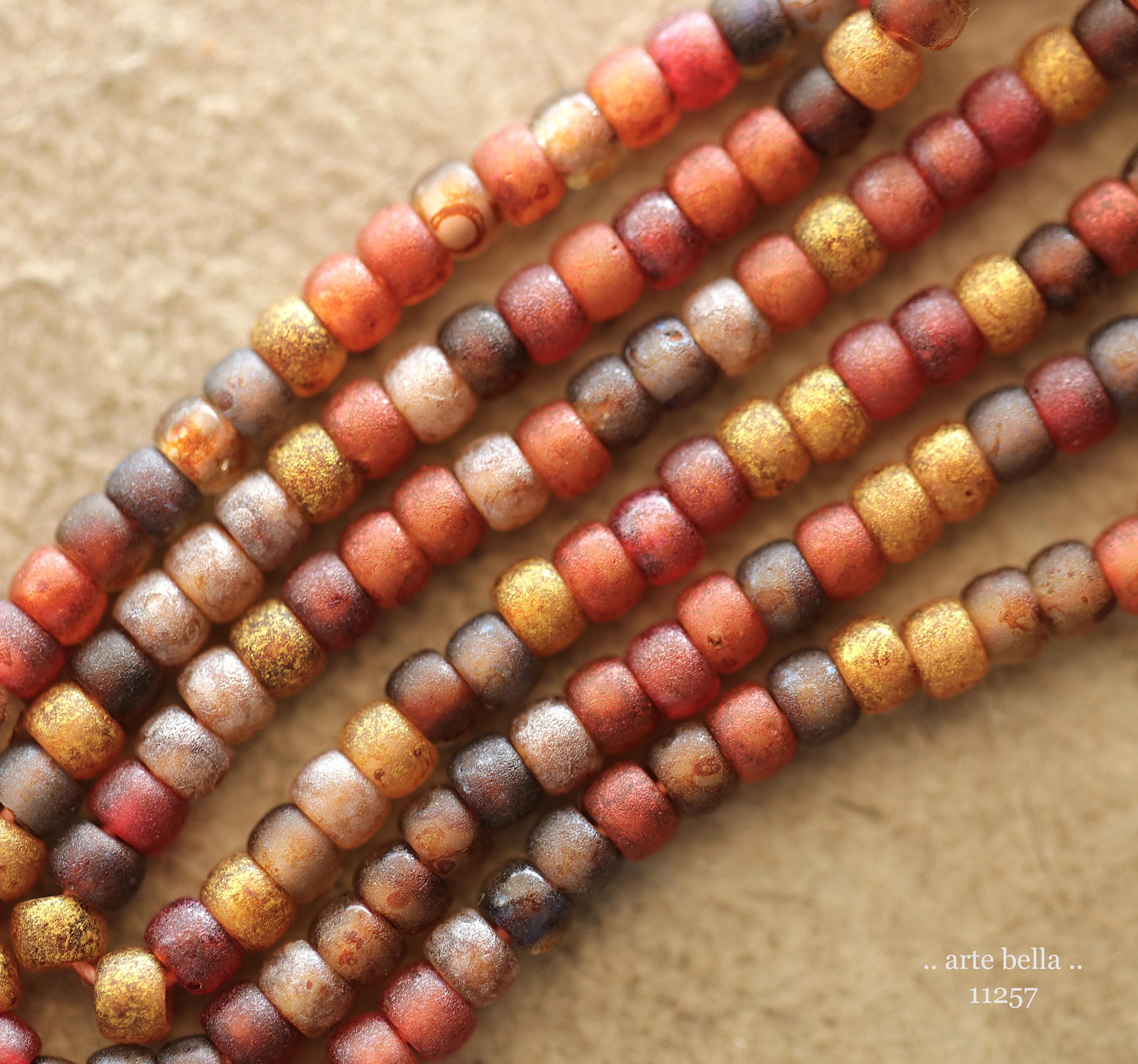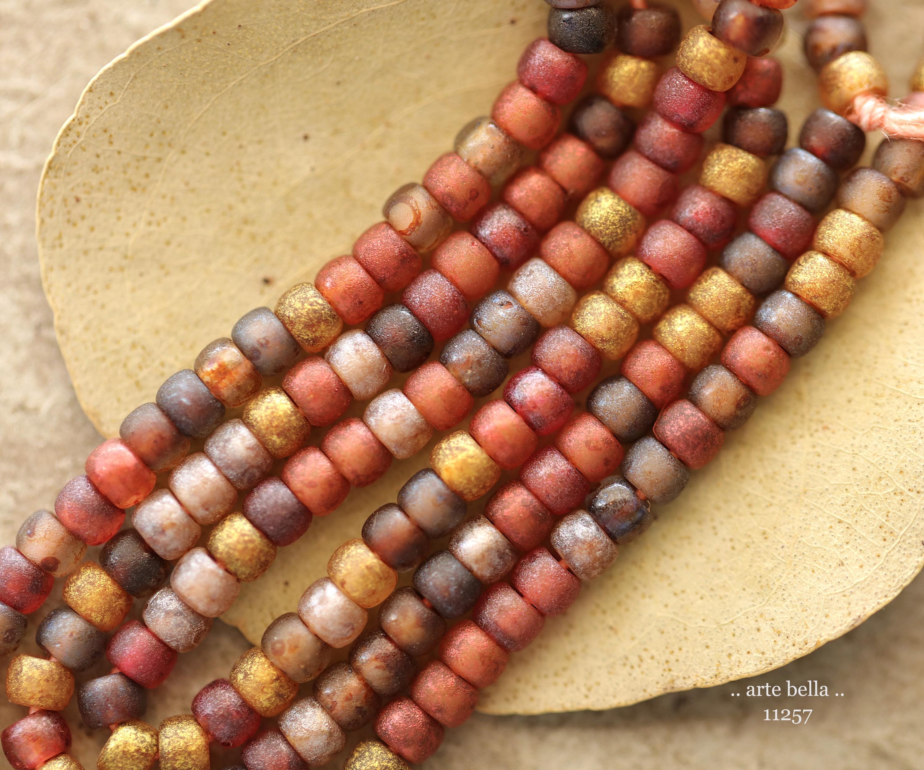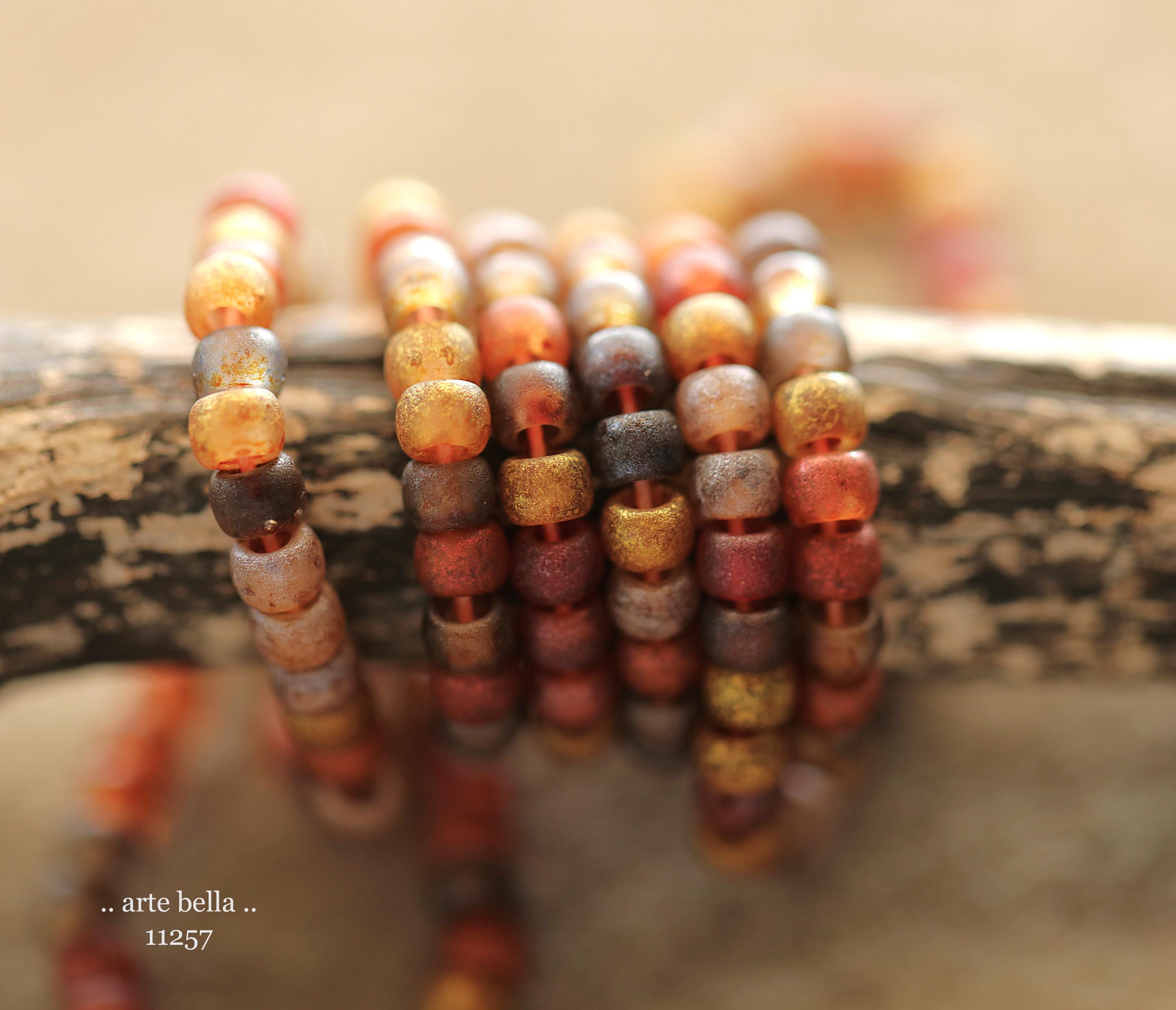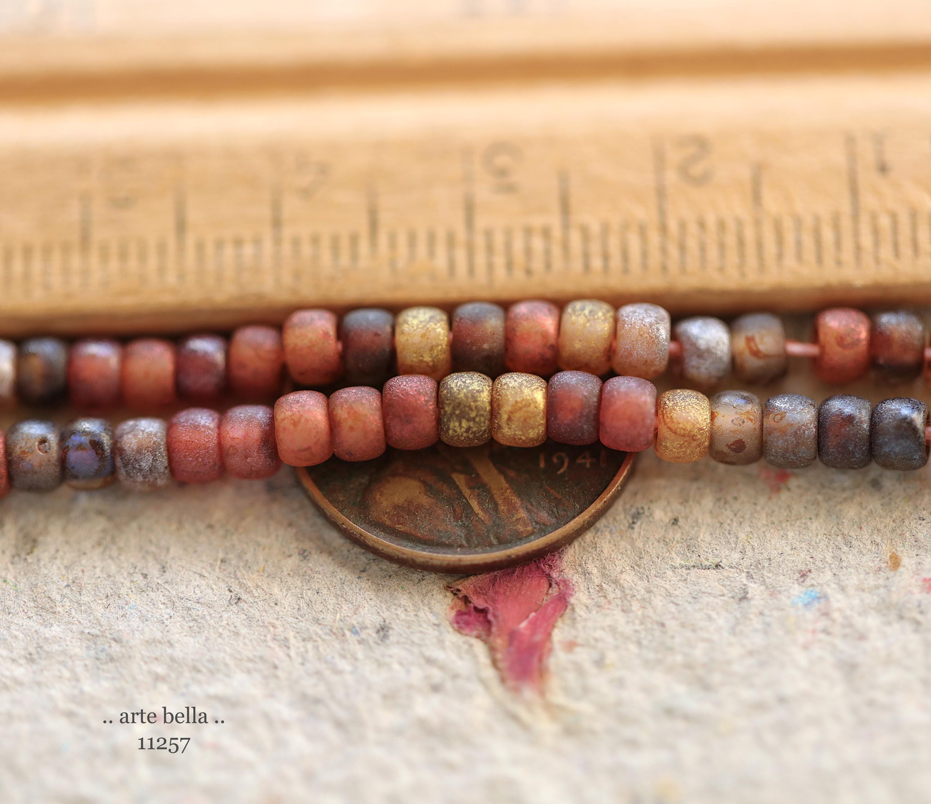 Great mix of etched matte aged seeds in various colors as noted in my pictures with an earthy Picasso and metallic luster finishes. **PLEASE NOTE: Size of the beads do vary as seen in my pictures. Please take this into account before ordering if you require beads to be a precise size for your project. Also, this is a random mix and I cannot guarantee you will receive each color pictured.**