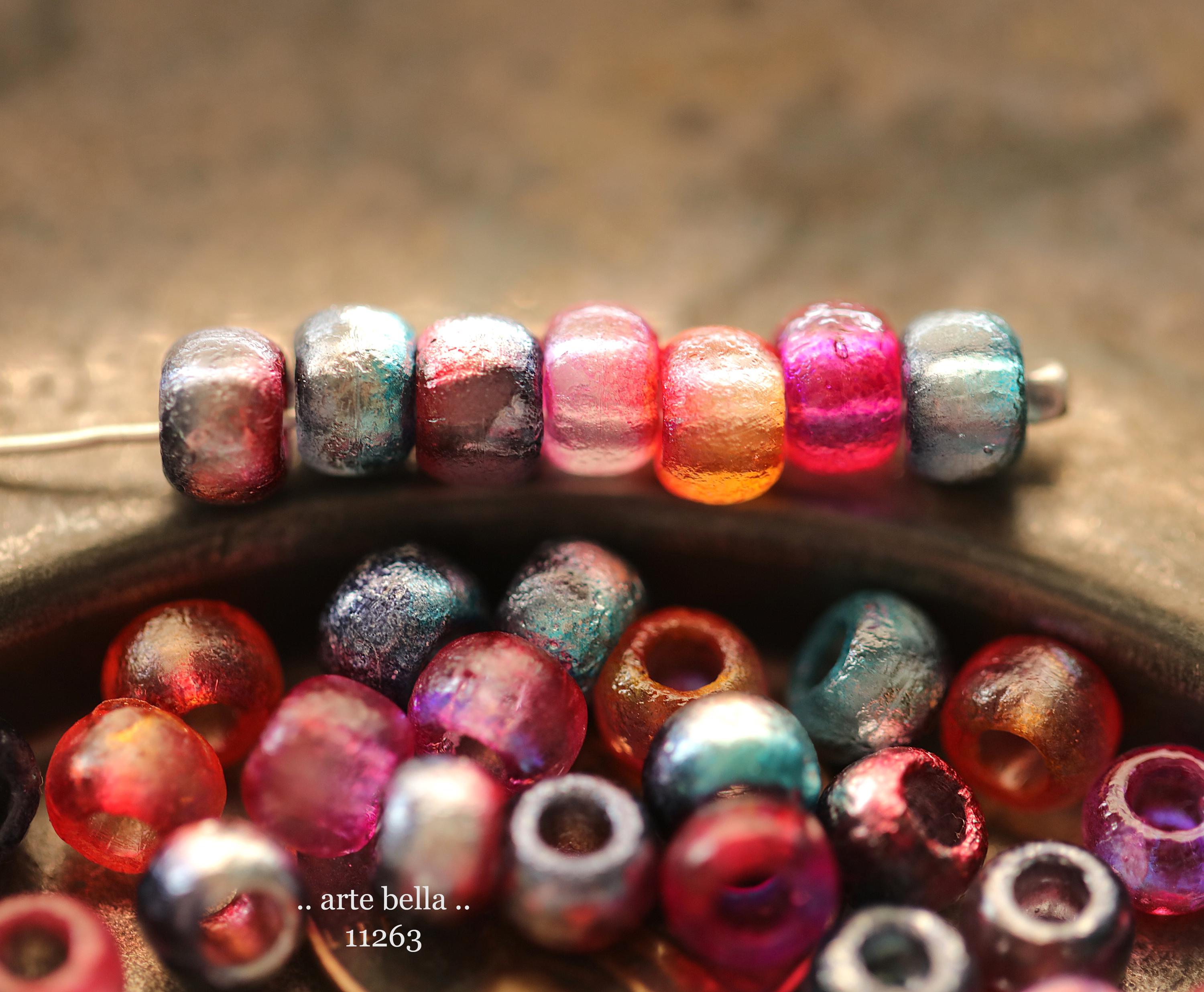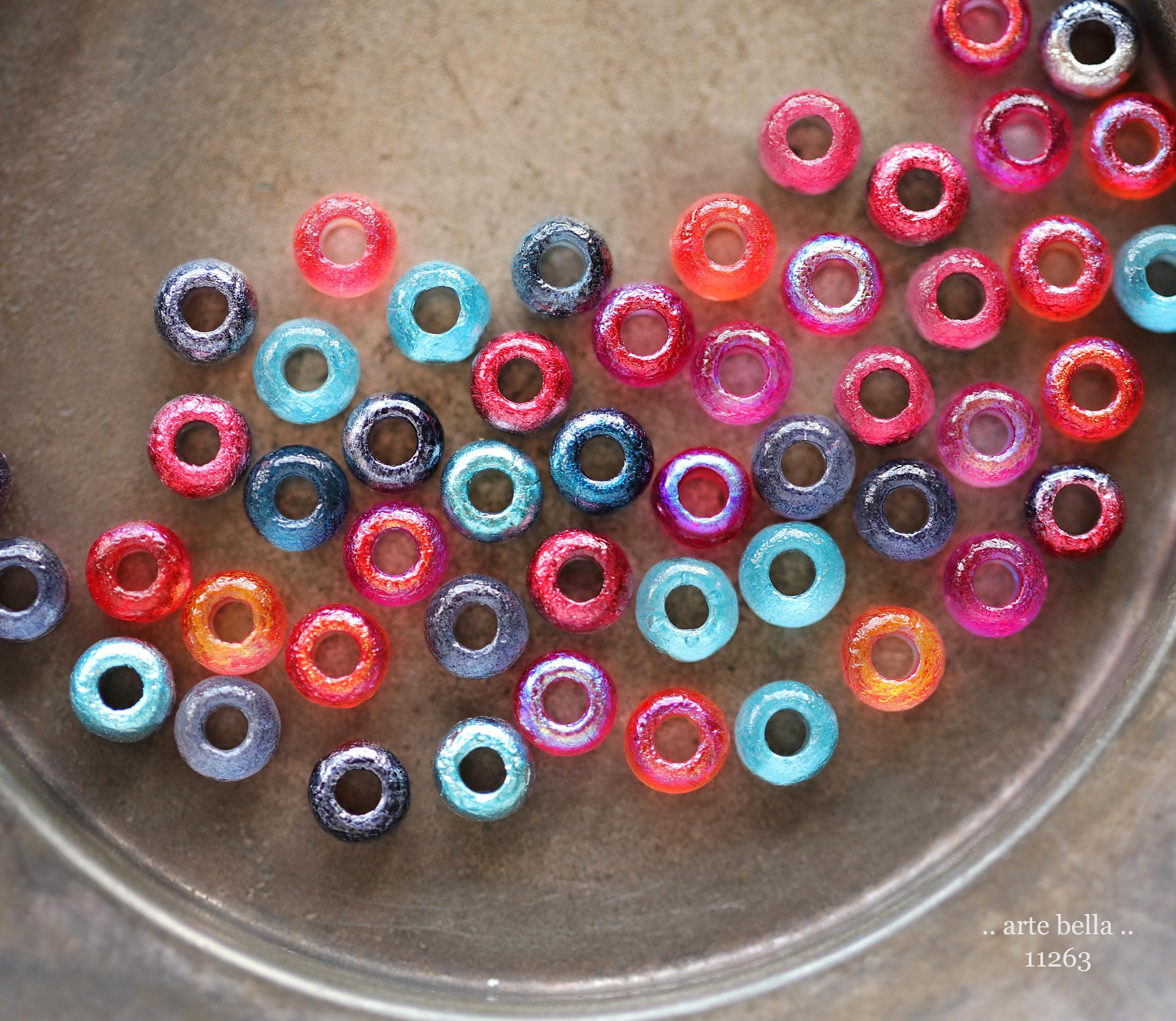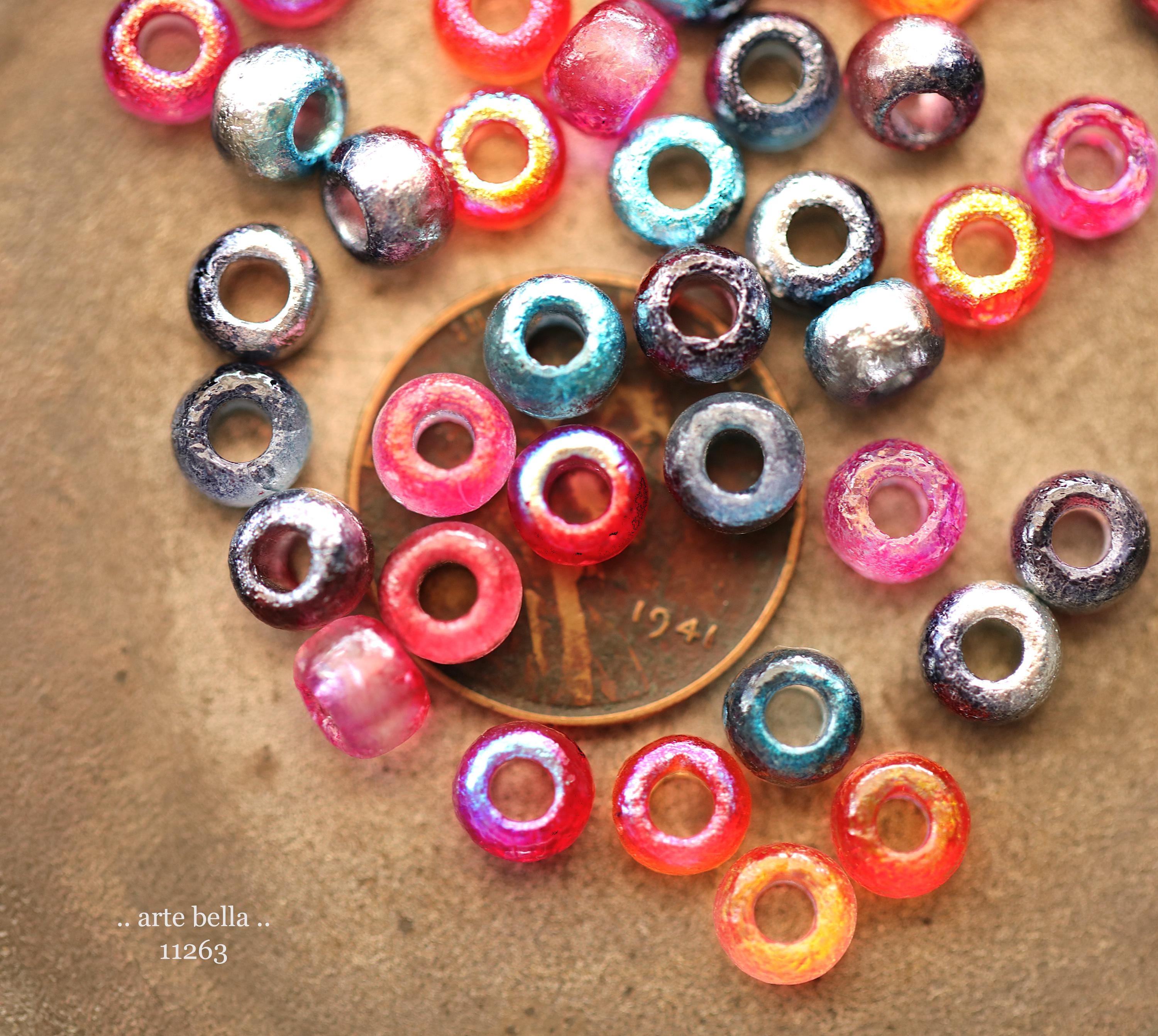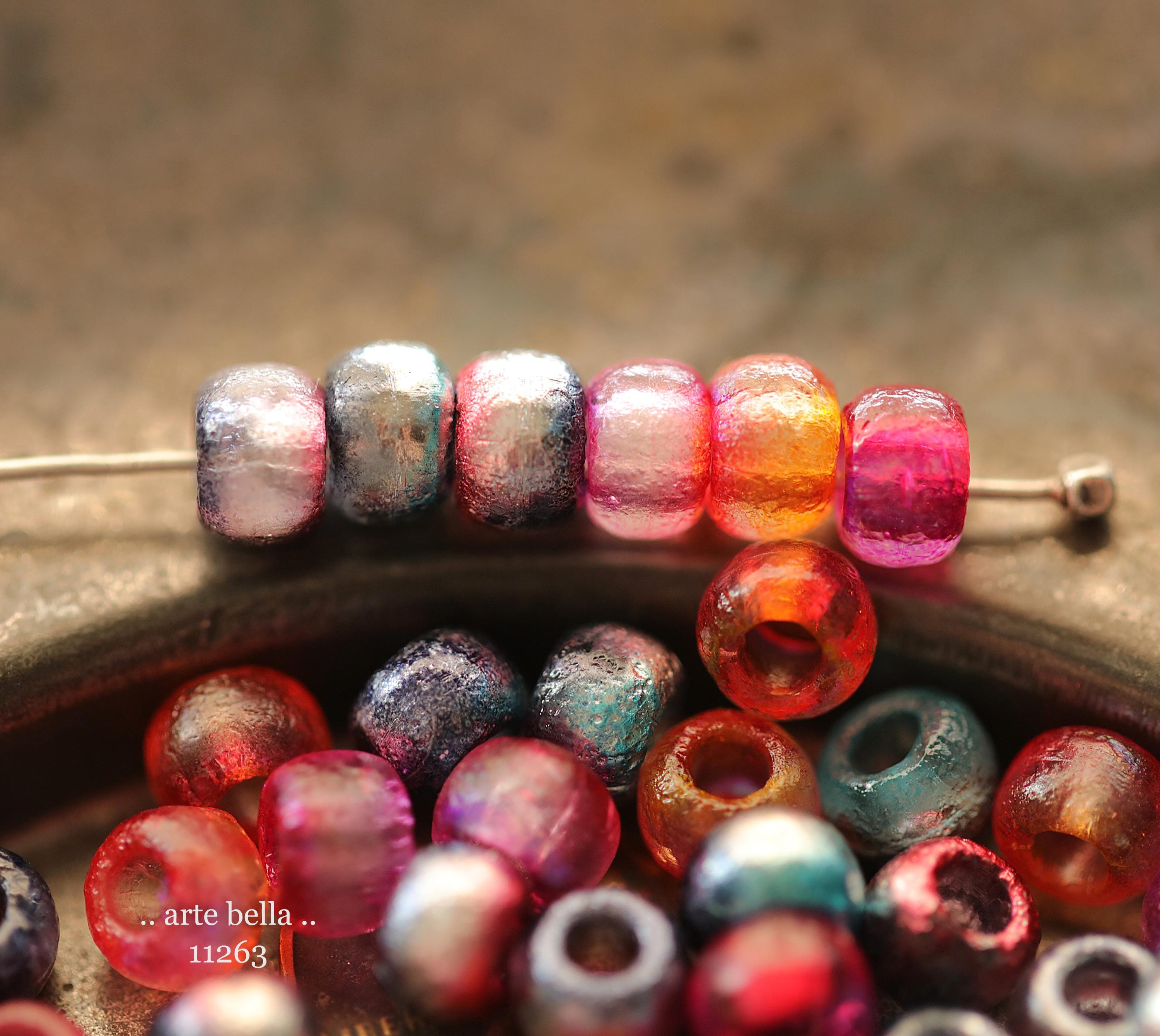 Lovely bright mixed seed beads in a lovely array of colors as seen in my pictures .. various finishes in rustic etched and metallic luster. **PLEASE NOTE: Size of the beads do vary as seen in my pictures. Please take this into account before ordering if you require beads to be a precise size for your project. Also, this is a random mix and I cannot guarantee you will receive each color pictured.**