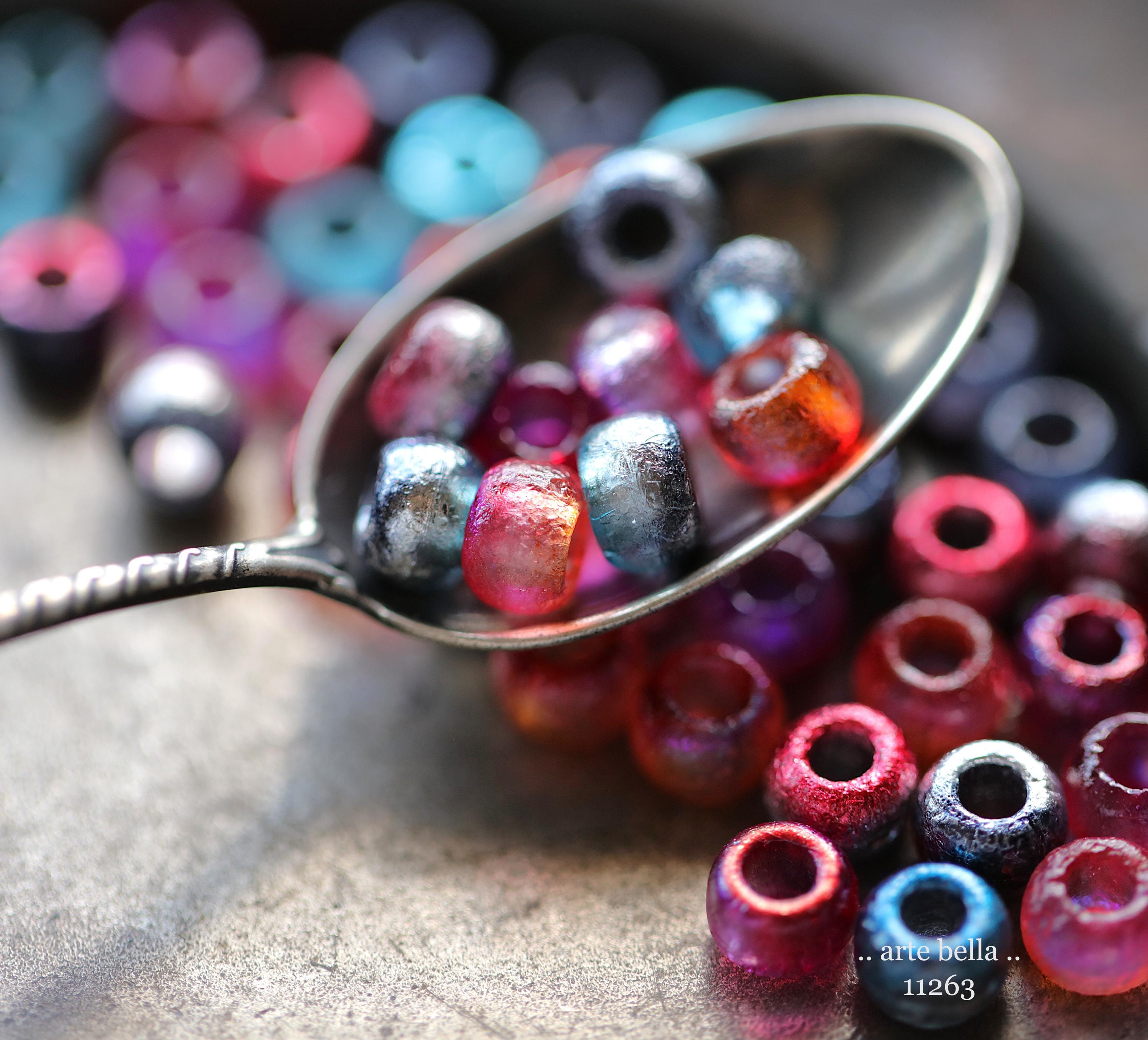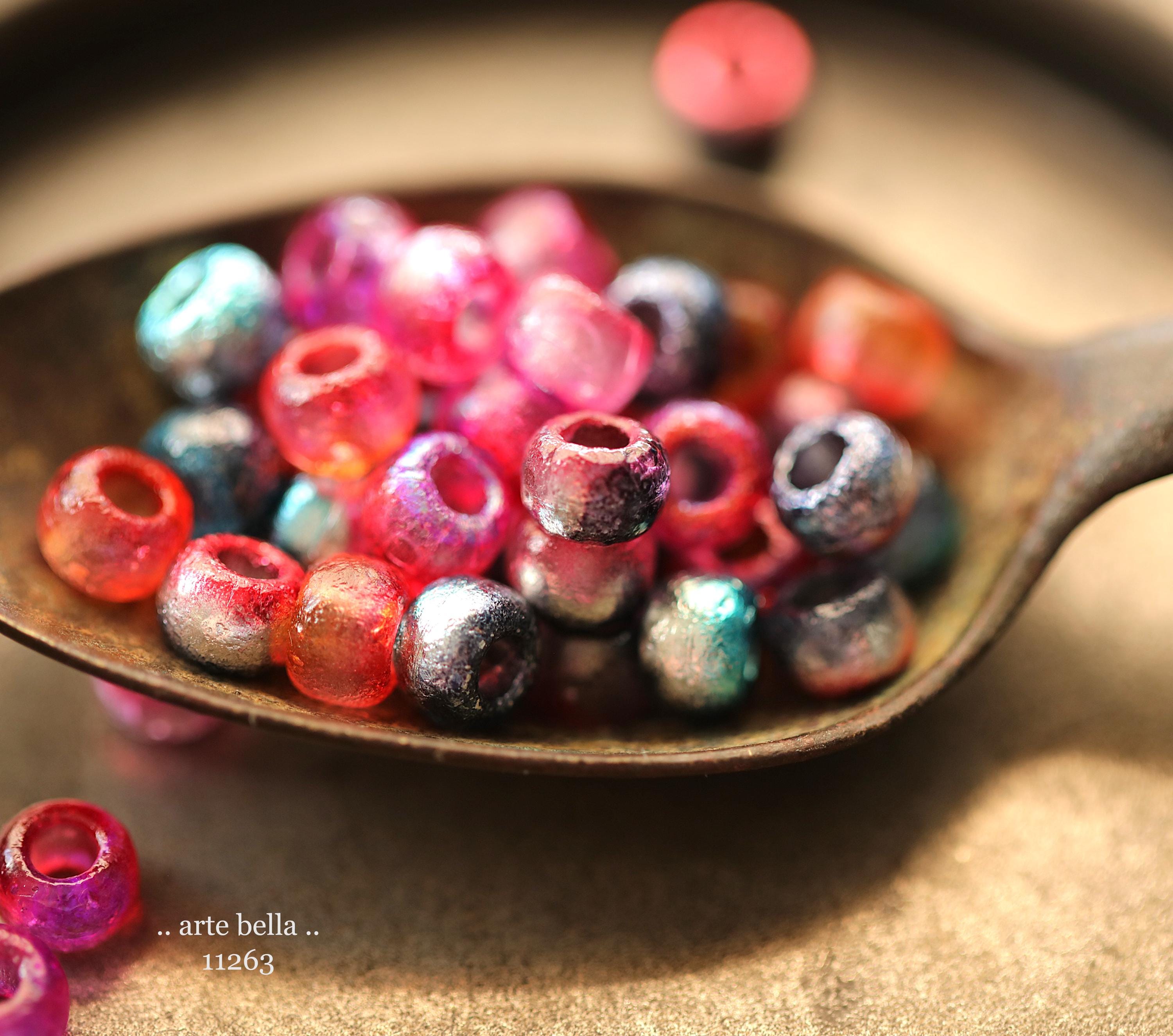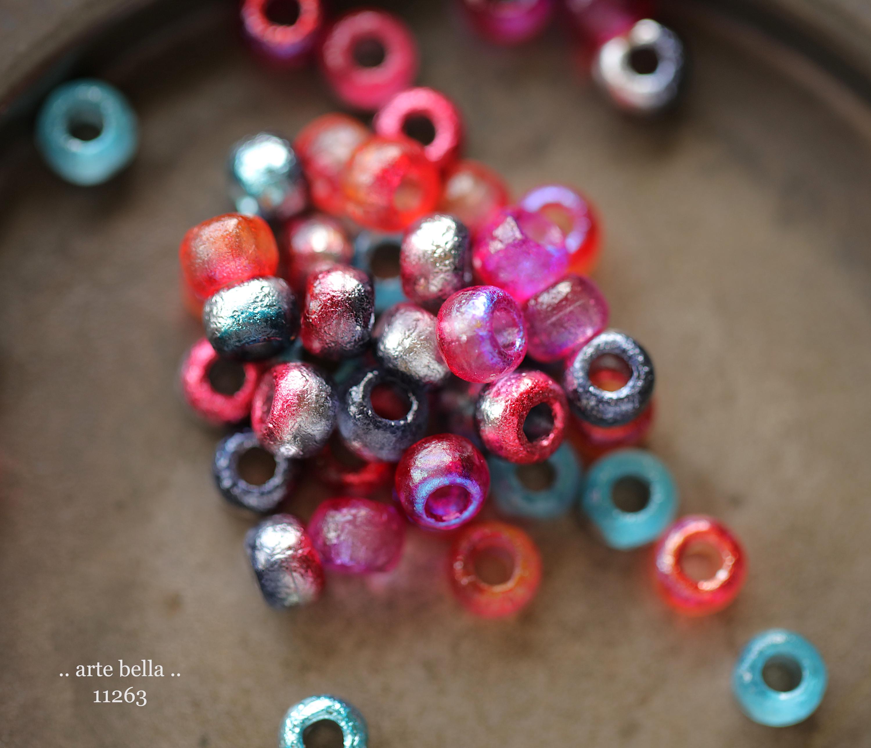 New .. PRINCESS PETUNIA SEEDS .. 50 Etched Czech Glass Seed Bead Mix Size 2/0 (11263-50) .. jewelry supplies