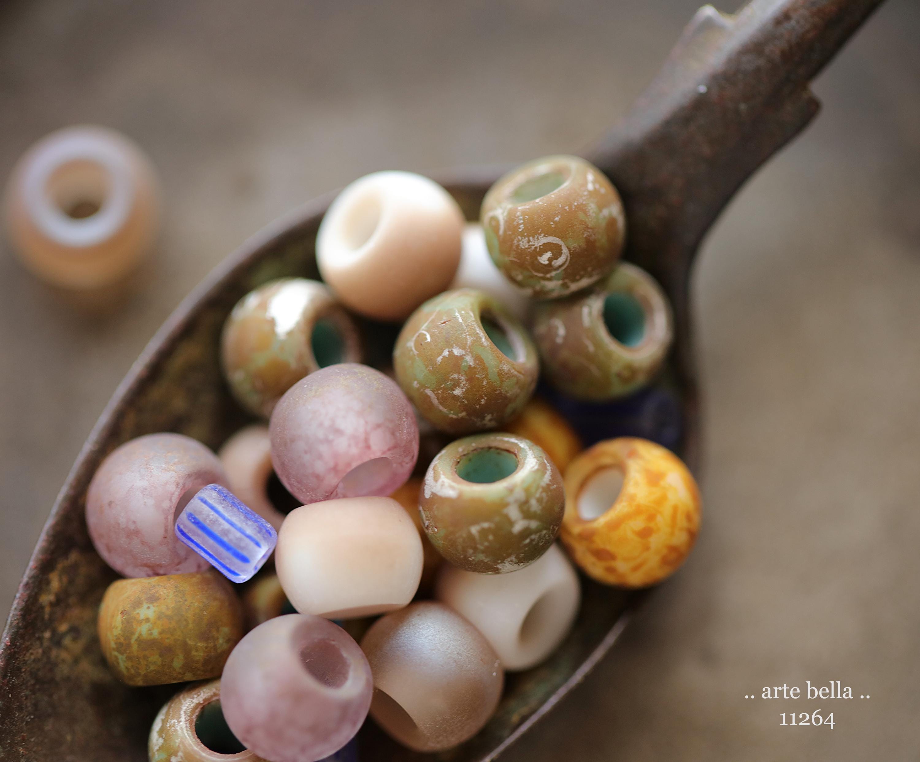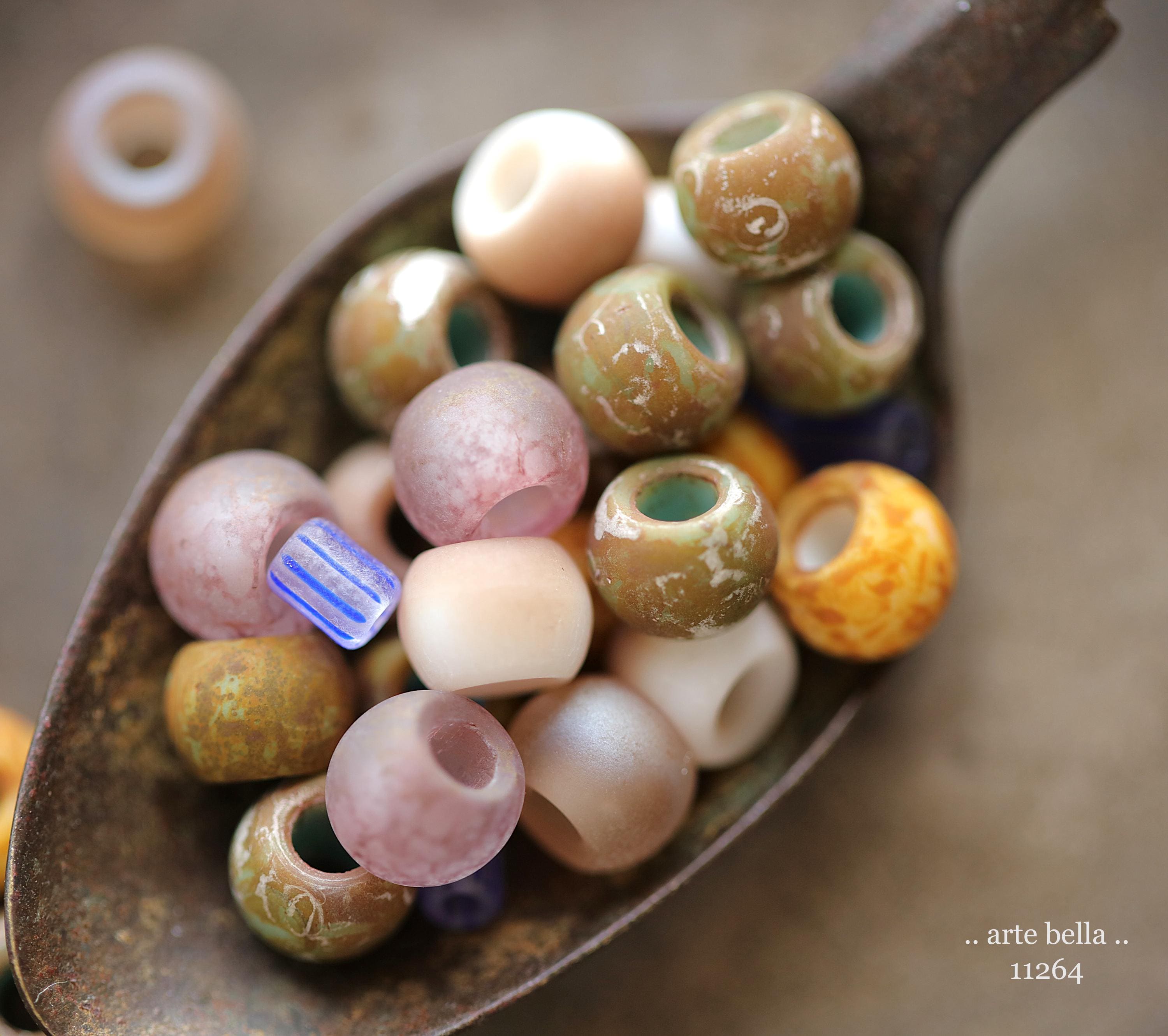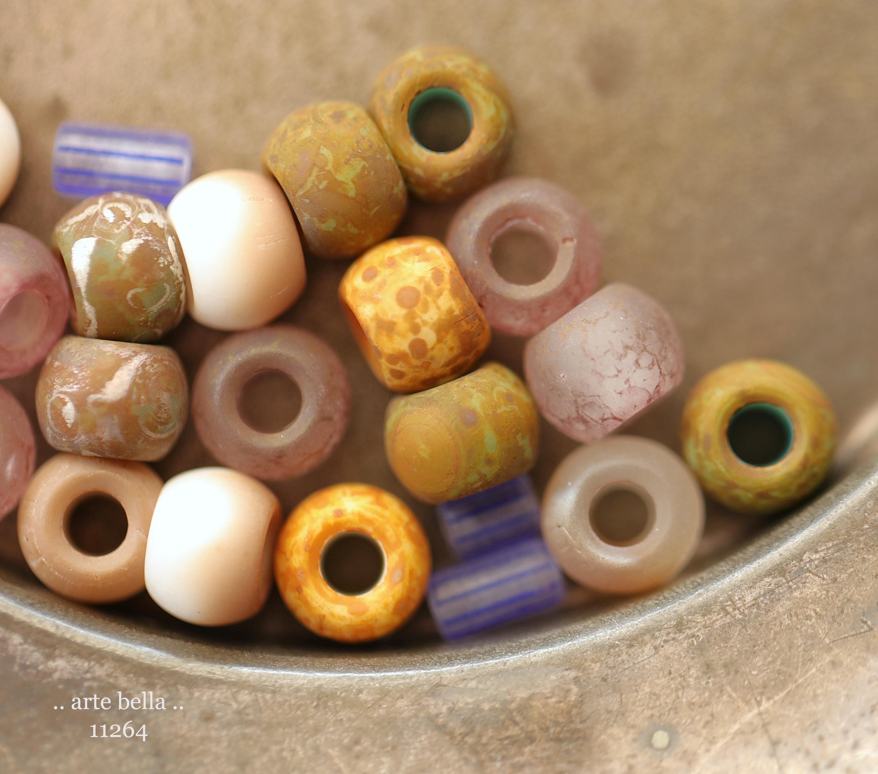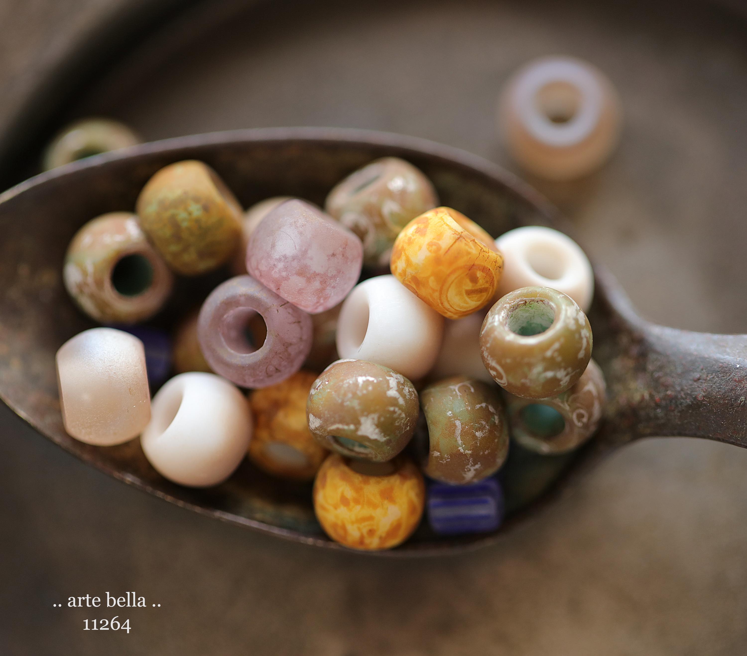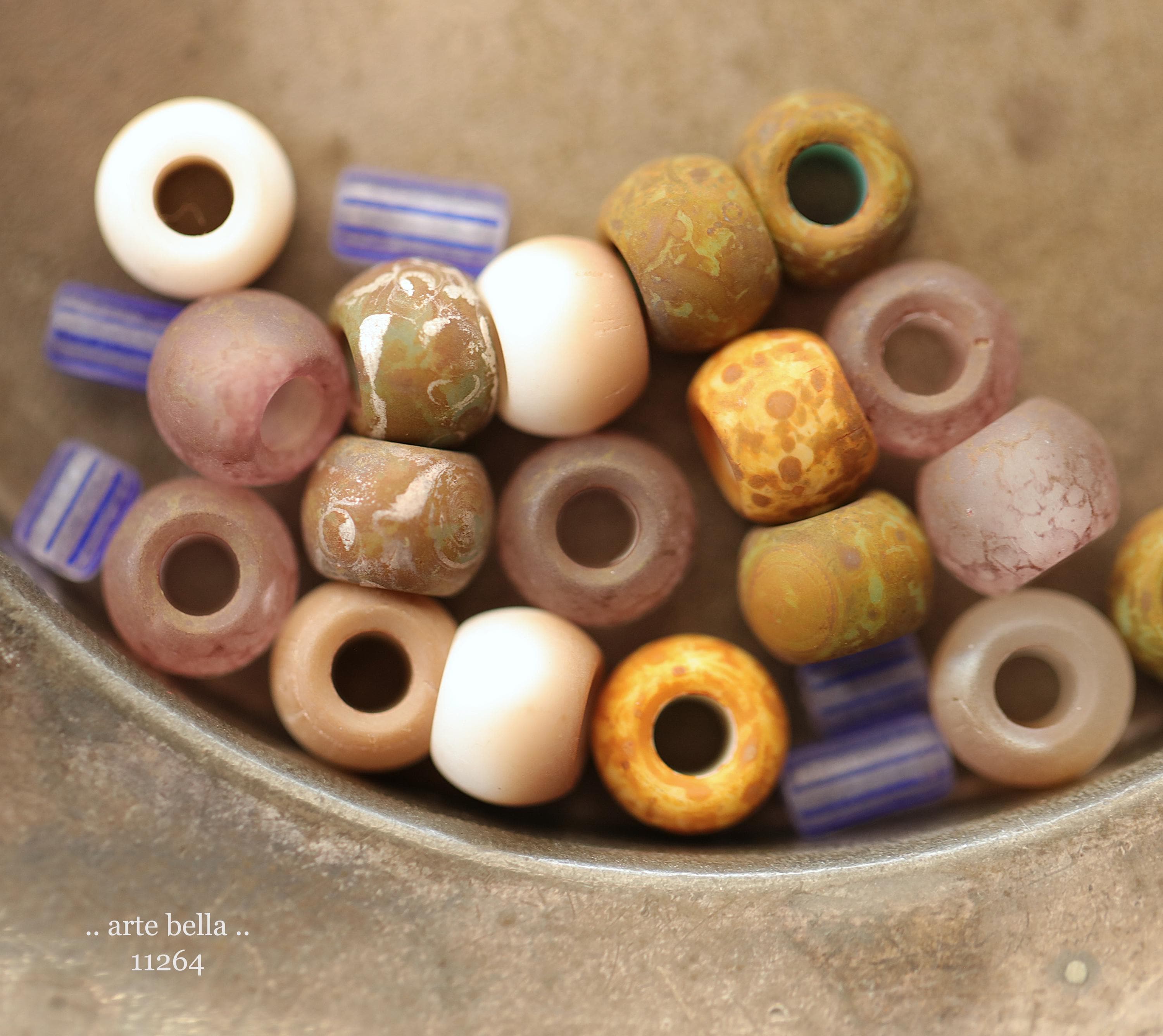 Great mix of matte/etched seed beads and small tubes/bugles in translucent and opaque glass in colors shown with earthy Picasso, metallic luster and striped tubes. **PLEASE NOTE: Size of the beads do vary, please take this into account before ordering if you require beads to be a precise size for your project. Also, this is a random mix and I cannot guarantee you will receive each color pictured.**
