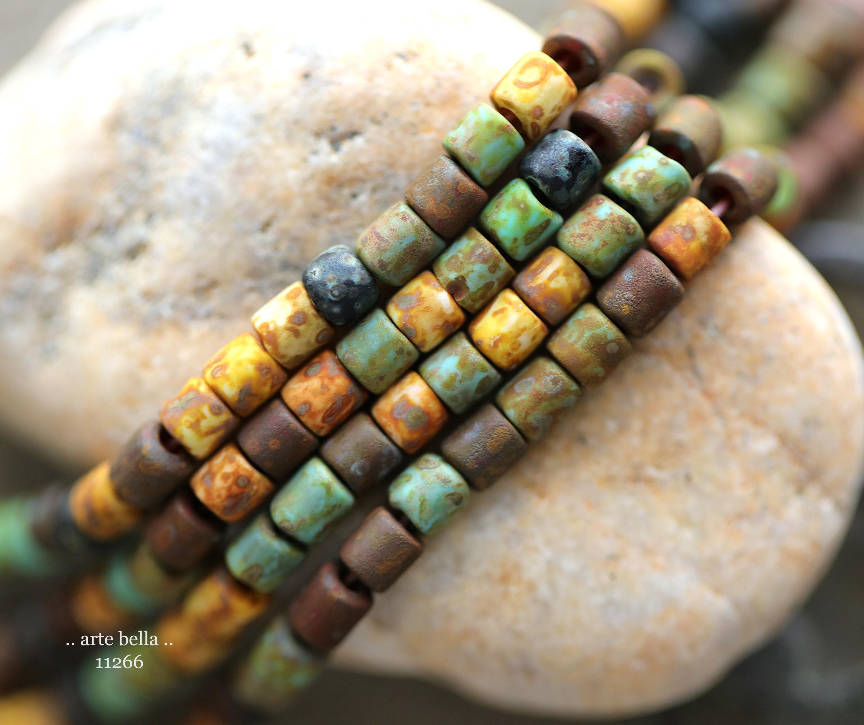 New .. MATTE LOVE MADLY No. 11266 .. 20" Premium Matte Picasso Czech Glass Aged Tube Bead Mix Size 6/0 (11266-st) .. jewelry supplies