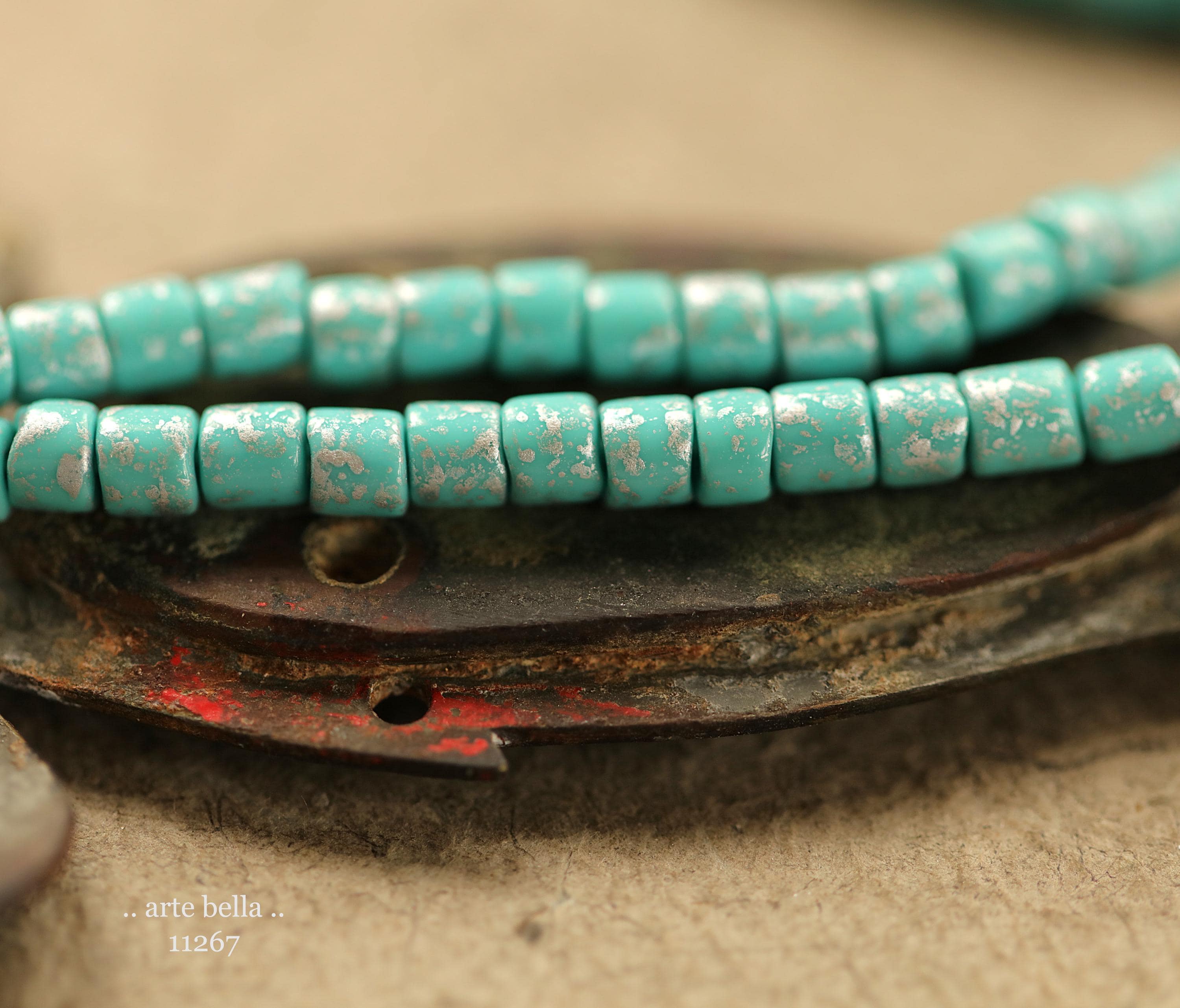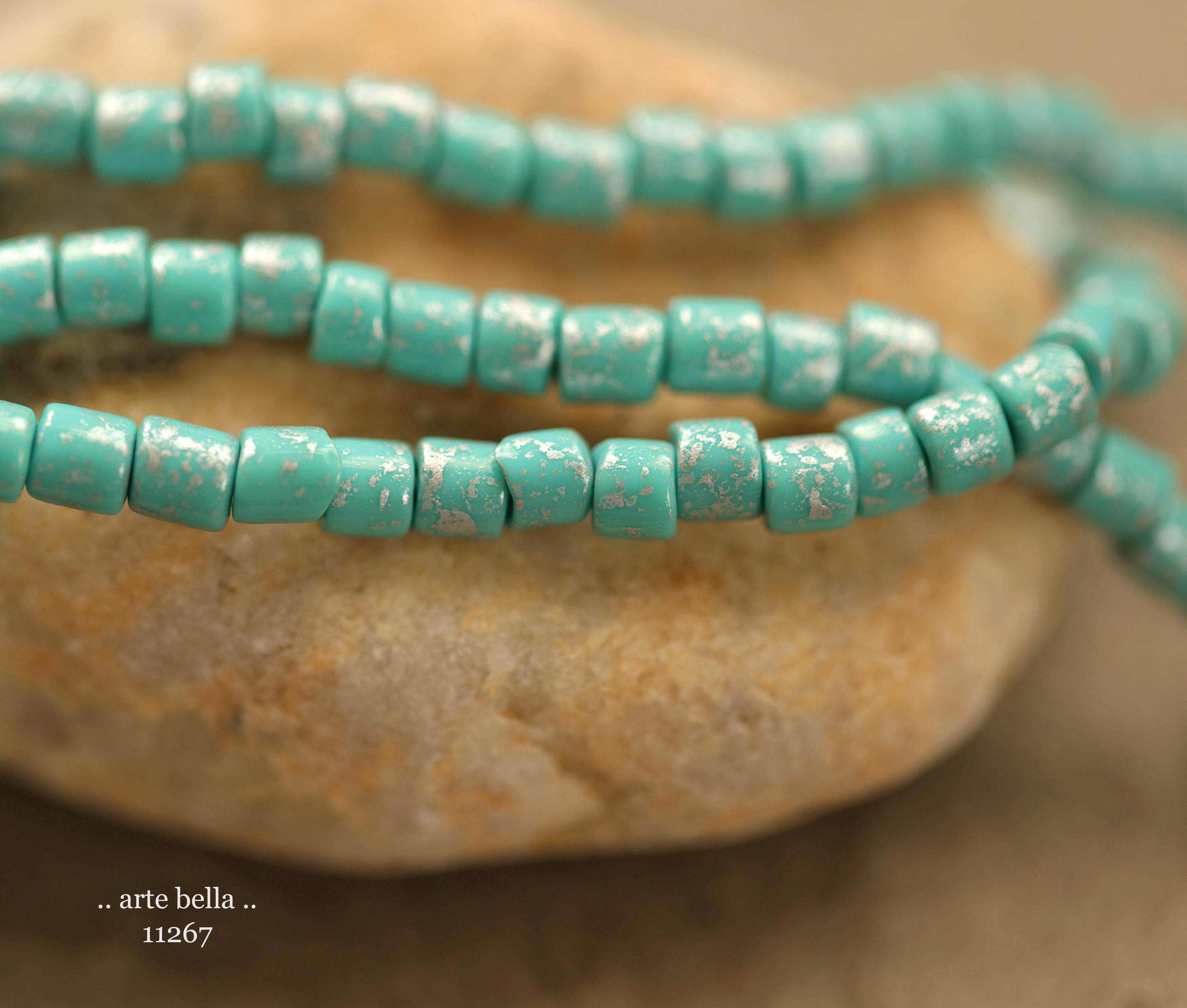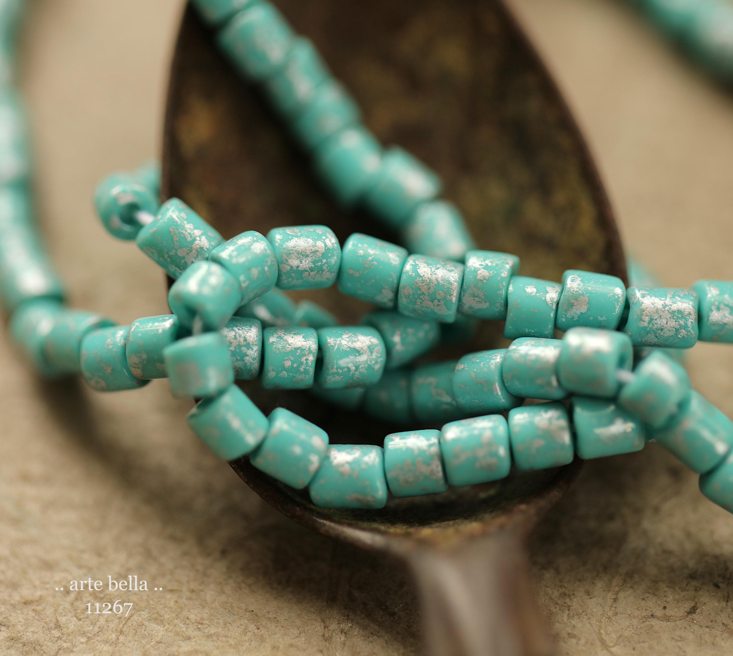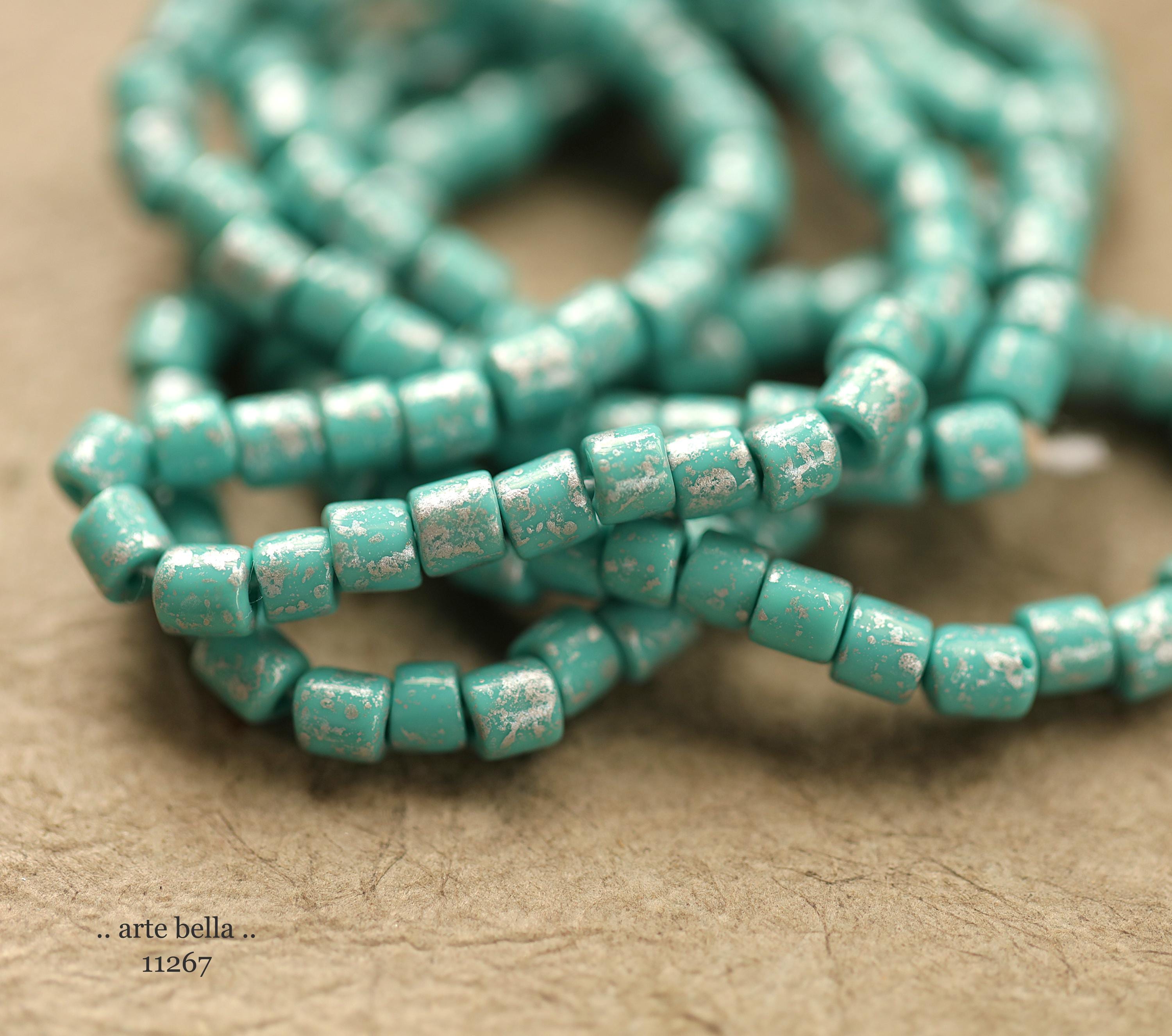 New .. SILVERED TURQUOISE TUBES .. 20" Premium Czech Glass Metallic Tube Bead Mix 4mm (11267-st) .. jewelry making supplies