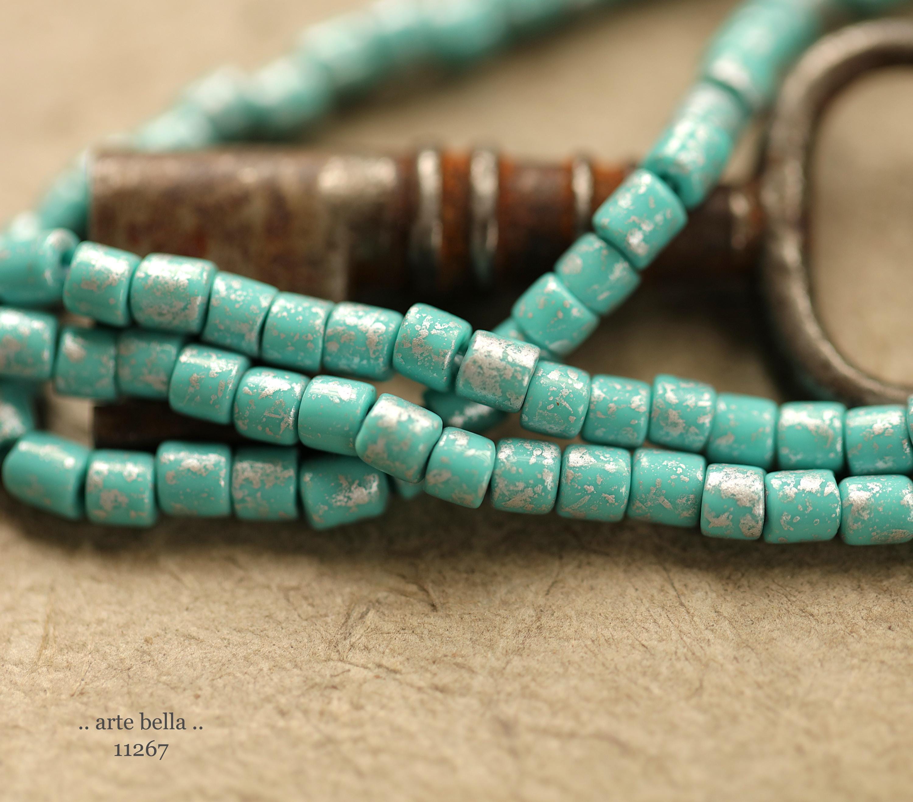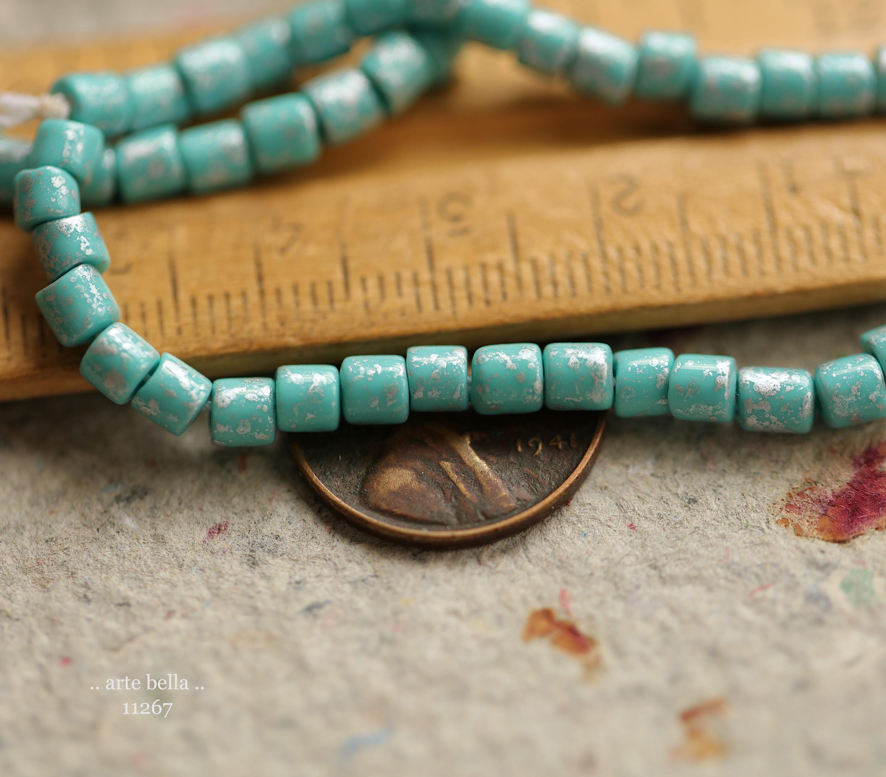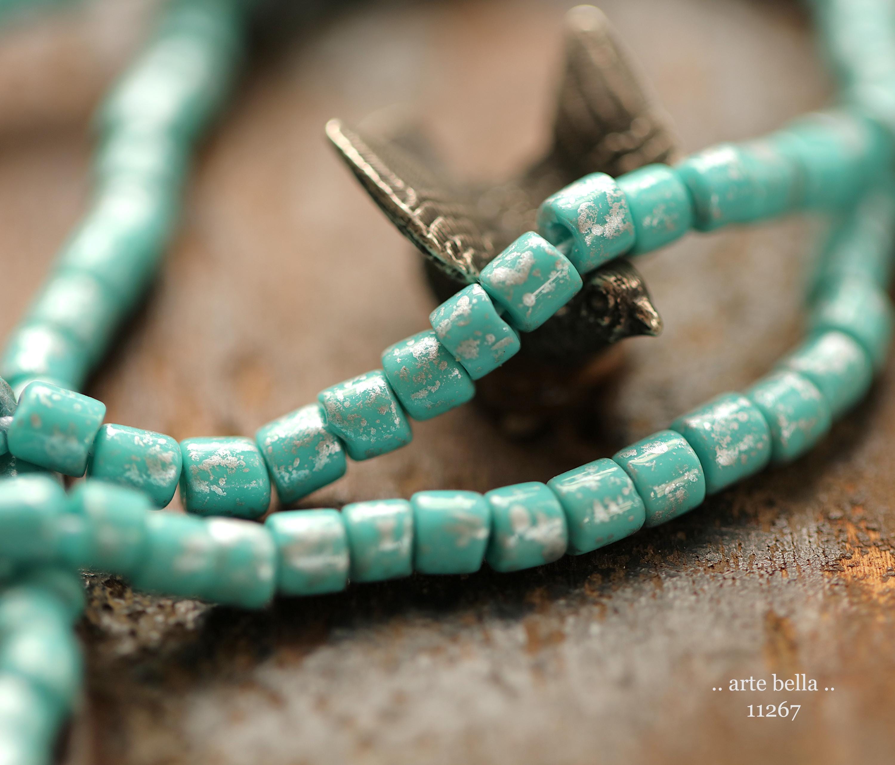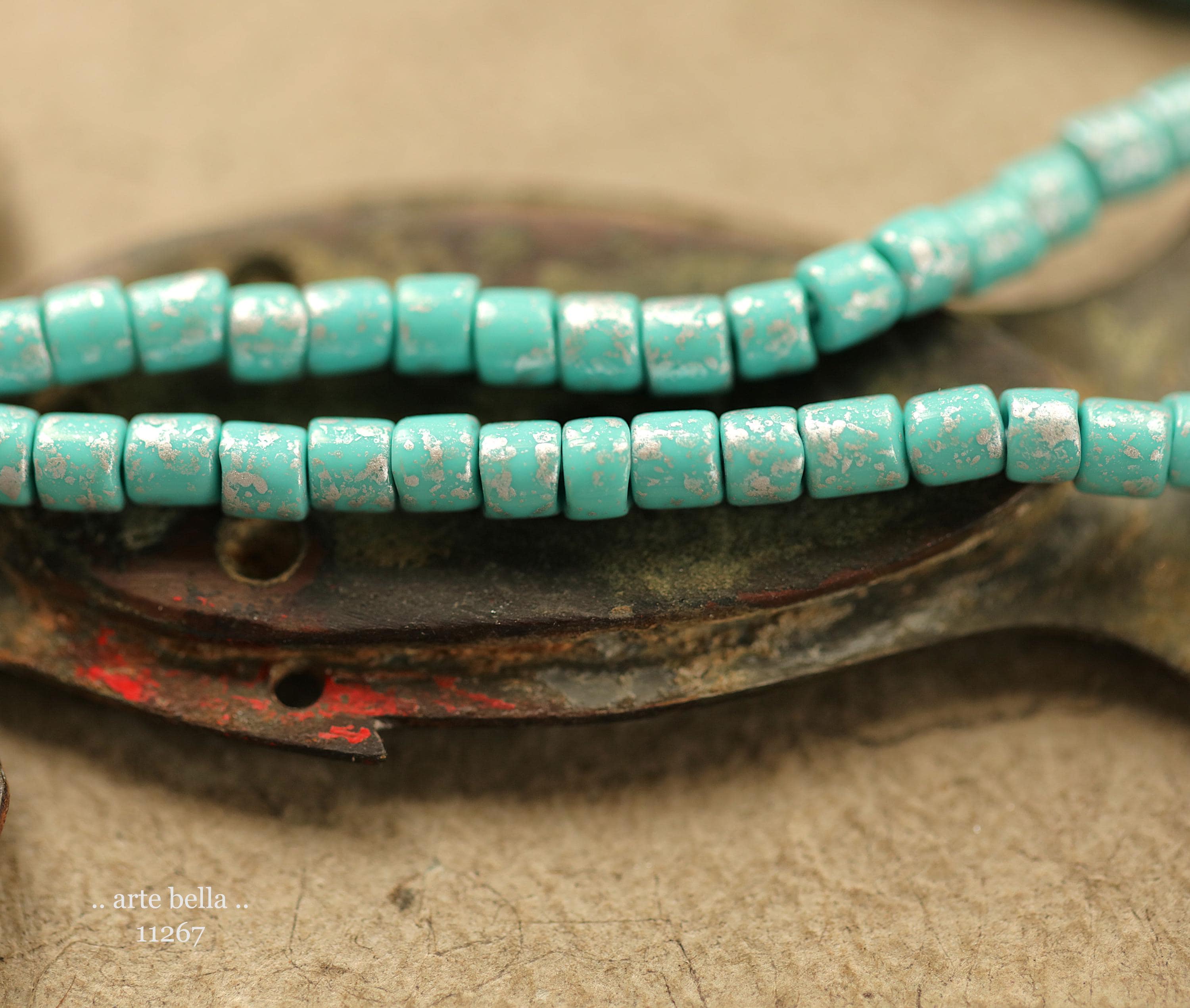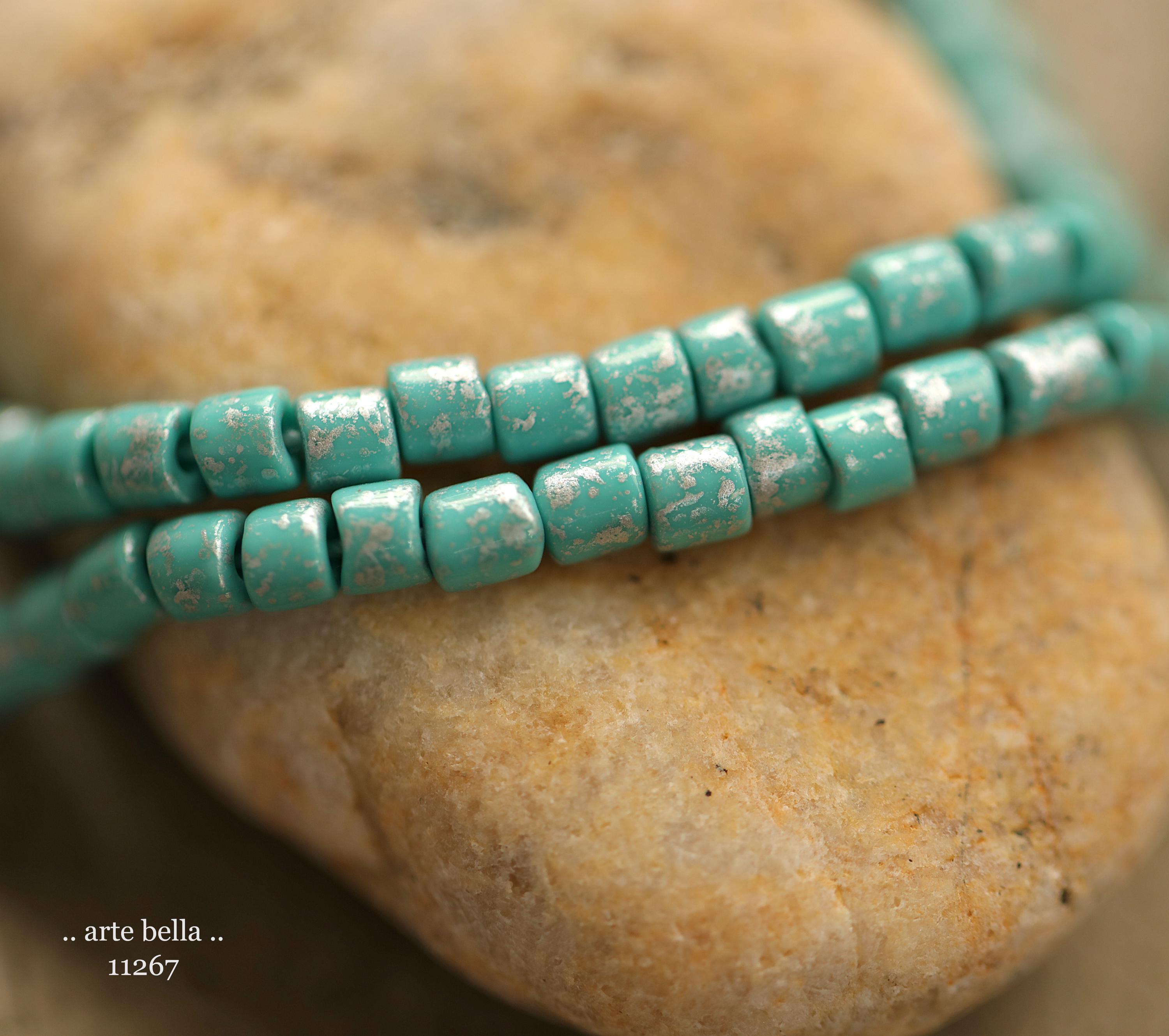 New .. SILVERED TURQUOISE TUBES .. 20" Premium Czech Glass Metallic Tube Bead Mix 4mm (11267-st) .. jewelry making supplies