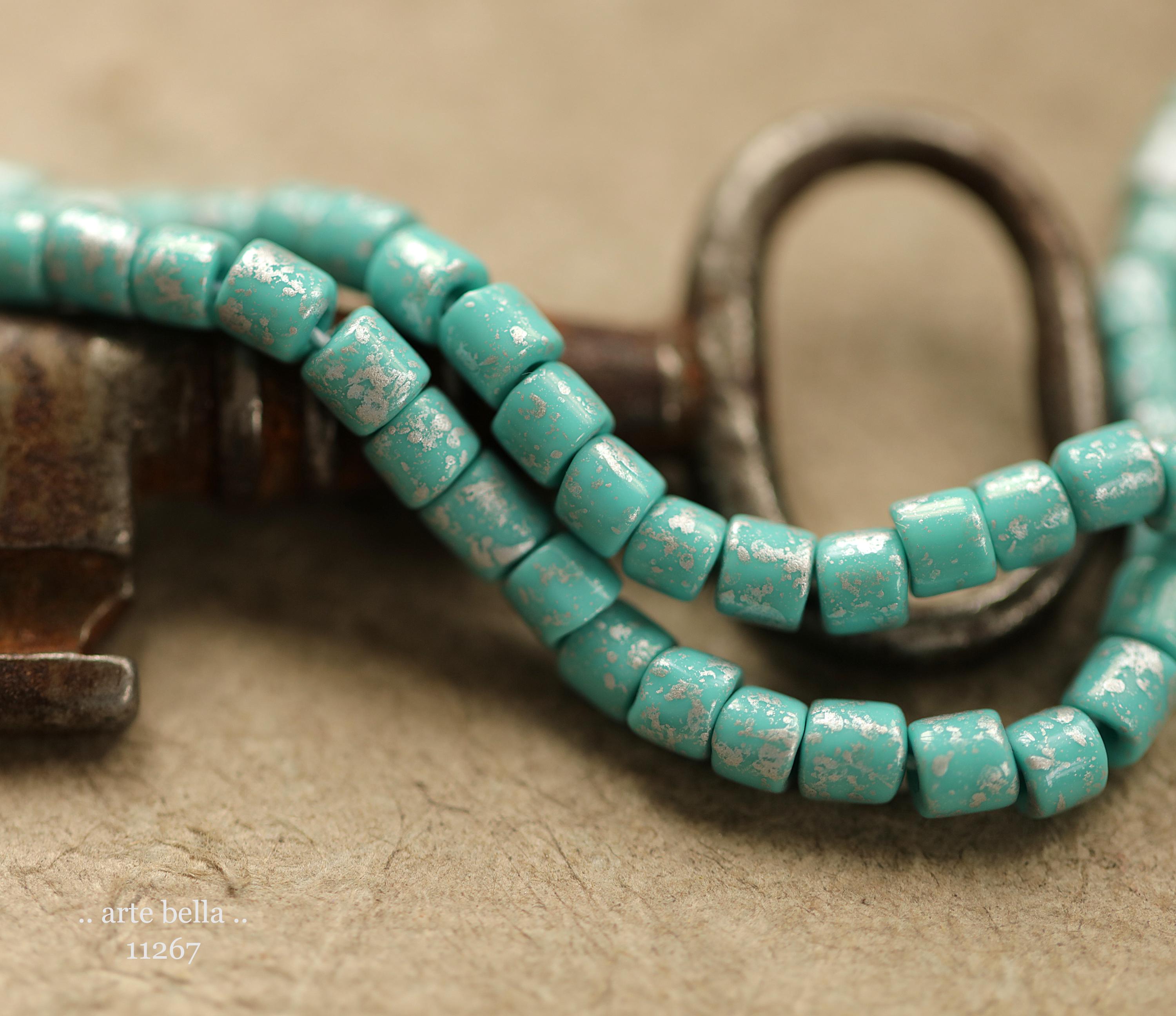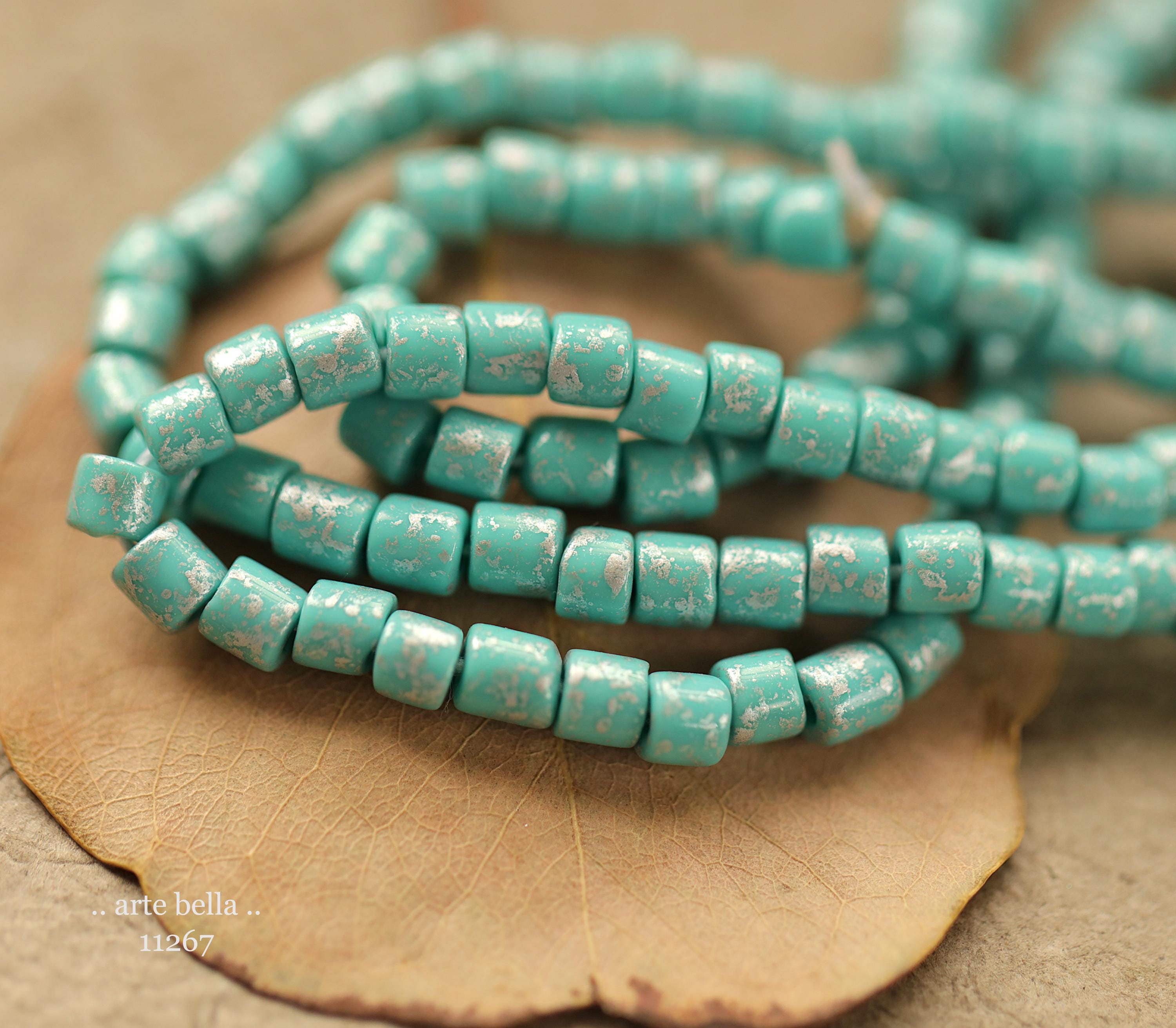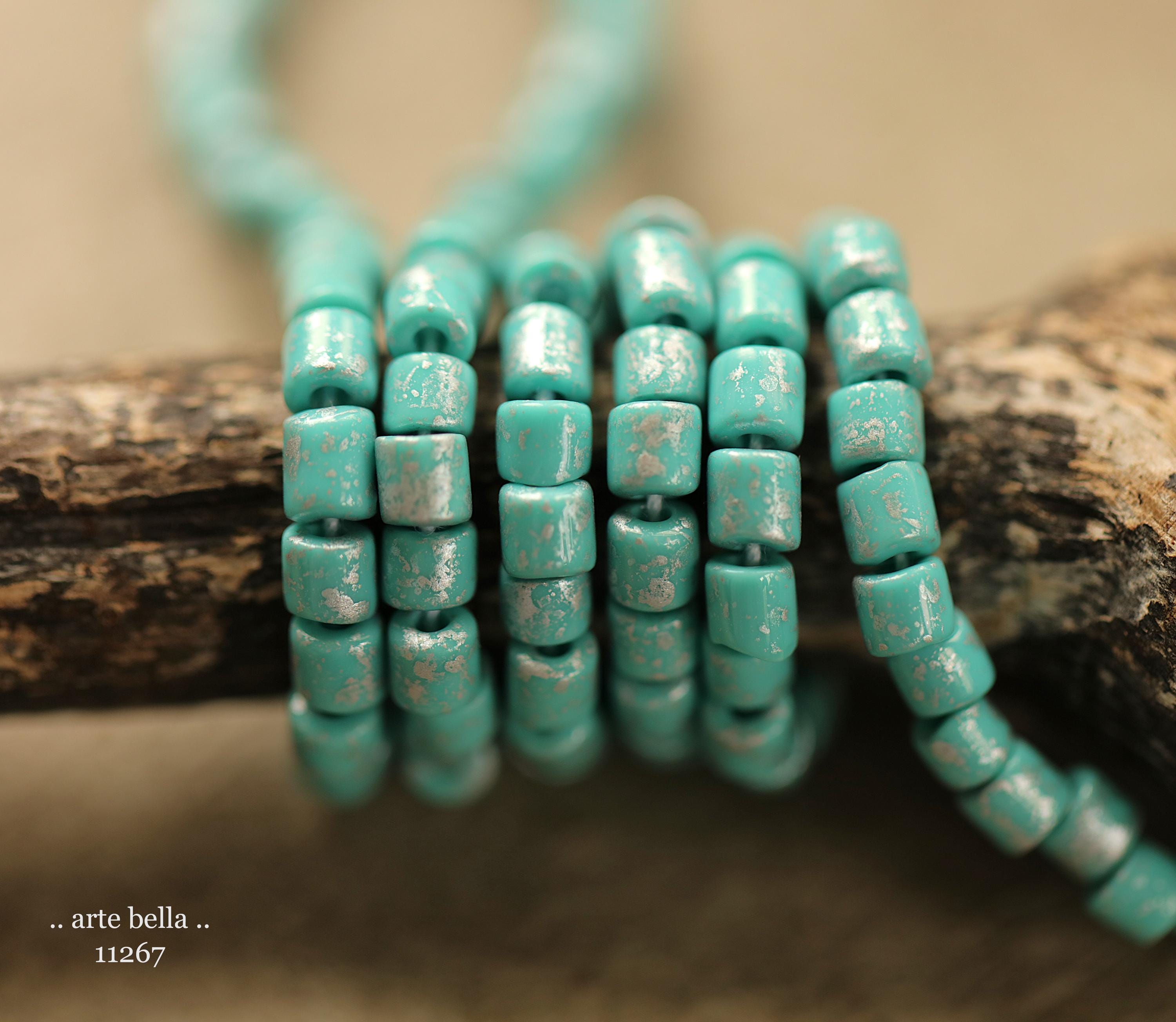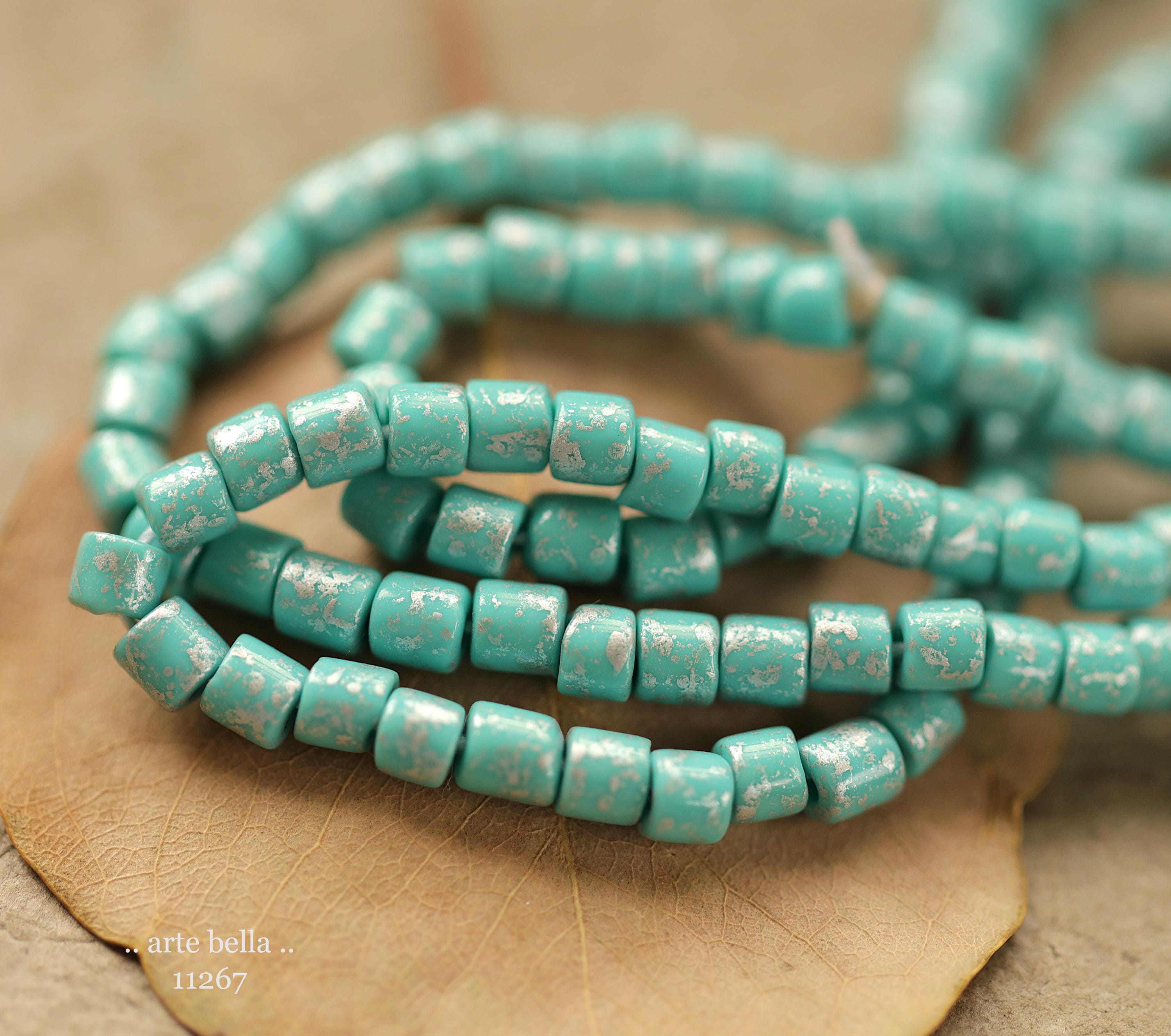 New .. SILVERED TURQUOISE TUBES .. 20" Premium Czech Glass Metallic Tube Bead Mix 4mm (11267-st) .. jewelry making supplies
