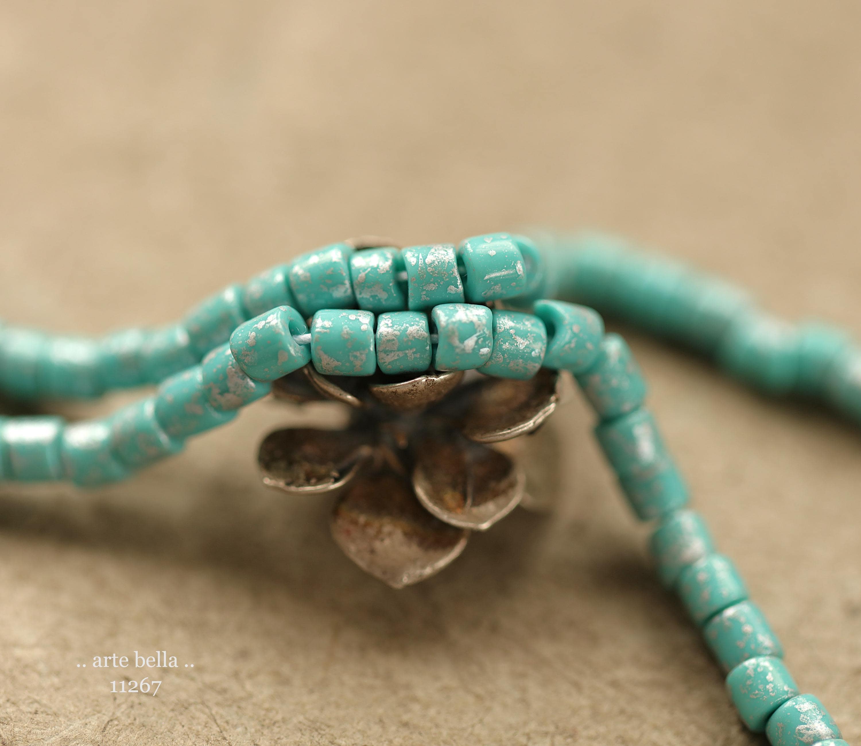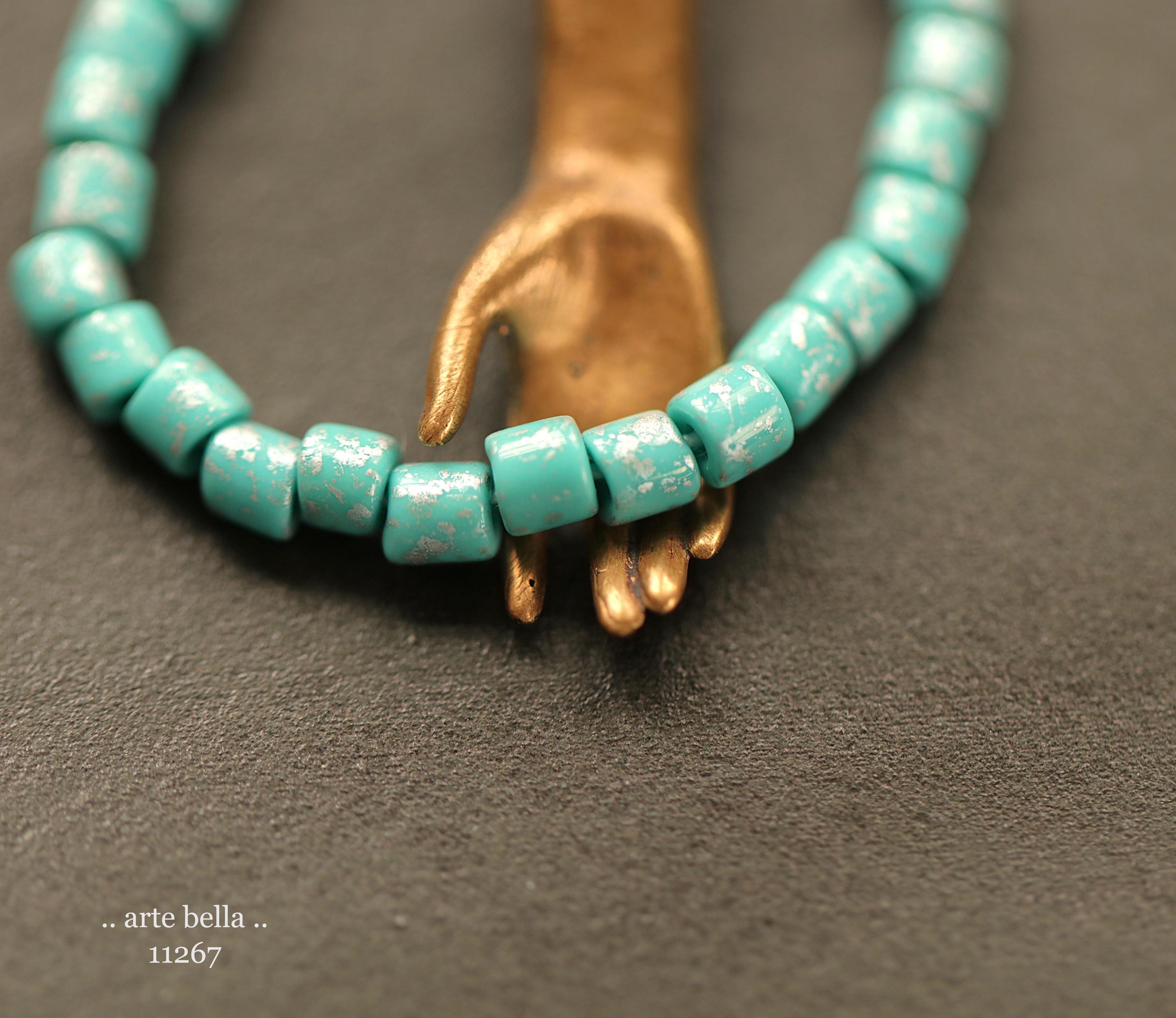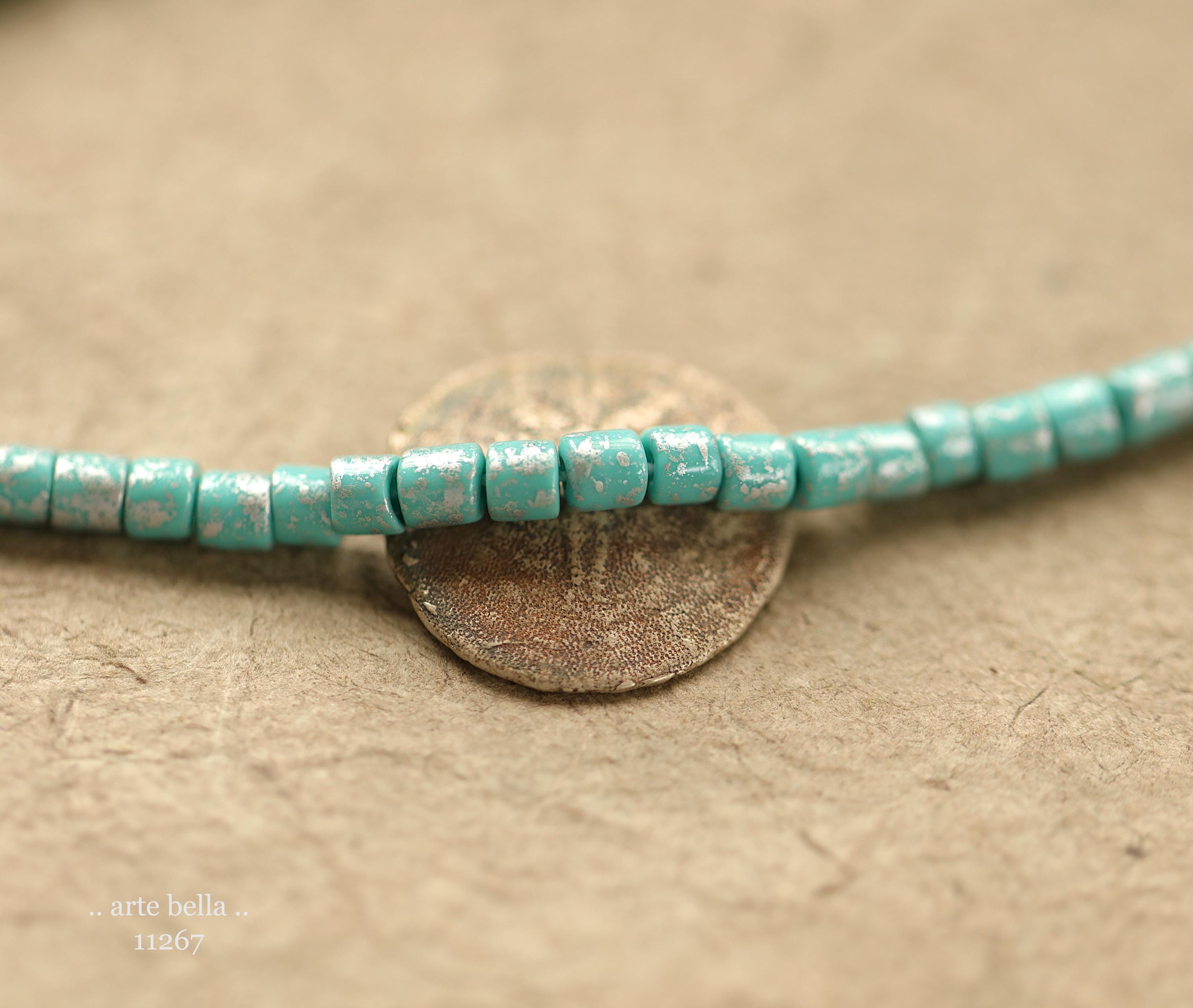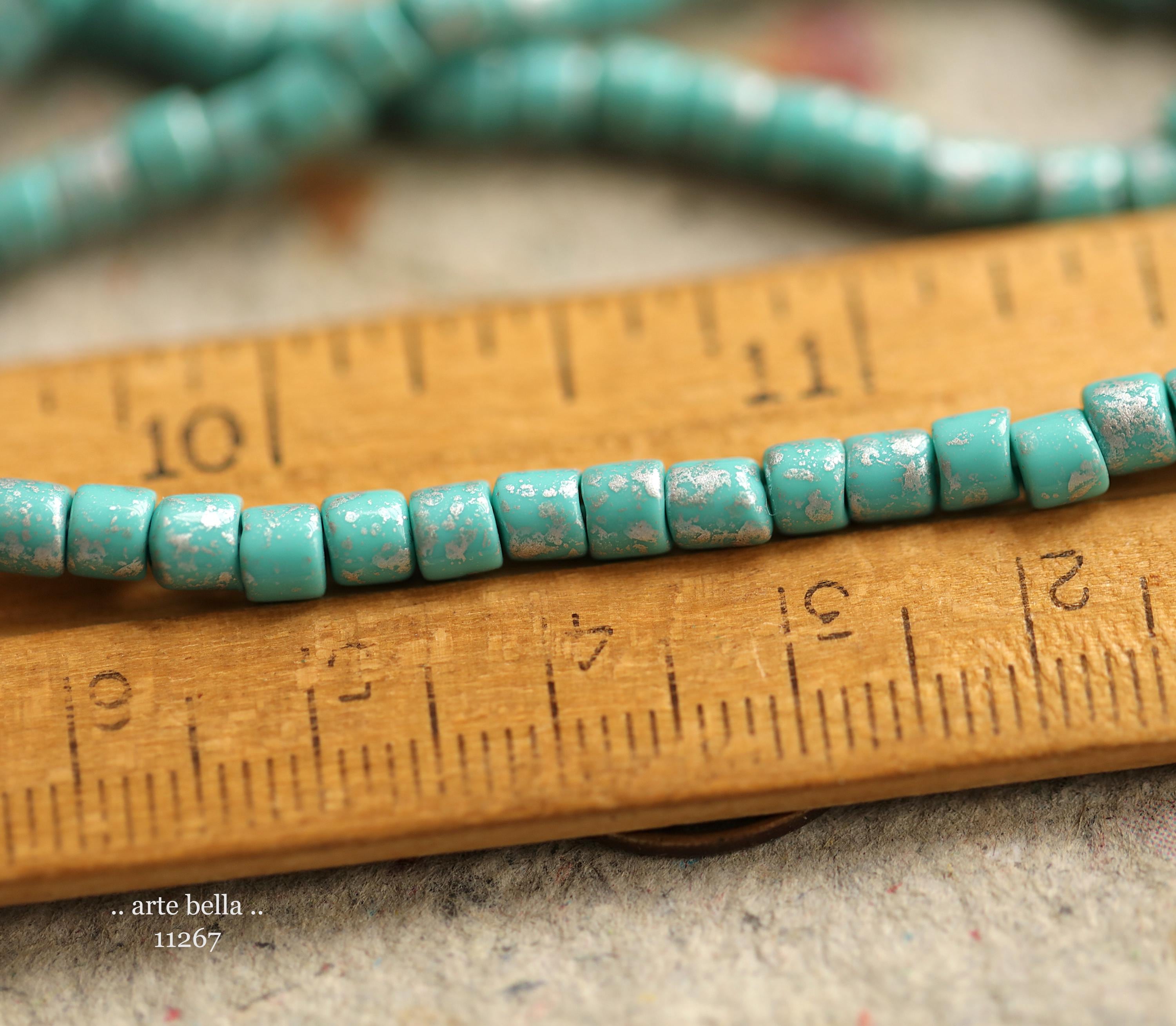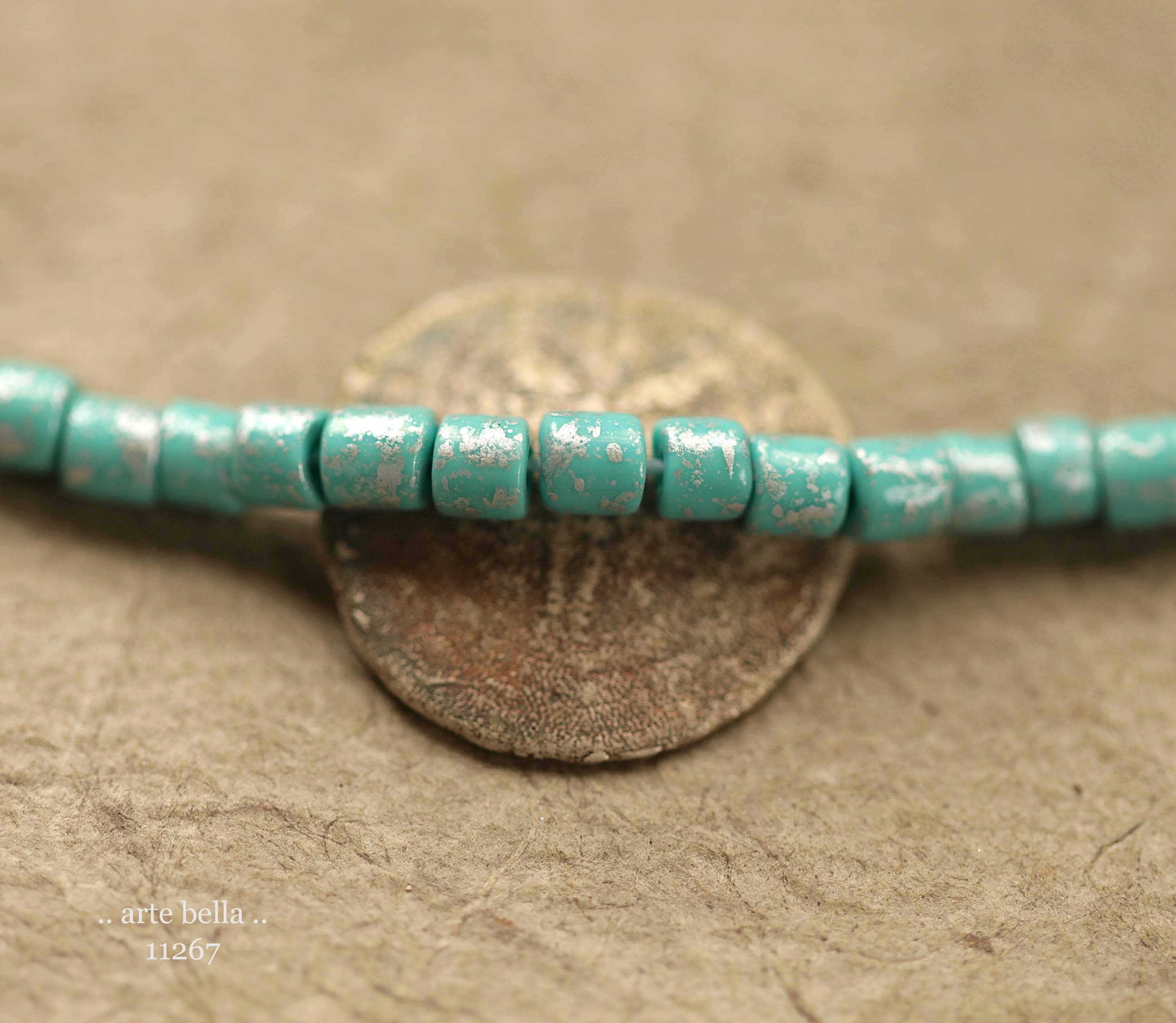 New .. SILVERED TURQUOISE TUBES .. 20" Premium Czech Glass Metallic Tube Bead Mix 4mm (11267-st) .. jewelry making supplies