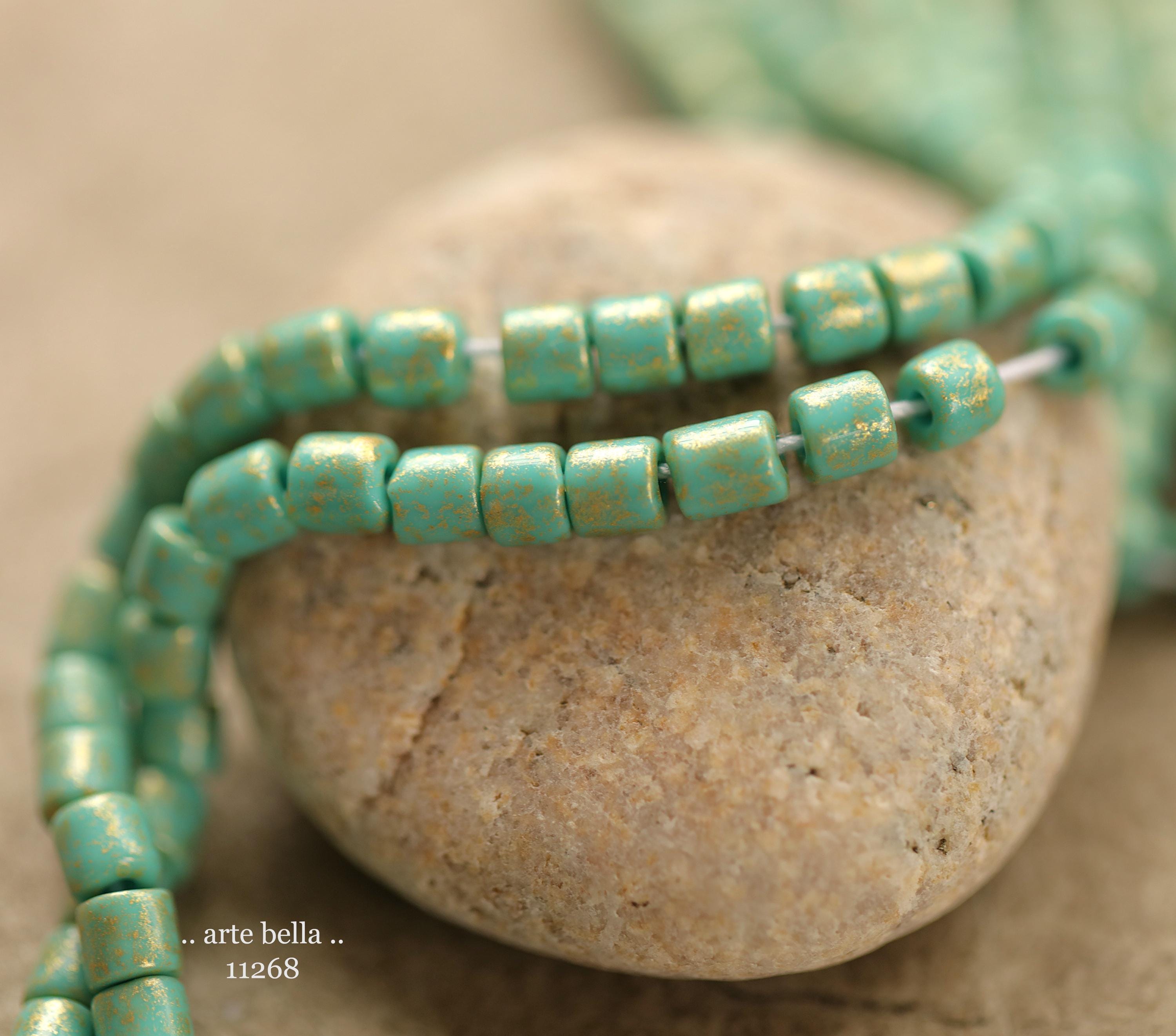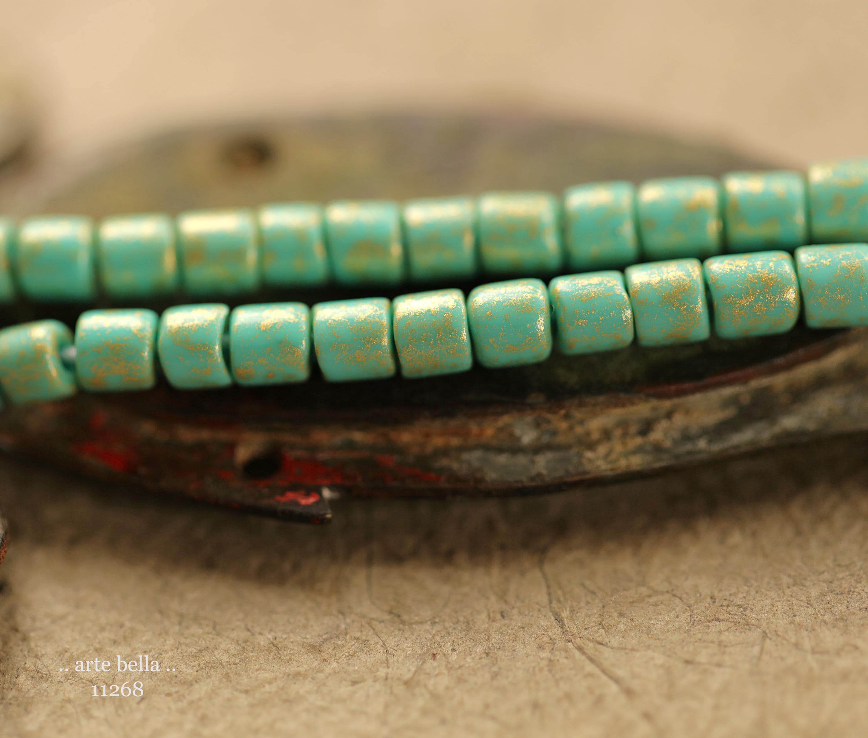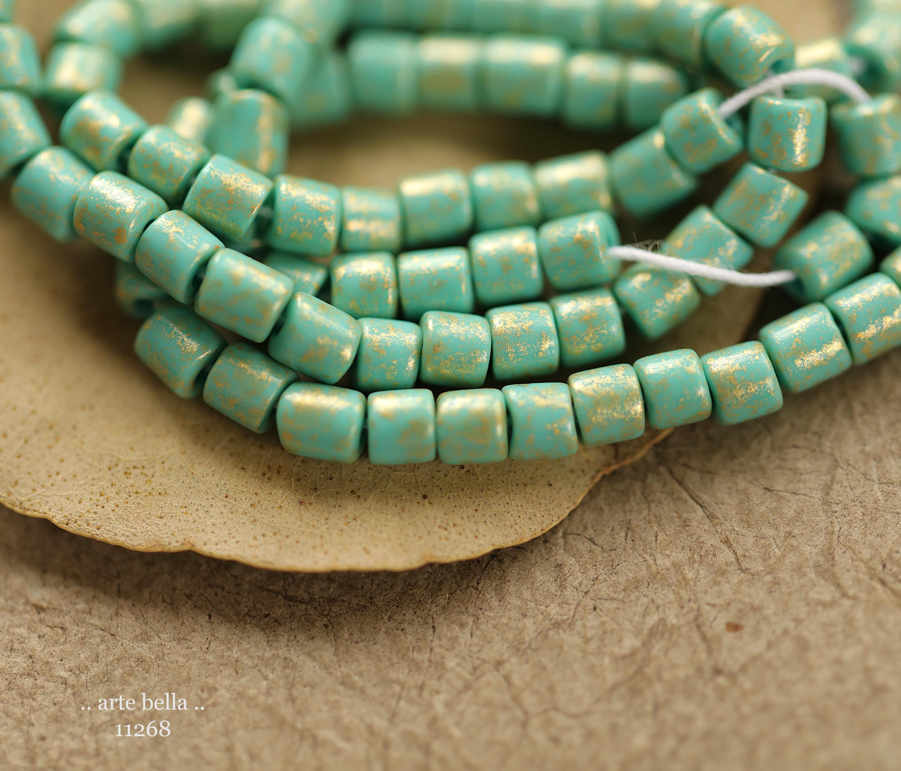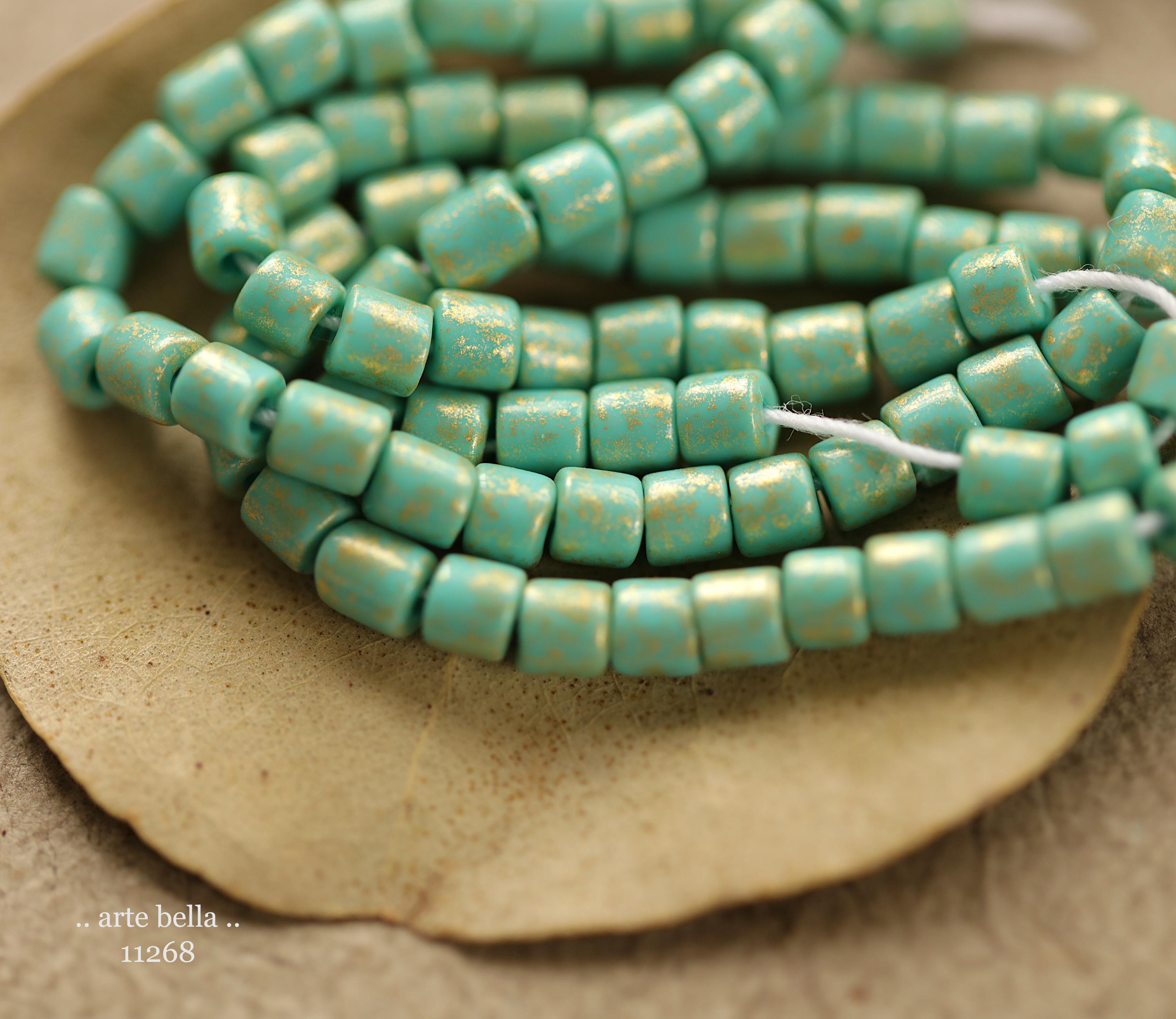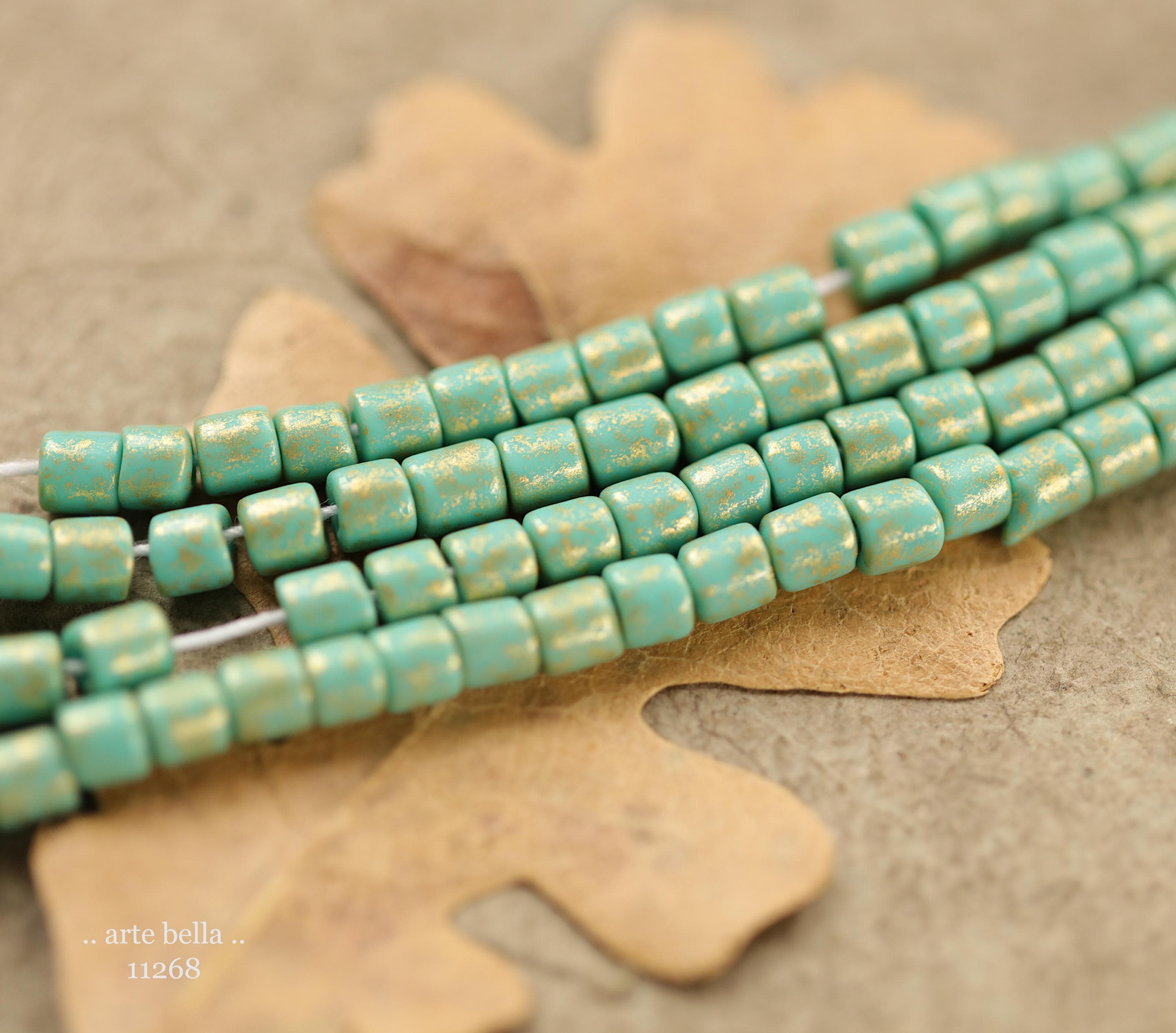 New .. GOLDEN TURQUOISE TUBES .. 20" Premium Czech Glass Metallic Tube Bead Mix 4mm (11268-st) .. jewelry making supplies