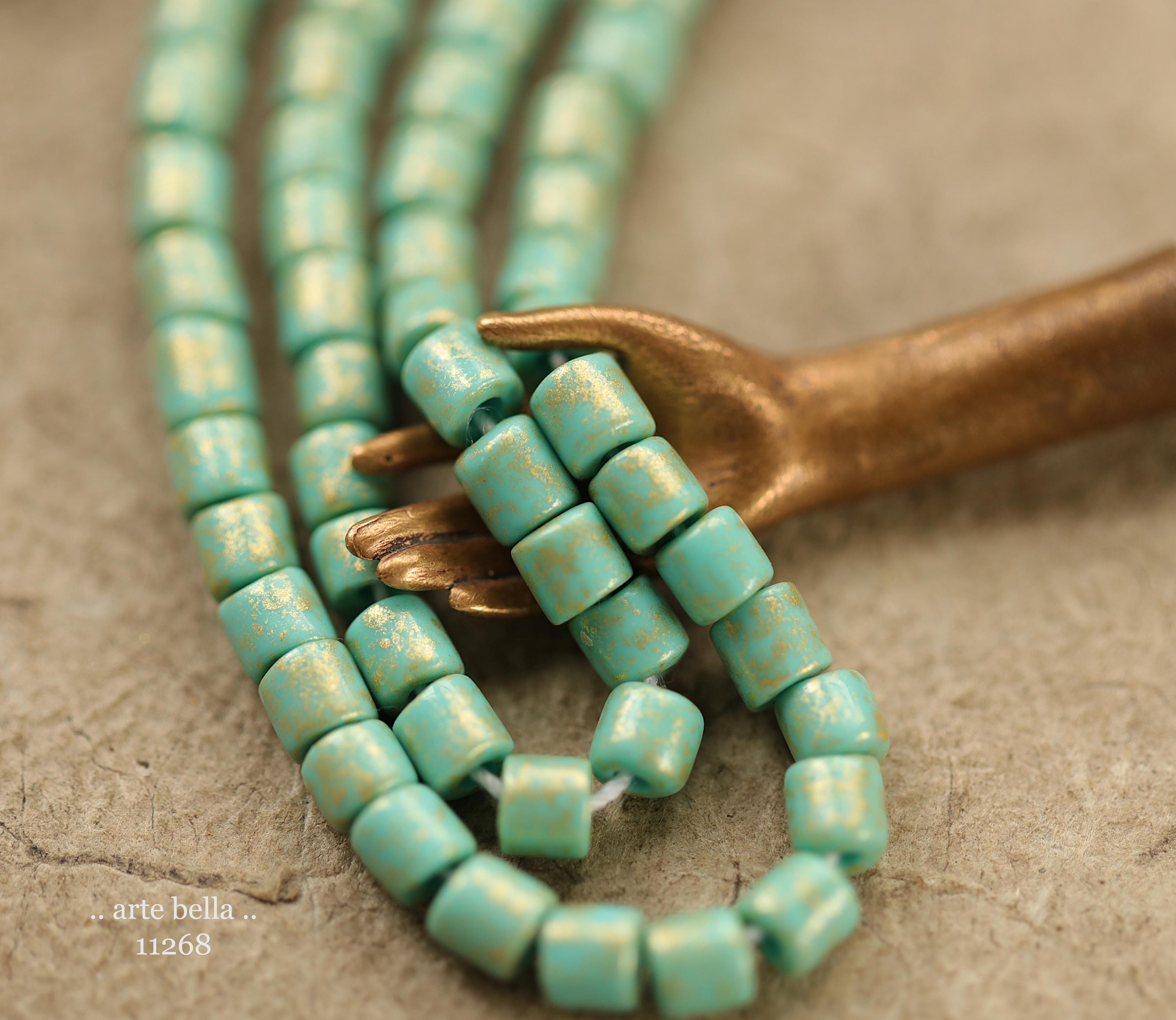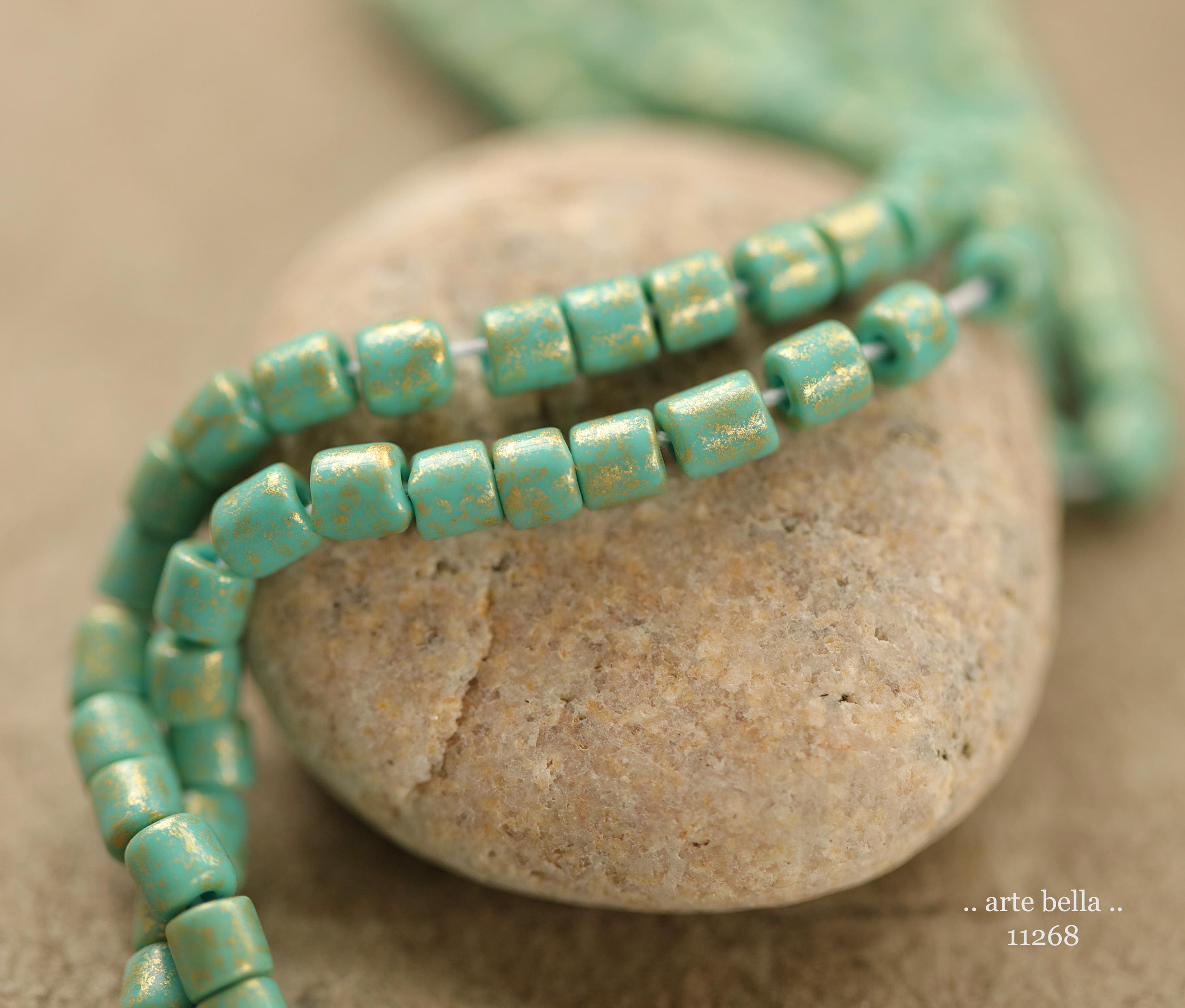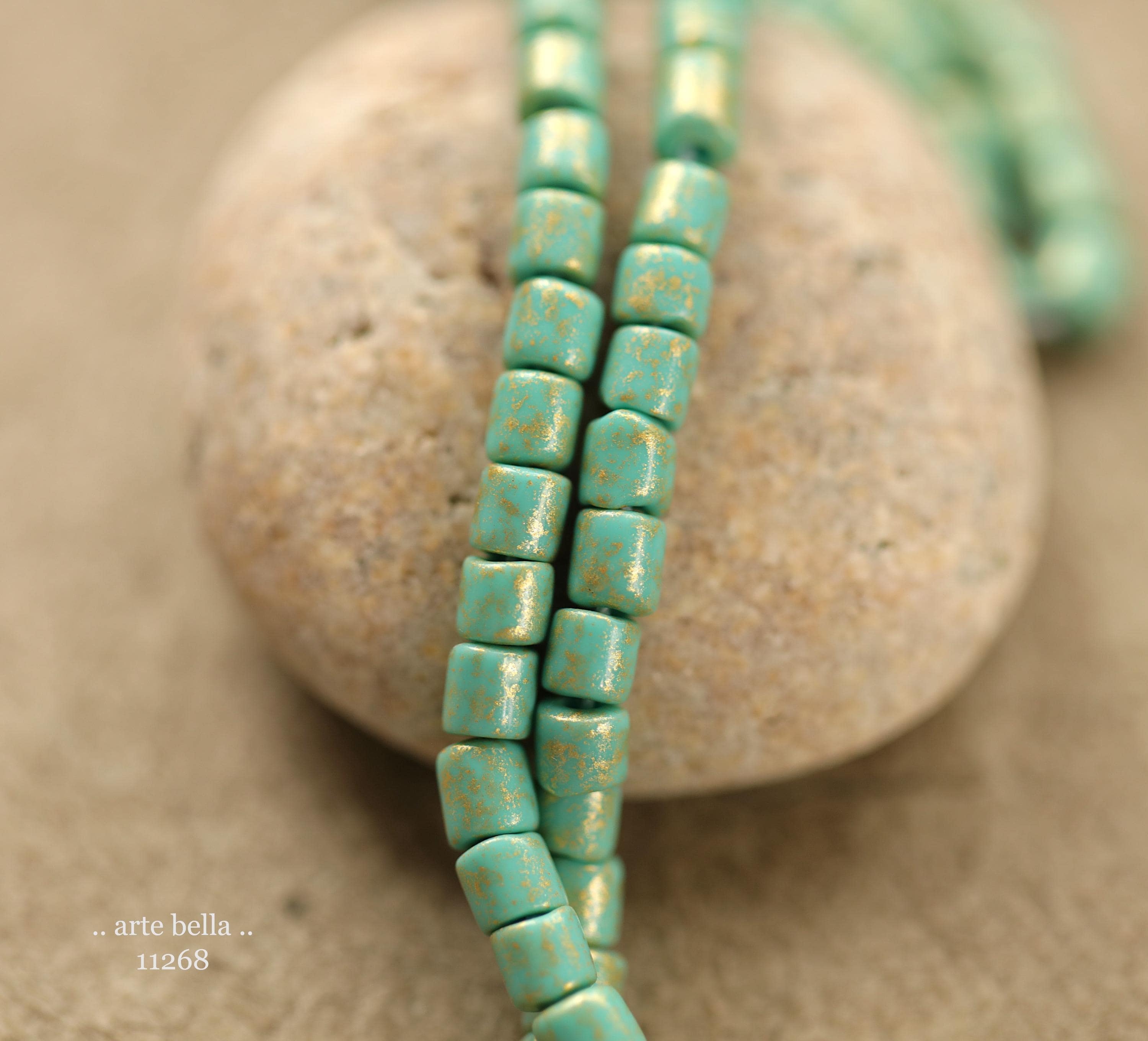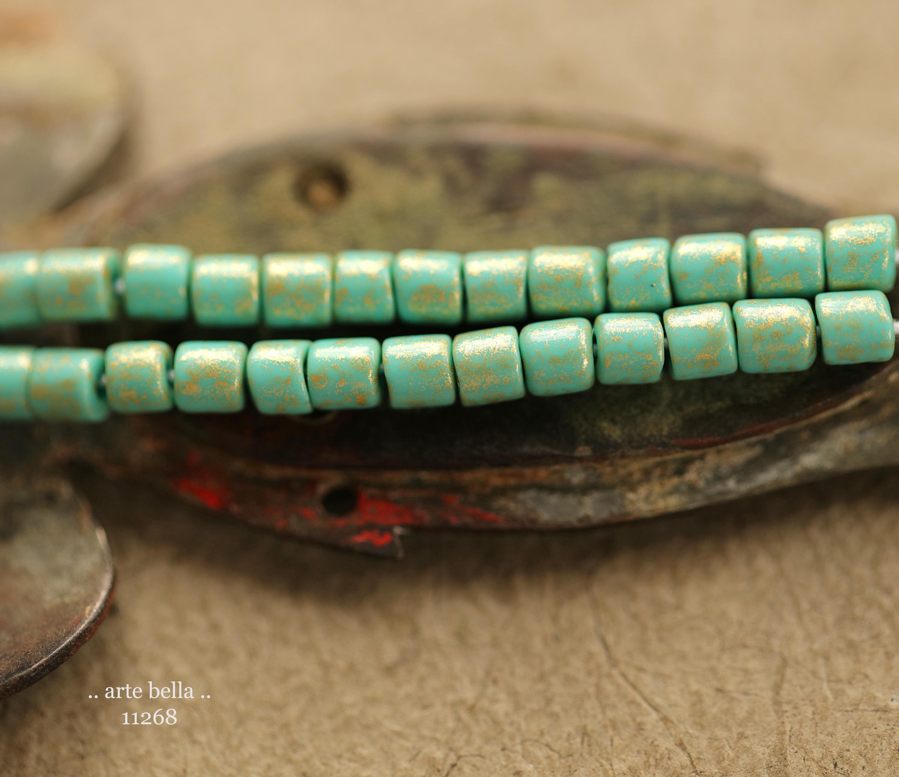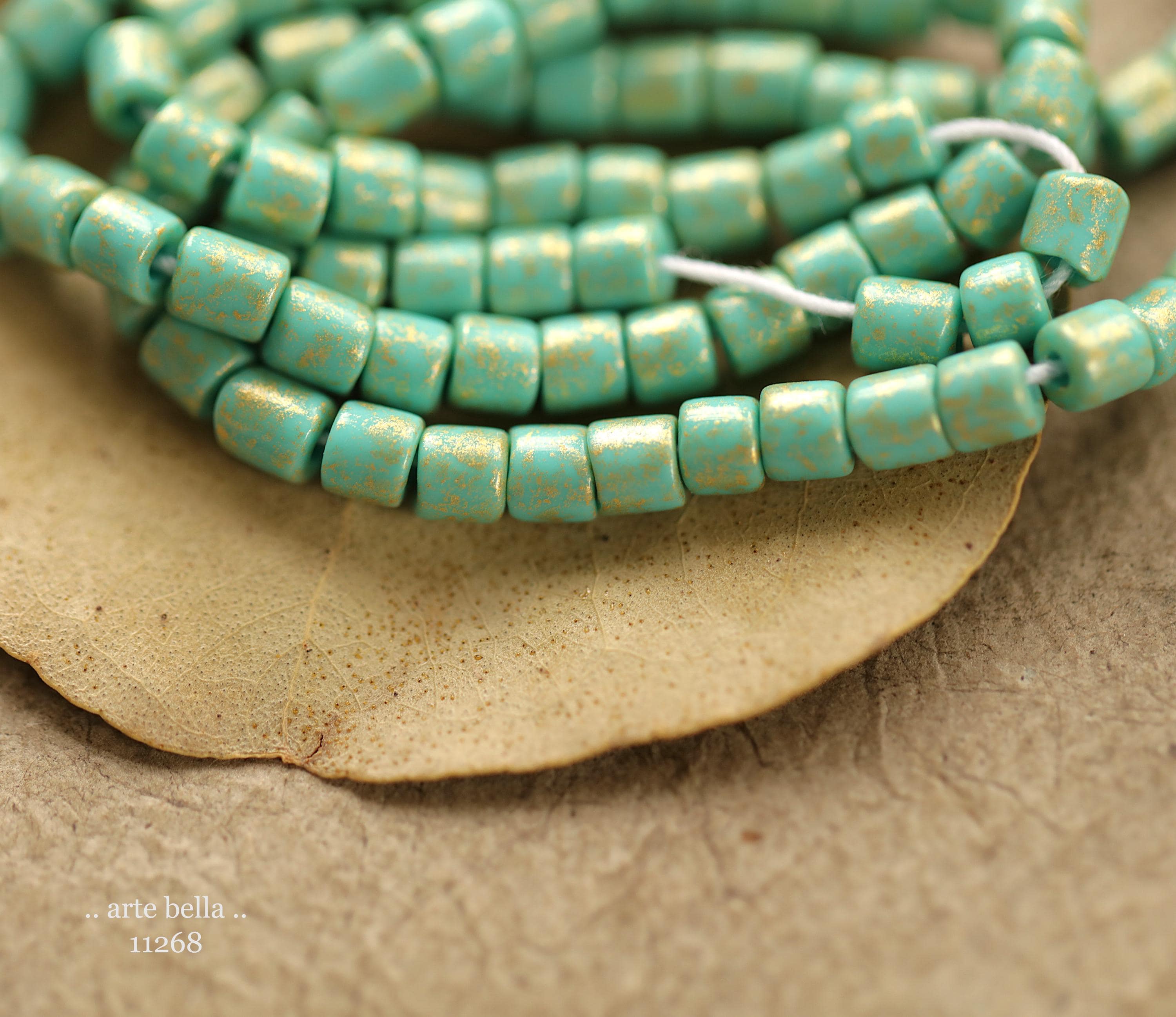 New .. GOLDEN TURQUOISE TUBES .. 20" Premium Czech Glass Metallic Tube Bead Mix 4mm (11268-st) .. jewelry making supplies