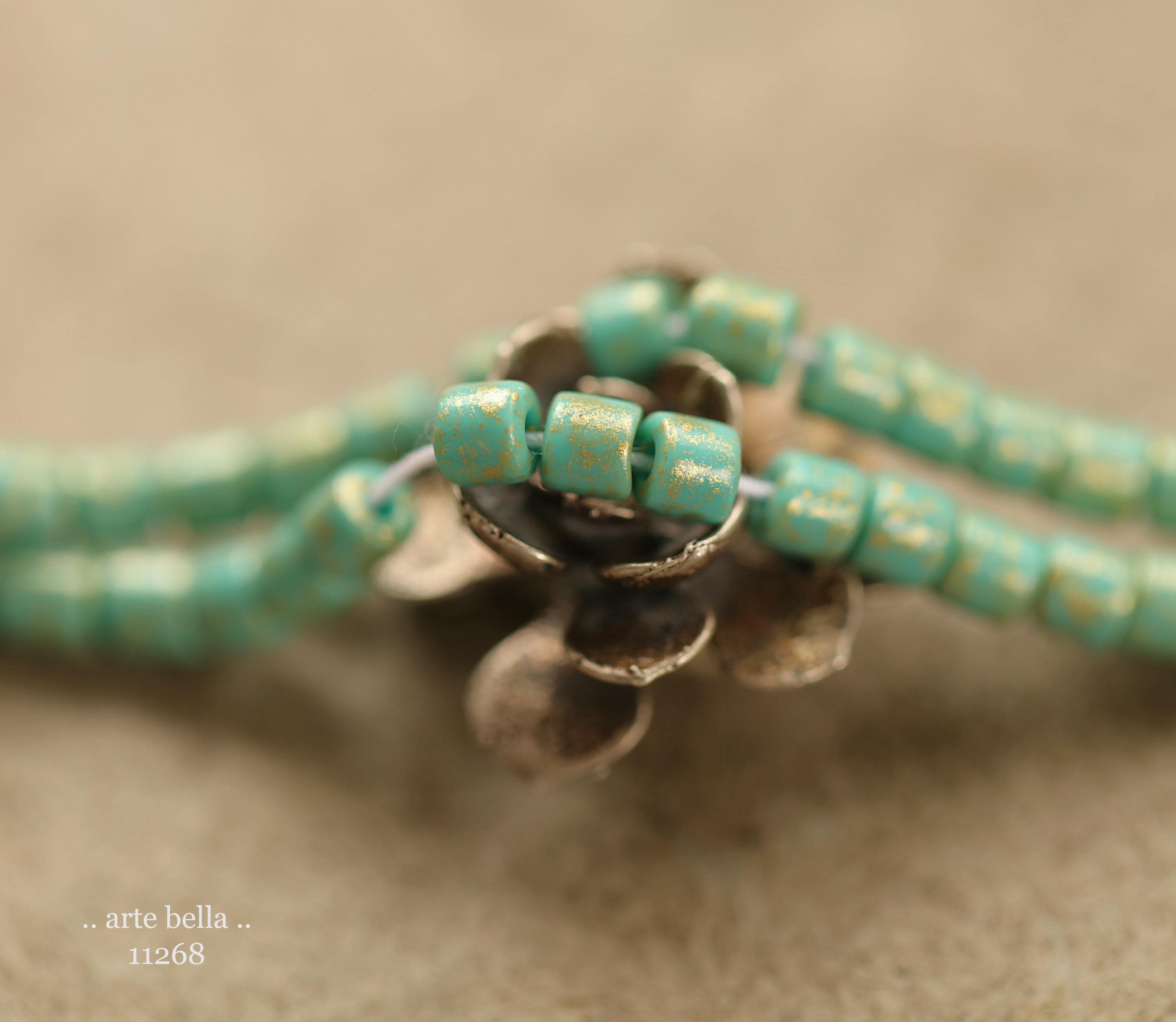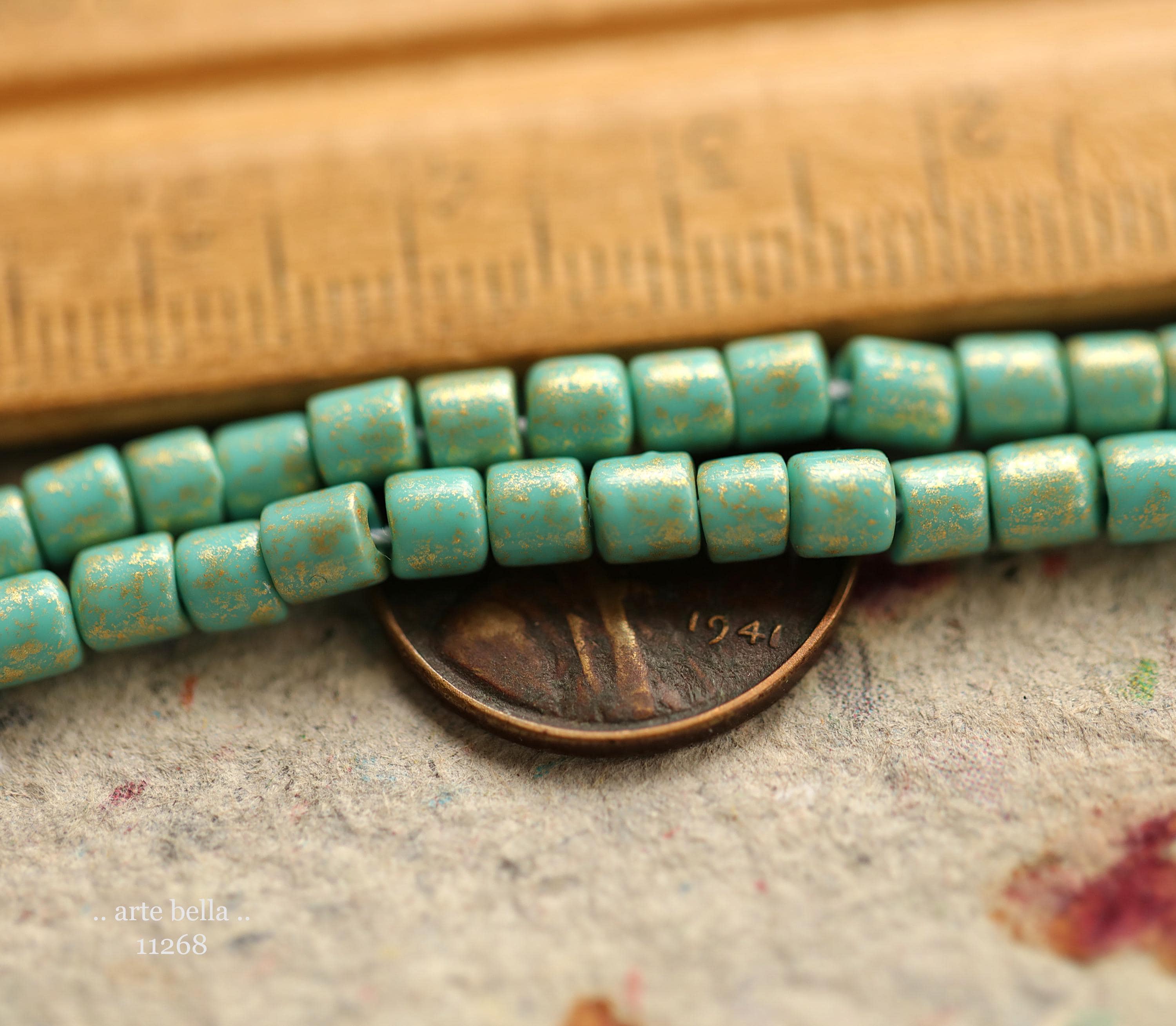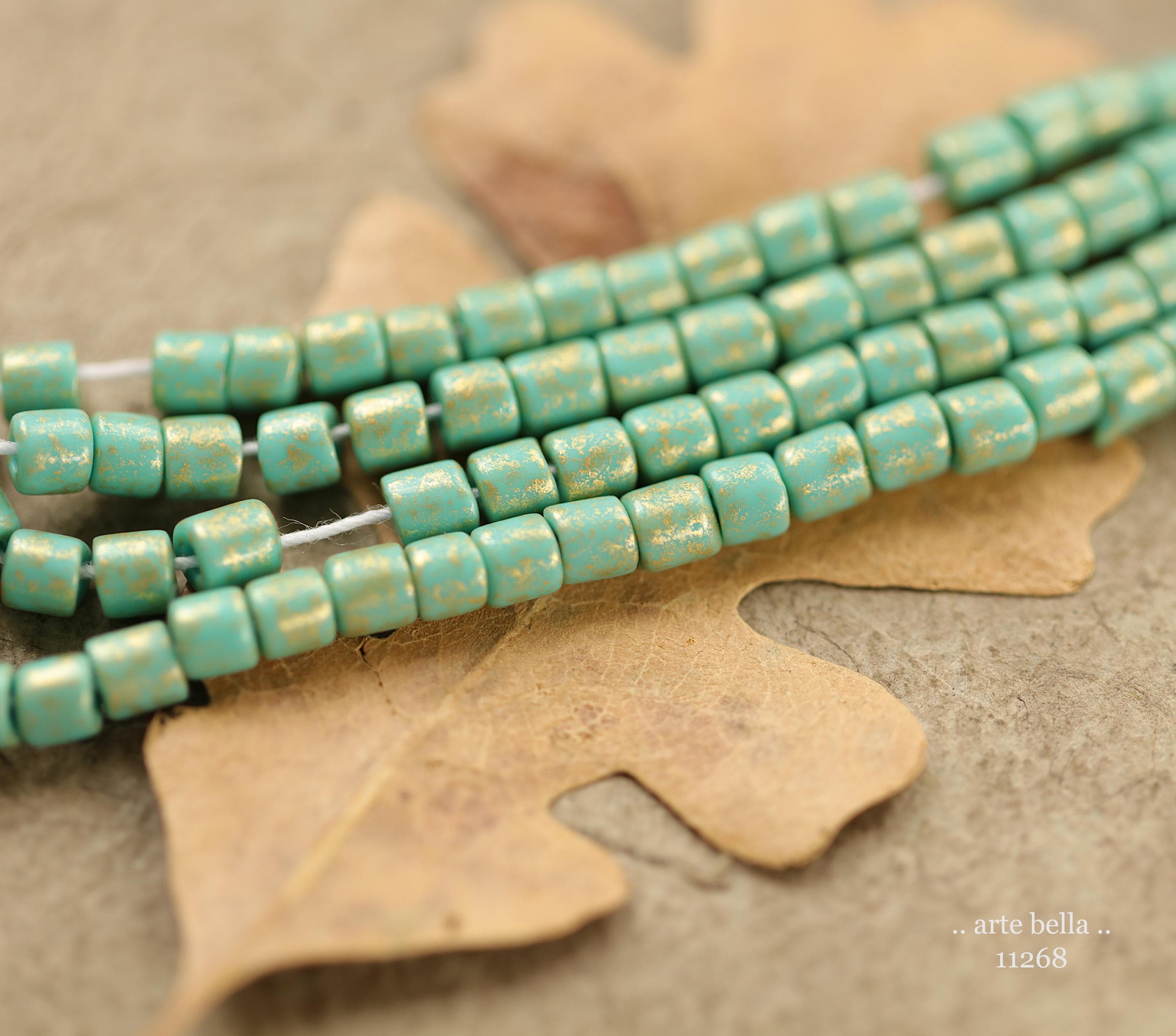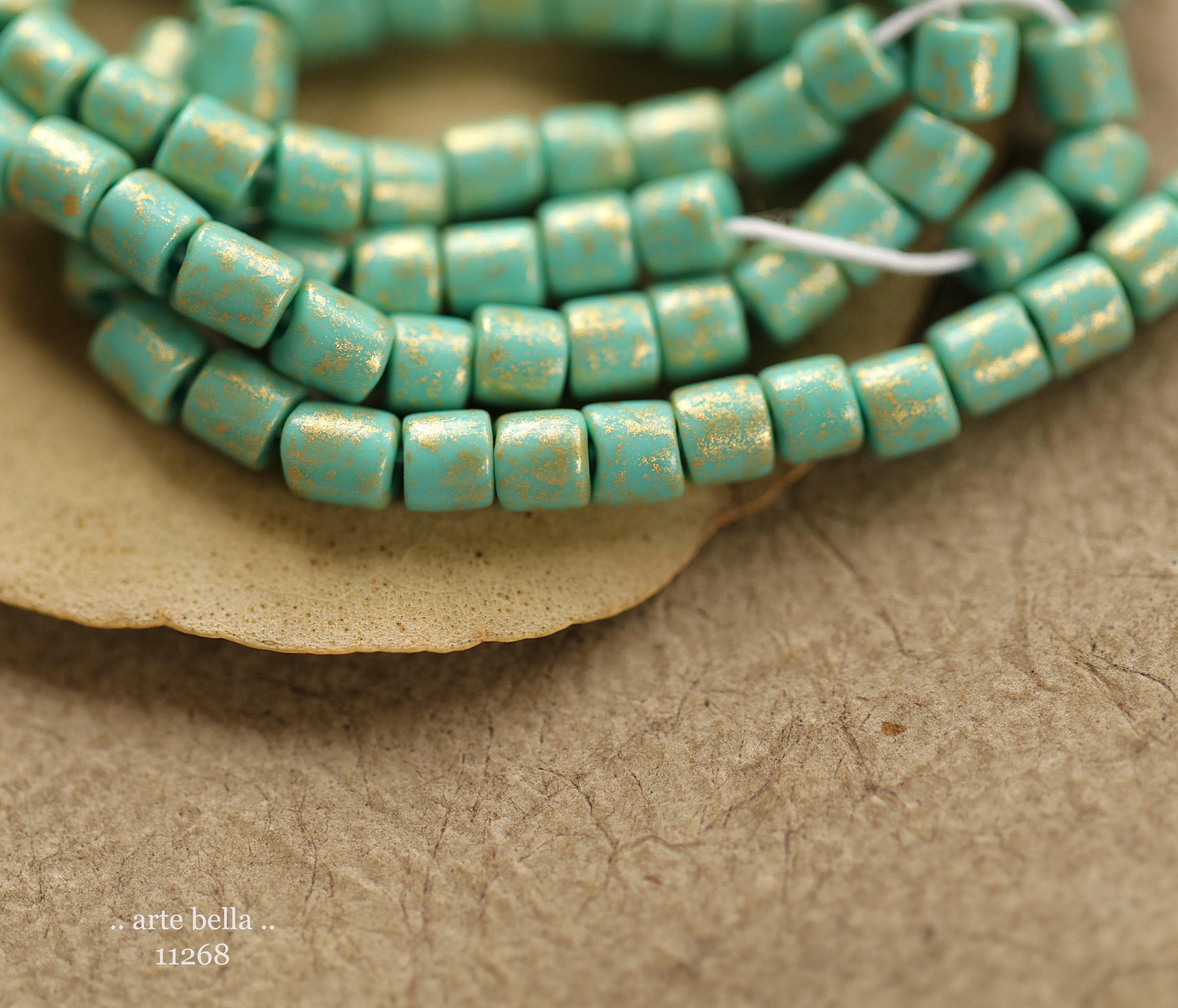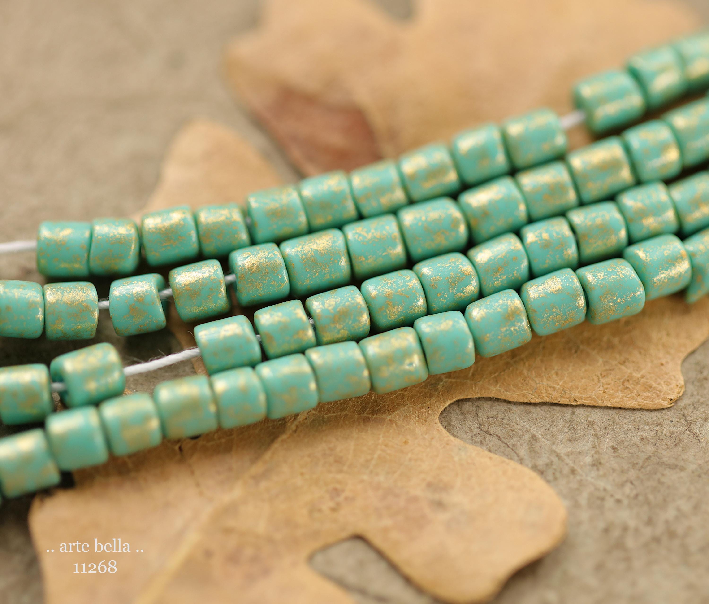 New .. GOLDEN TURQUOISE TUBES .. 20" Premium Czech Glass Metallic Tube Bead Mix 4mm (11268-st) .. jewelry making supplies