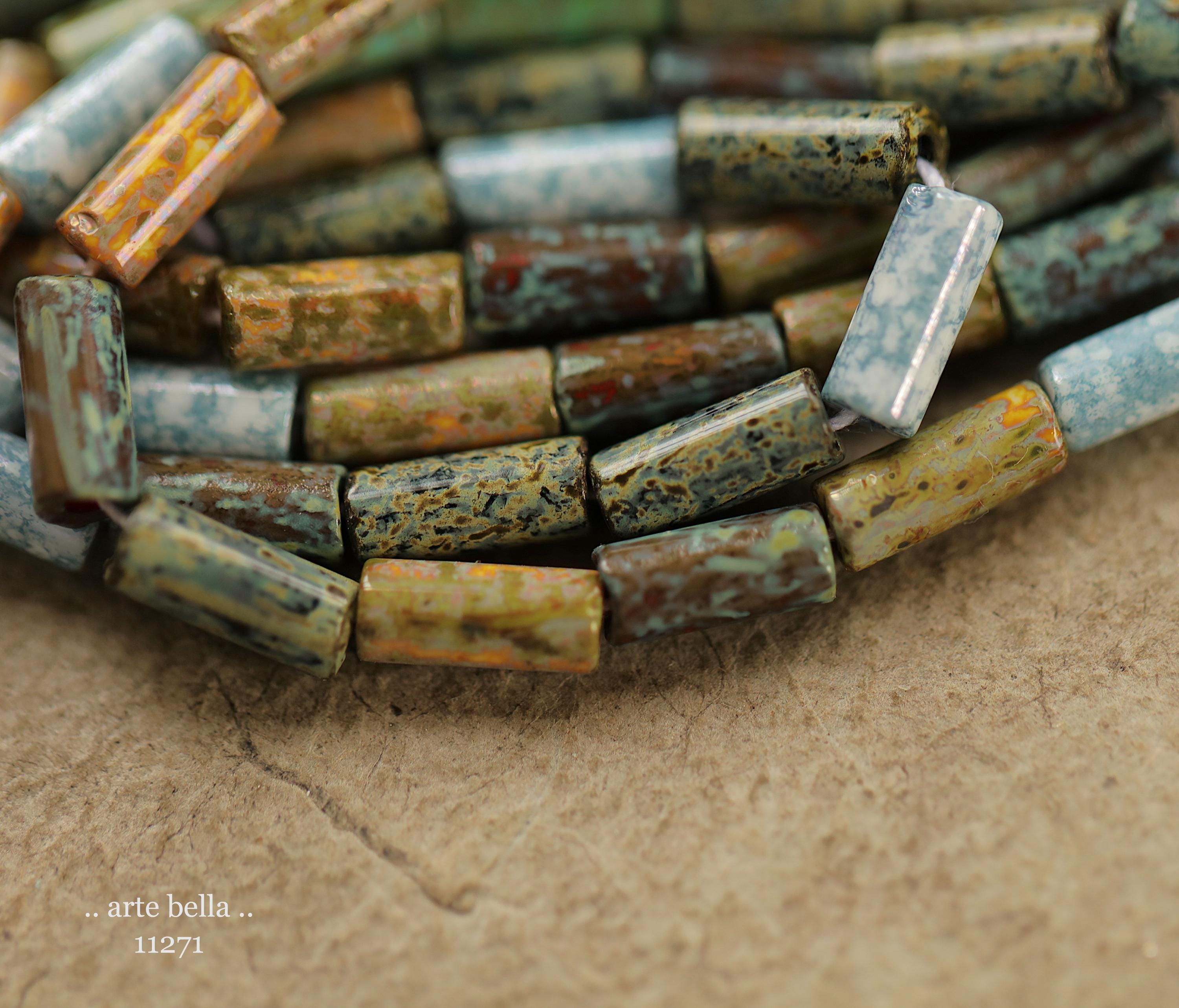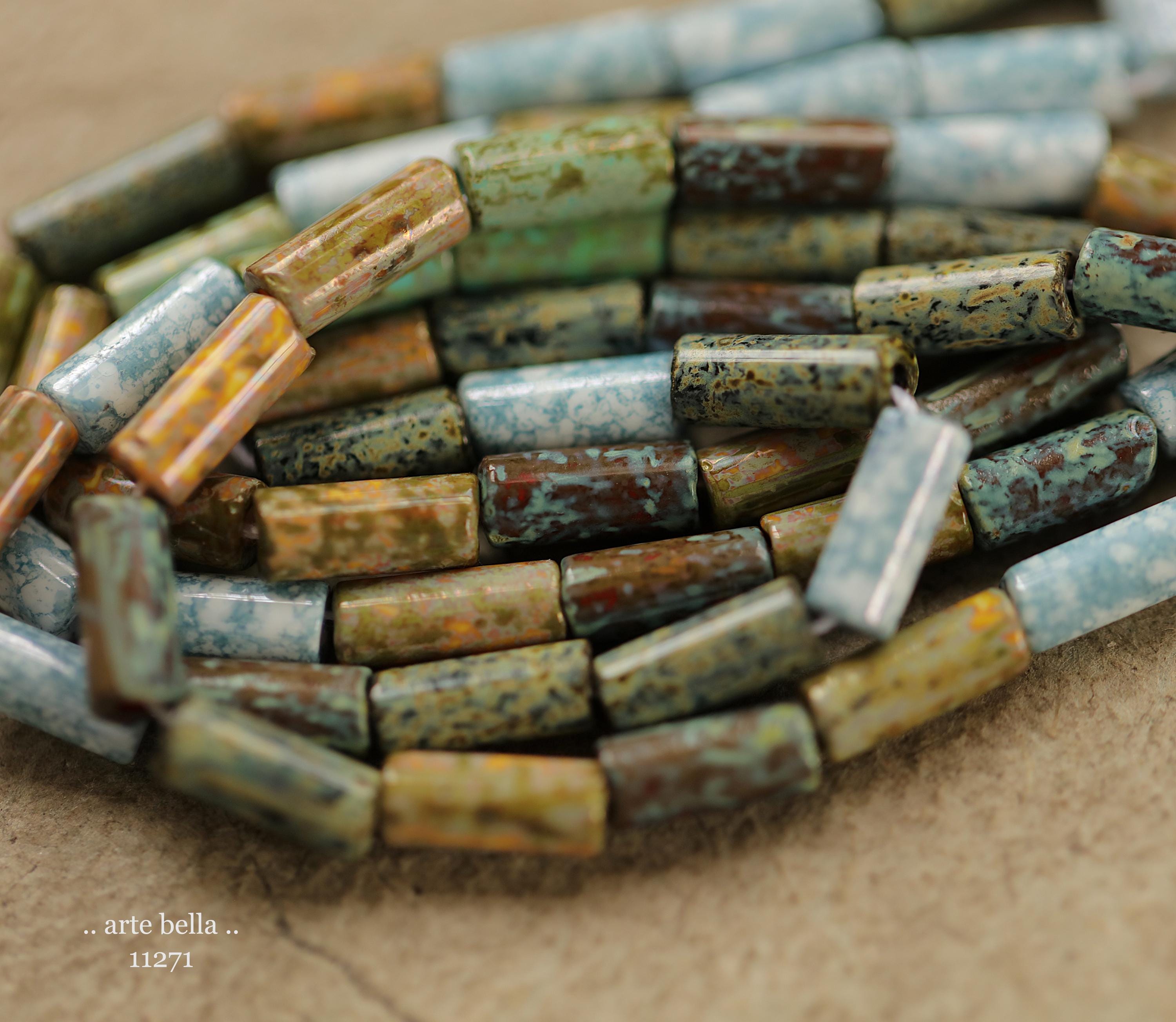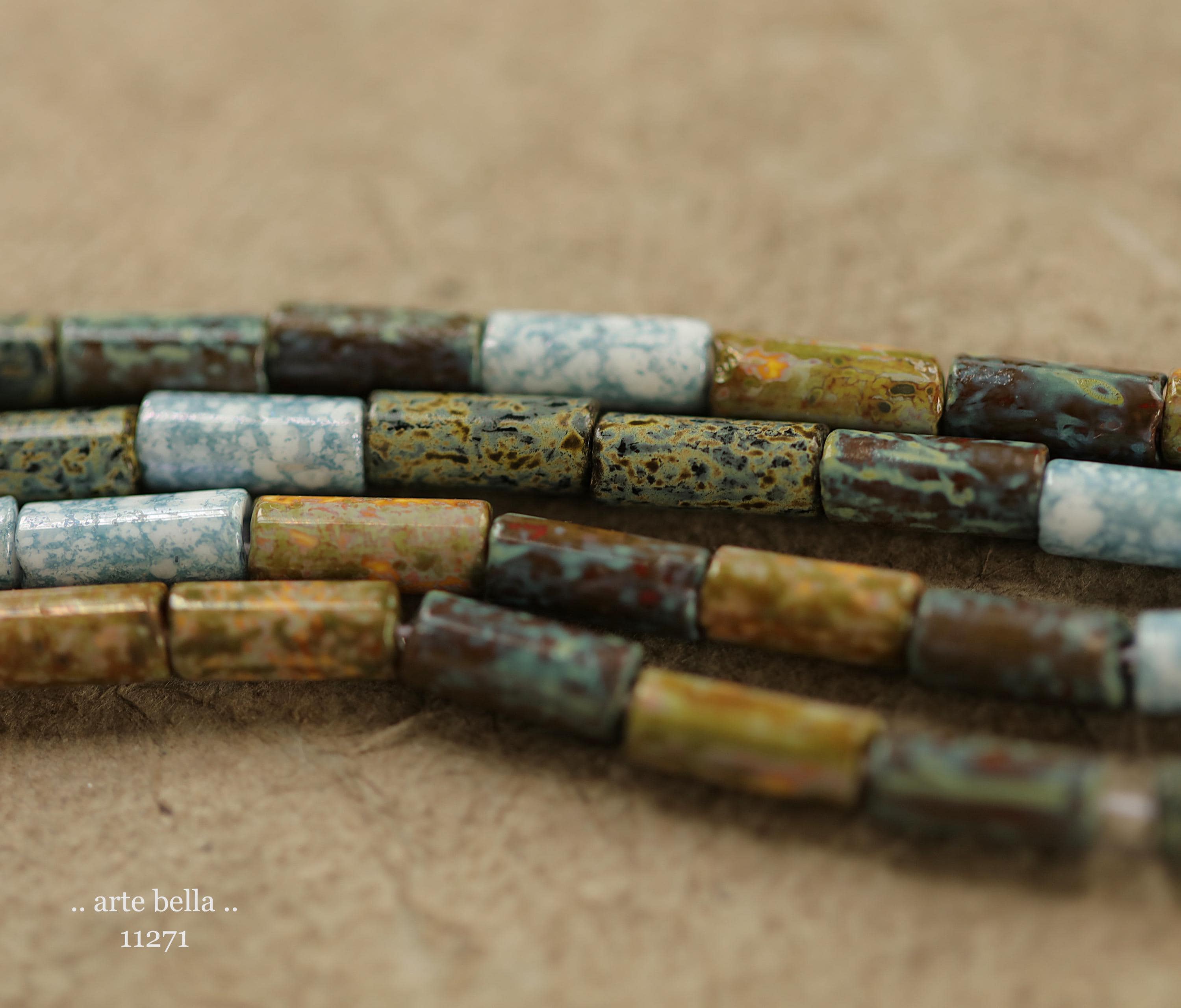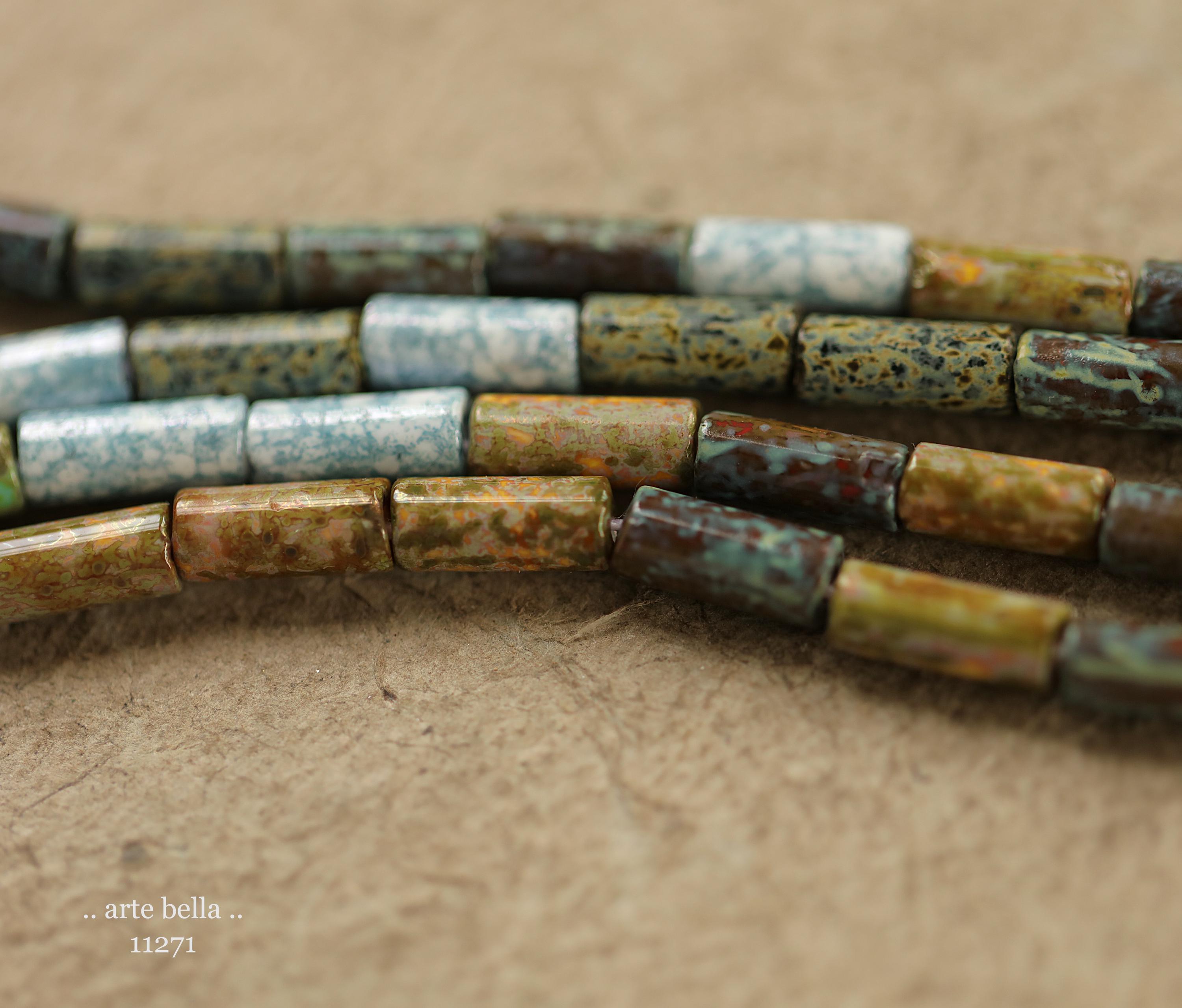New .. DESERT OASIS TUBES No. 1 .. 20" Premium Heavy Picasso Czech Glass Tube Bugle Bead Mix Size 9x4mm (11271-st) .. jewelry supplies