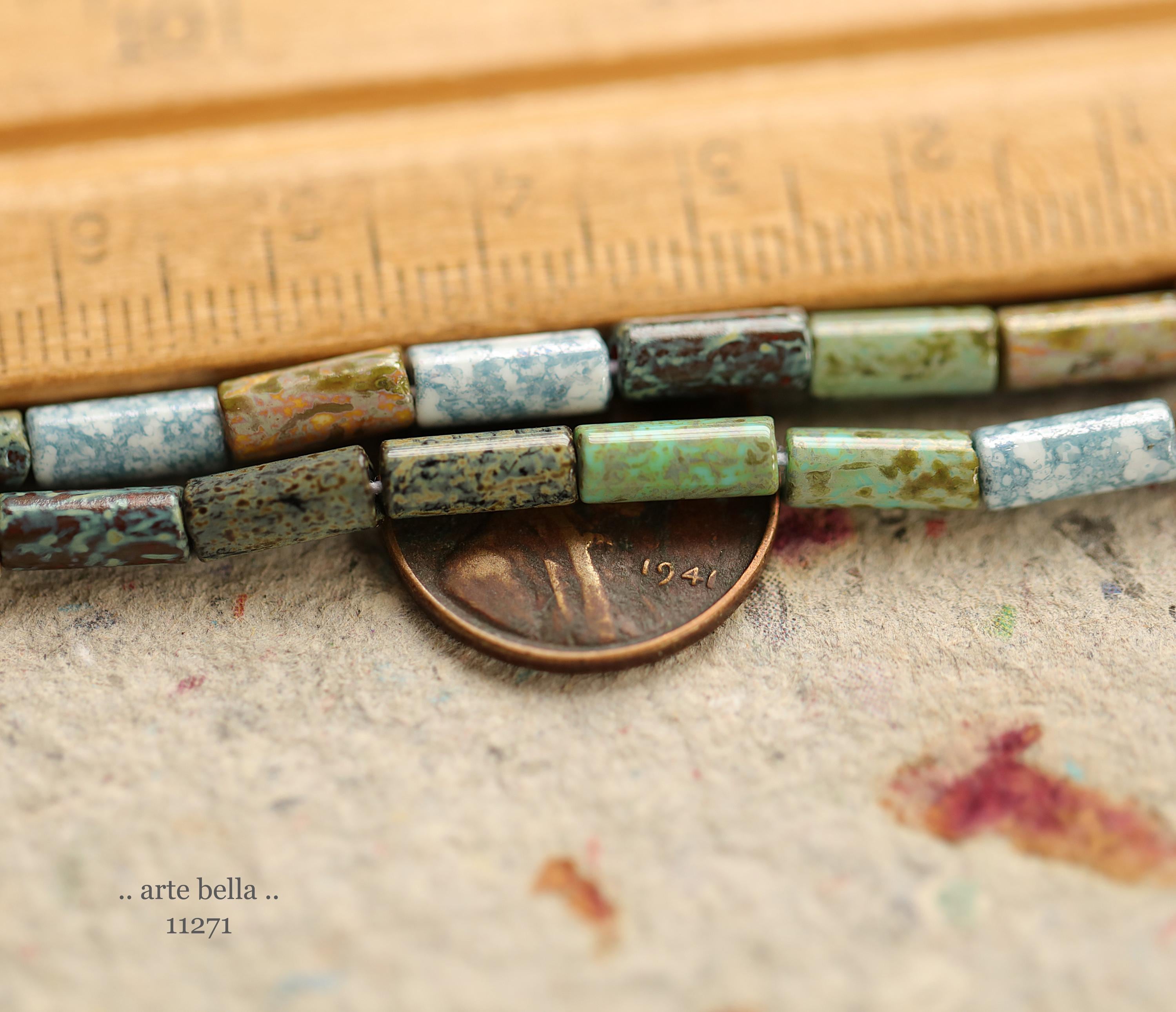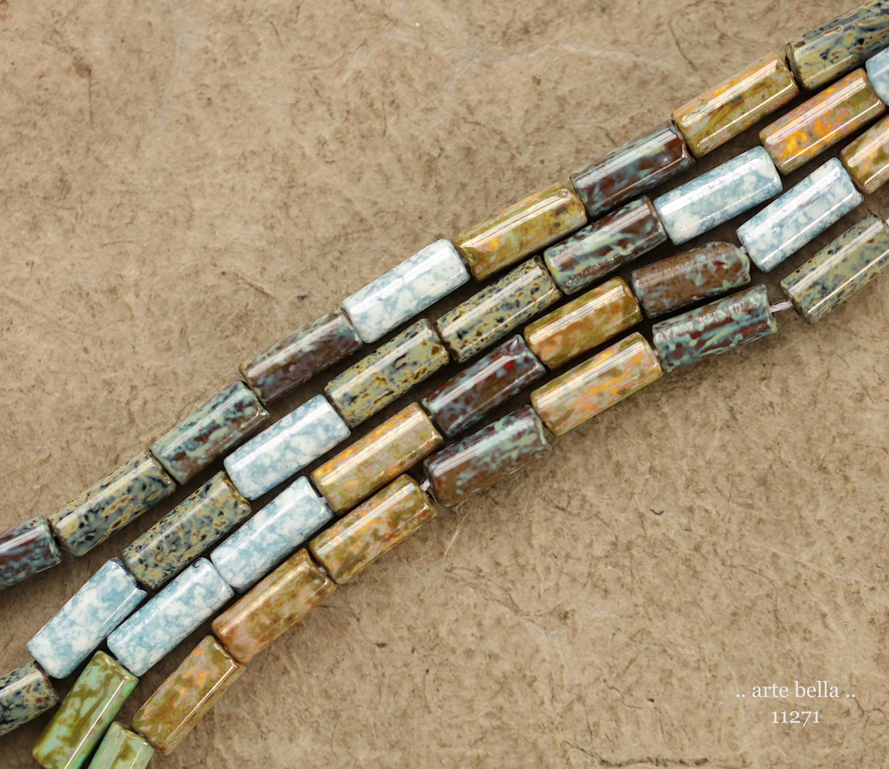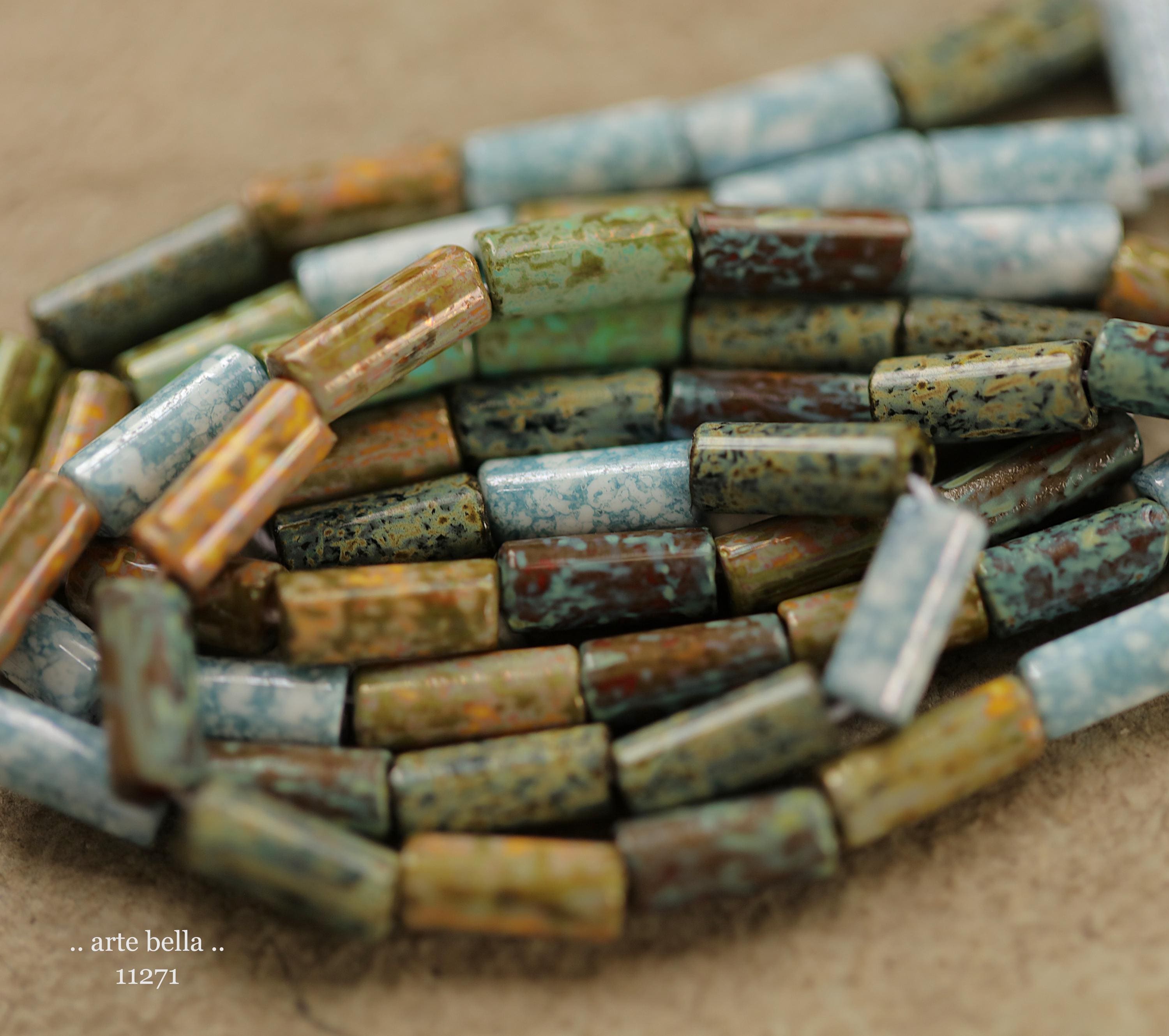 New .. DESERT OASIS TUBES No. 1 .. 20" Premium Heavy Picasso Czech Glass Tube Bugle Bead Mix Size 9x4mm (11271-st) .. jewelry supplies