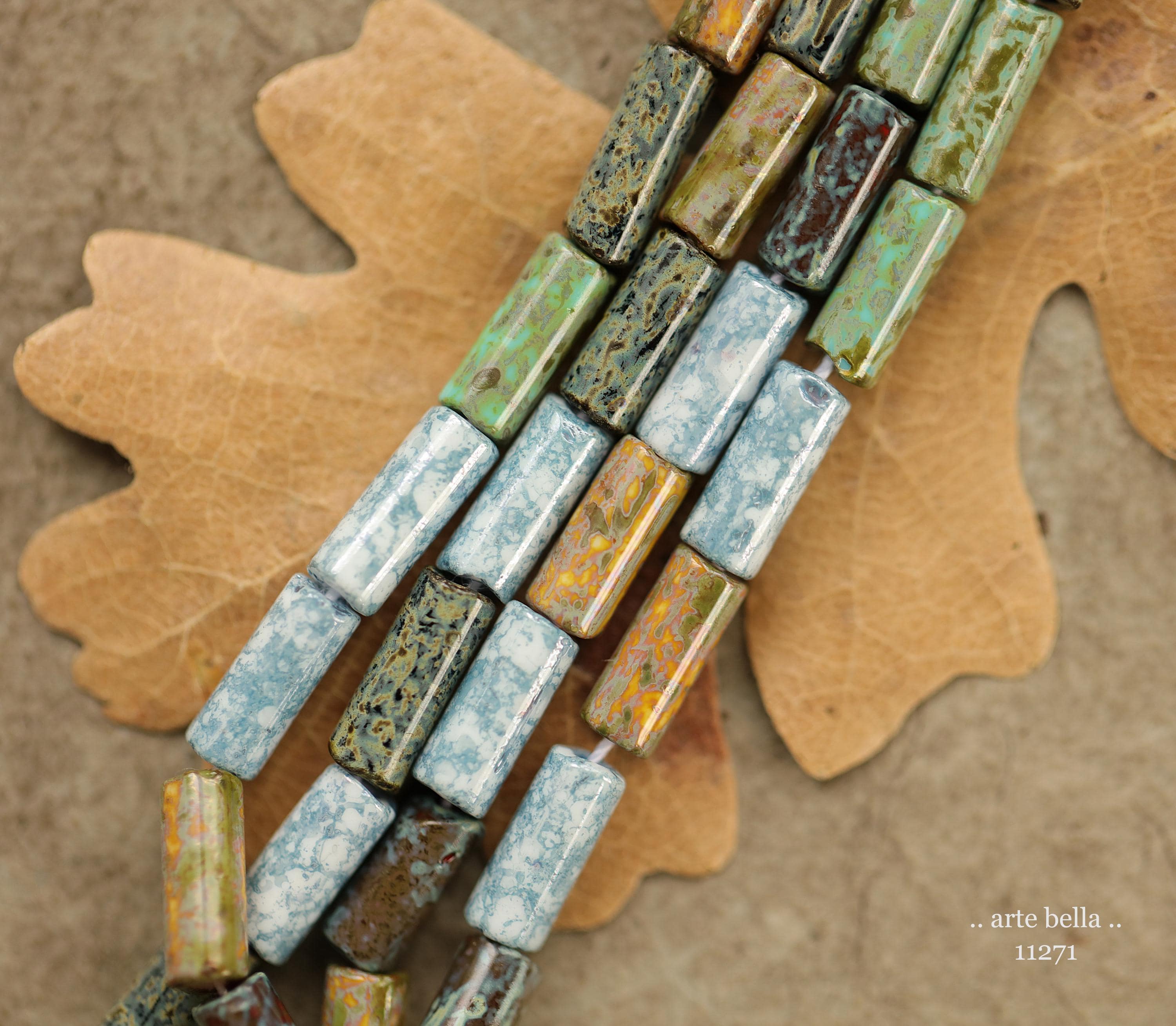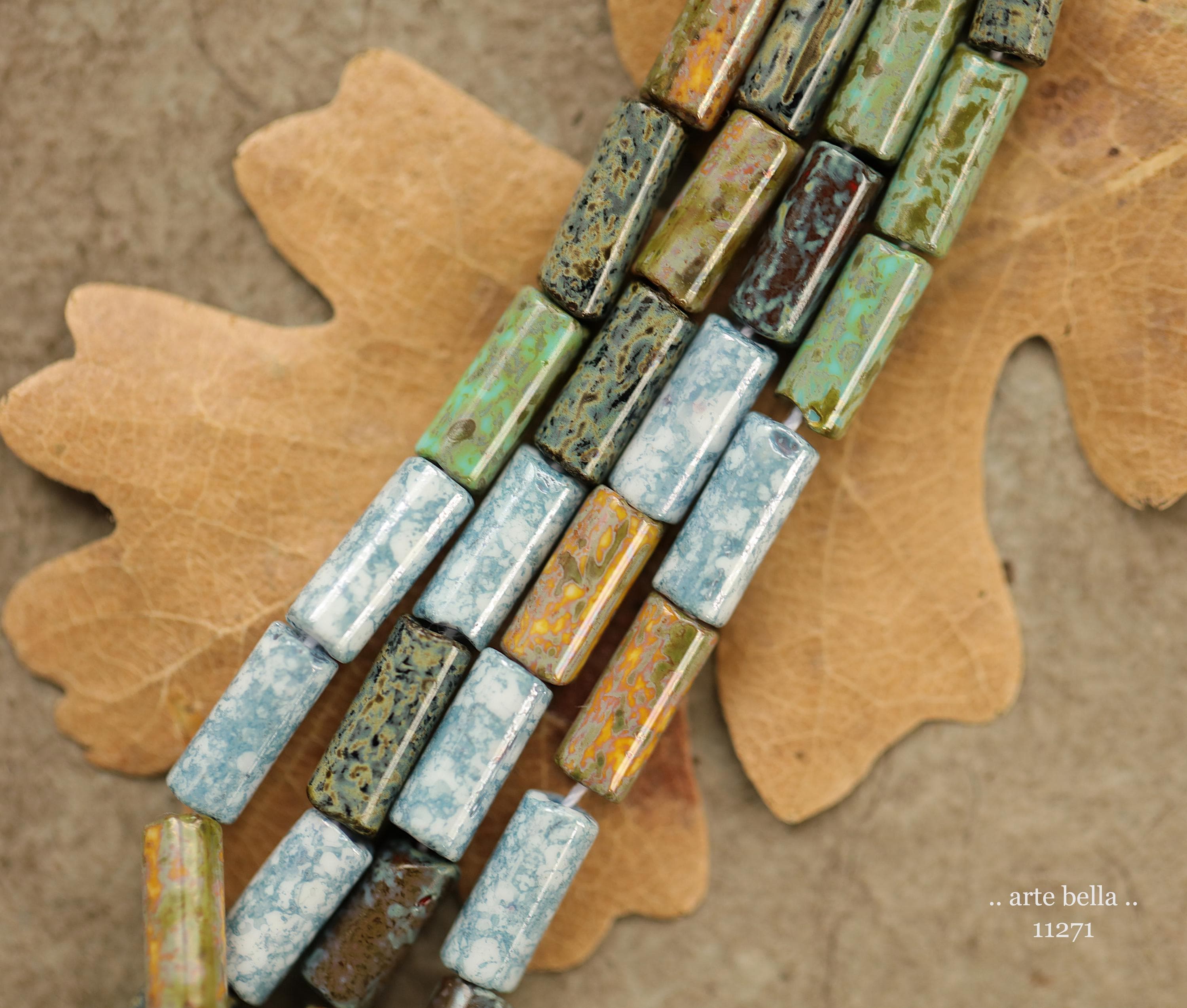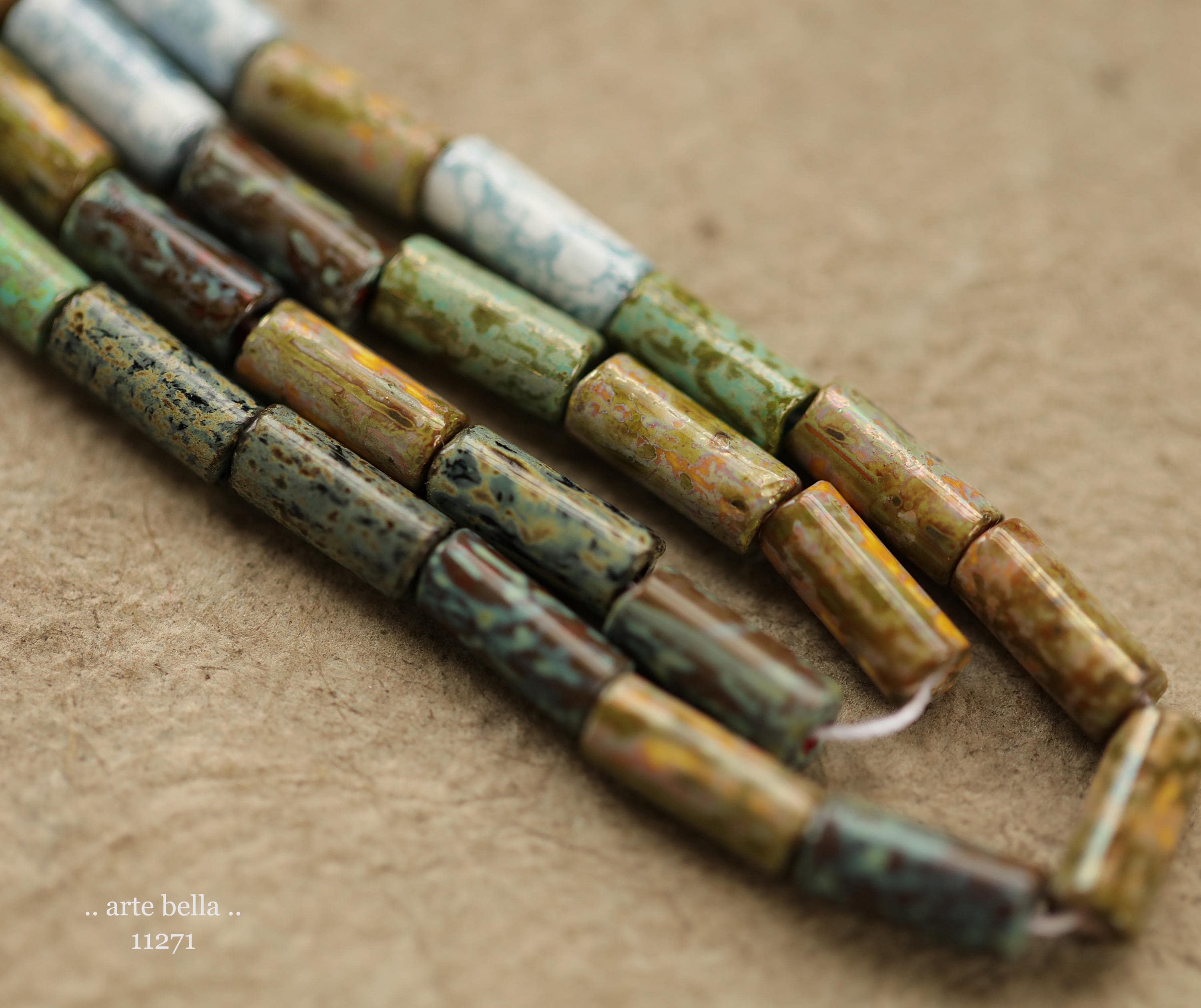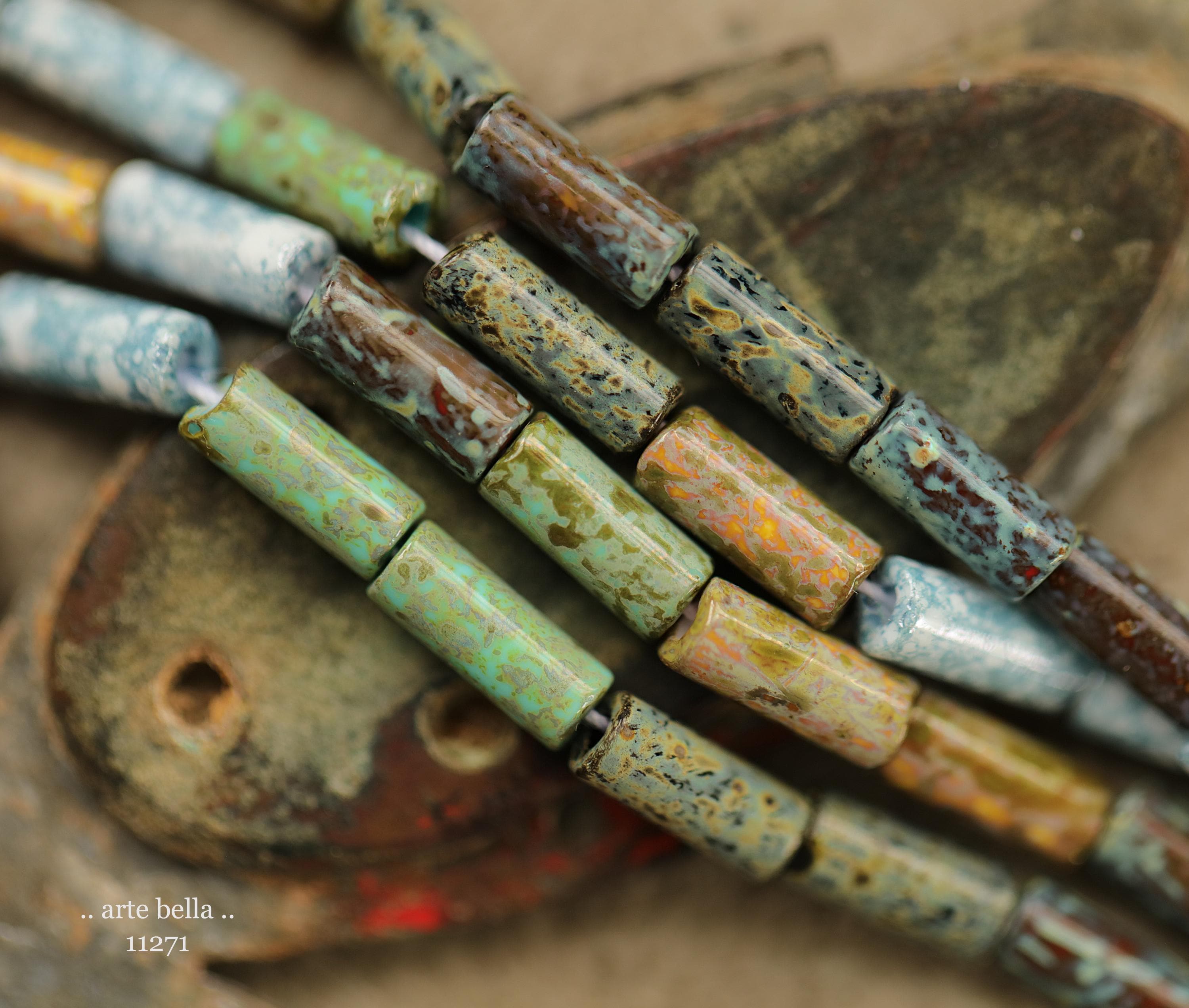 New .. DESERT OASIS TUBES No. 1 .. 20" Premium Heavy Picasso Czech Glass Tube Bugle Bead Mix Size 9x4mm (11271-st) .. jewelry supplies