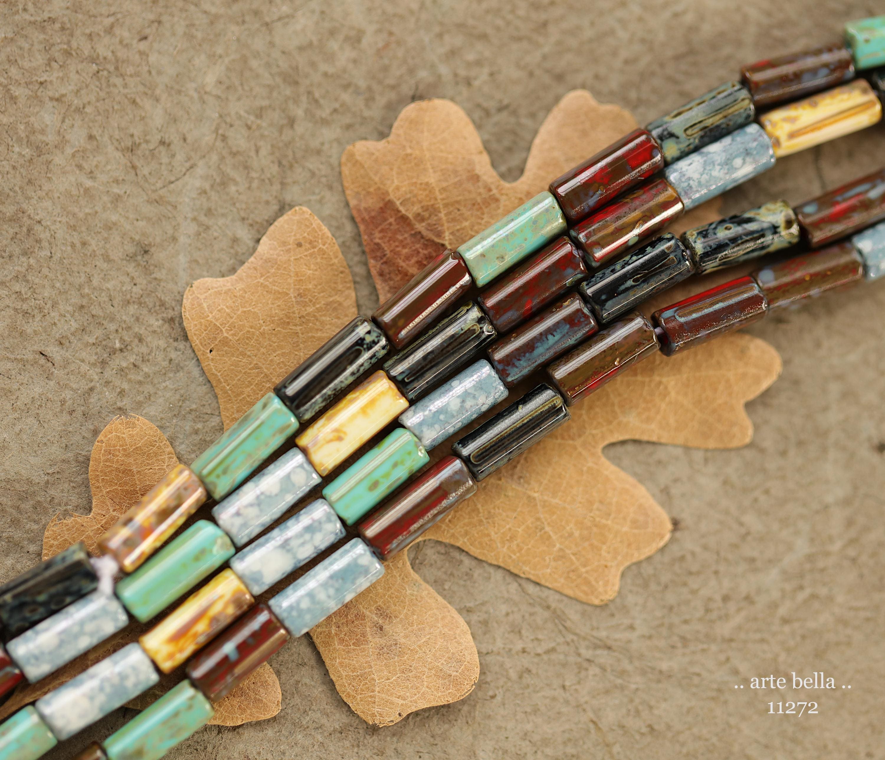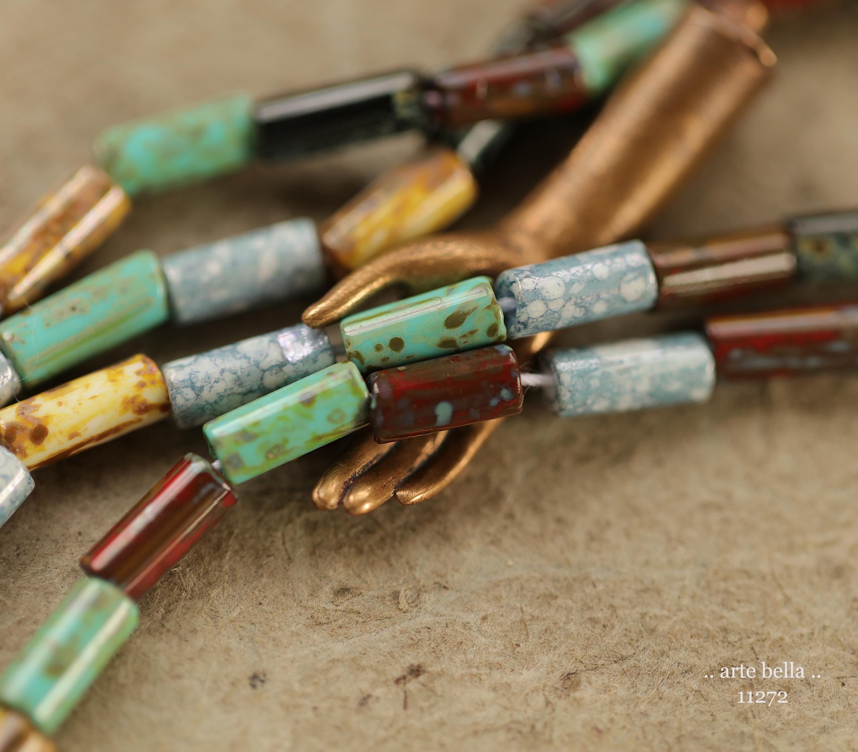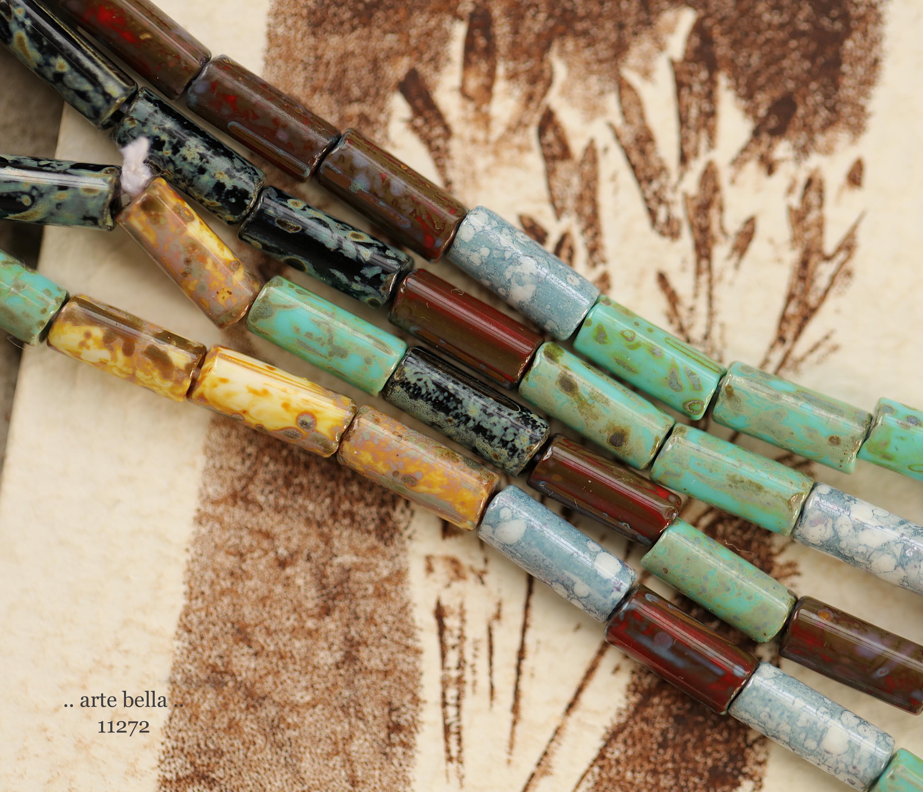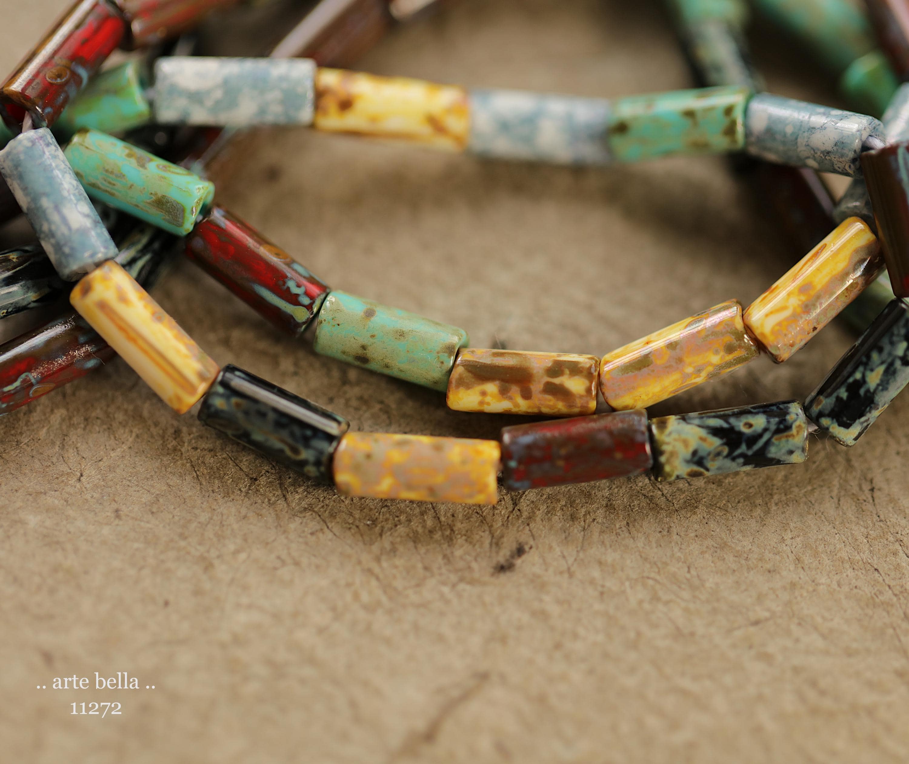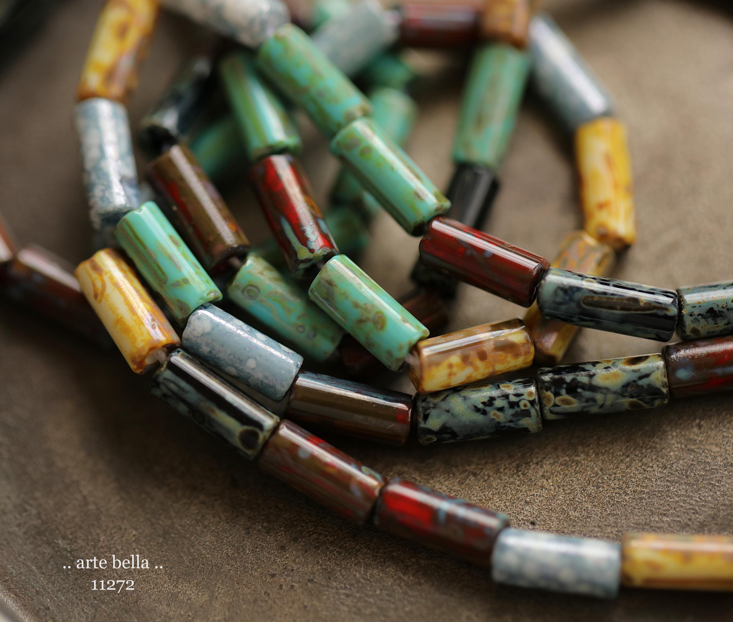 New .. DESERT OASIS TUBES No. 2 .. 20" Premium Picasso Czech Glass Tube Bugle Bead Mix Size 9x4mm (11272-st) .. jewelry supplies