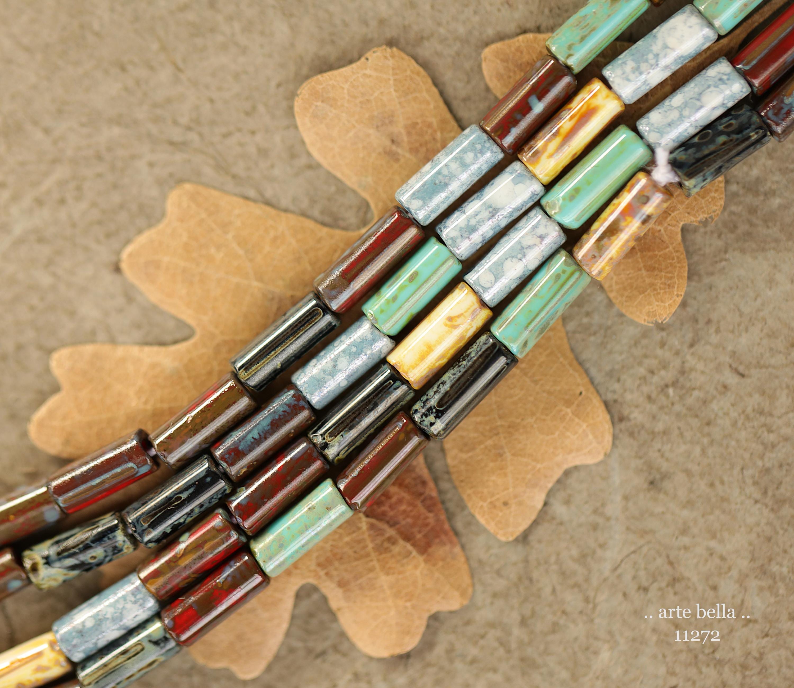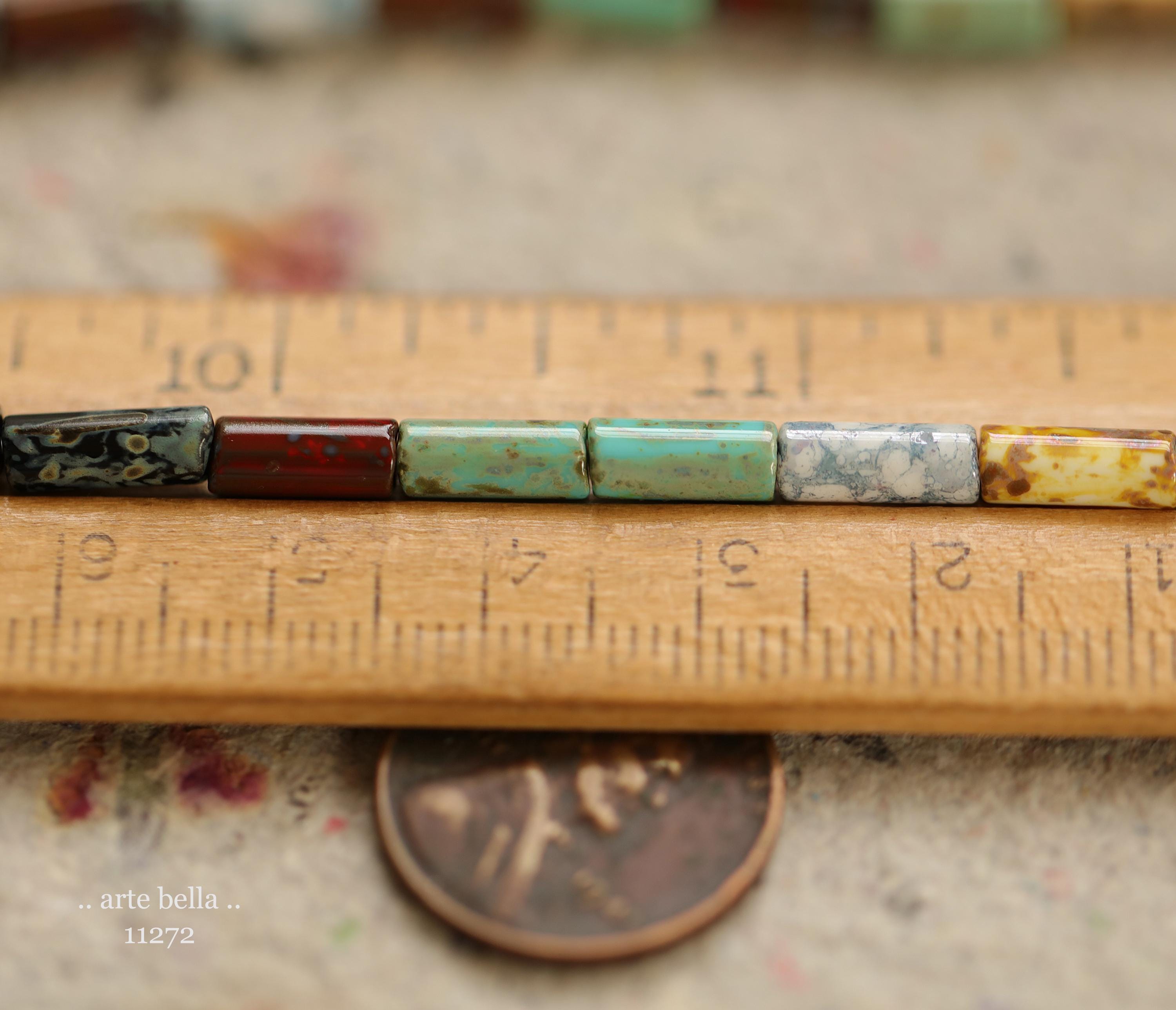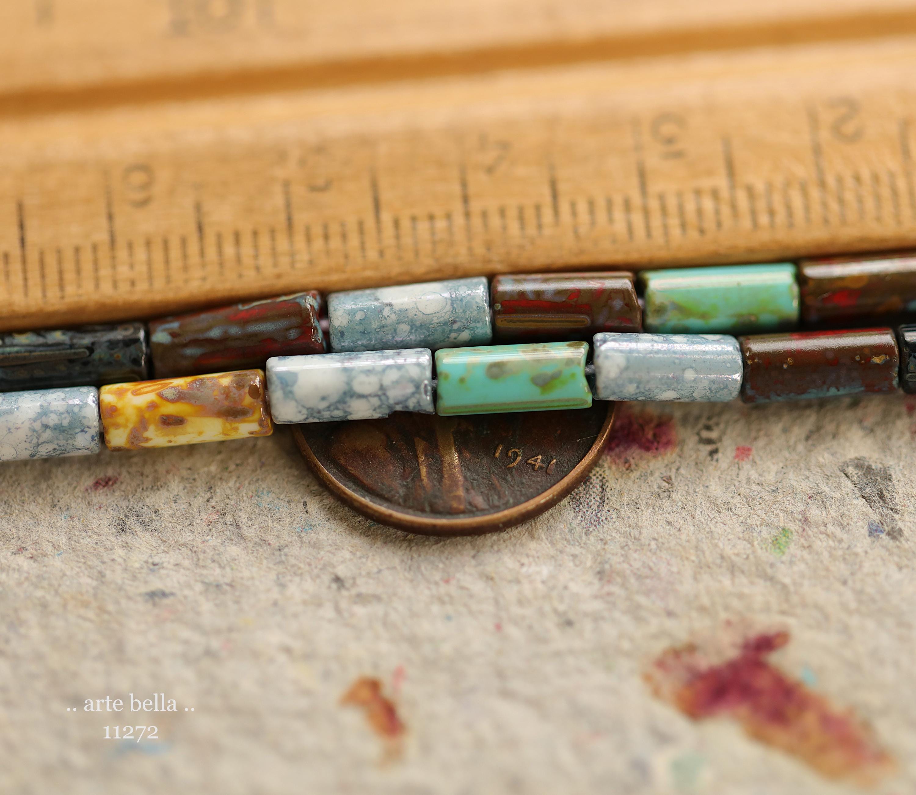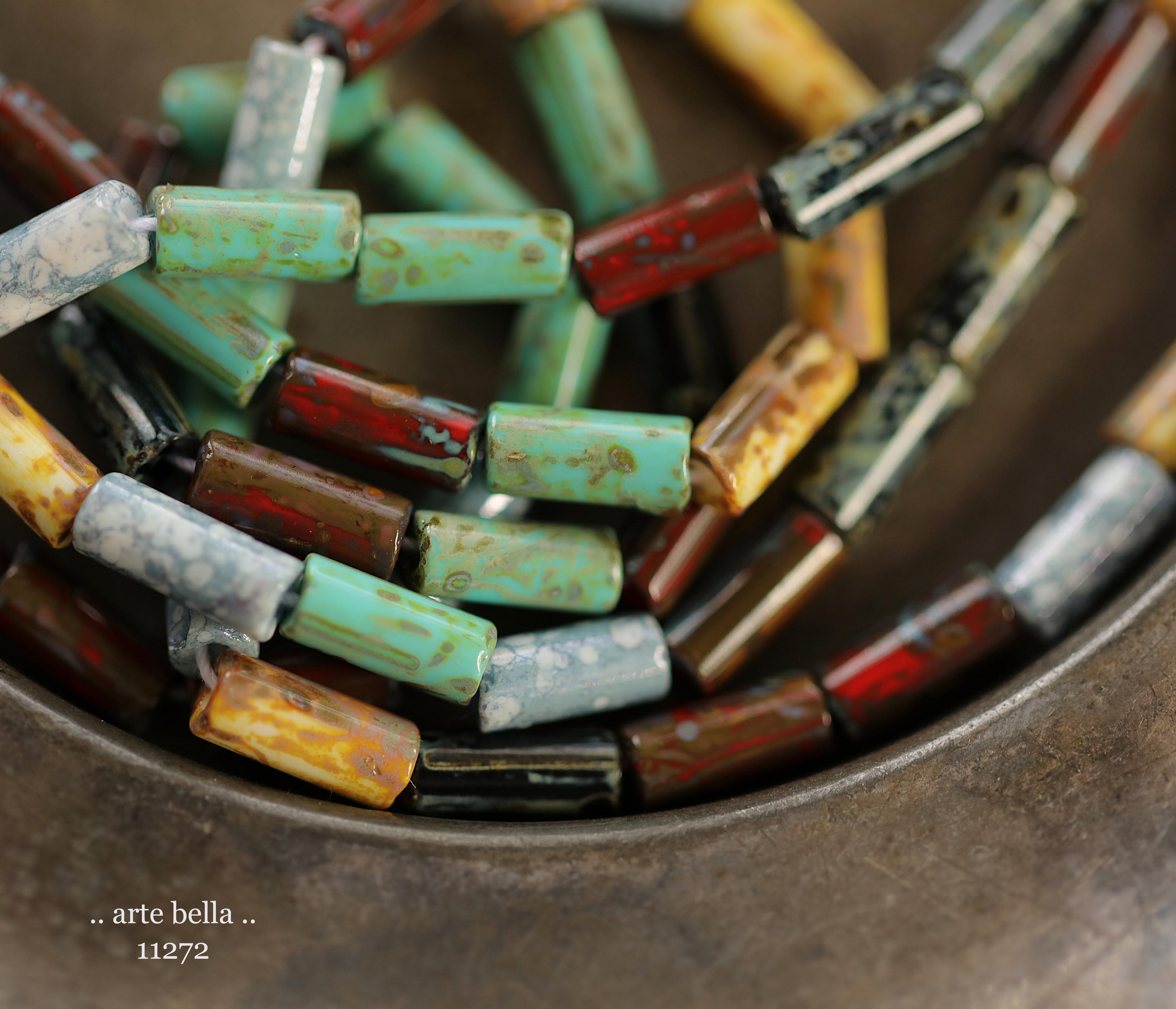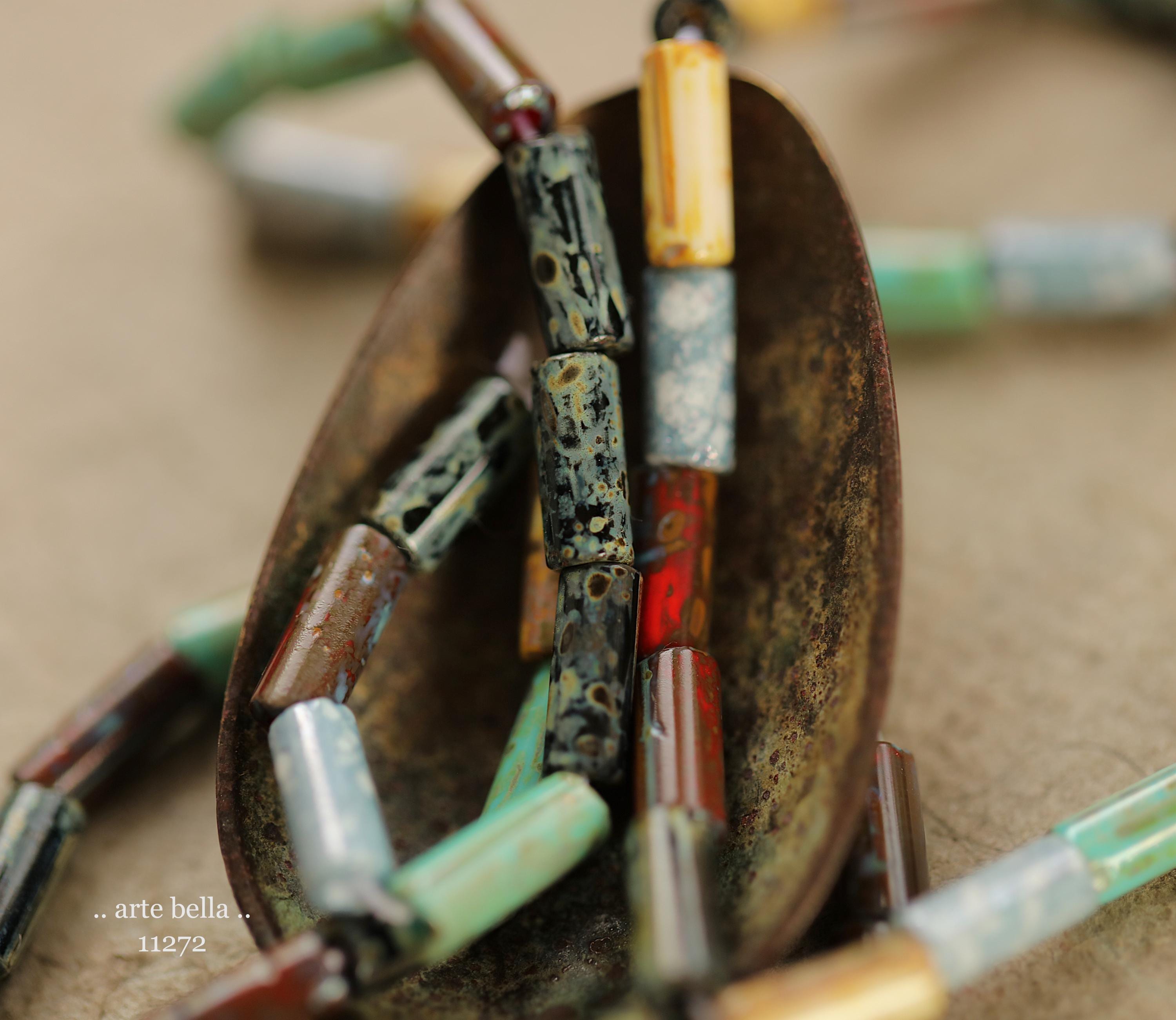 New .. DESERT OASIS TUBES No. 2 .. 20" Premium Picasso Czech Glass Tube Bugle Bead Mix Size 9x4mm (11272-st) .. jewelry supplies