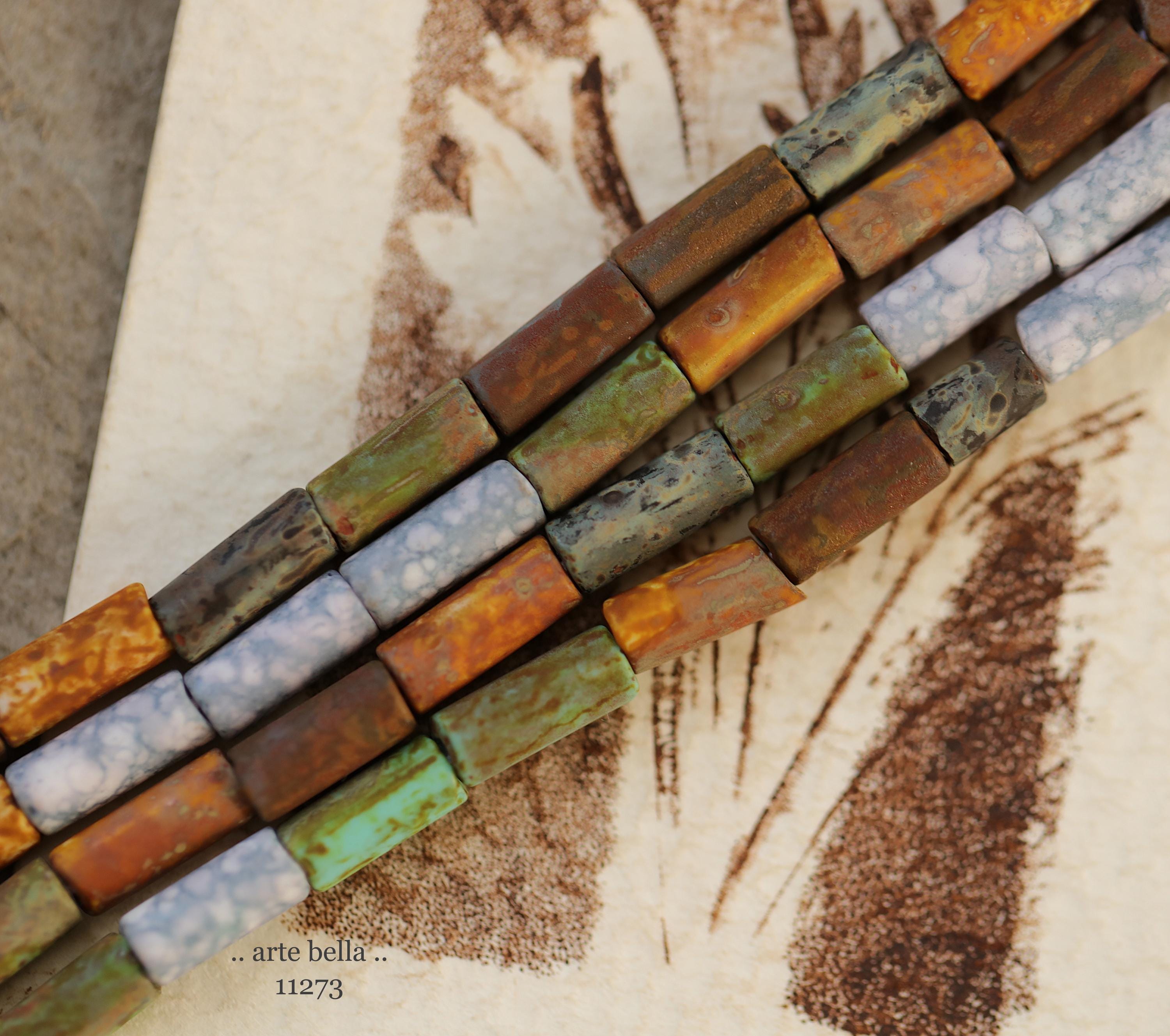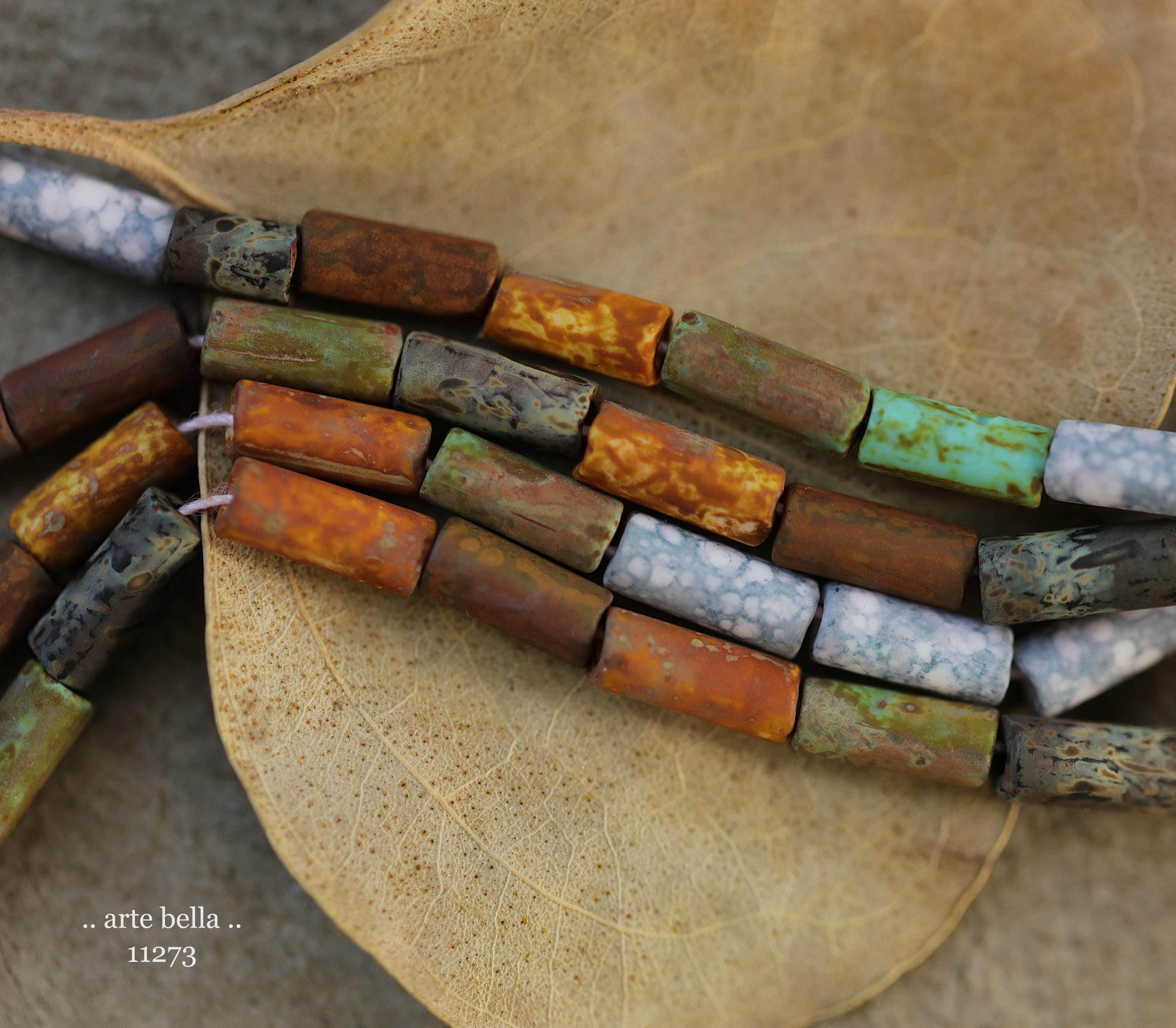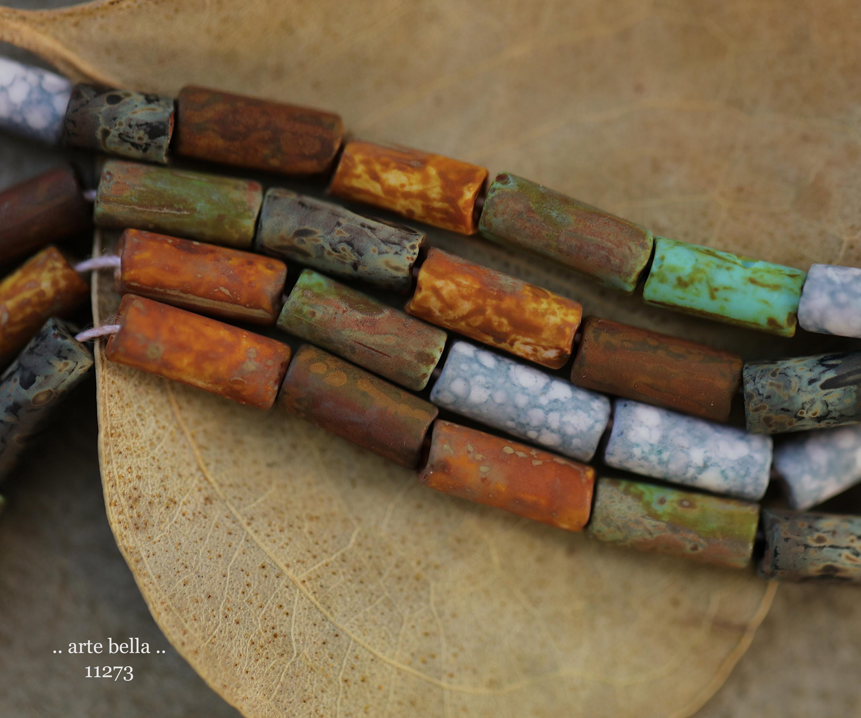 New .. Matte DESERT OASIS TUBES .. 20" Premium Picasso Czech Glass Tube Bugle Bead Mix Size 9x4mm (11273-st) .. jewelry supplies