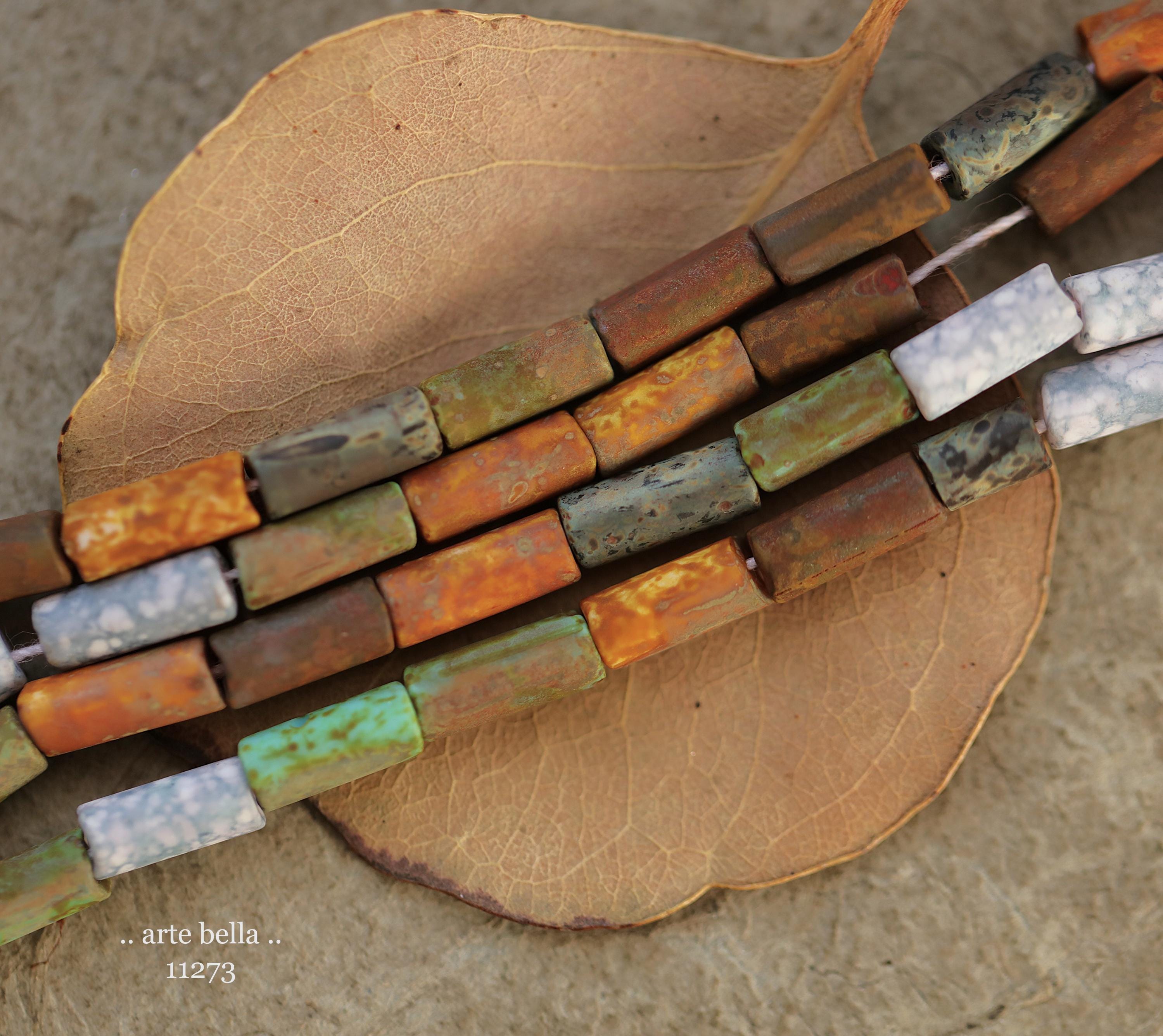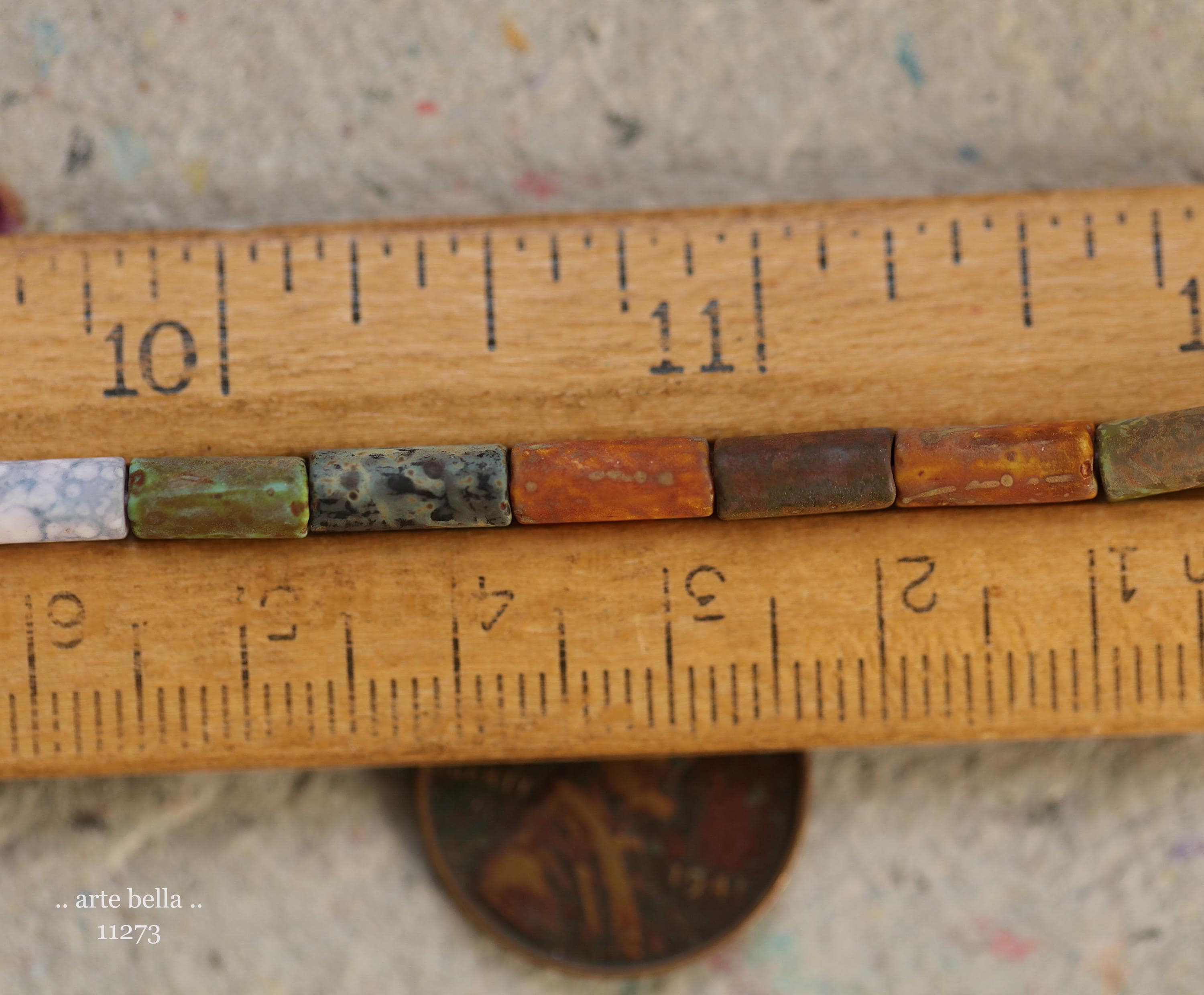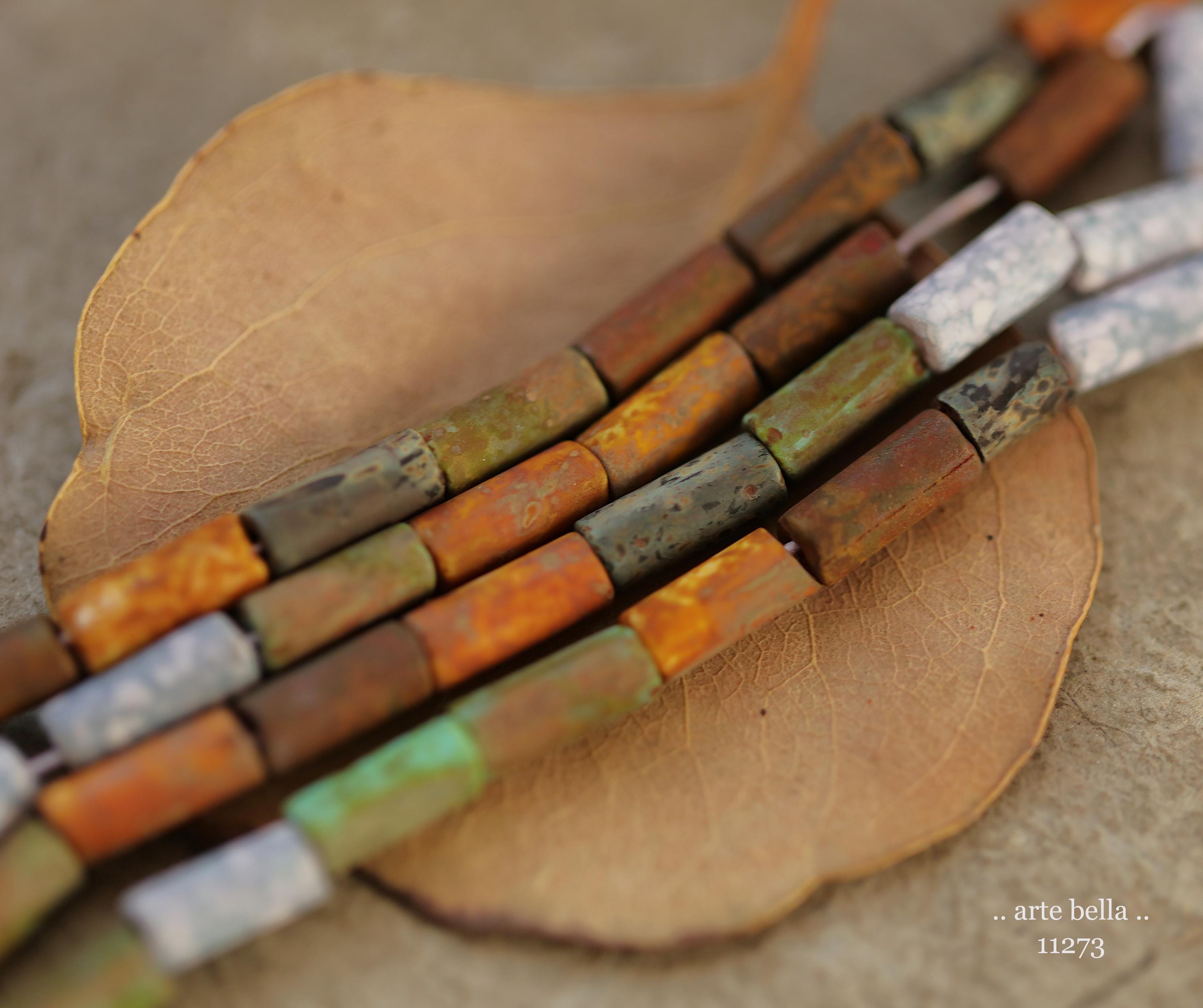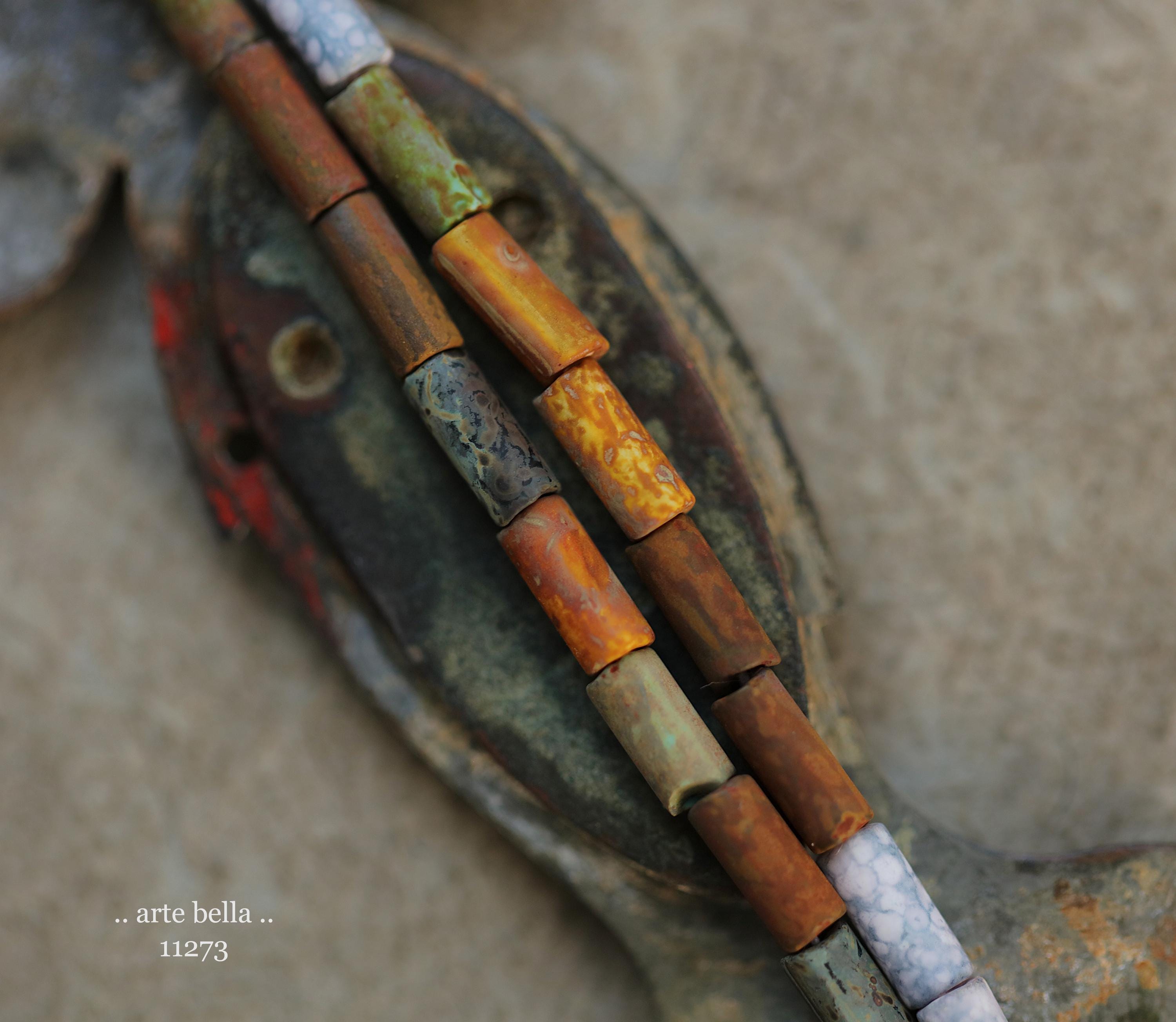 New .. Matte DESERT OASIS TUBES .. 20" Premium Picasso Czech Glass Tube Bugle Bead Mix Size 9x4mm (11273-st) .. jewelry supplies