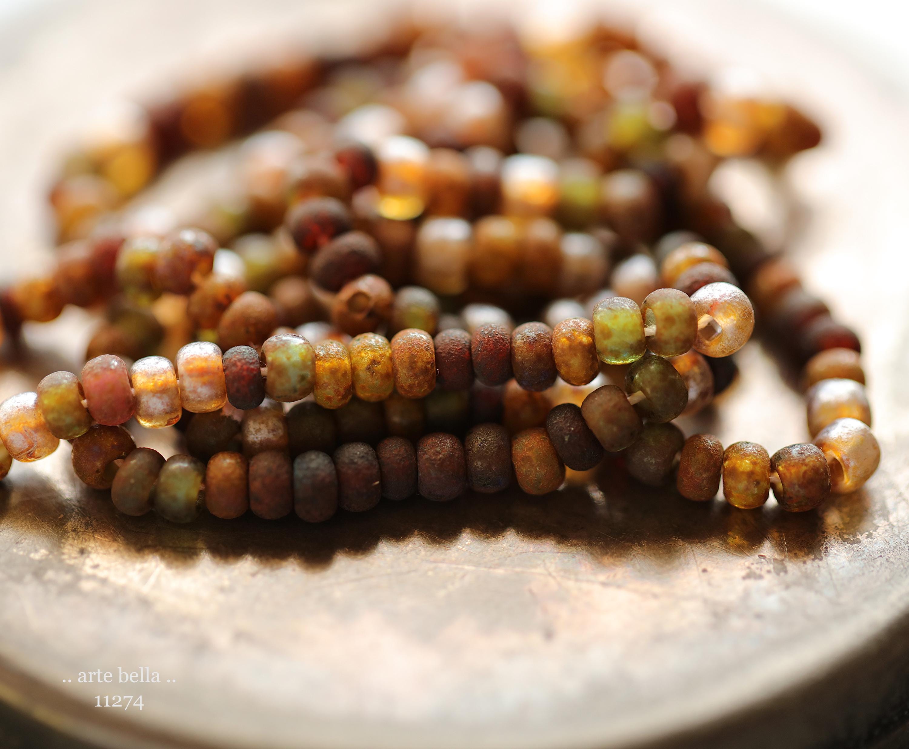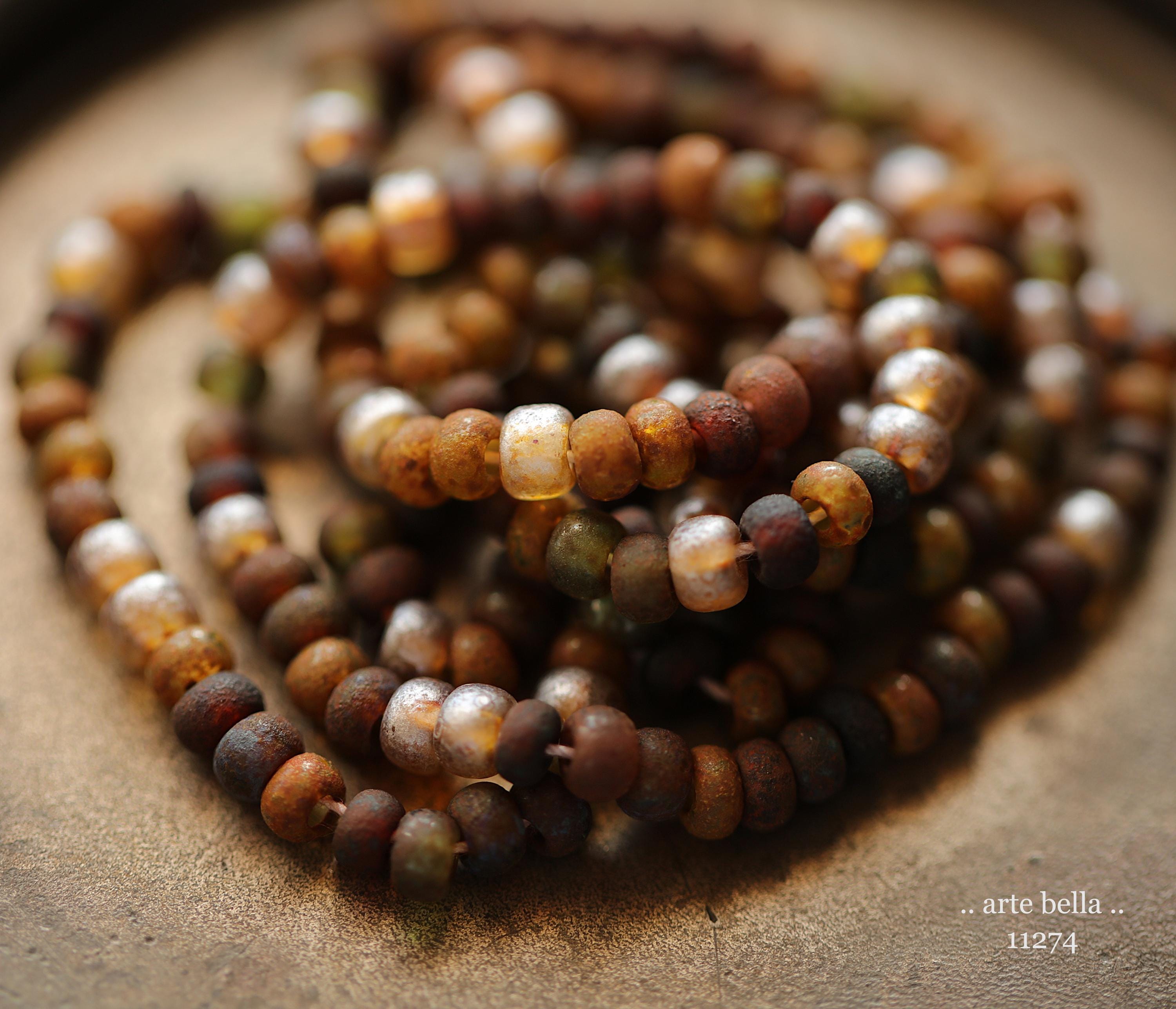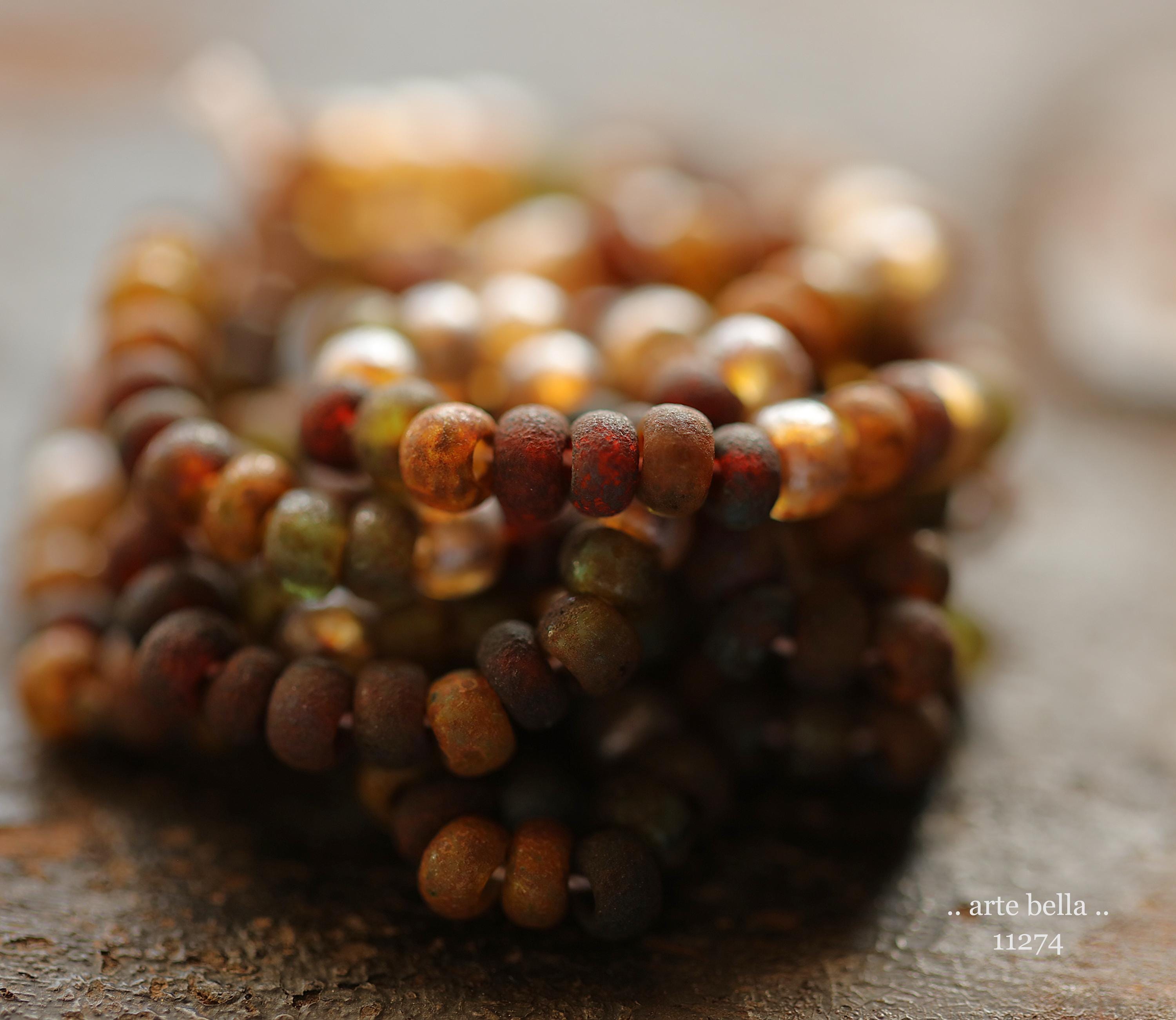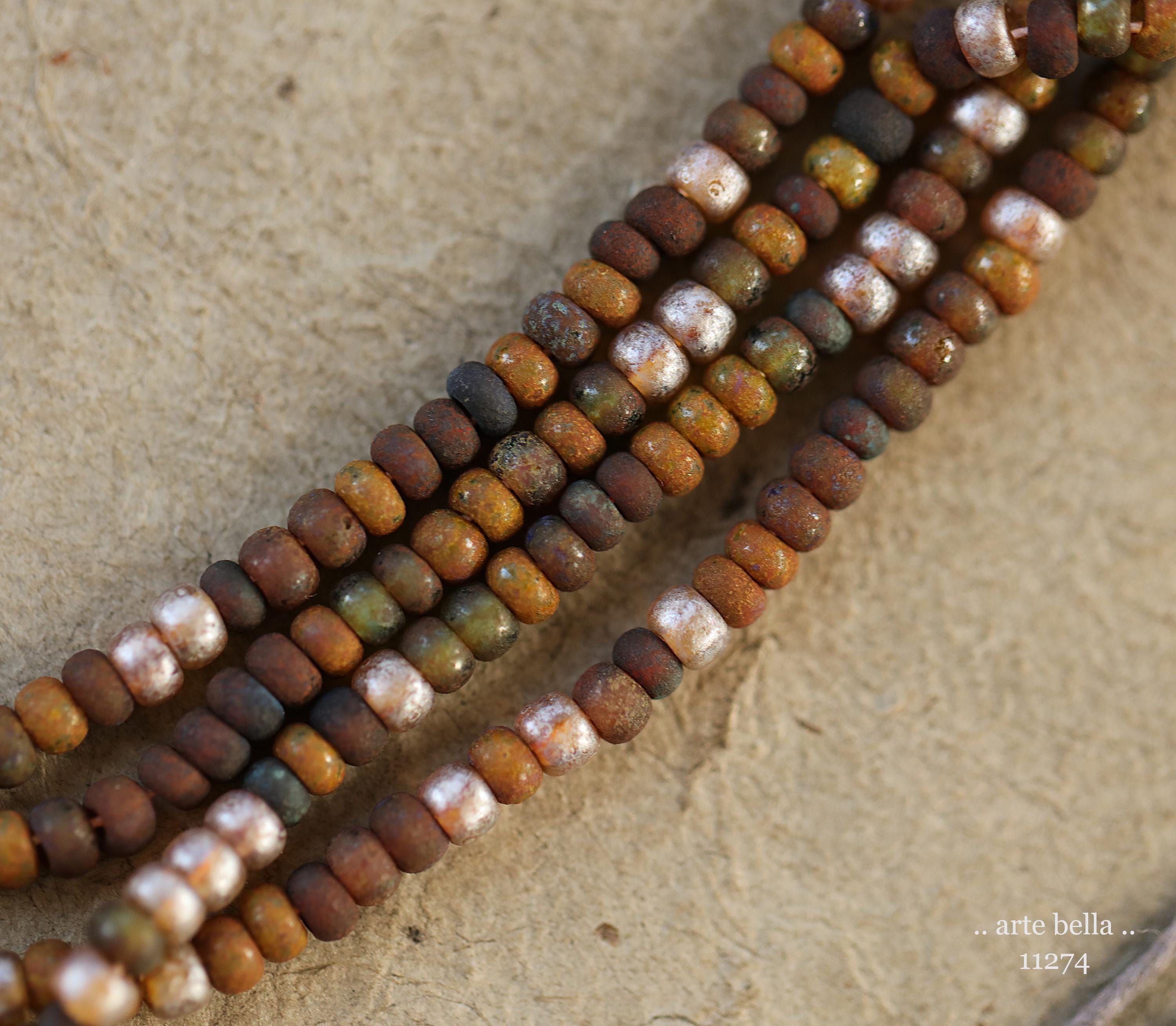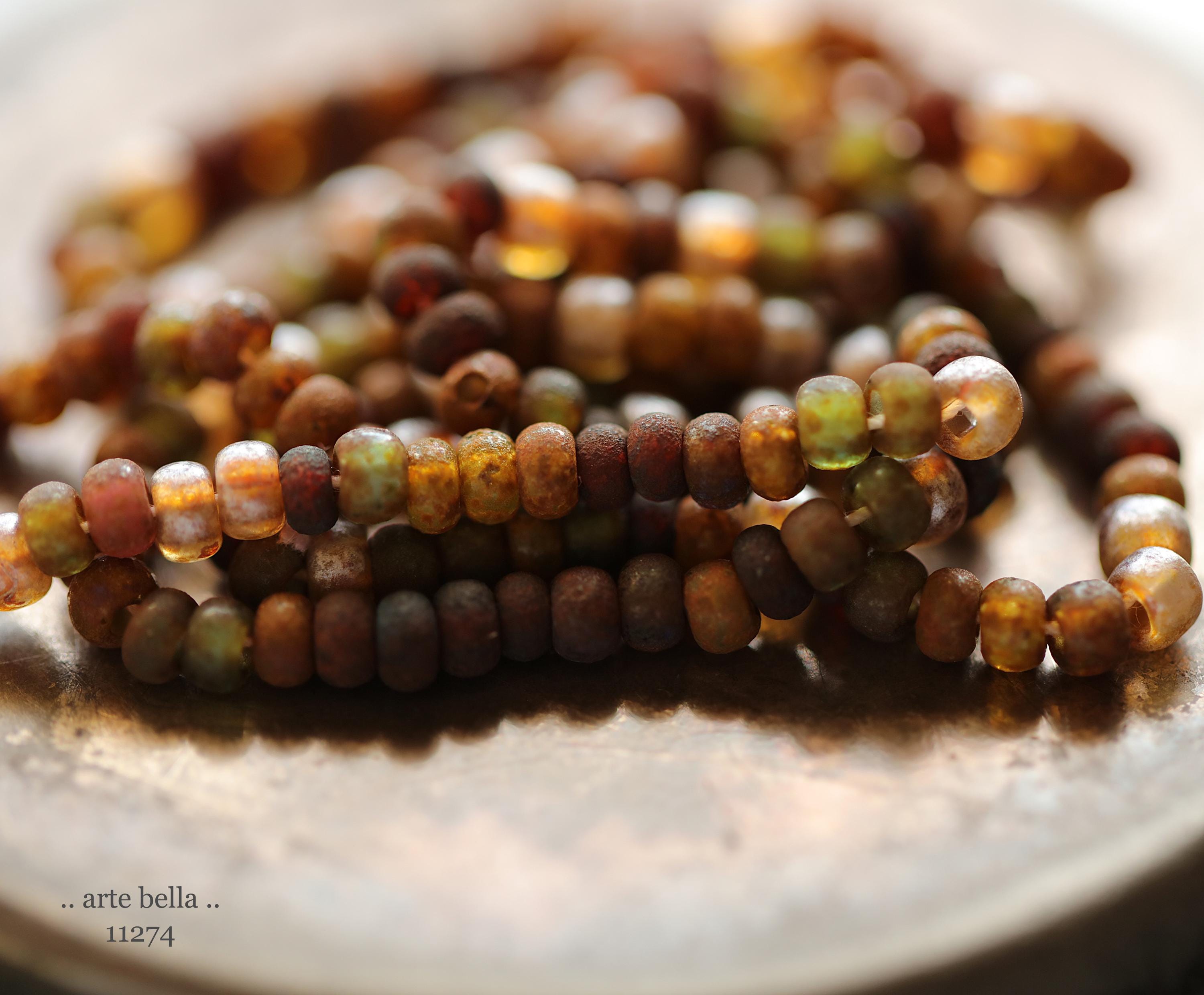 Great mix of petite seeds in various colors as noted in my pictures with an matte/etched earthy Picasso with some beads having a matte silver metallic luster finish. Beads are dark until transmitted by light. **PLEASE NOTE: Size of the beads do vary slightly, please take this into account before ordering if you require beads to be a precise size for your project. Also, this is a random mix and I cannot guarantee you will receive each color pictured.**