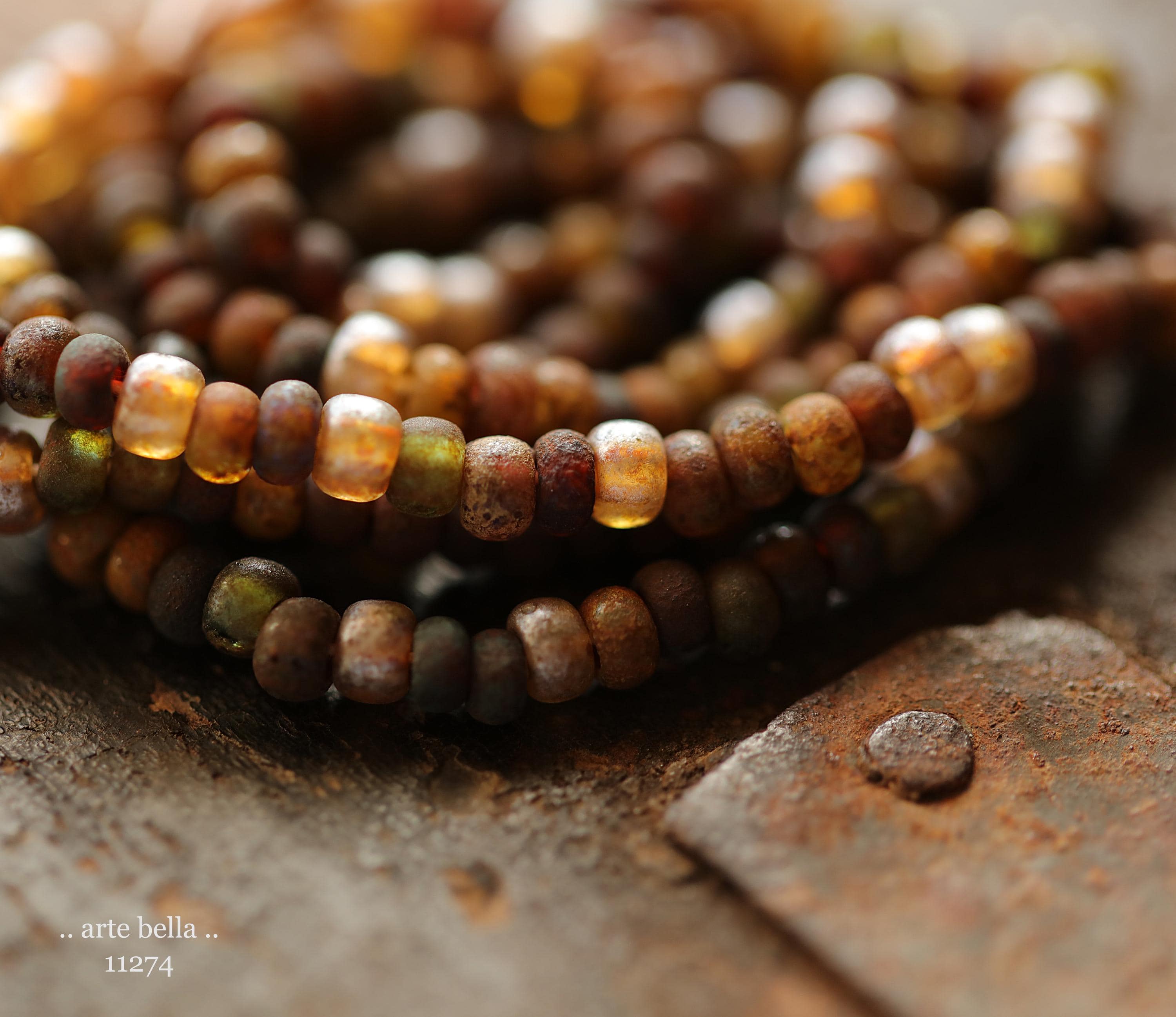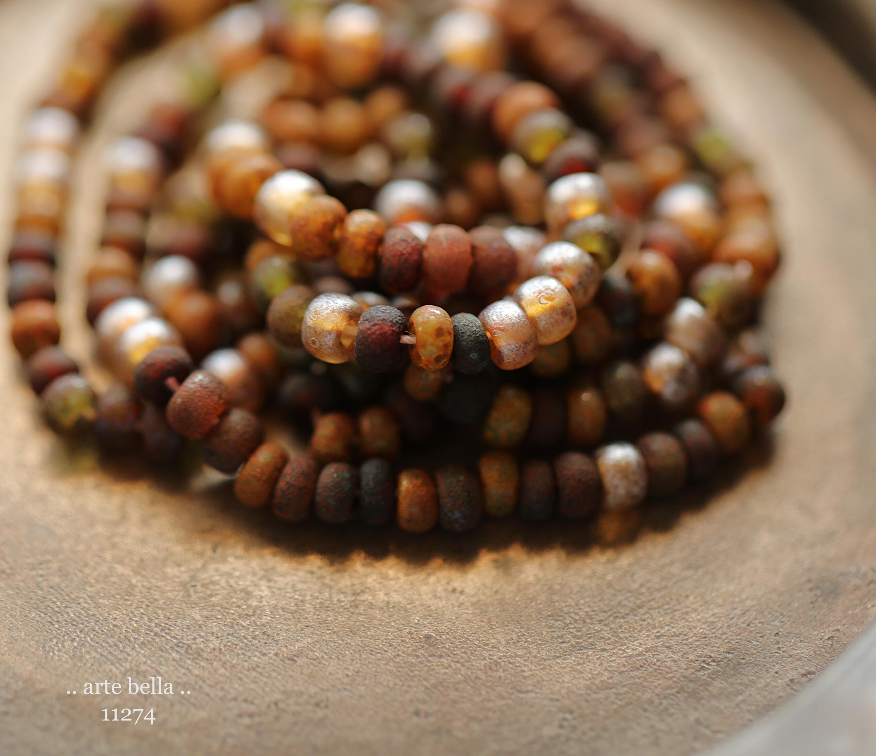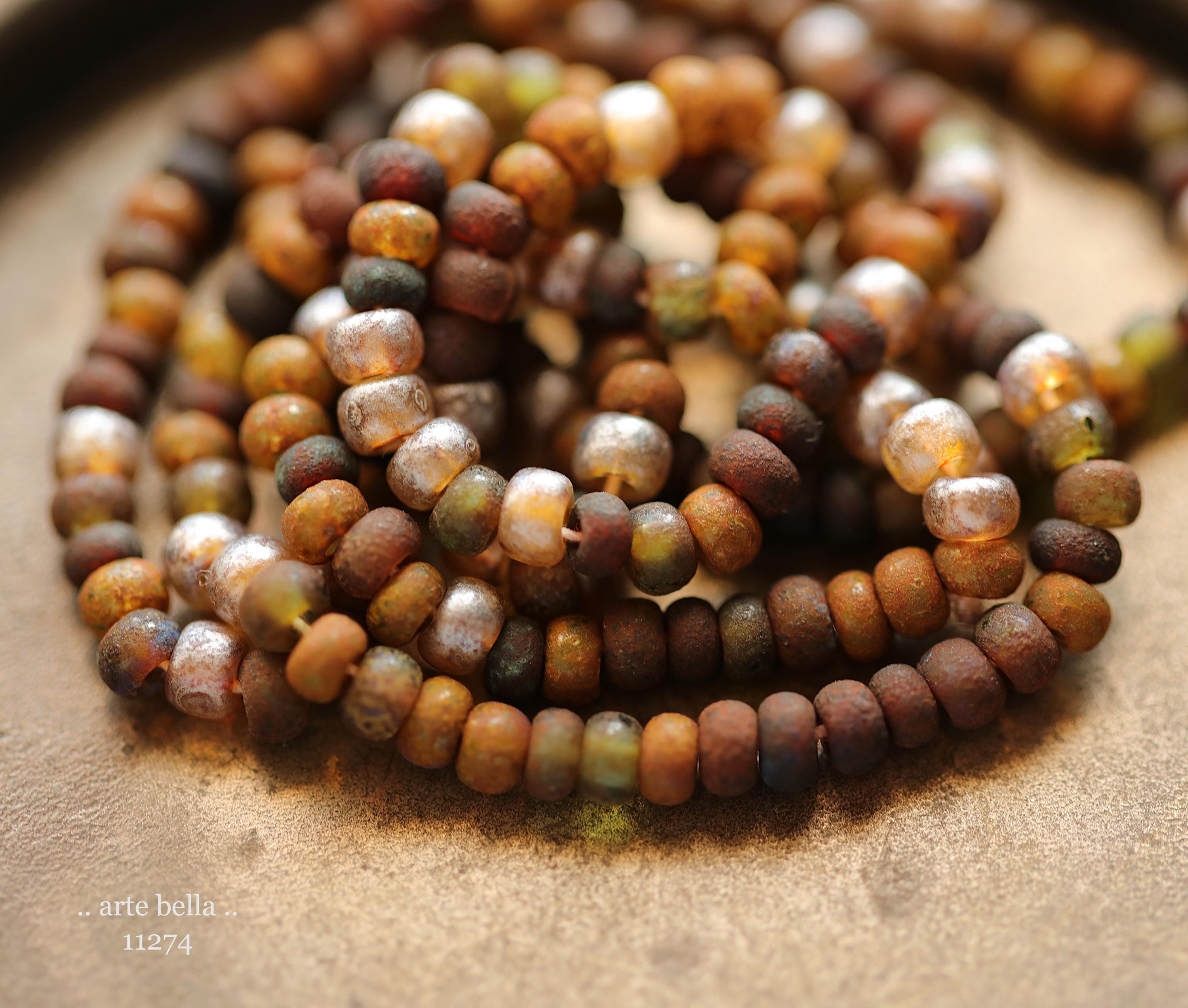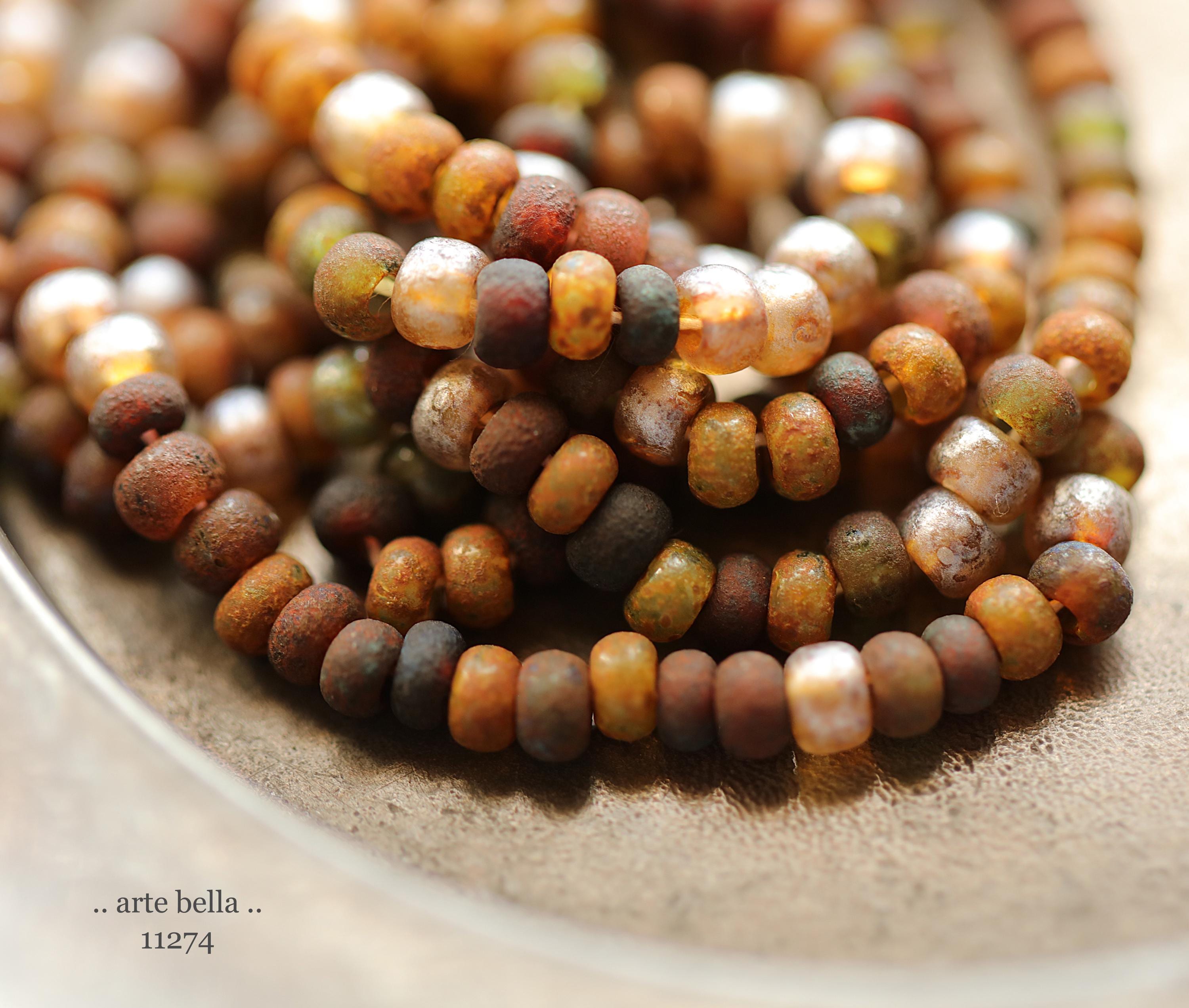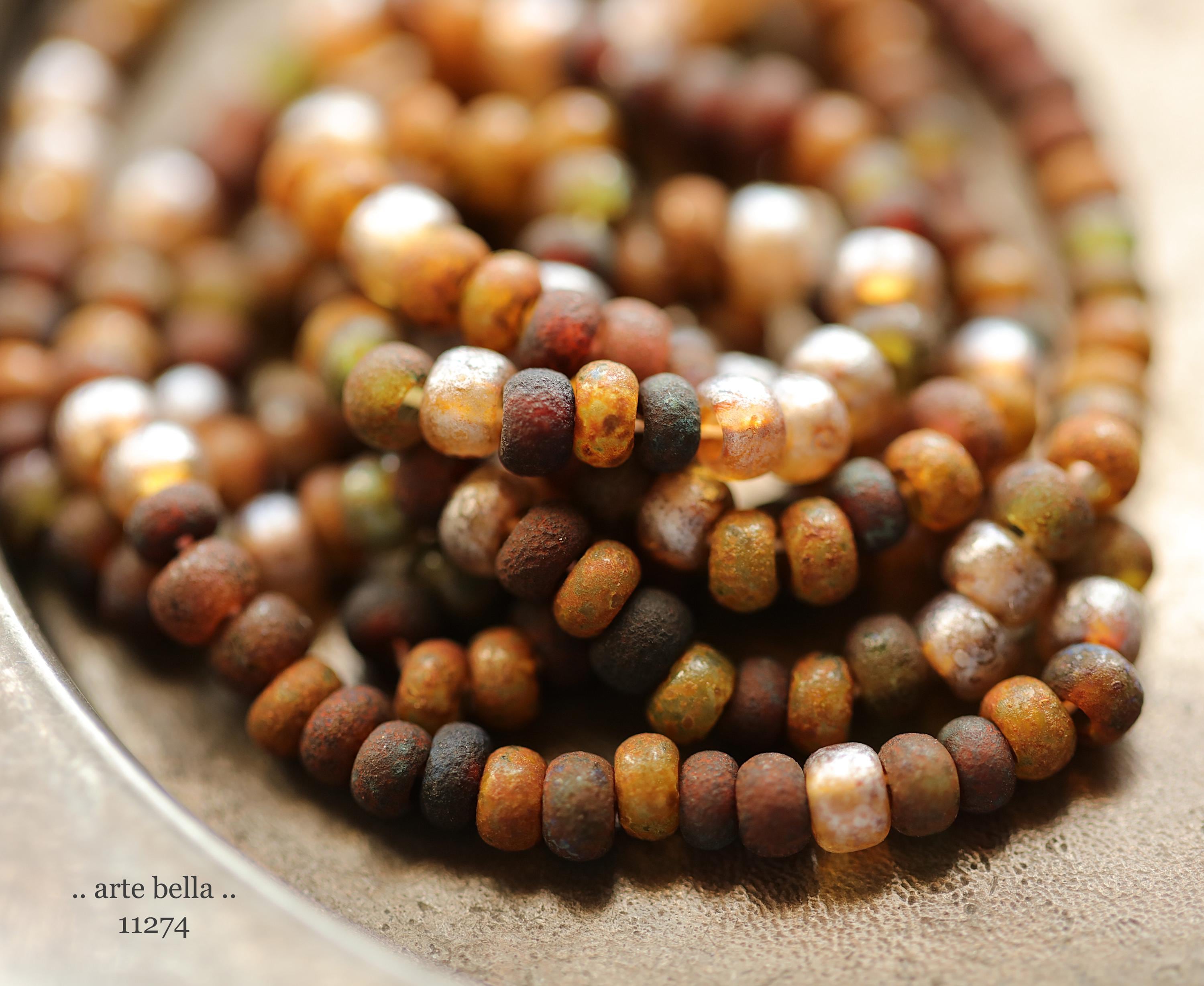 Great mix of petite seeds in various colors as noted in my pictures with an matte/etched earthy Picasso with some beads having a matte silver metallic luster finish. Beads are dark until transmitted by light. **PLEASE NOTE: Size of the beads do vary slightly, please take this into account before ordering if you require beads to be a precise size for your project. Also, this is a random mix and I cannot guarantee you will receive each color pictured.**