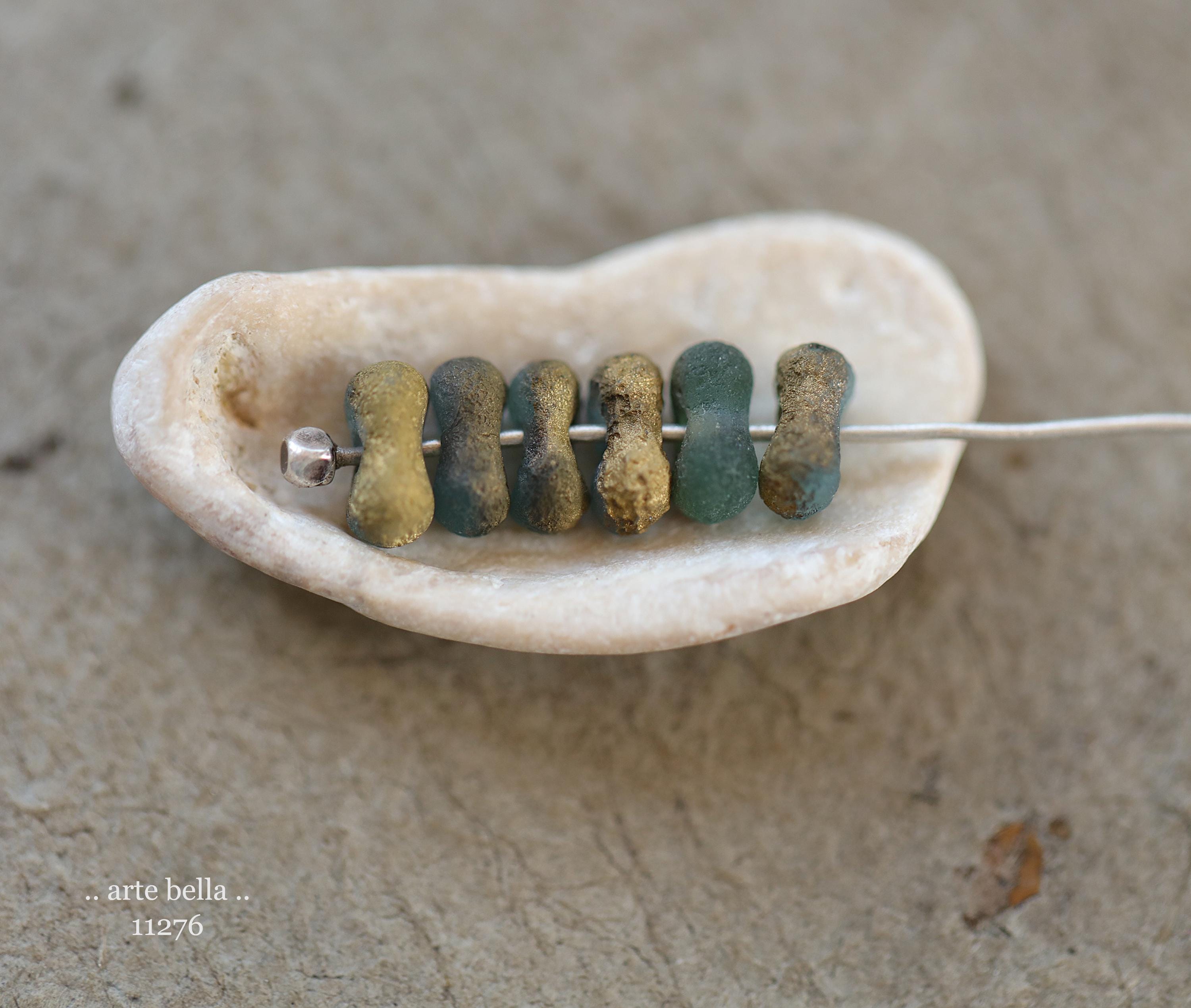 New .. GOLDEN OCEAN FARFALLES .. 100 Etched Czech Glass Peanut Beads 4x6mm (11276-100) .. jewelry supplies