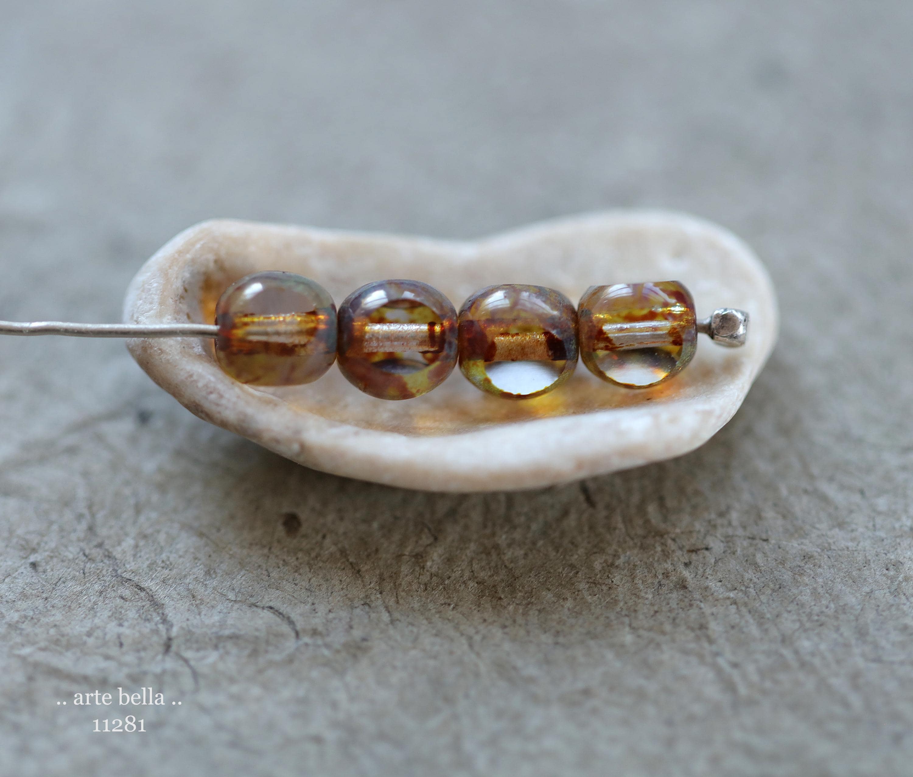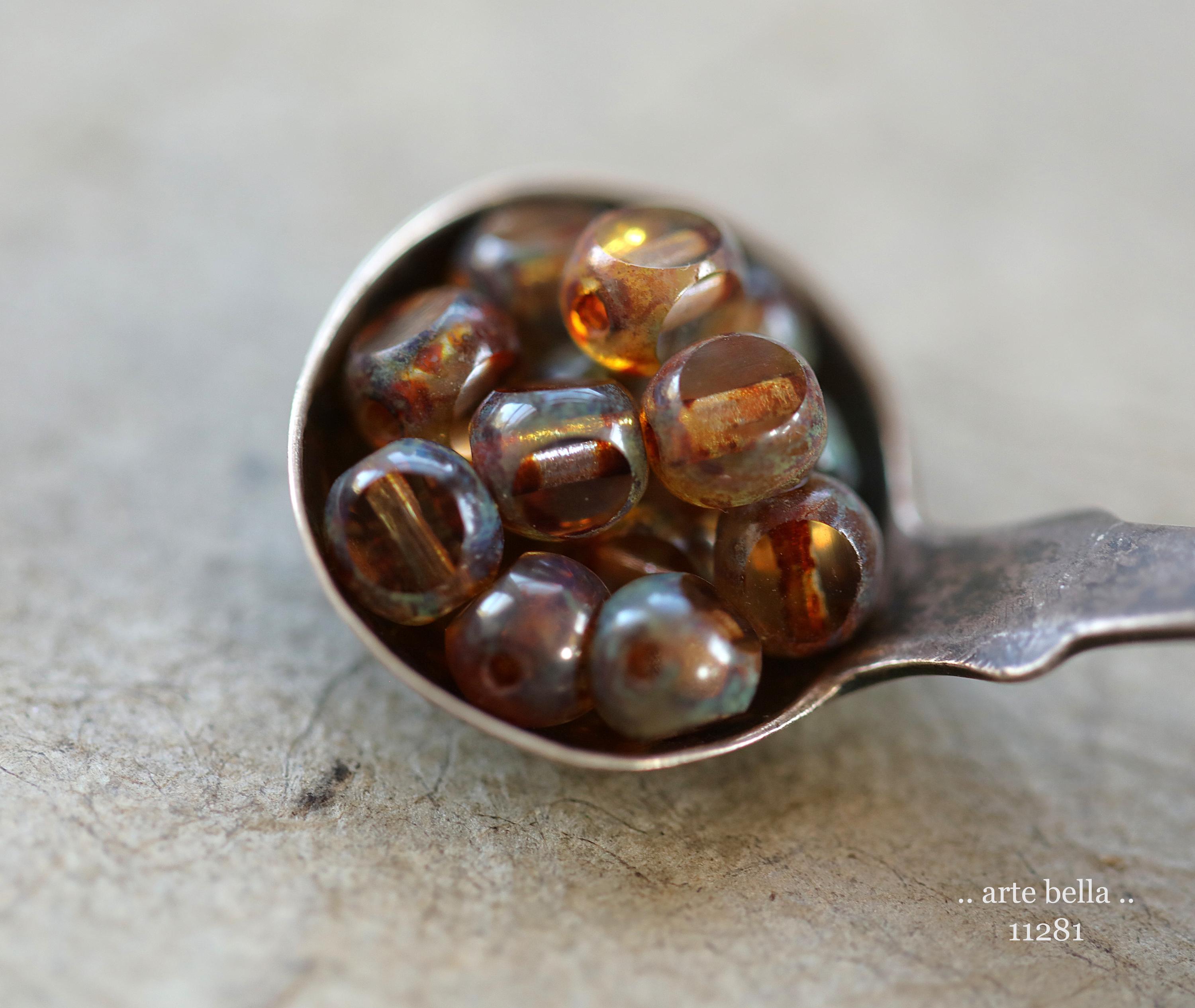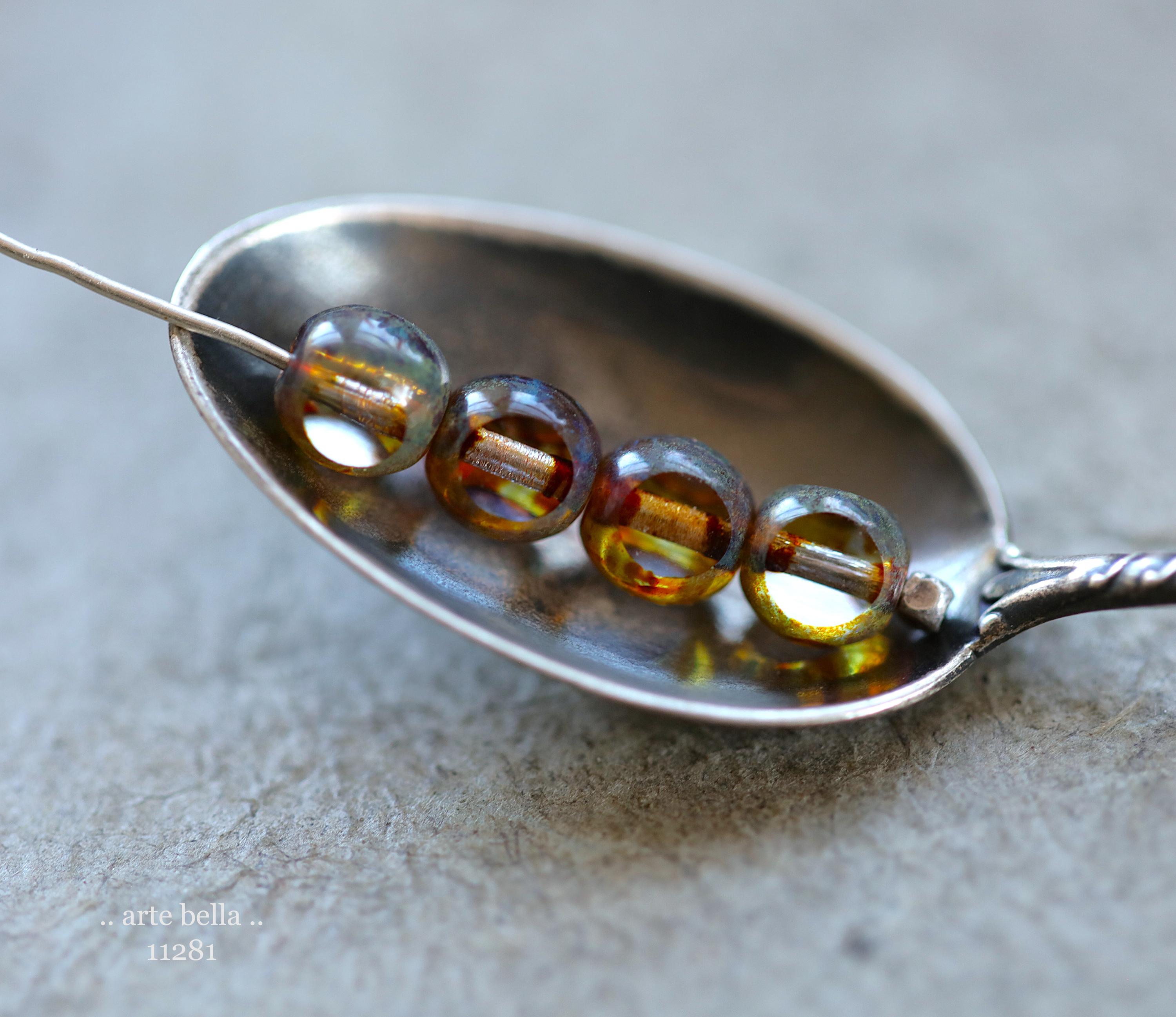 New .. EARTHY ALEXANDRITE MIST .. 20 Picasso Czech Glass Faceted Round Beads 6mm (11281-20) .. jewelry making supplies
