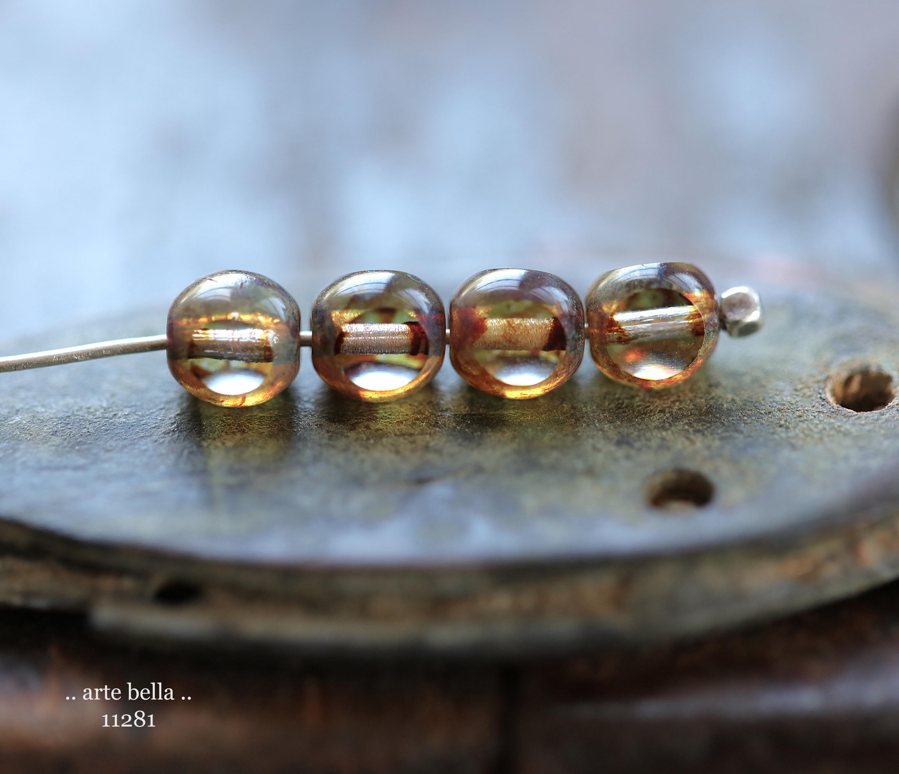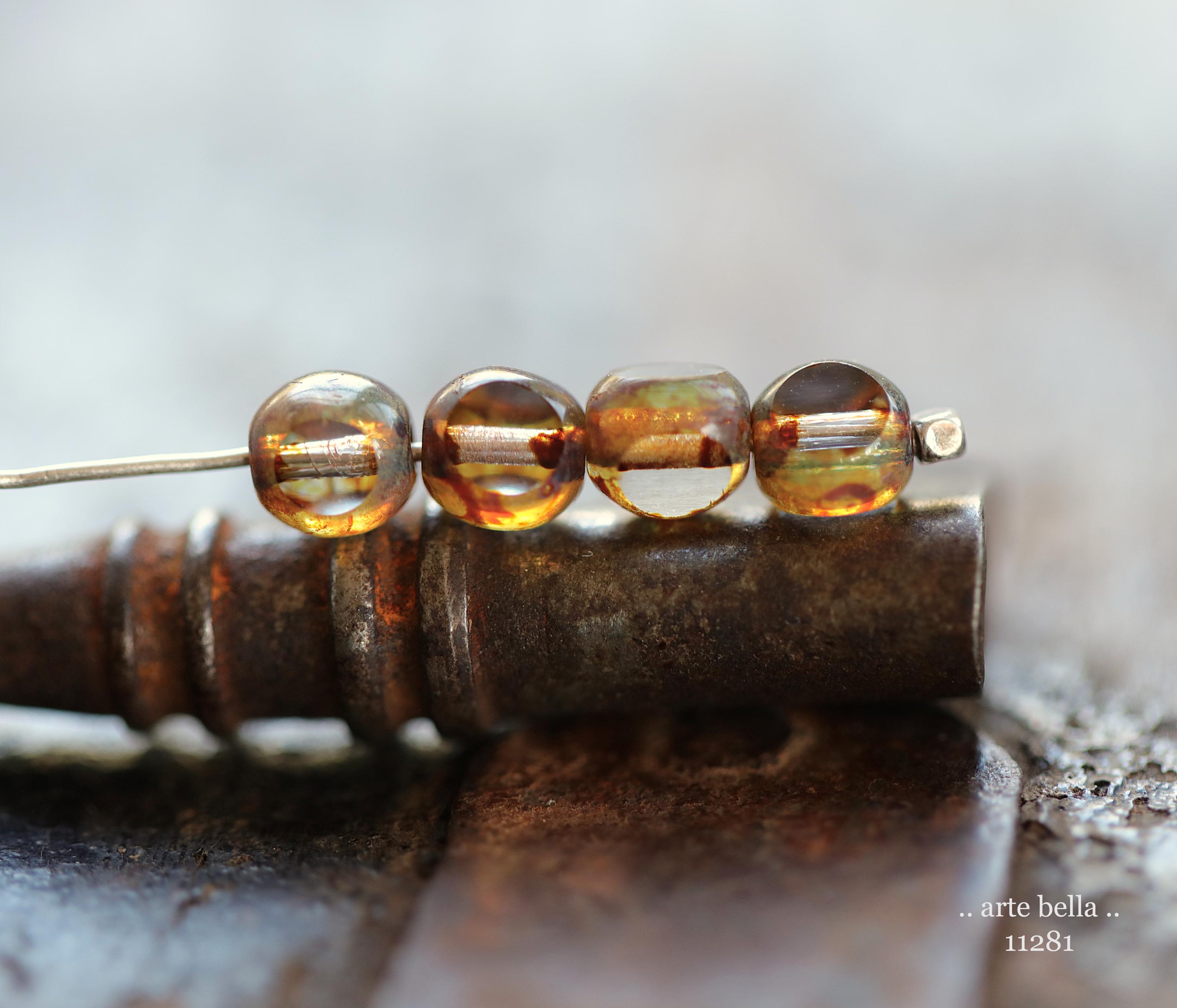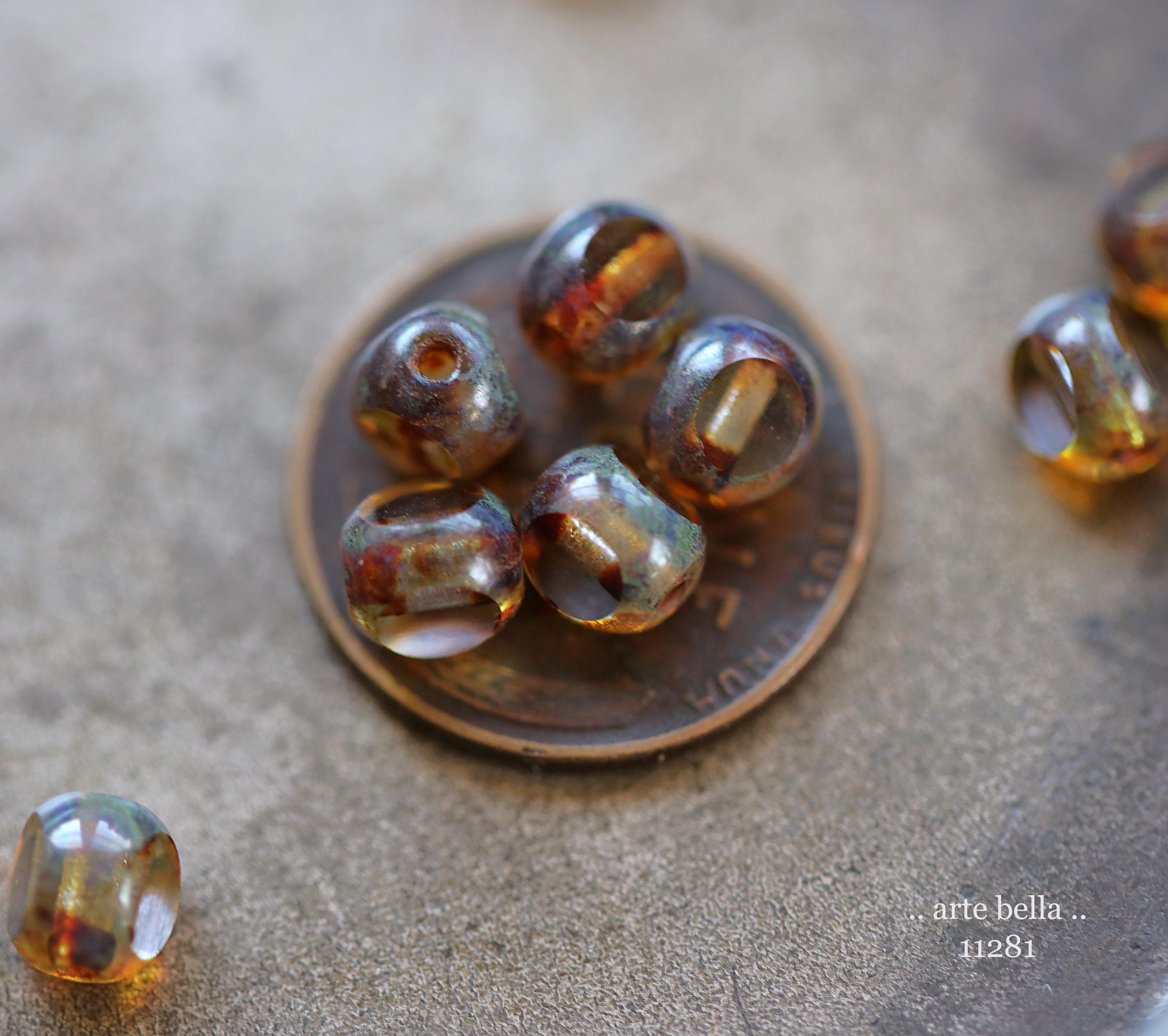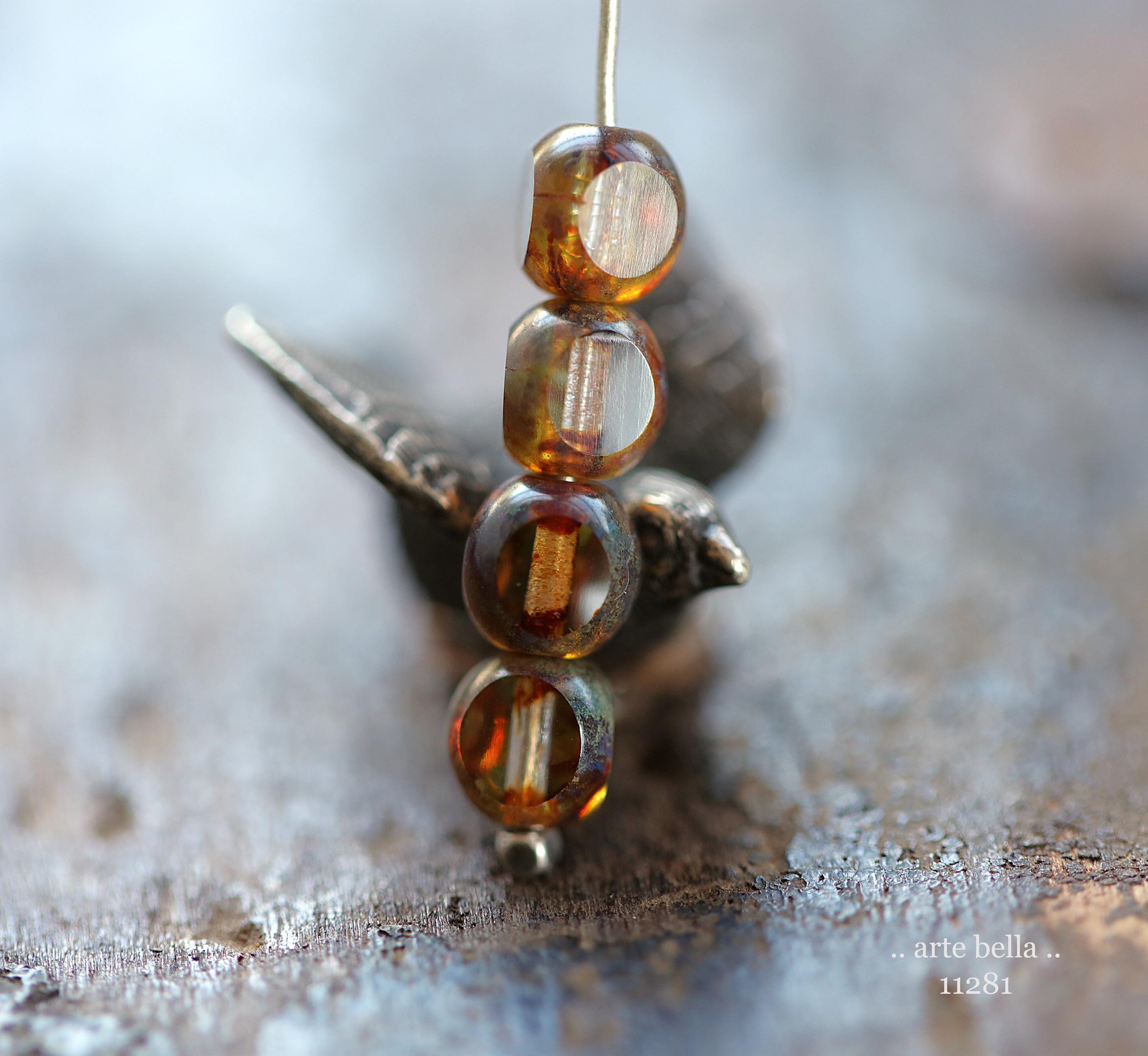 New .. EARTHY ALEXANDRITE MIST .. 20 Picasso Czech Glass Faceted Round Beads 6mm (11281-20) .. jewelry making supplies
