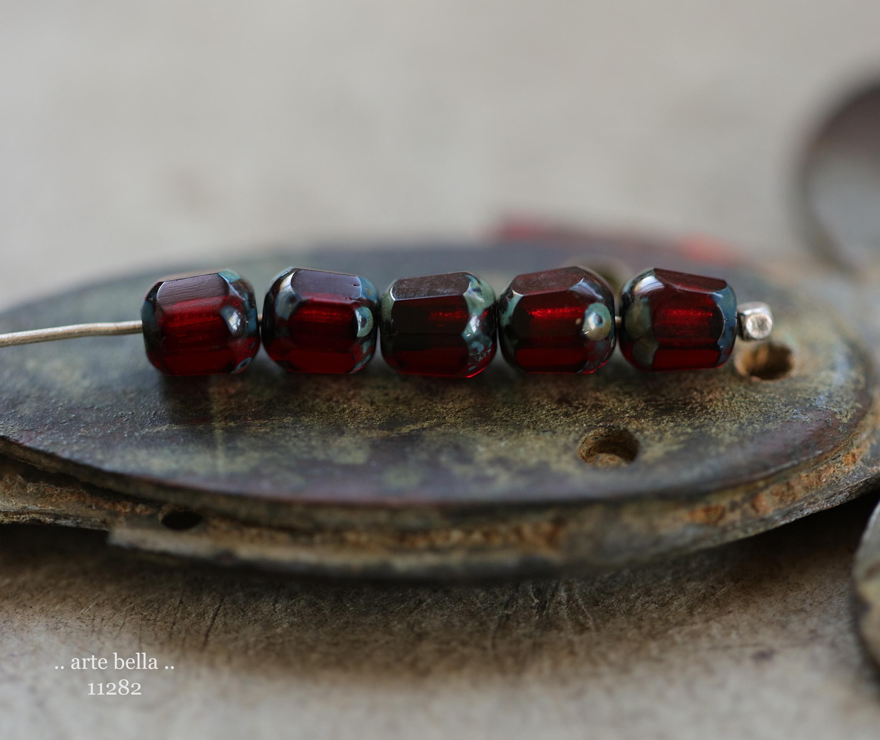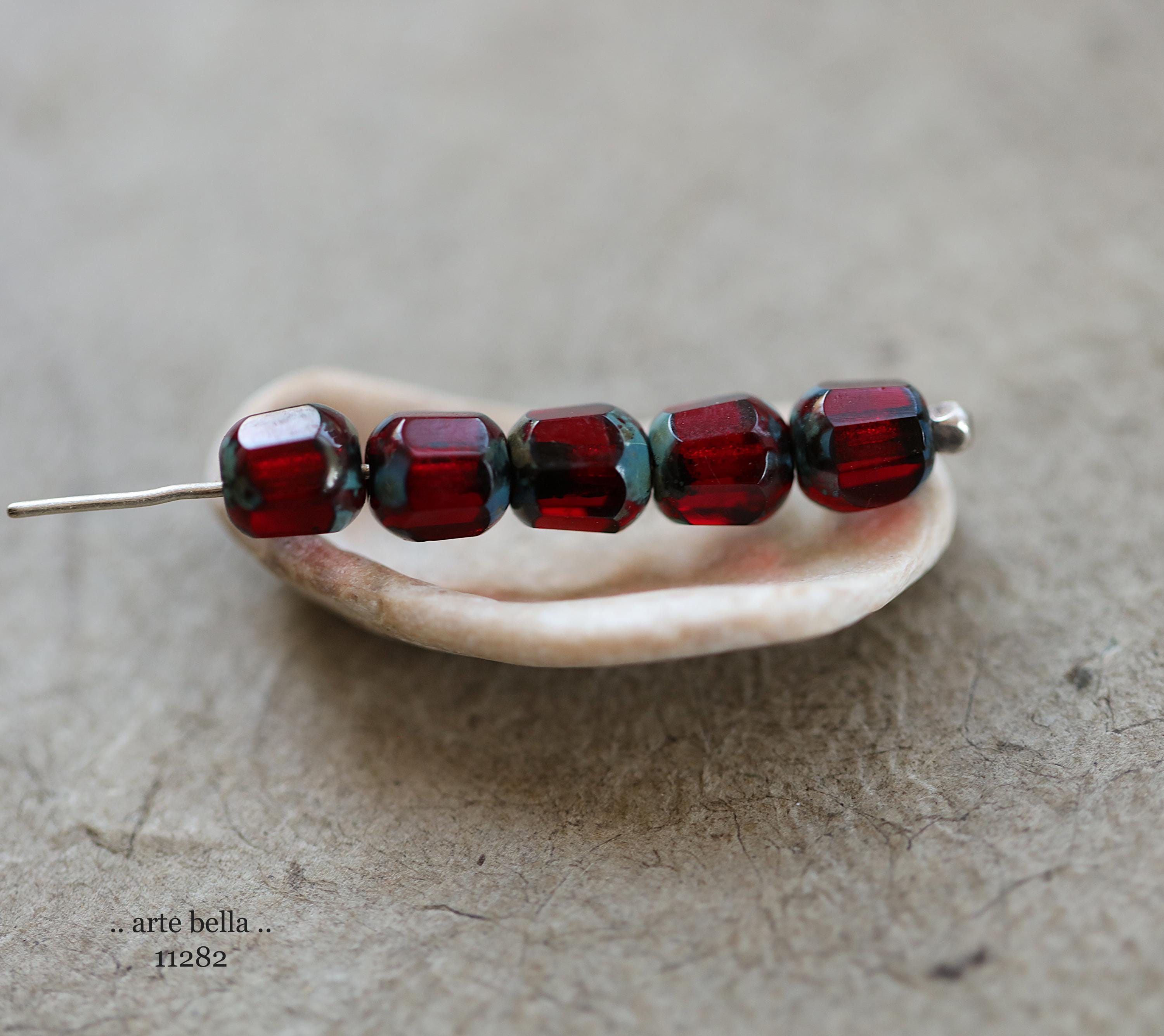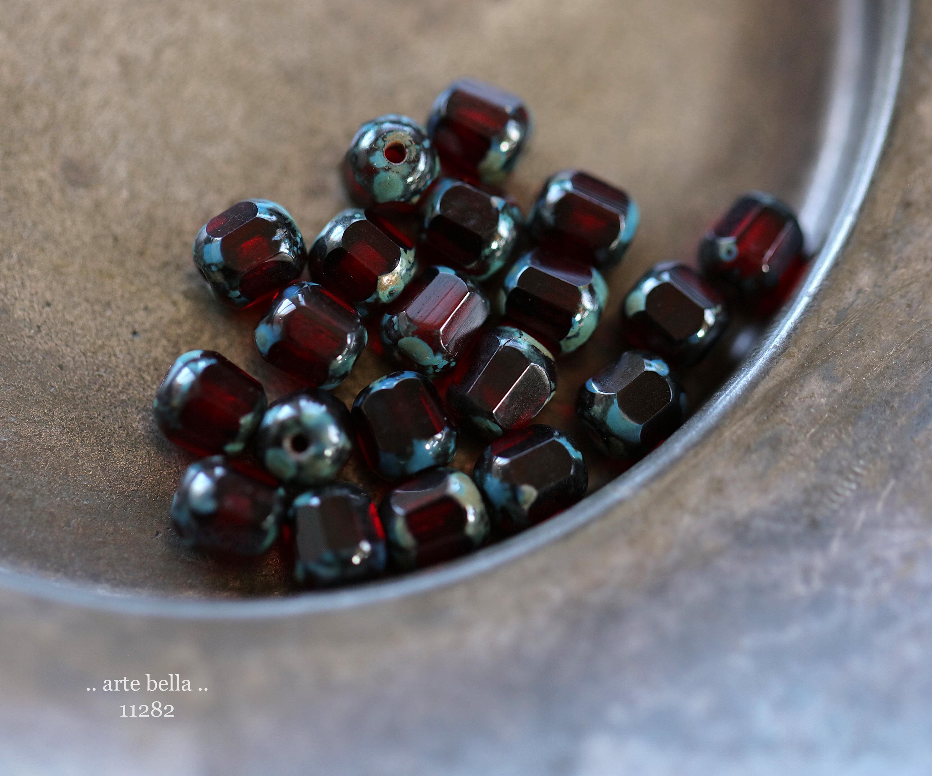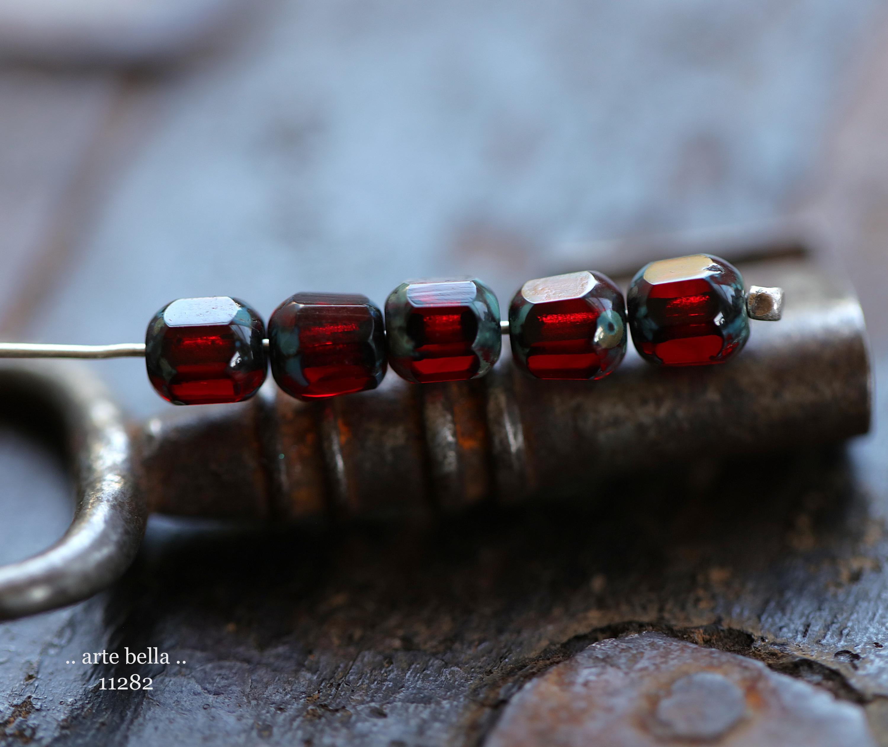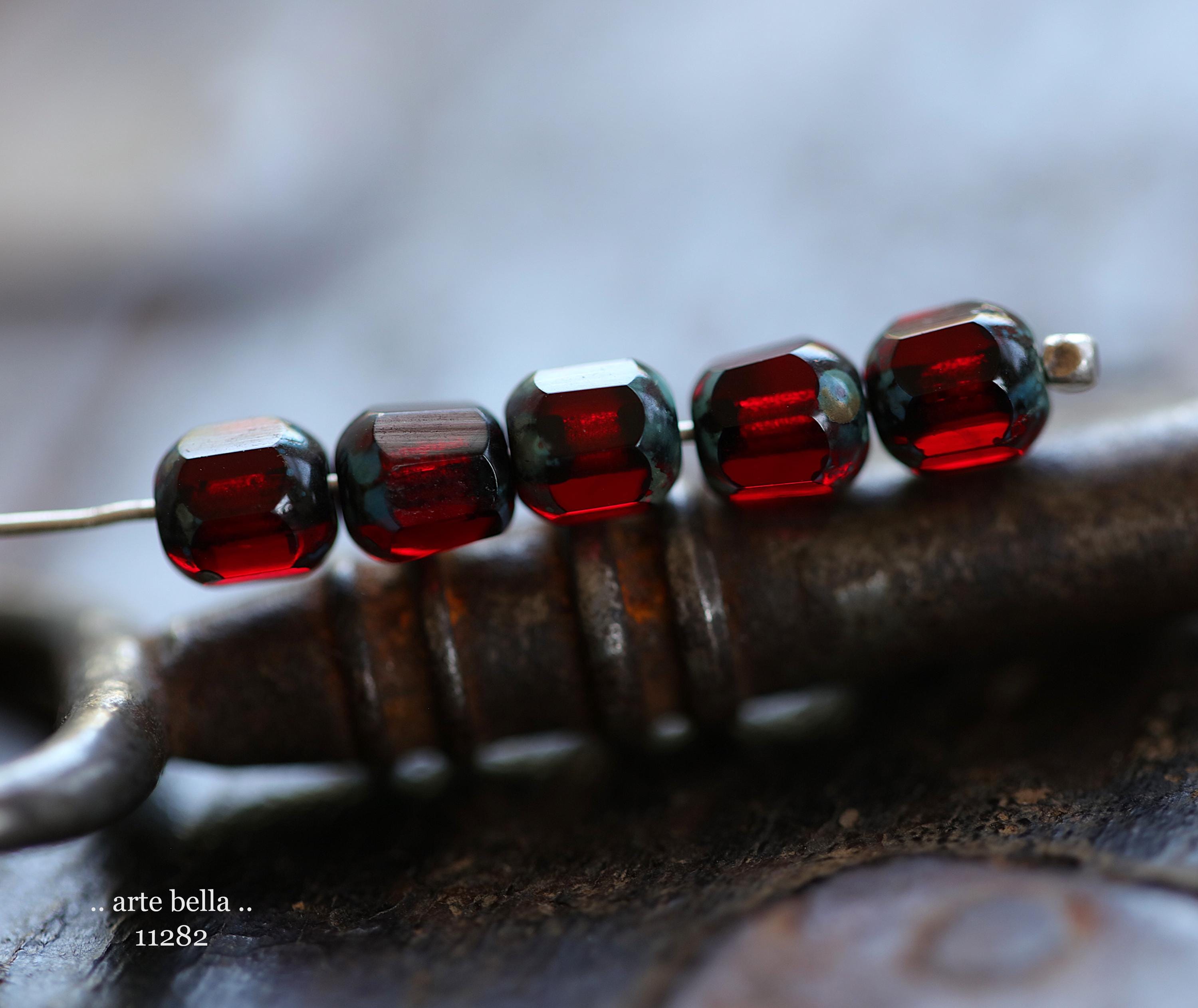 New .. LITTLE MISS RUBY .. 20 Picasso Czech Glass Faceted Octagon Beads 6mm (11282-20) .. jewelry supplies