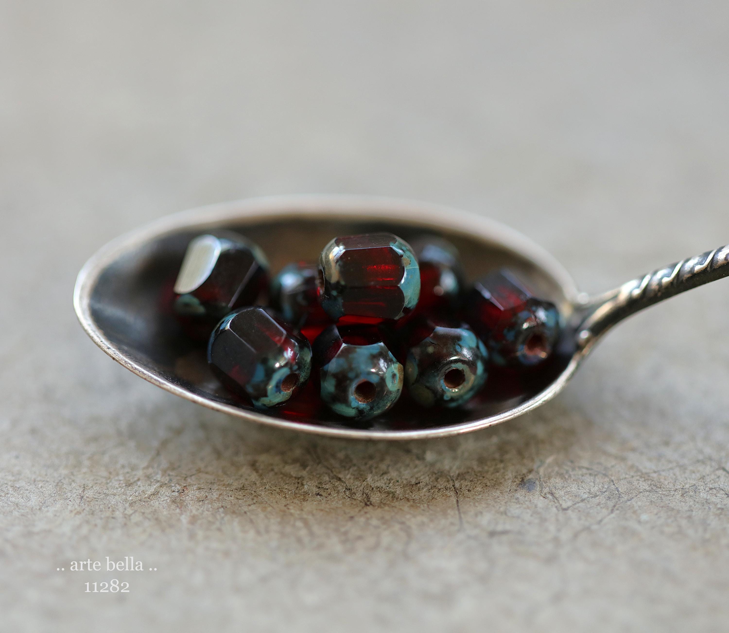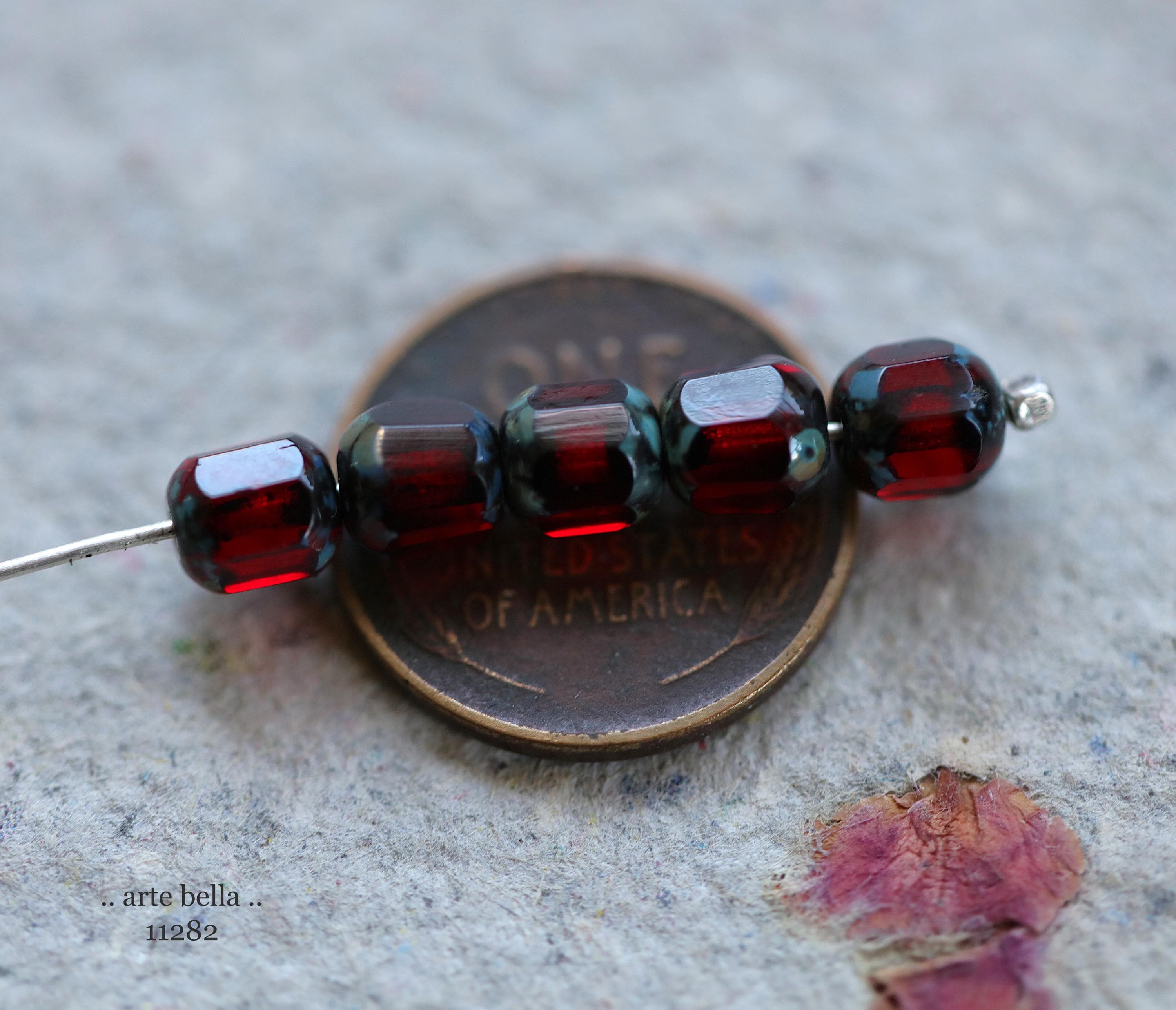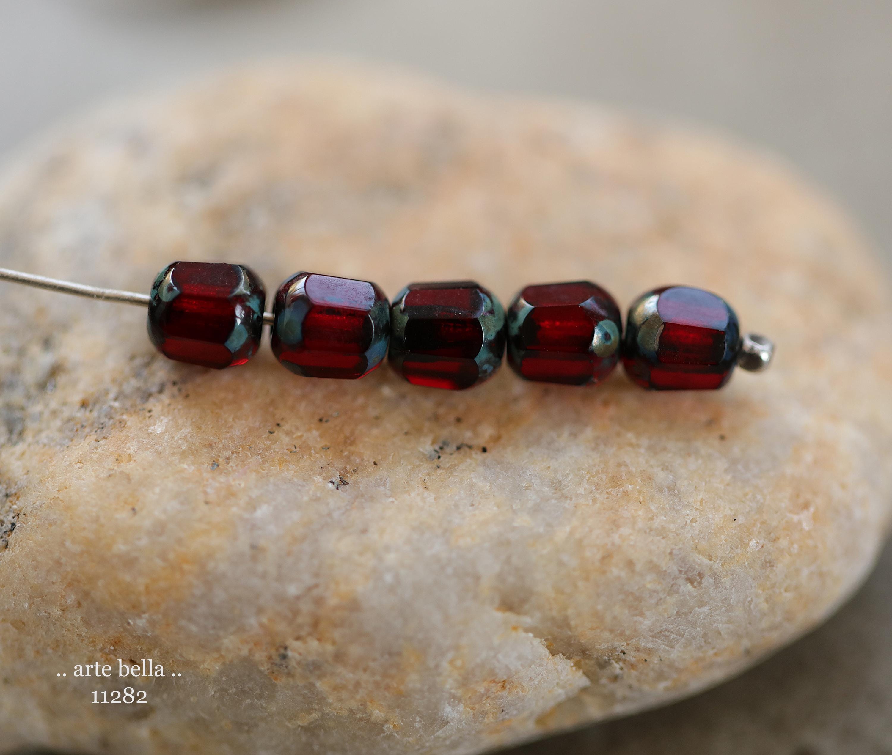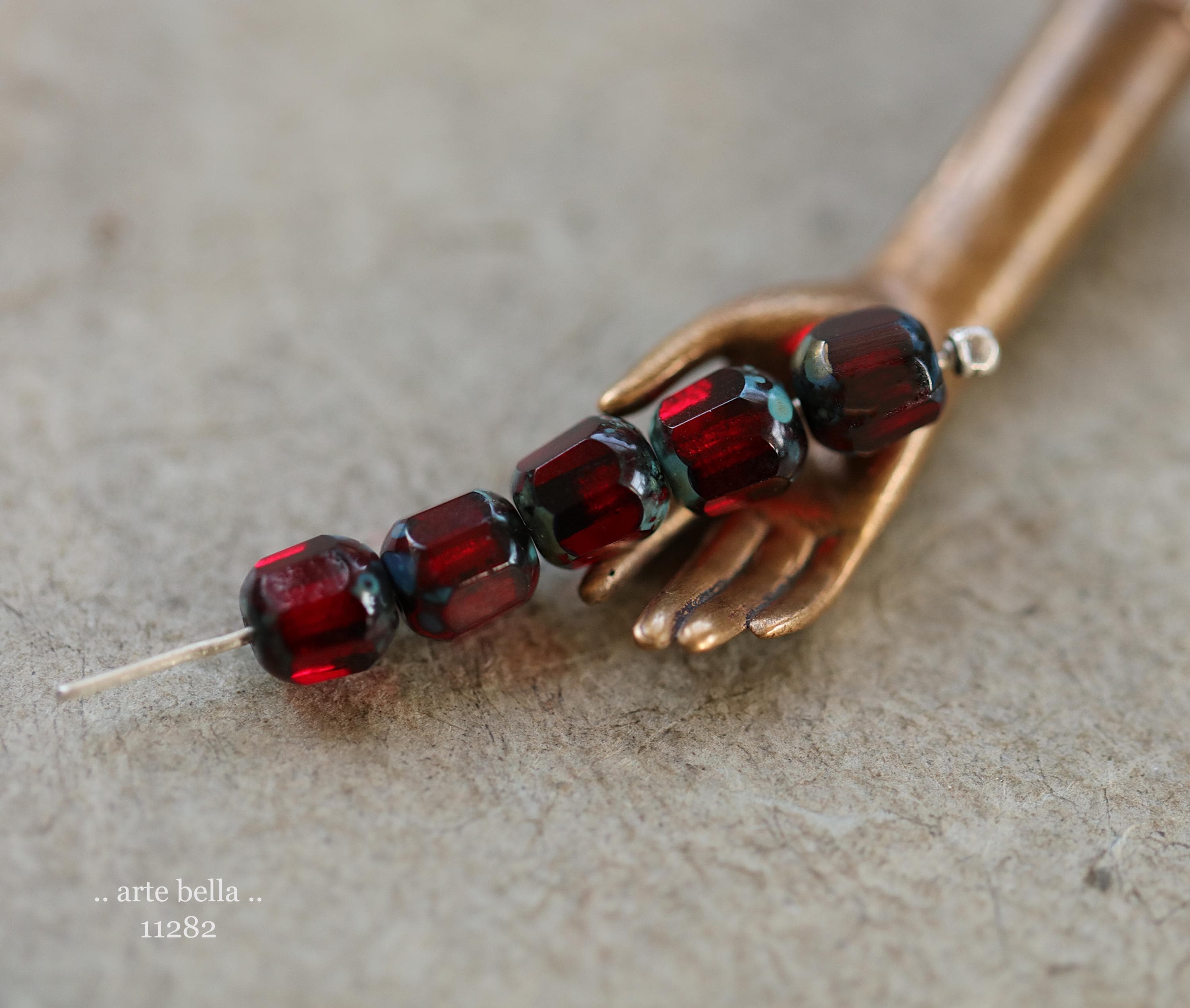 New .. LITTLE MISS RUBY .. 20 Picasso Czech Glass Faceted Octagon Beads 6mm (11282-20) .. jewelry supplies
