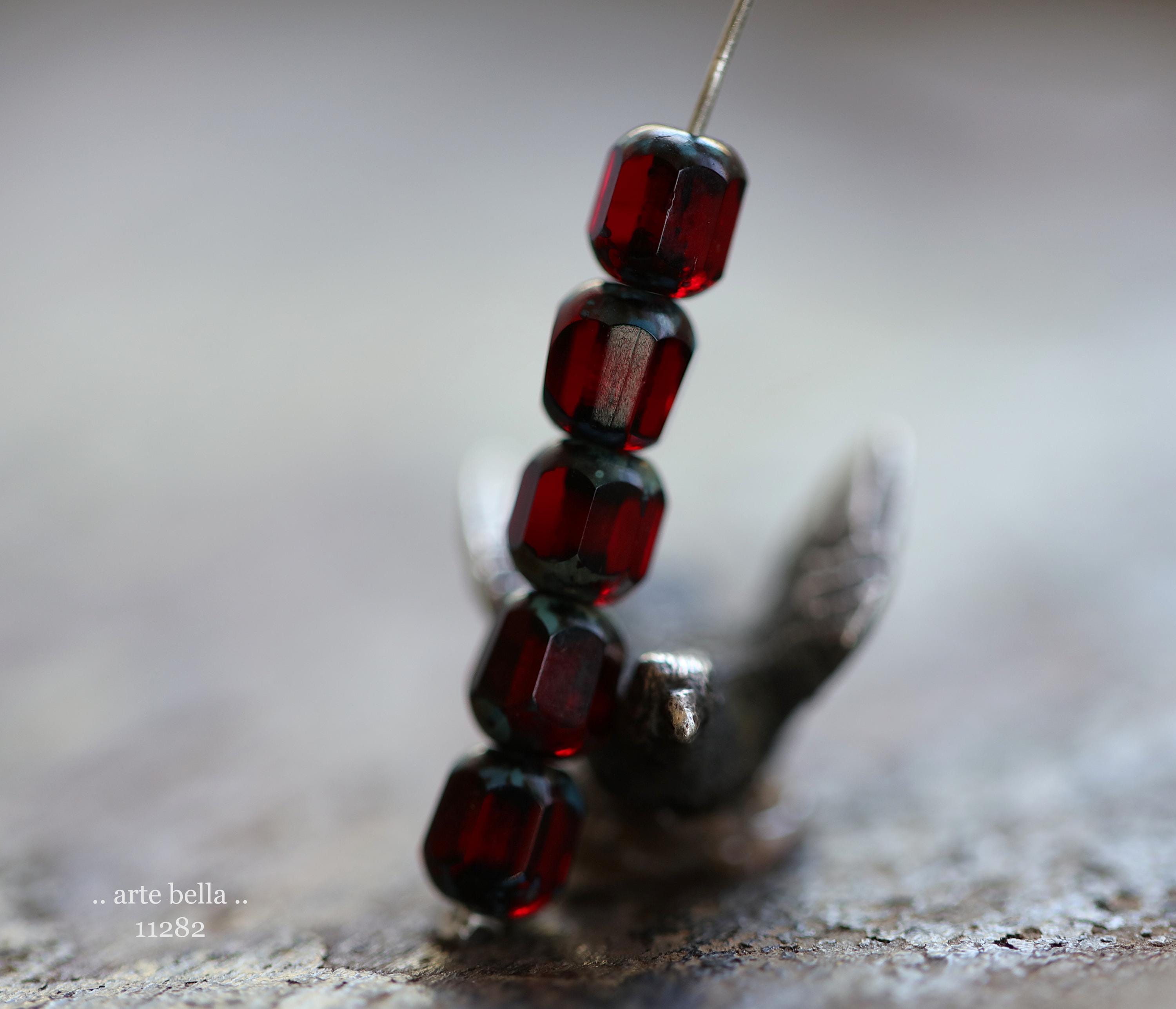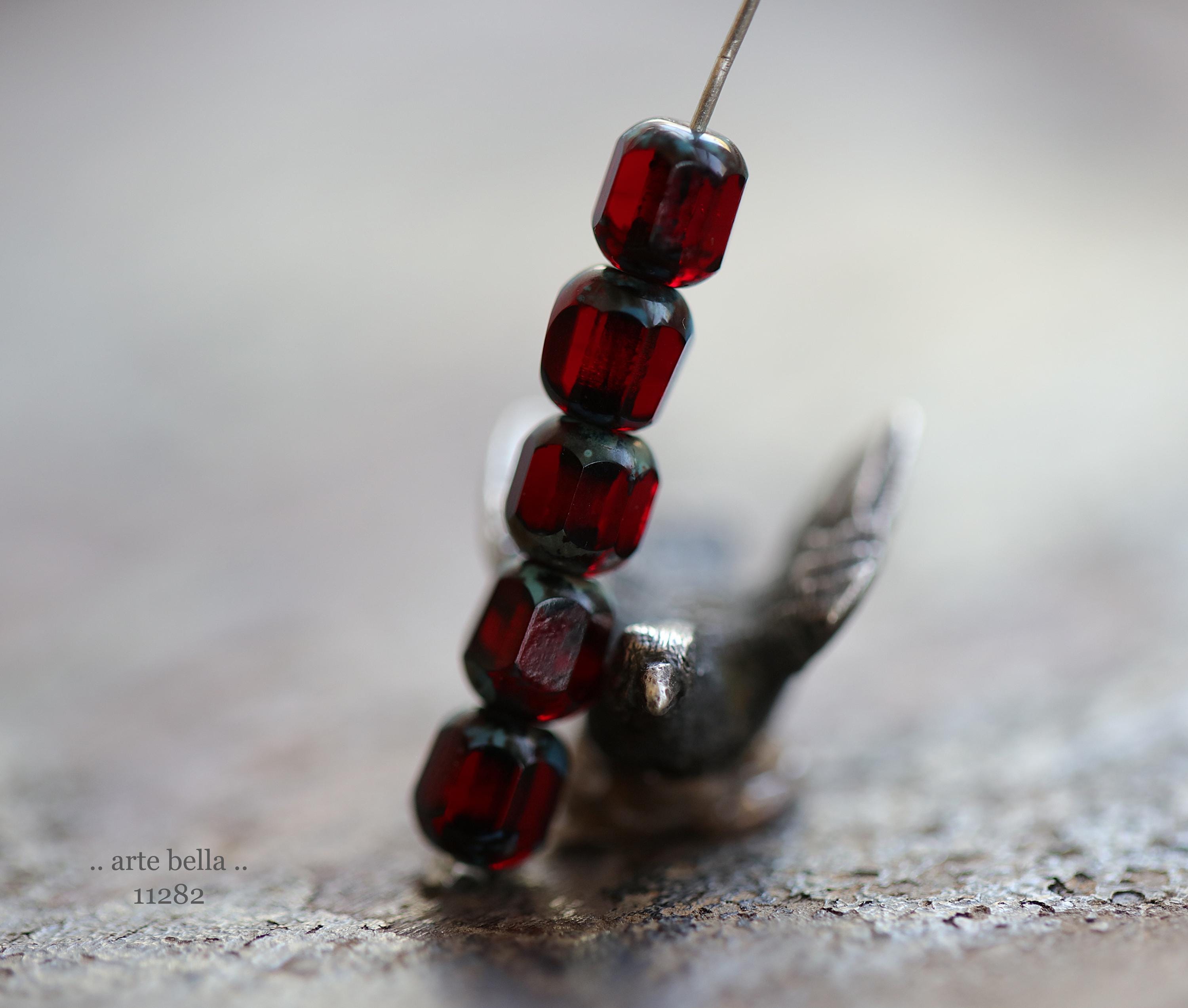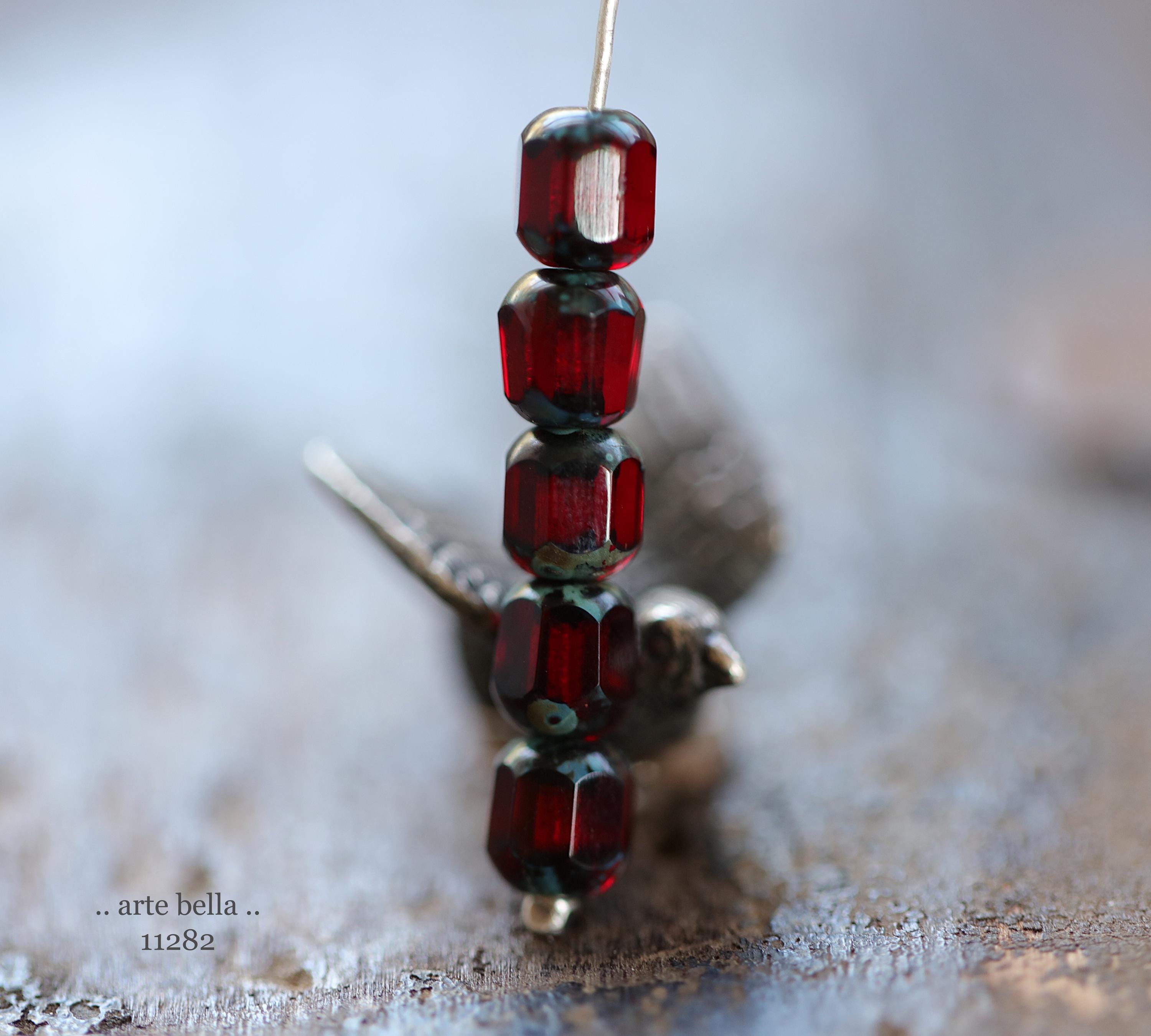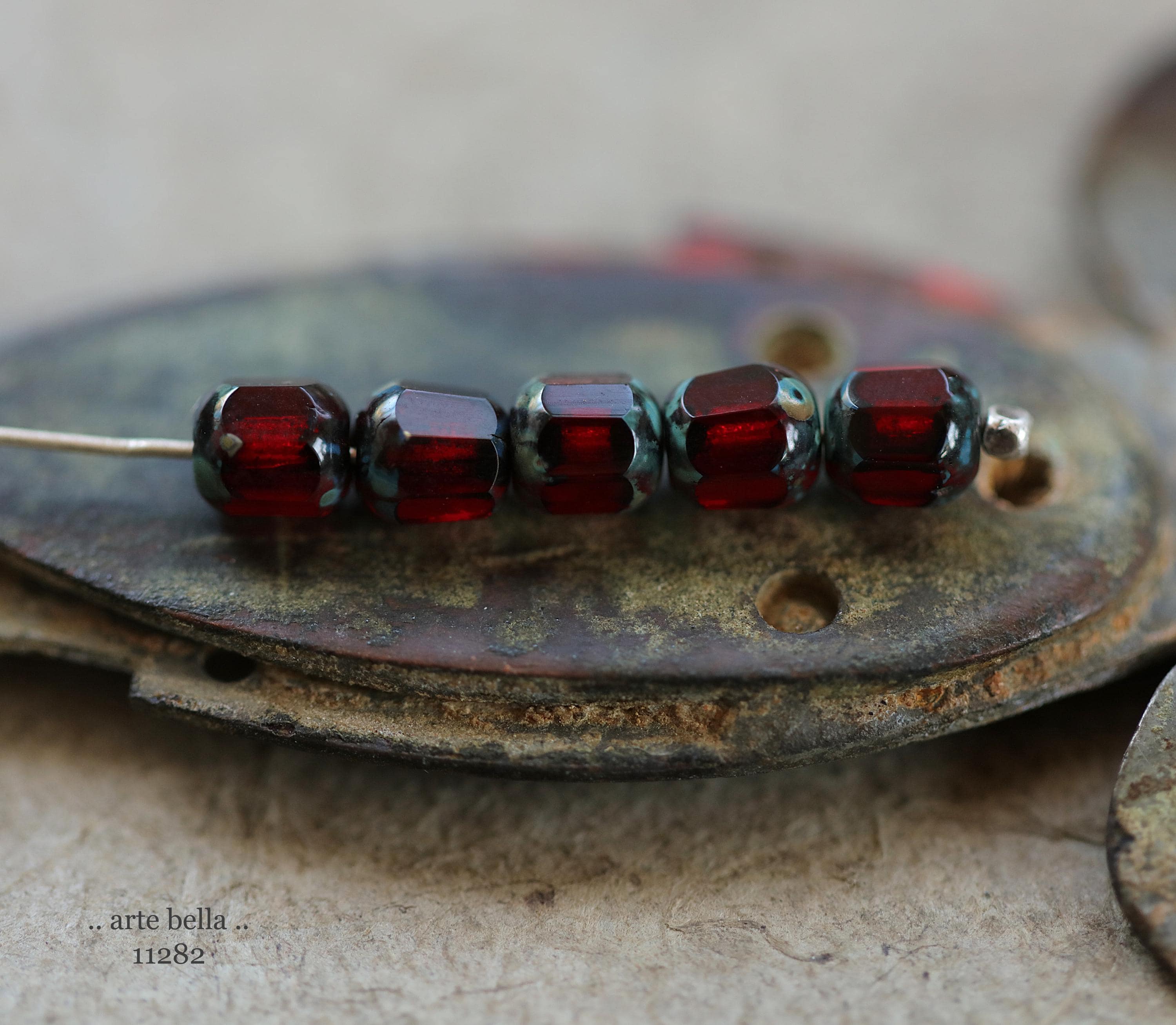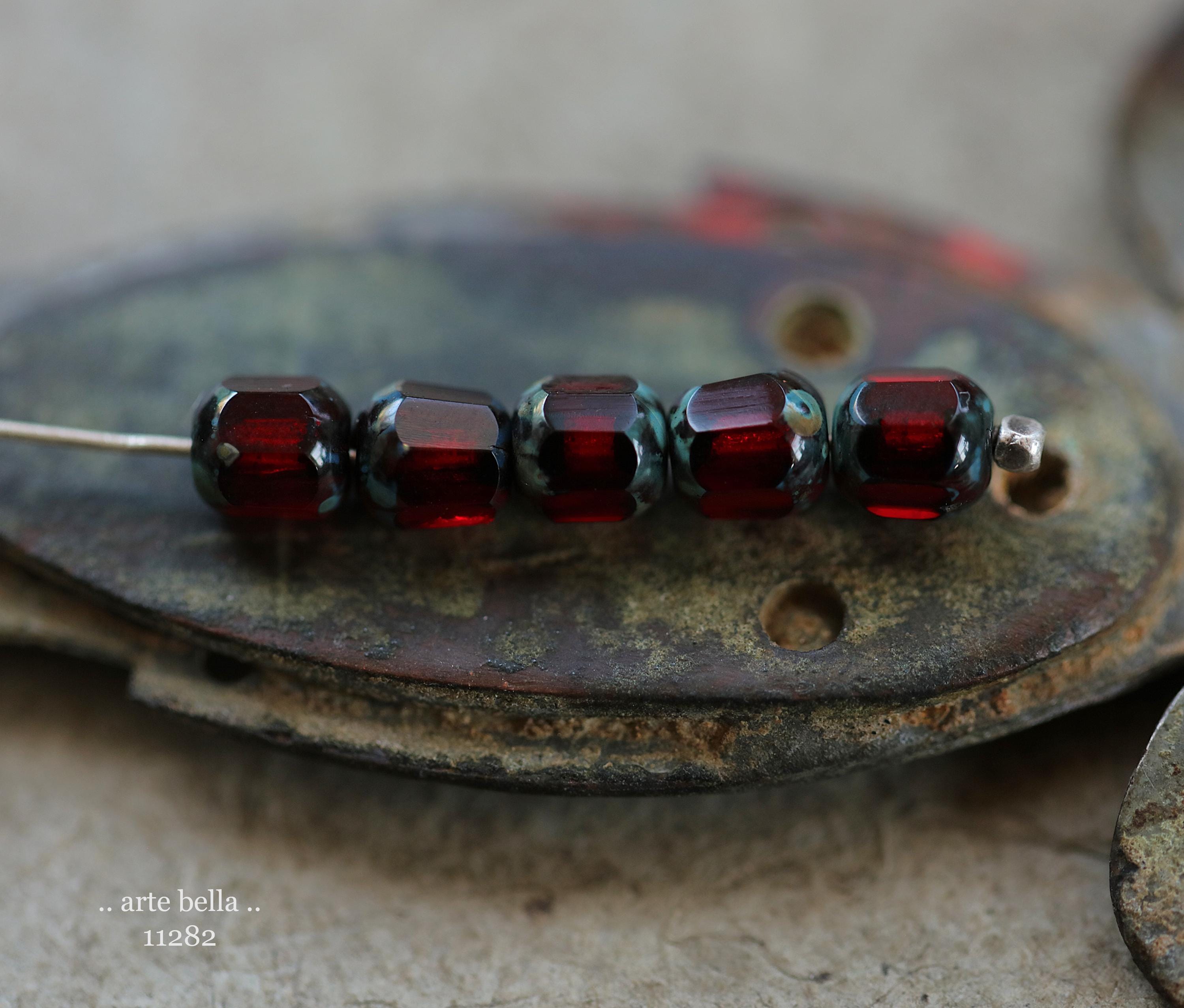 New .. LITTLE MISS RUBY .. 20 Picasso Czech Glass Faceted Octagon Beads 6mm (11282-20) .. jewelry supplies