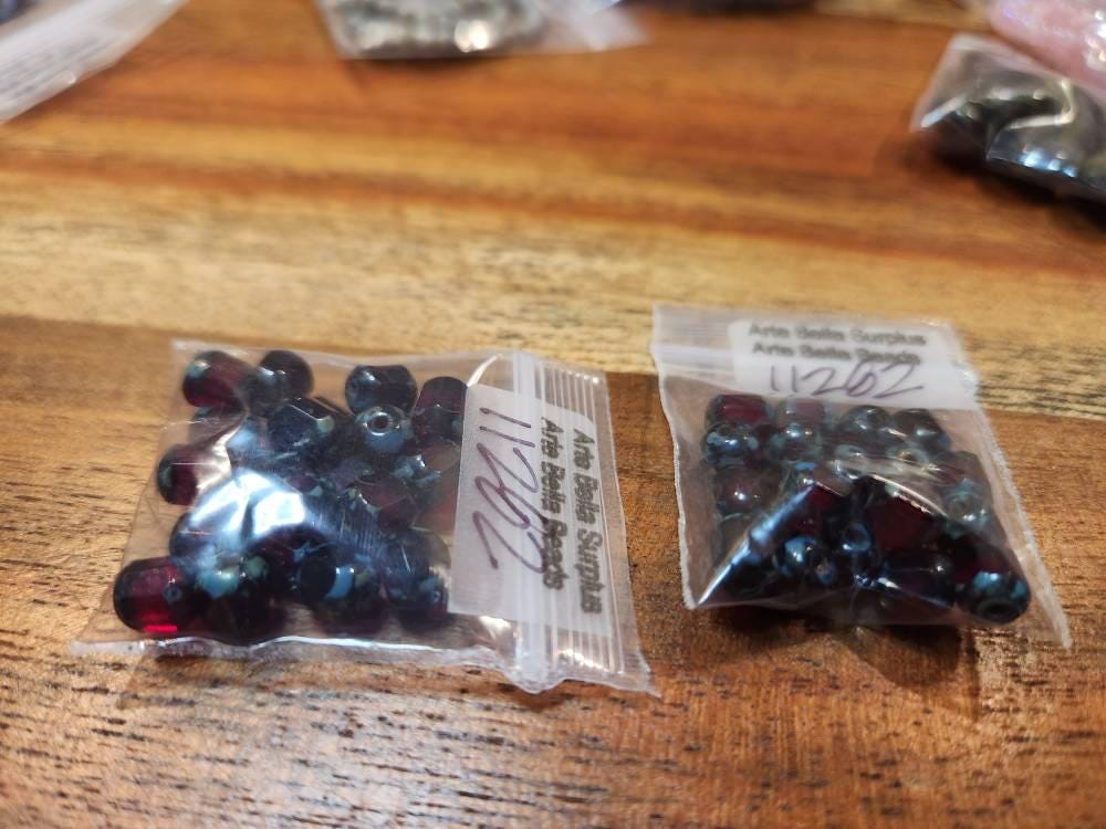 Deep dark ruby red glass with the beloved Picasso finish in blue and gray with crisp fire polished facets.