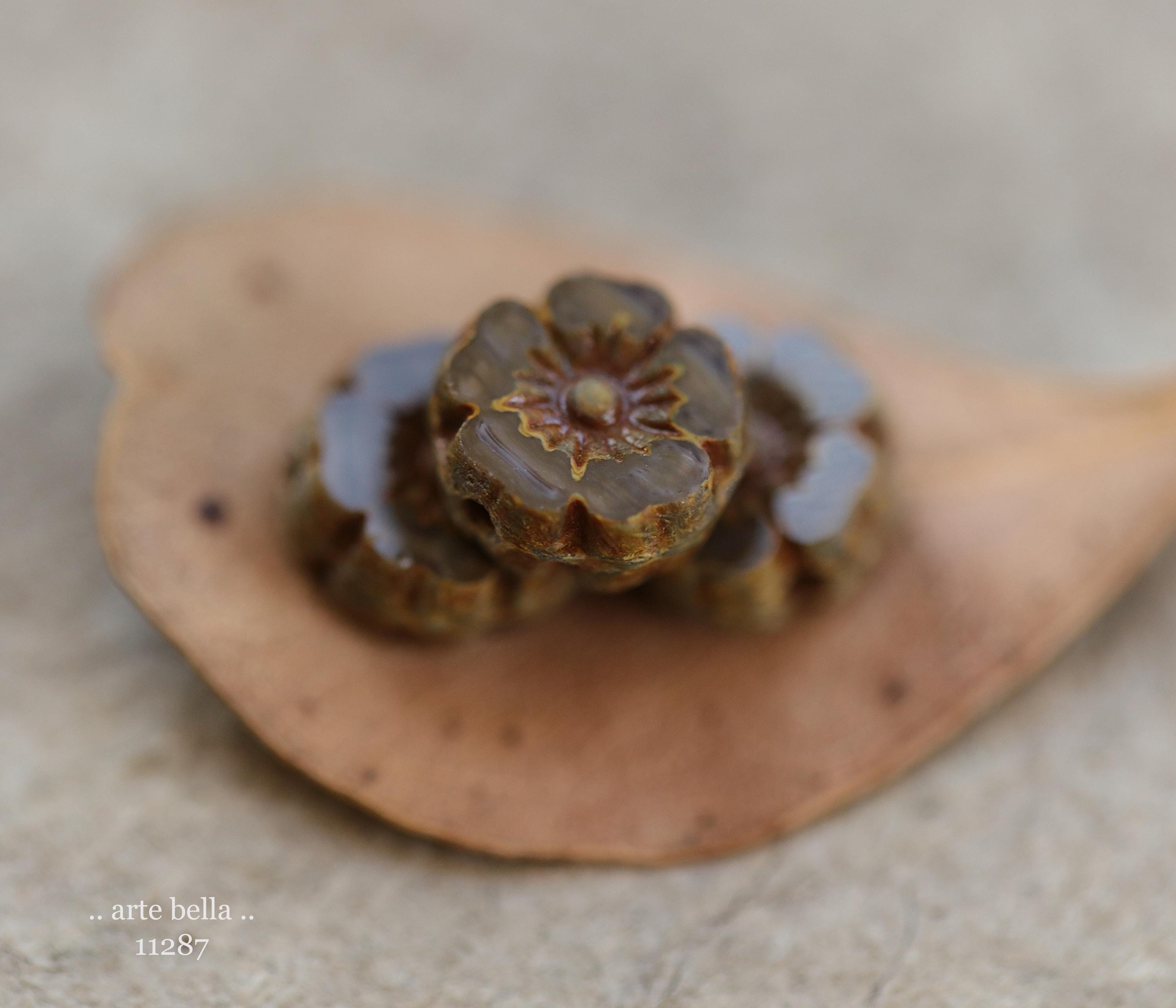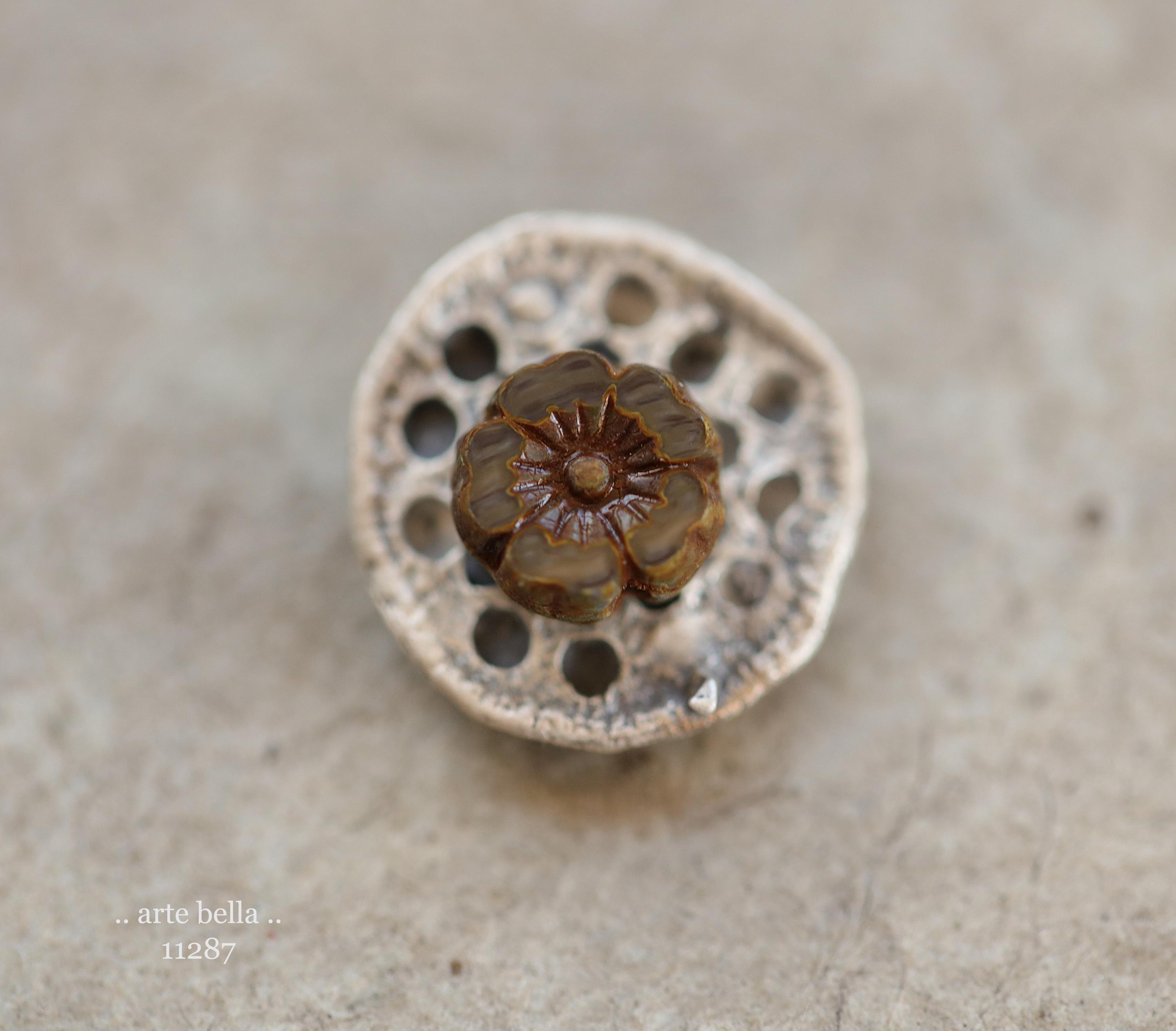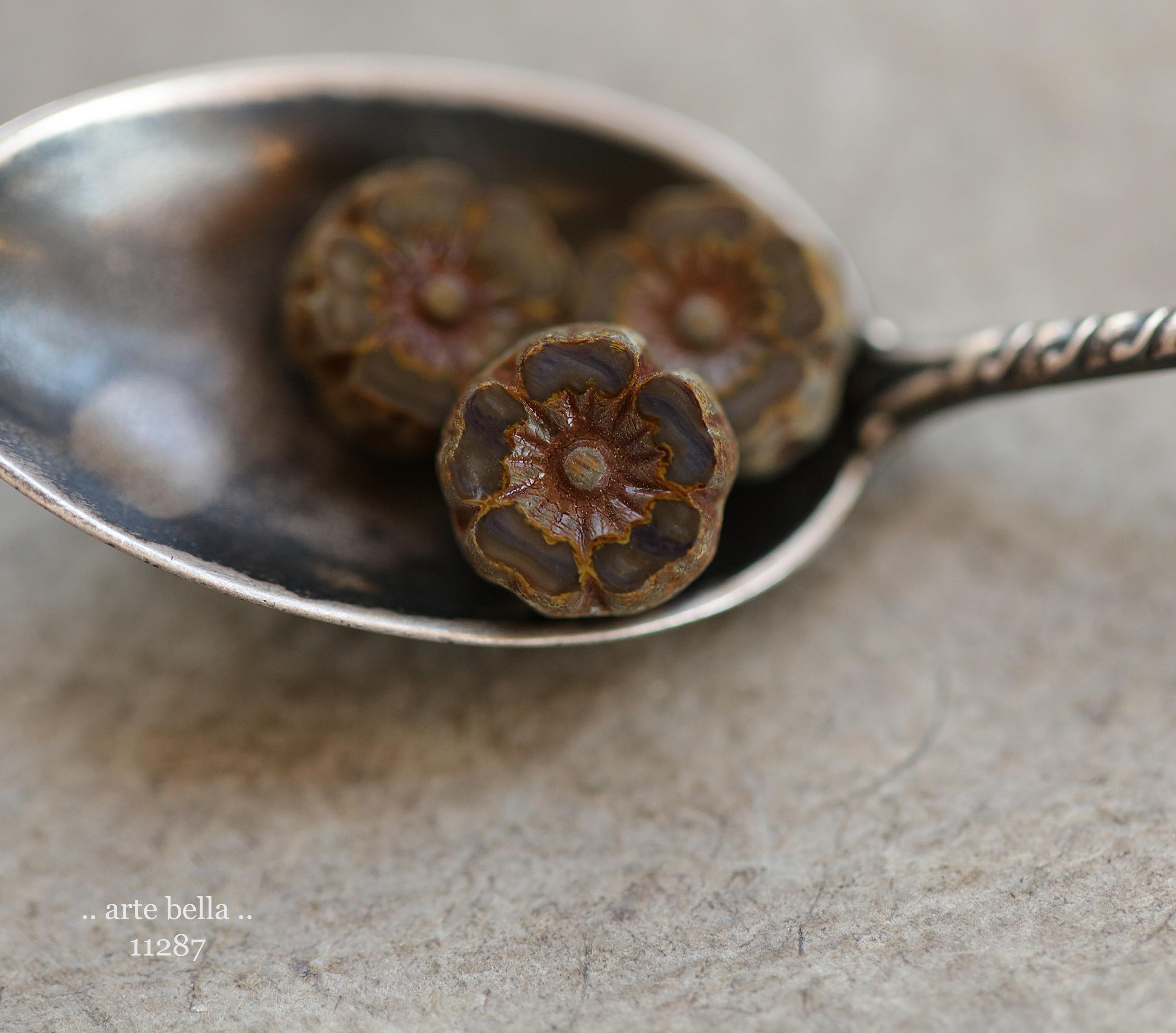 New .. MOCHA LATTE PANSY .. 10 Premium Picasso Czech Glass Flower Bead Mix 8mm (11287-10) .. jewelry supplies