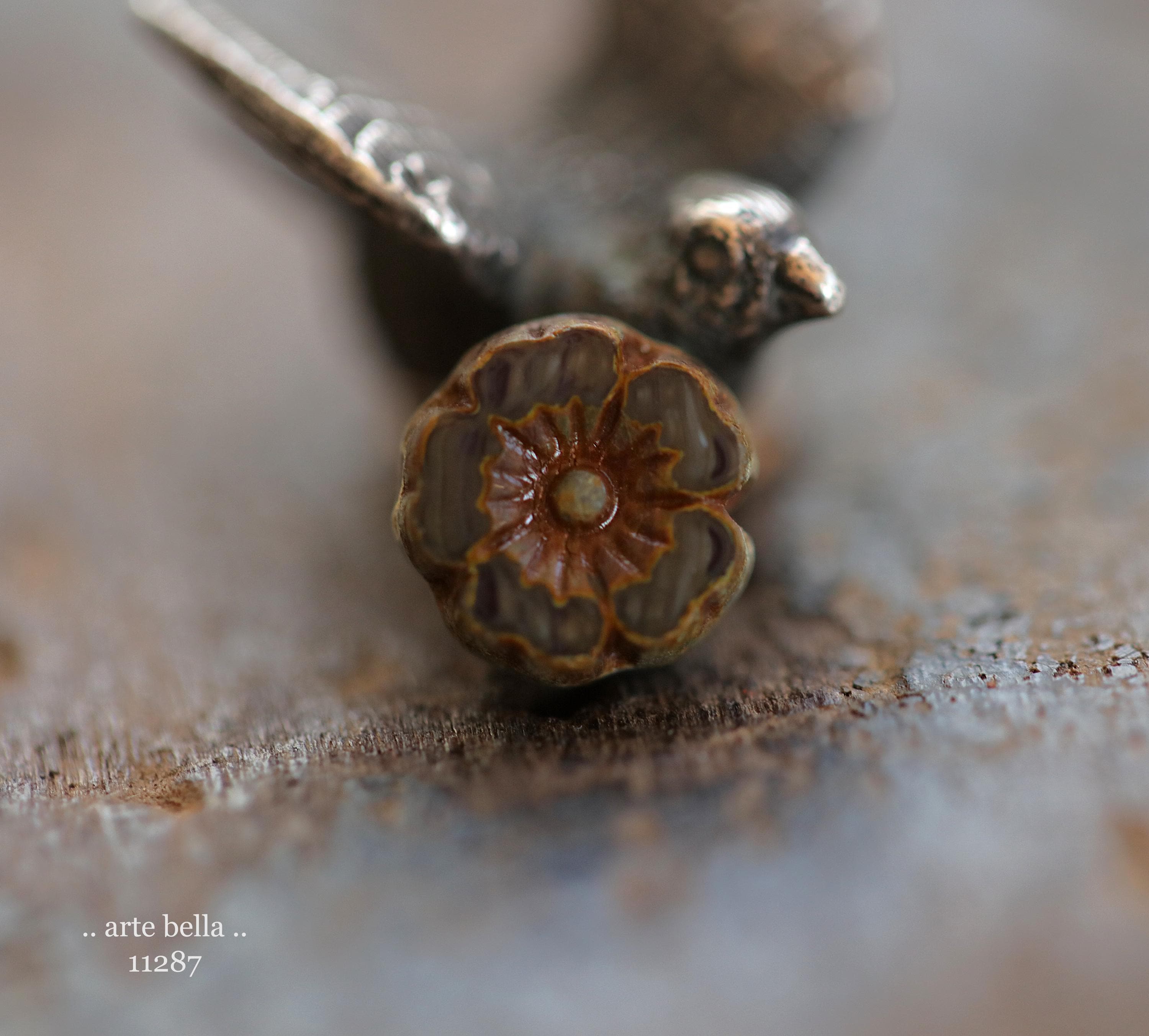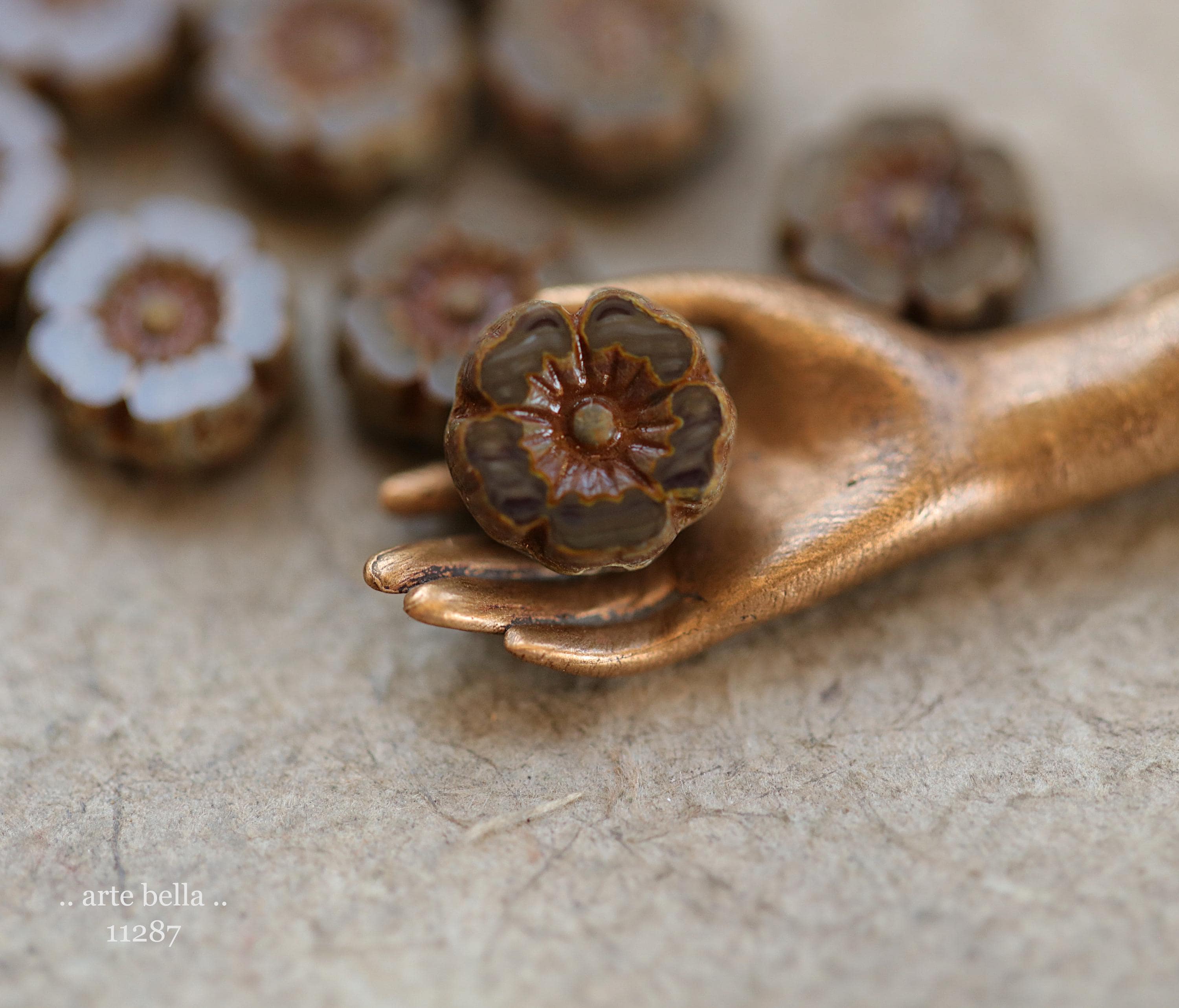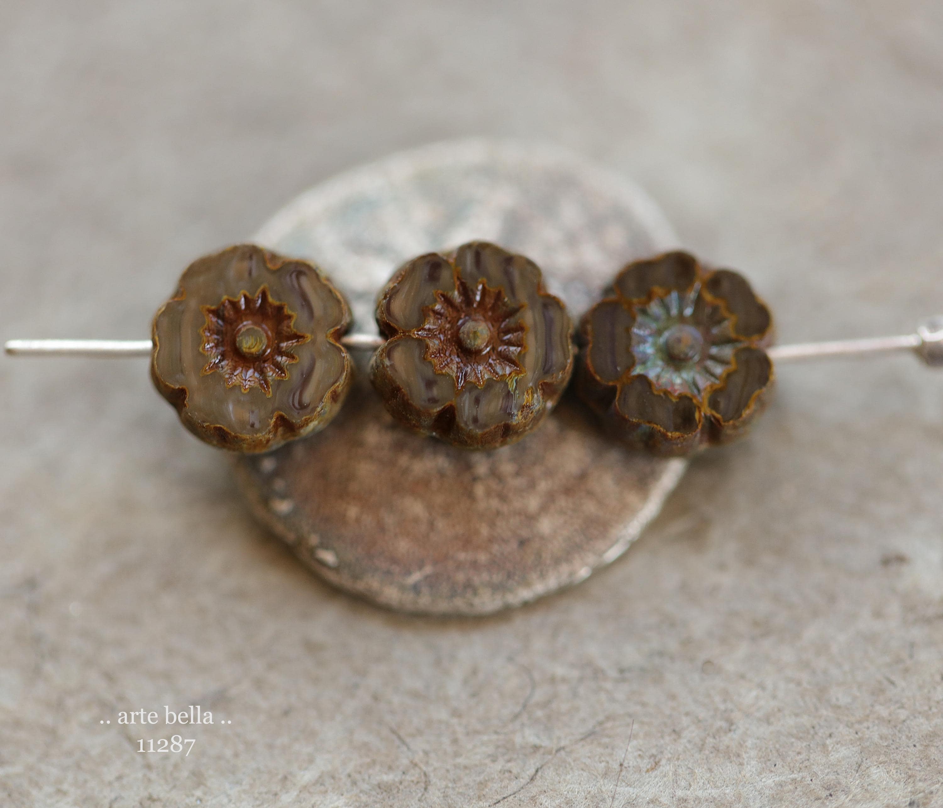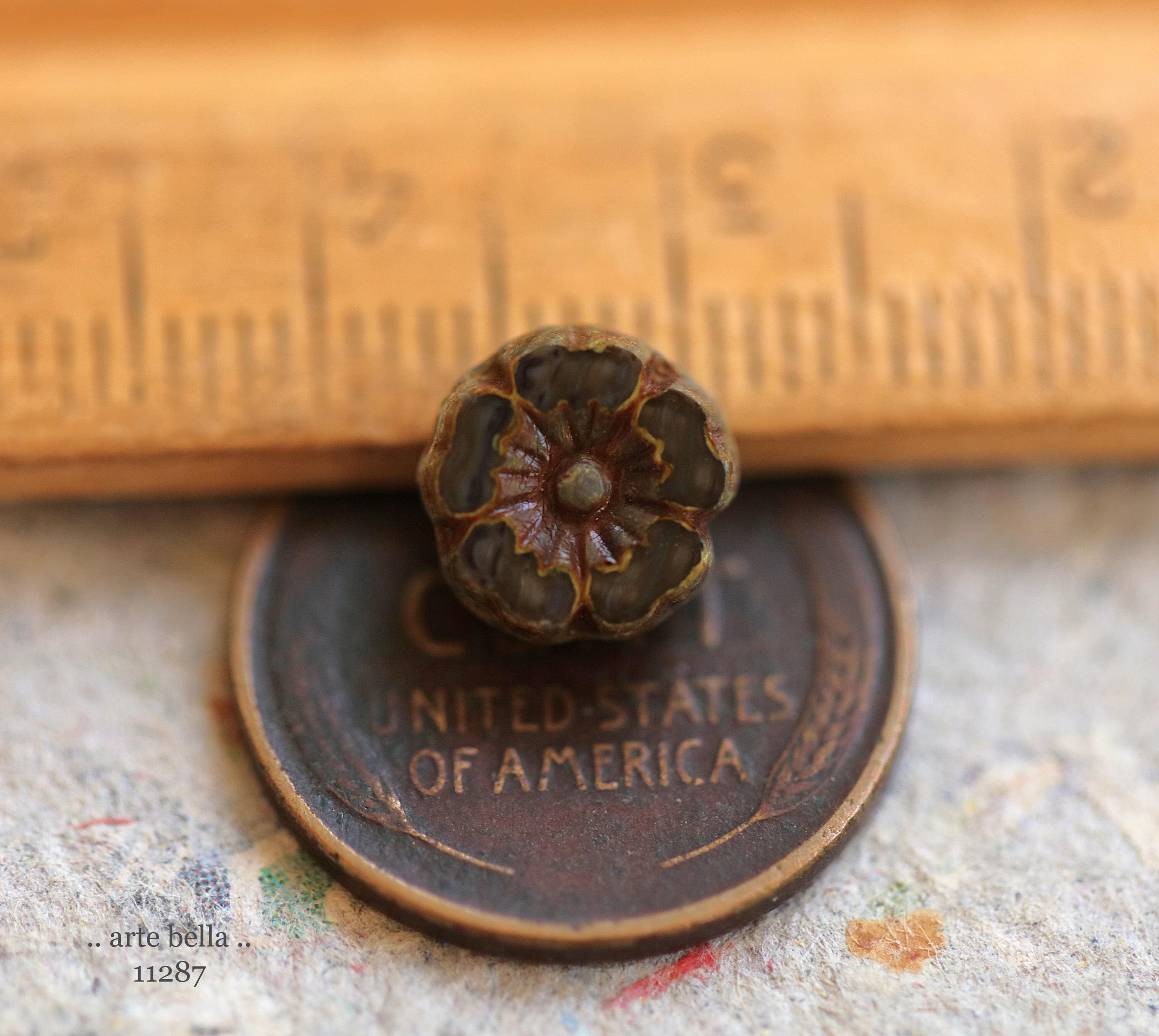 New .. MOCHA LATTE PANSY .. 10 Premium Picasso Czech Glass Flower Bead Mix 8mm (11287-10) .. jewelry supplies
