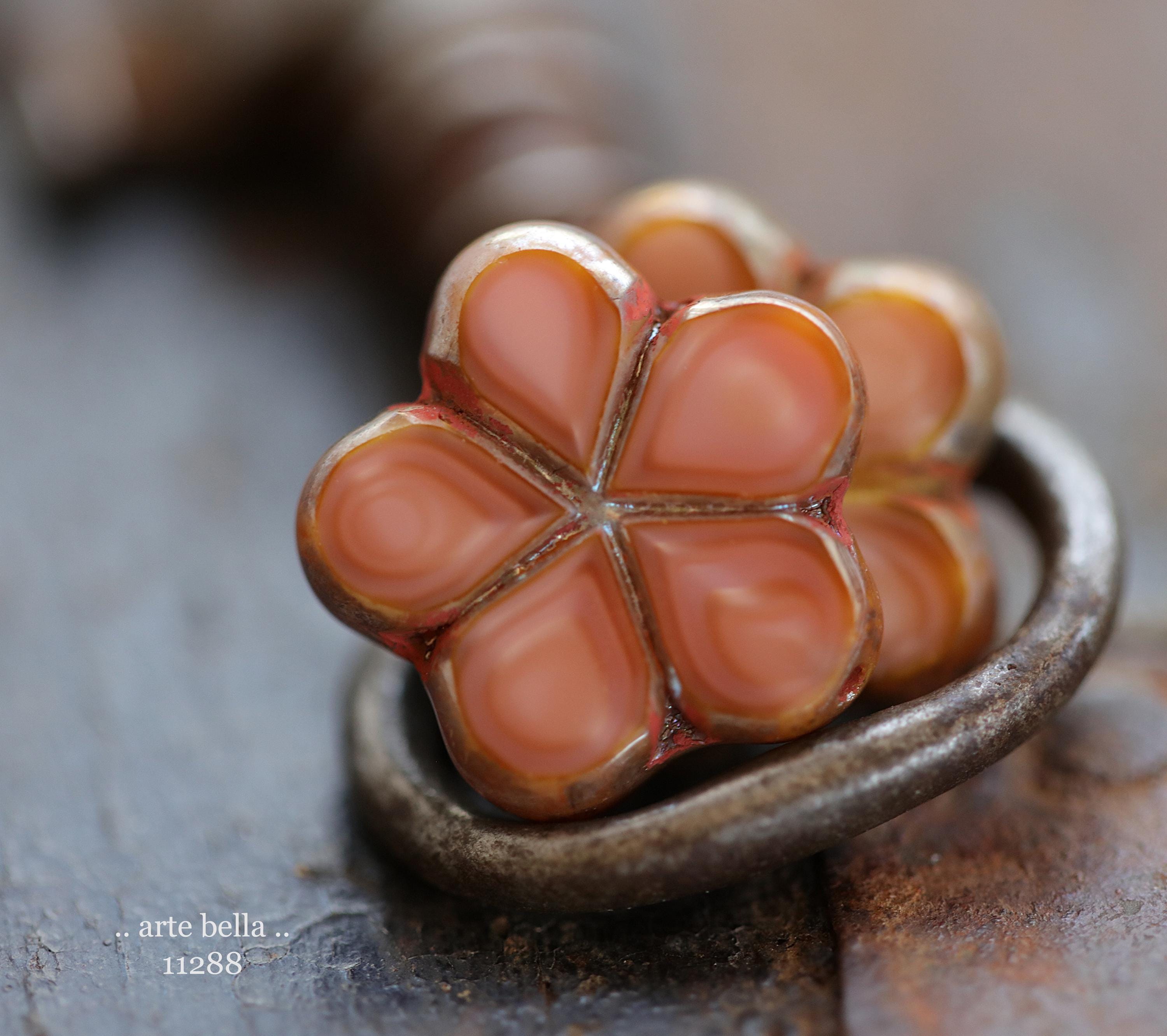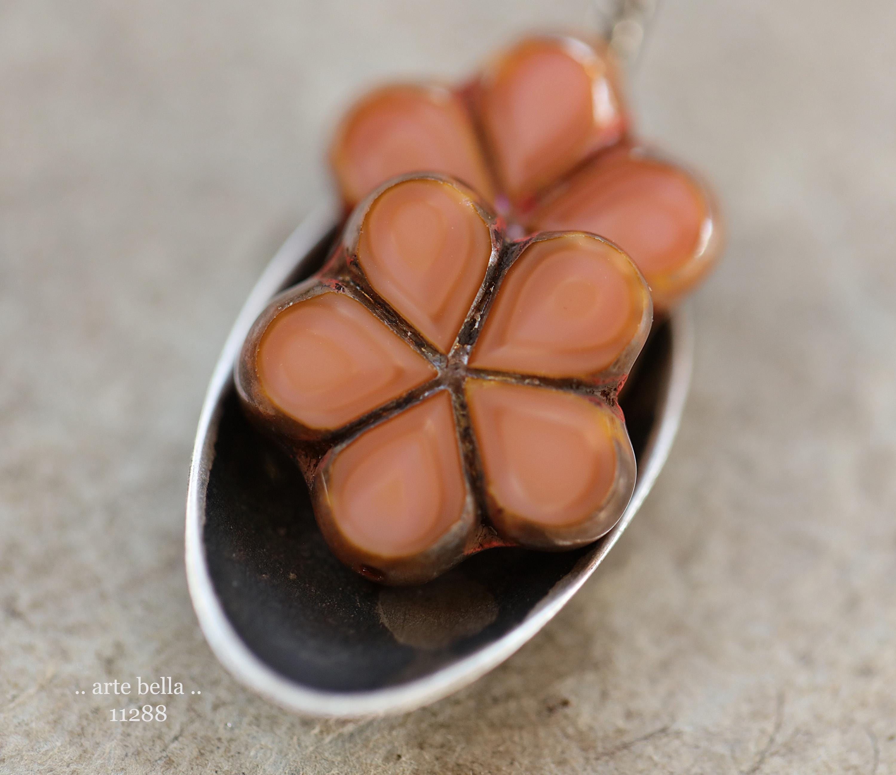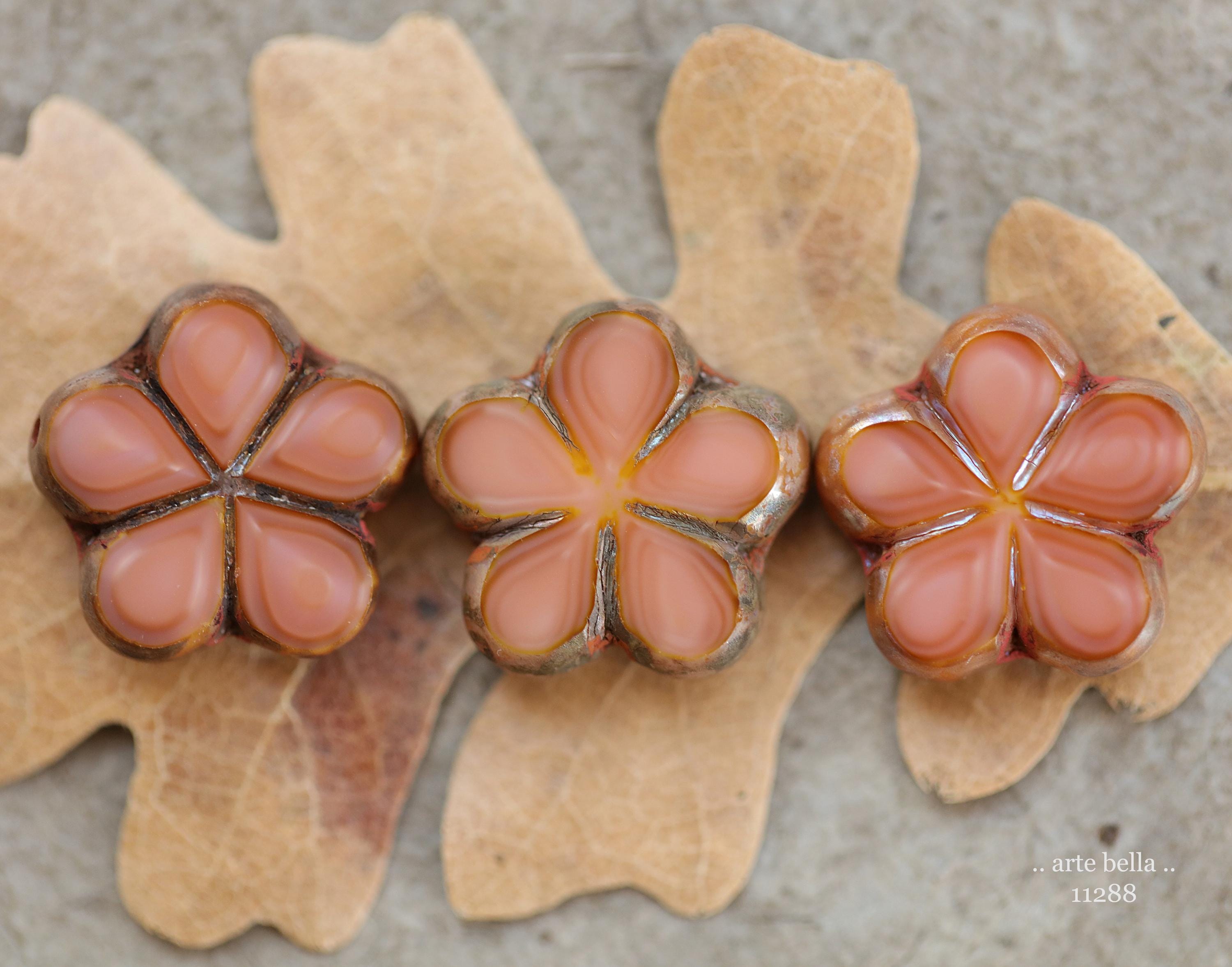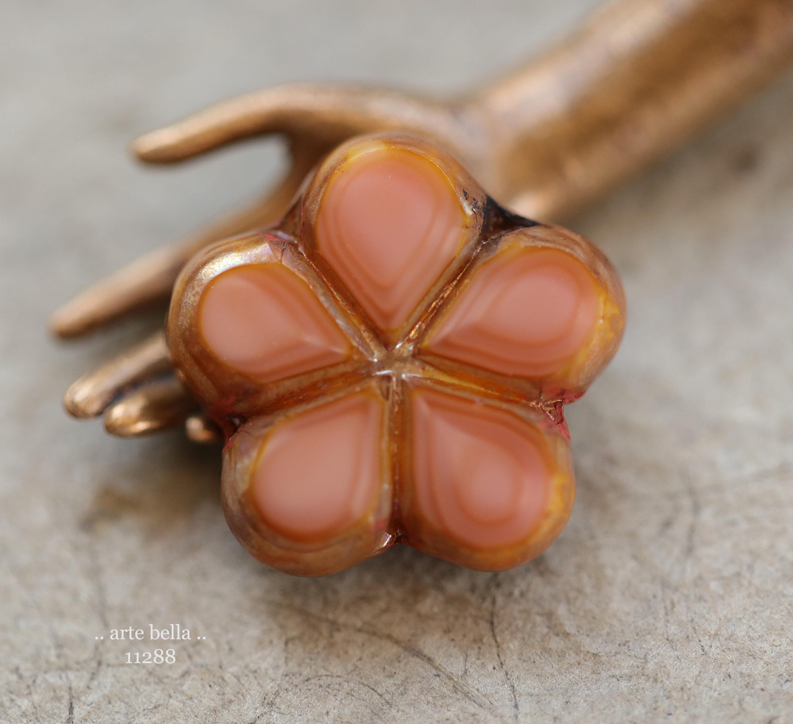 New .. EARTHY SALMON POSIES .. 4 Premium Luster Picasso Czech Glass Flower Bead Mix 17mm (11288-4) .. jewelry supplies