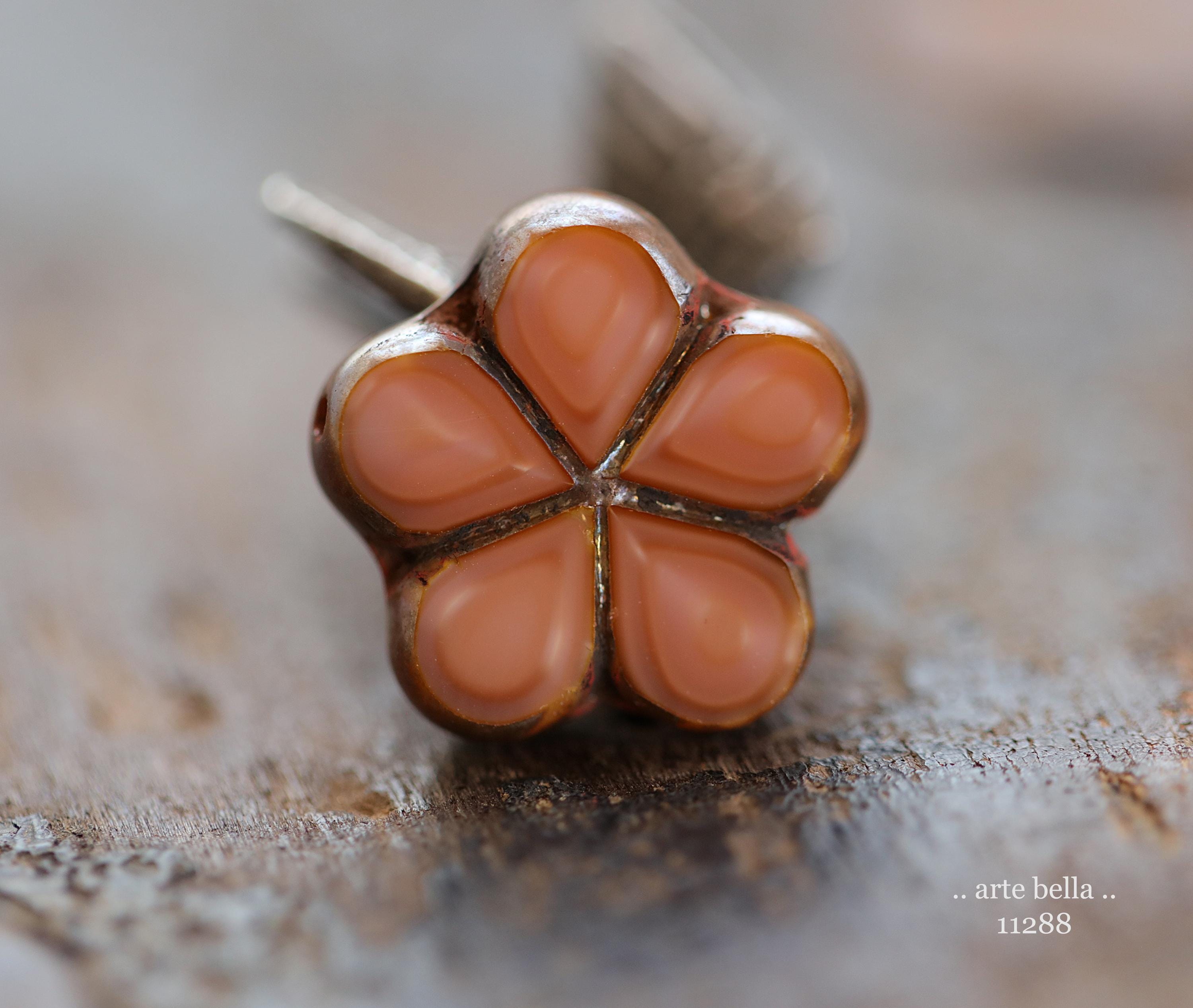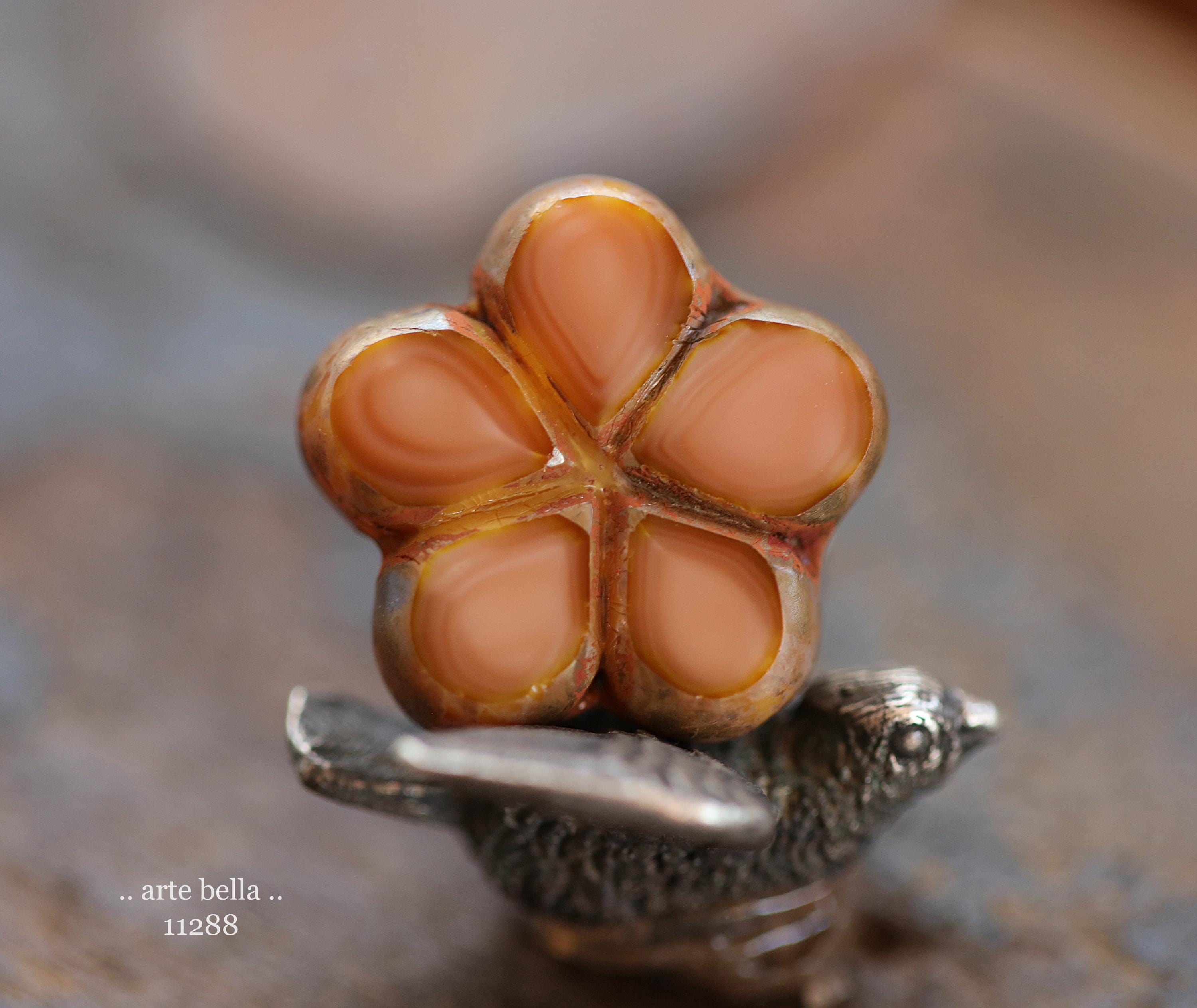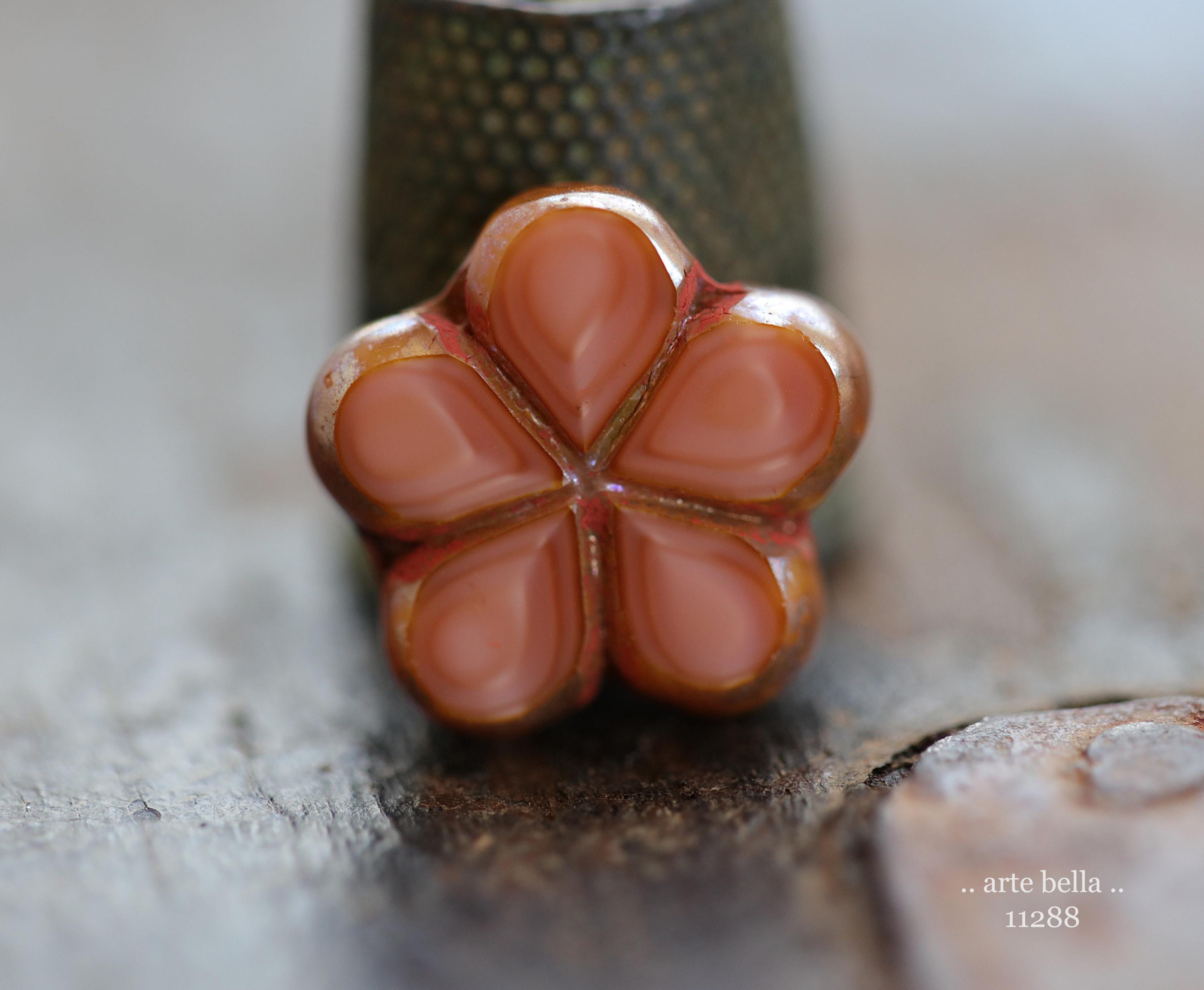 New .. EARTHY SALMON POSIES .. 4 Premium Luster Picasso Czech Glass Flower Bead Mix 17mm (11288-4) .. jewelry supplies