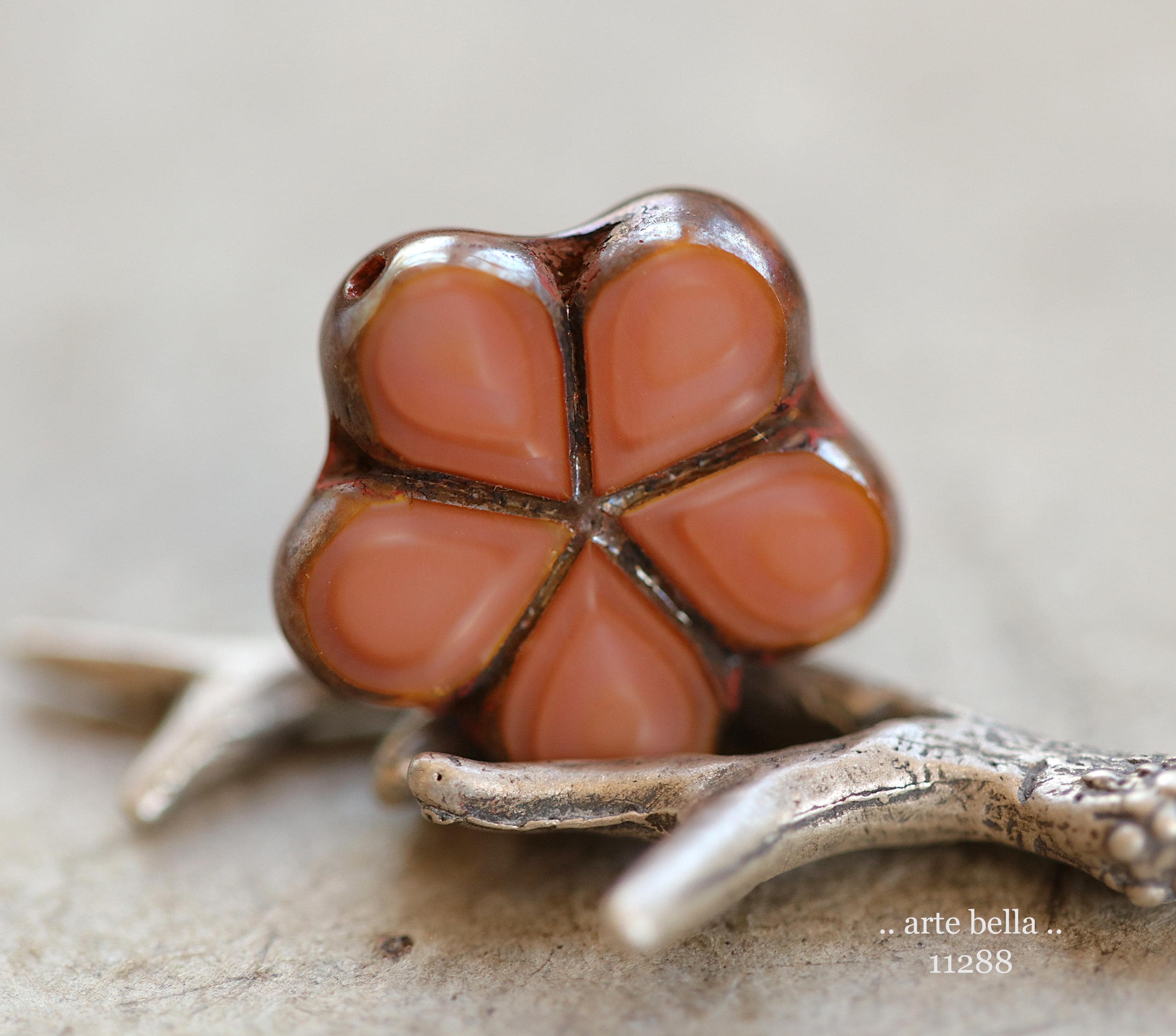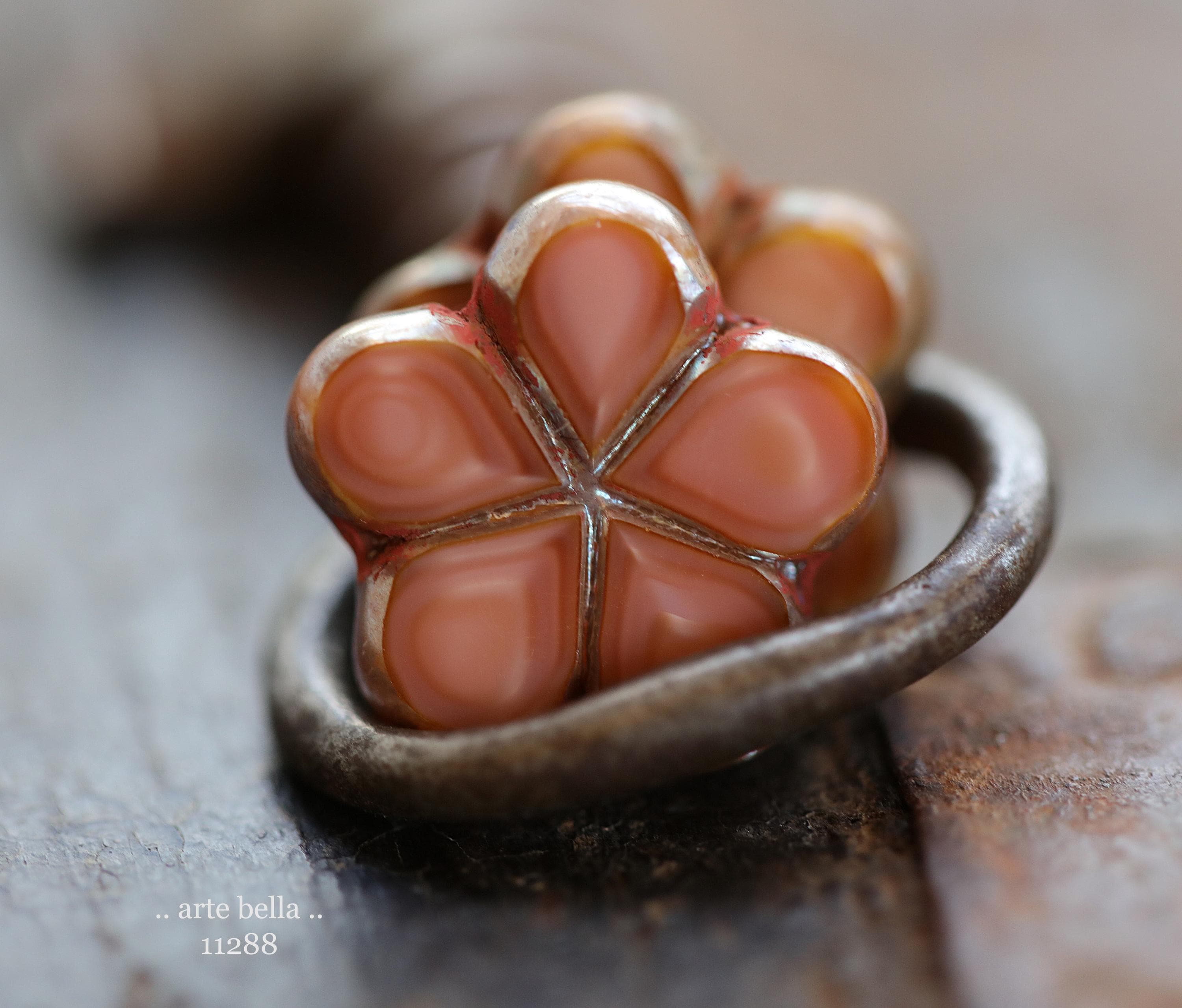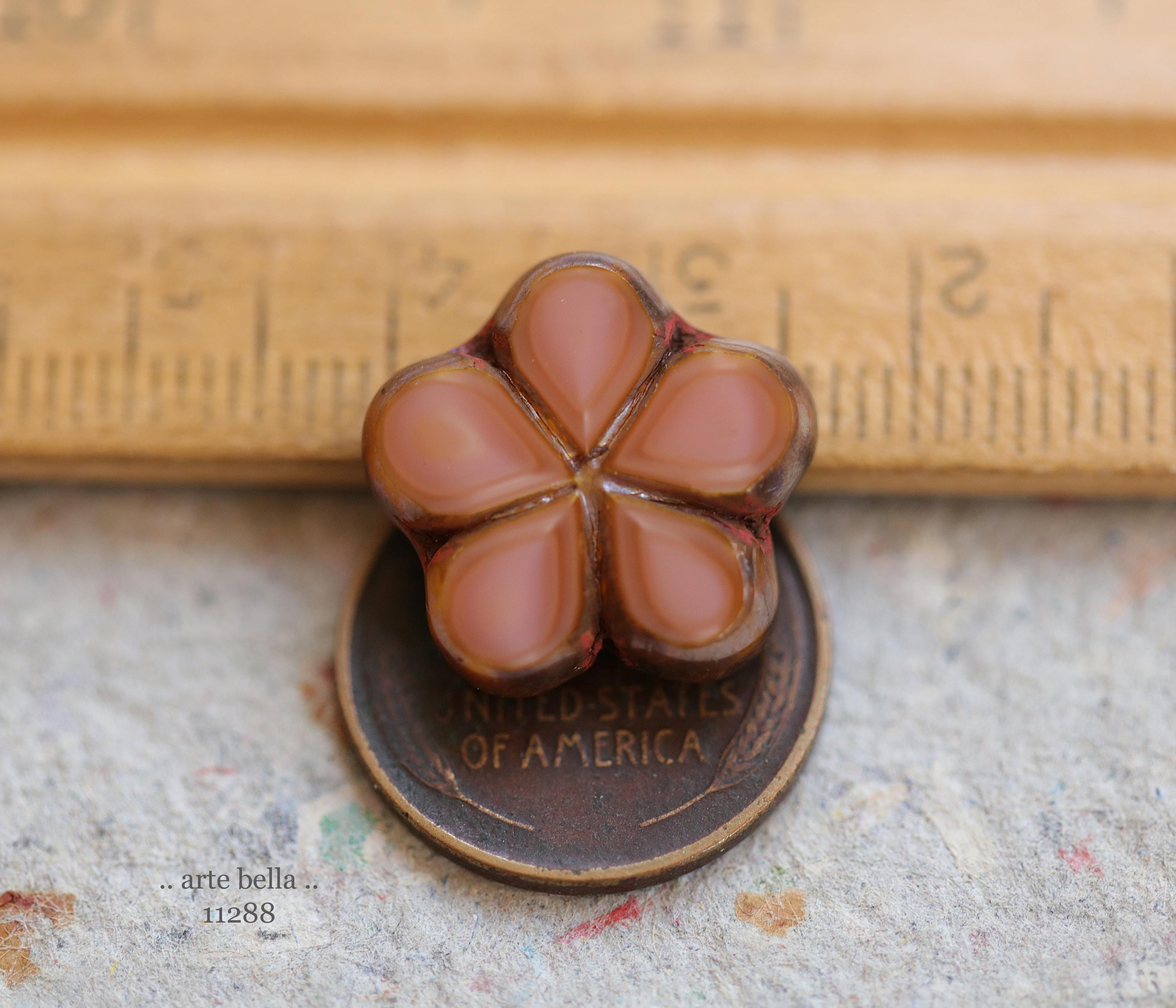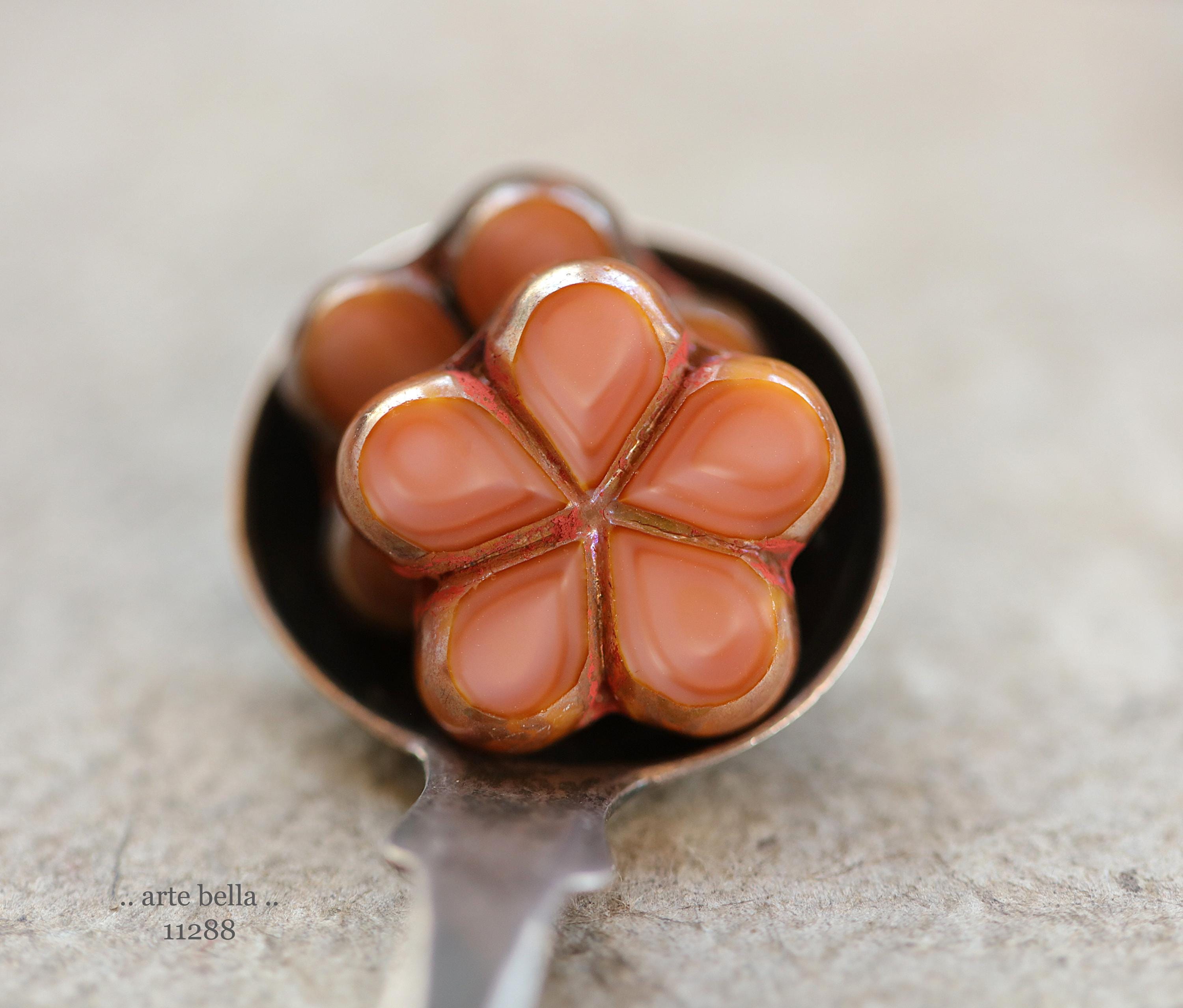 New .. EARTHY SALMON POSIES .. 4 Premium Luster Picasso Czech Glass Flower Bead Mix 17mm (11288-4) .. jewelry supplies