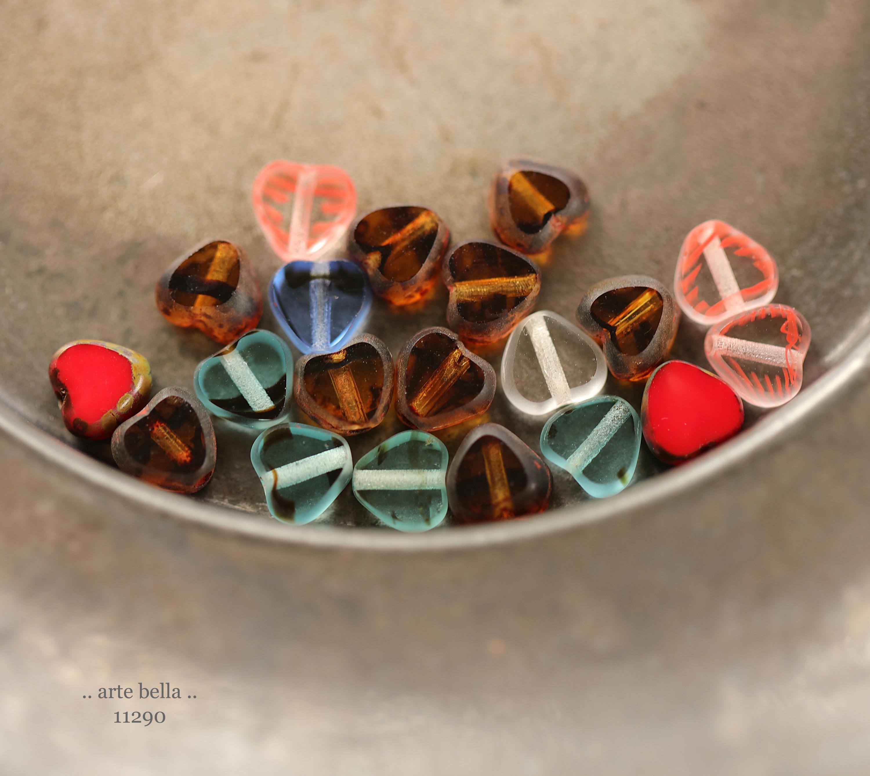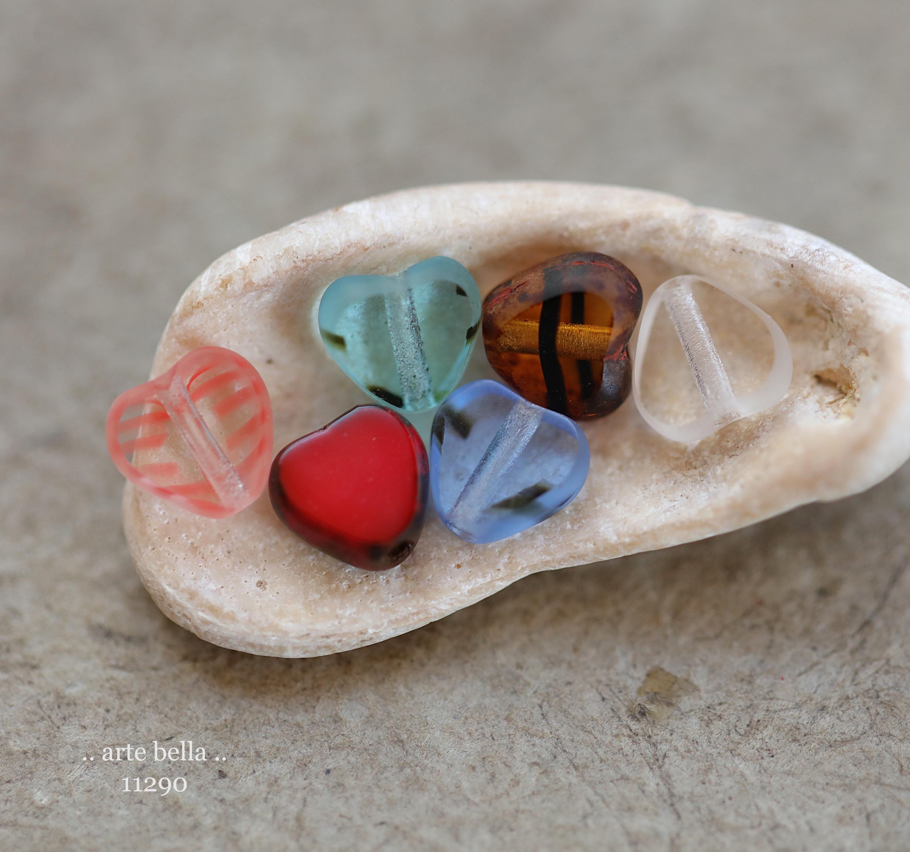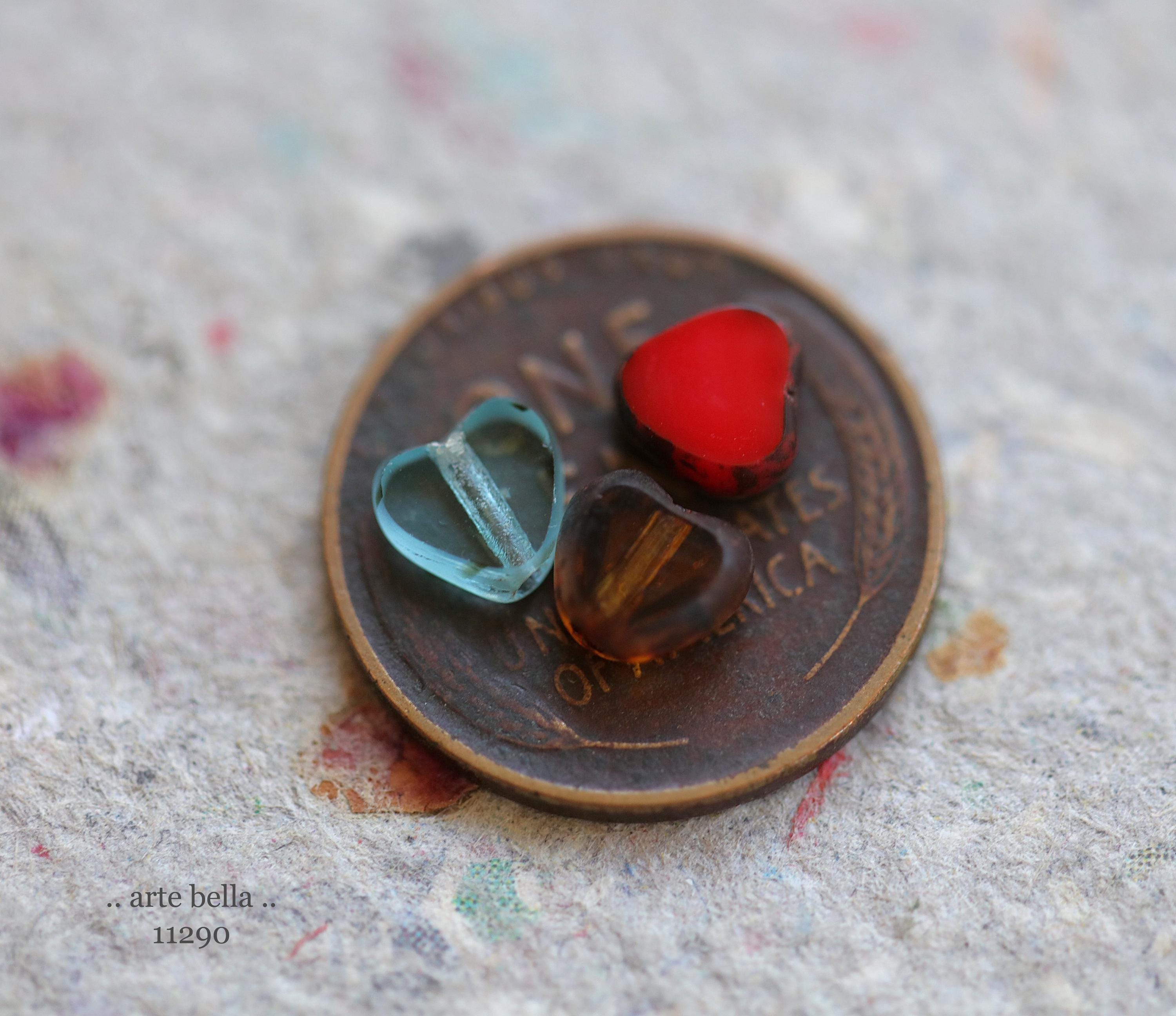 New .. TINY HEART MIX 6mm .. 40 Premium Czech Glass Heart Beads (11290-40) .. jewelry making supplies