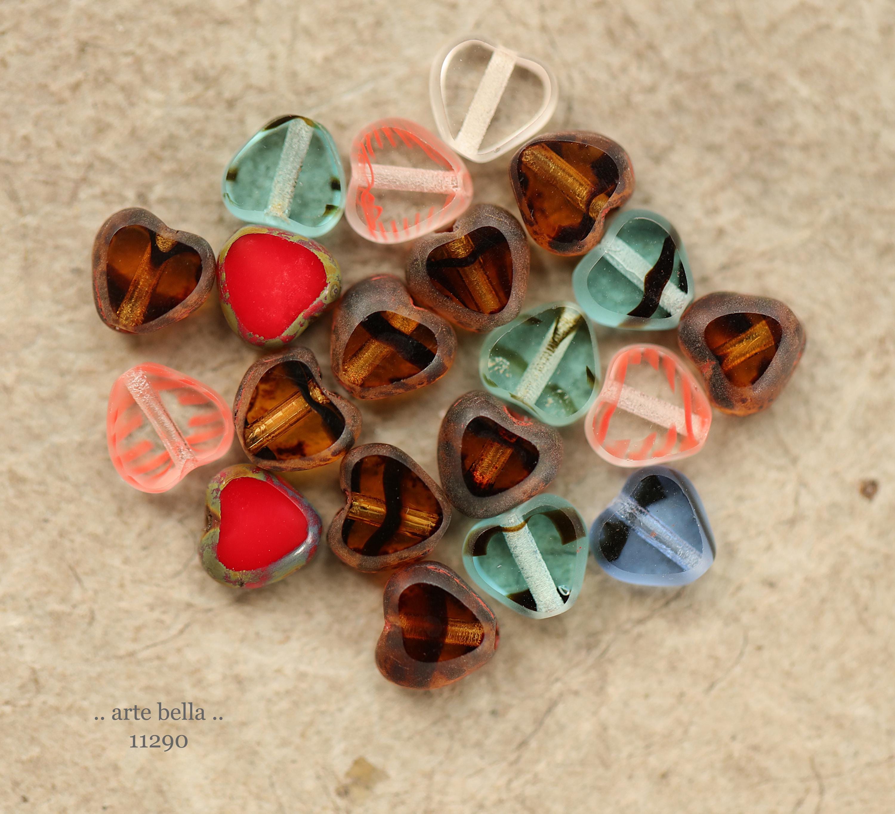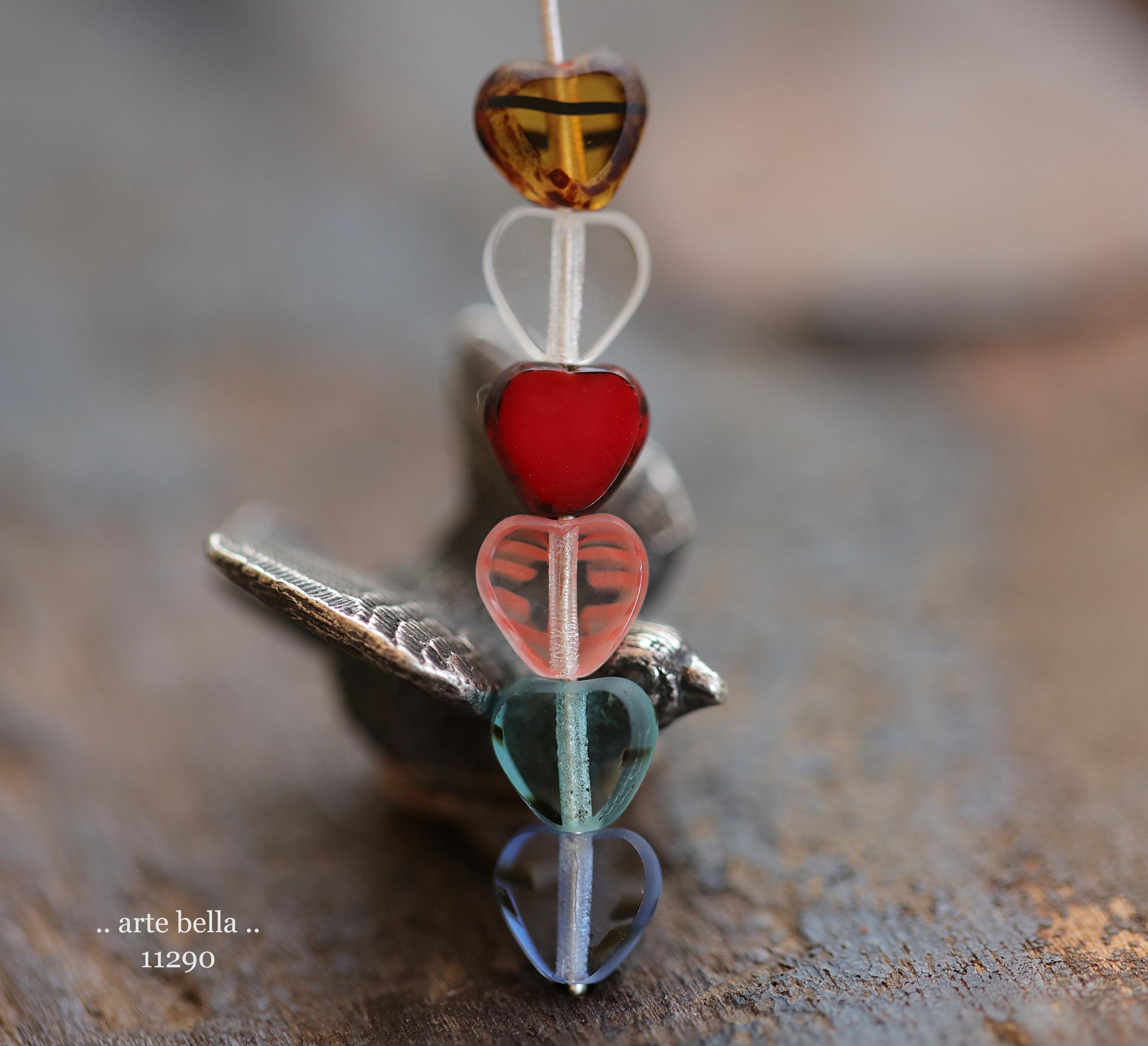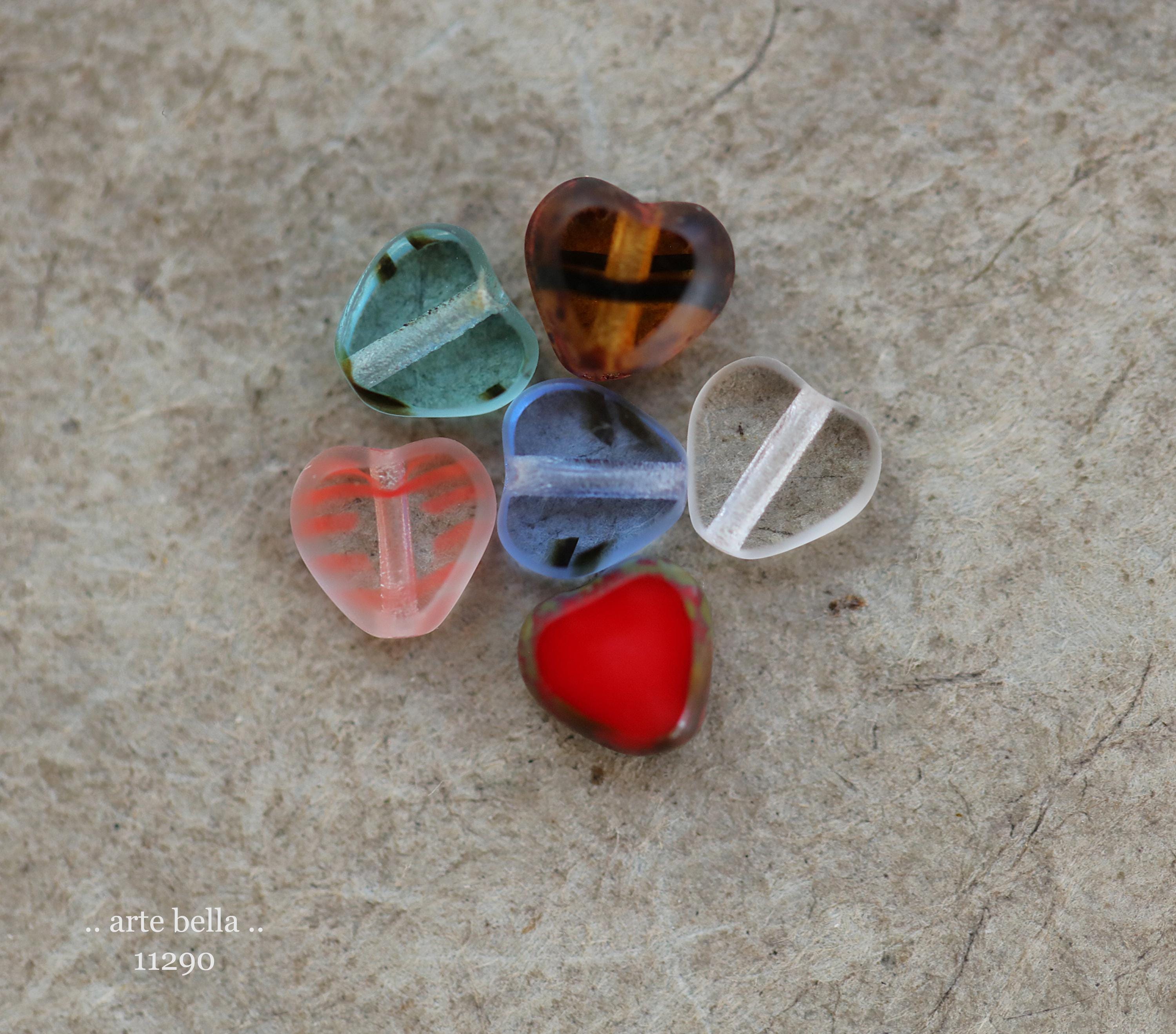 New .. TINY HEART MIX 6mm .. 40 Premium Czech Glass Heart Beads (11290-40) .. jewelry making supplies