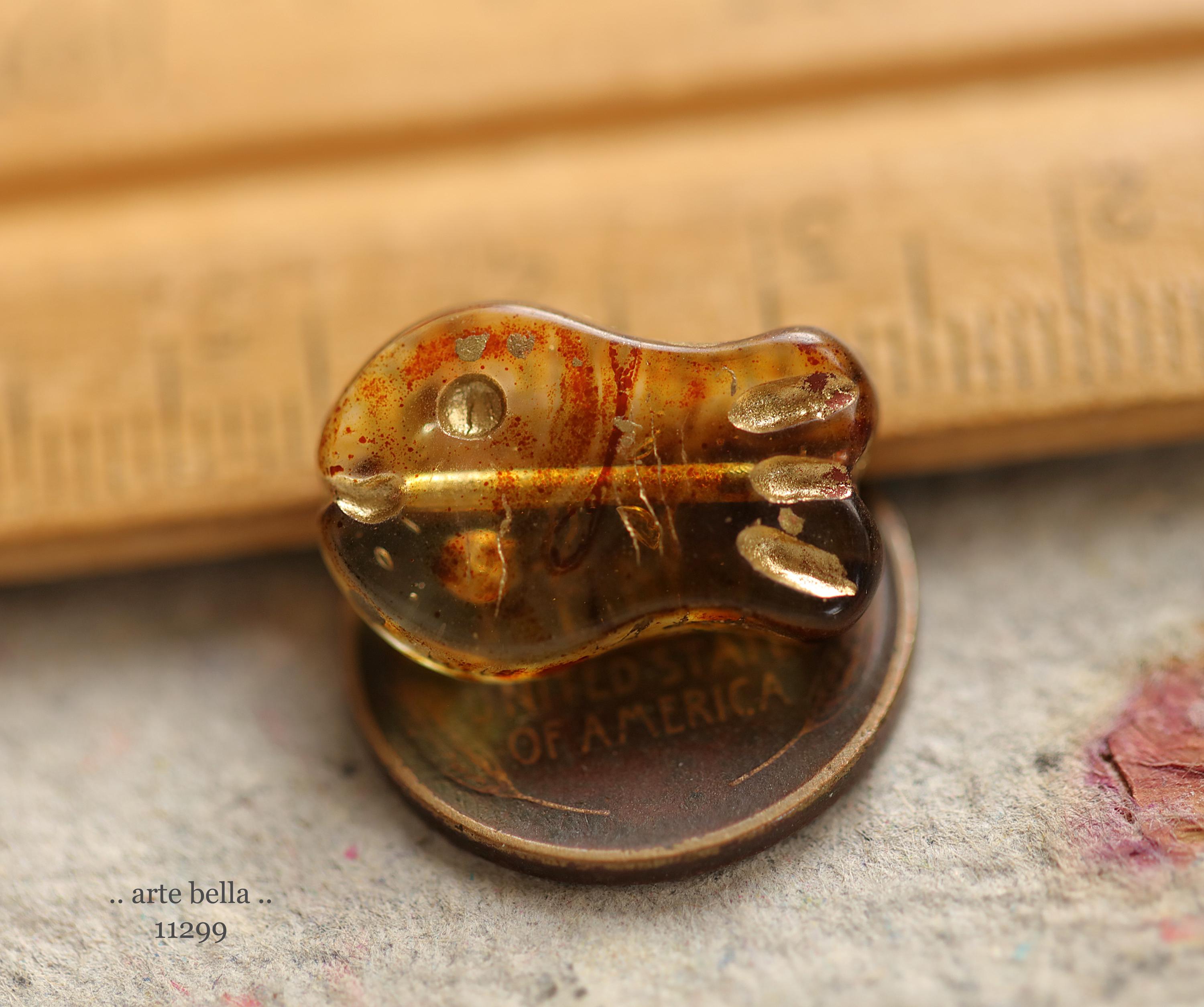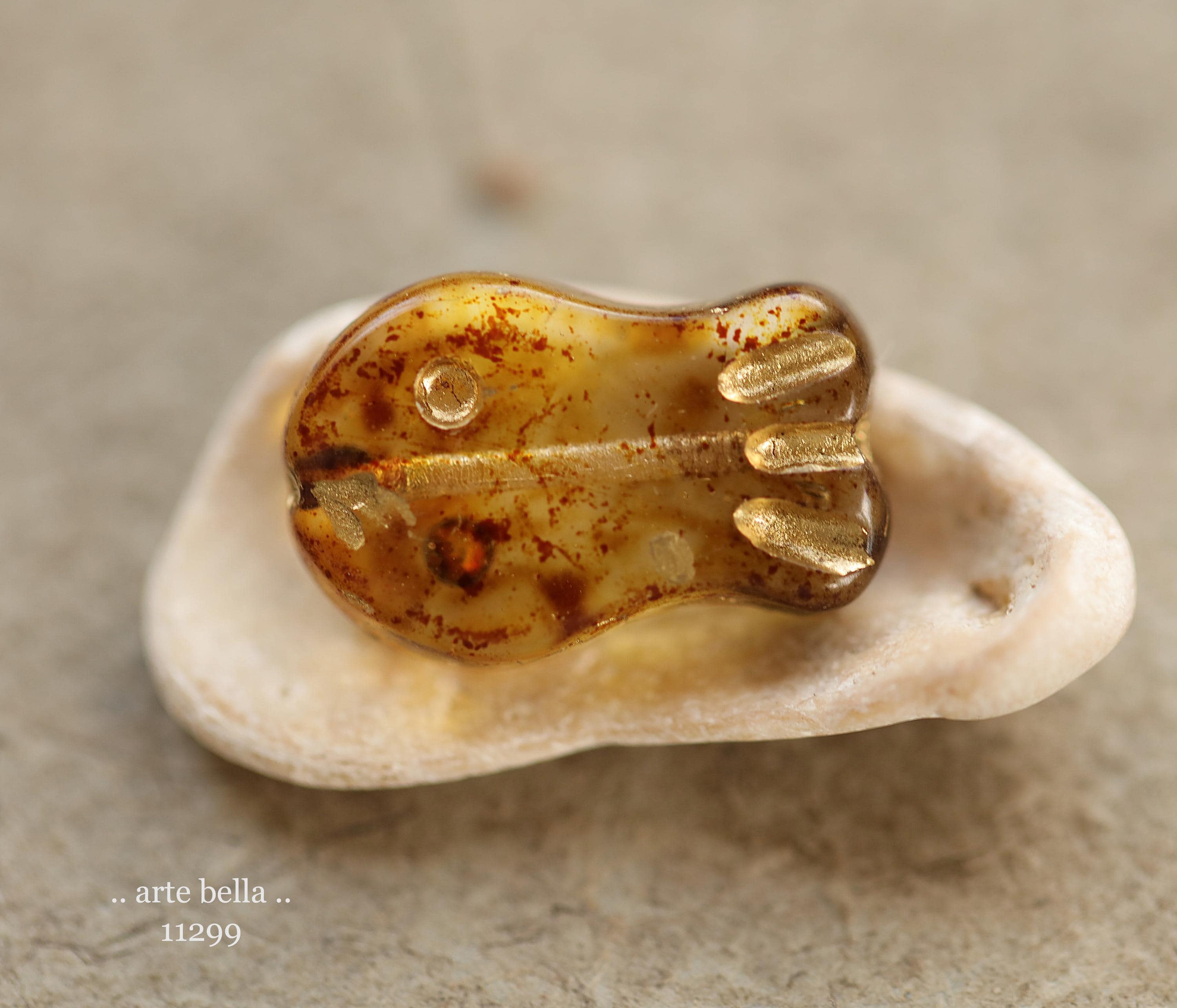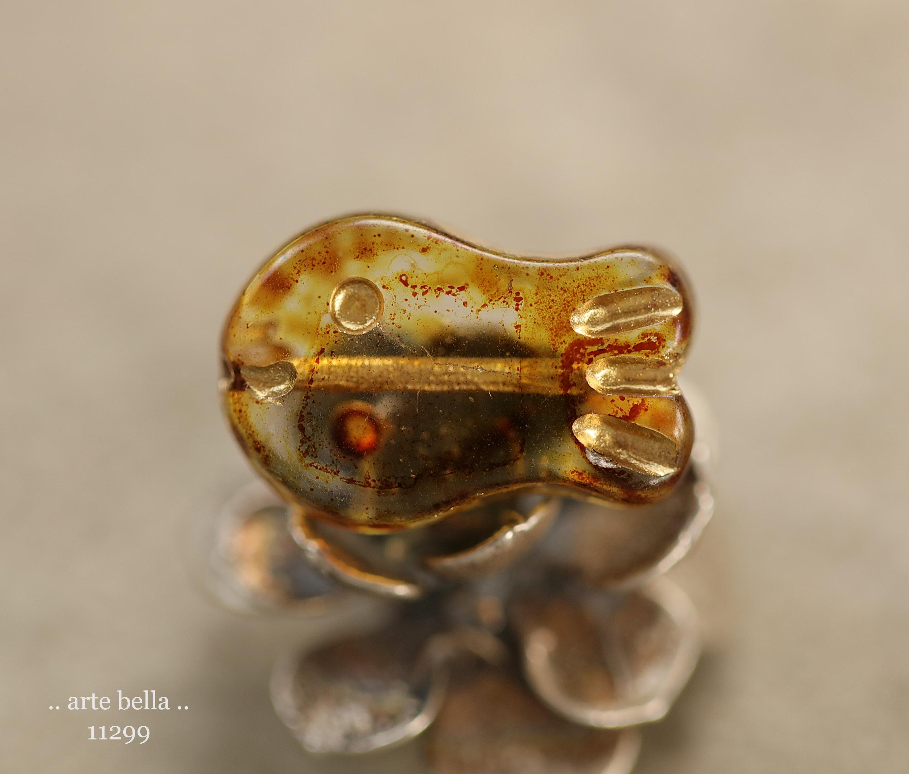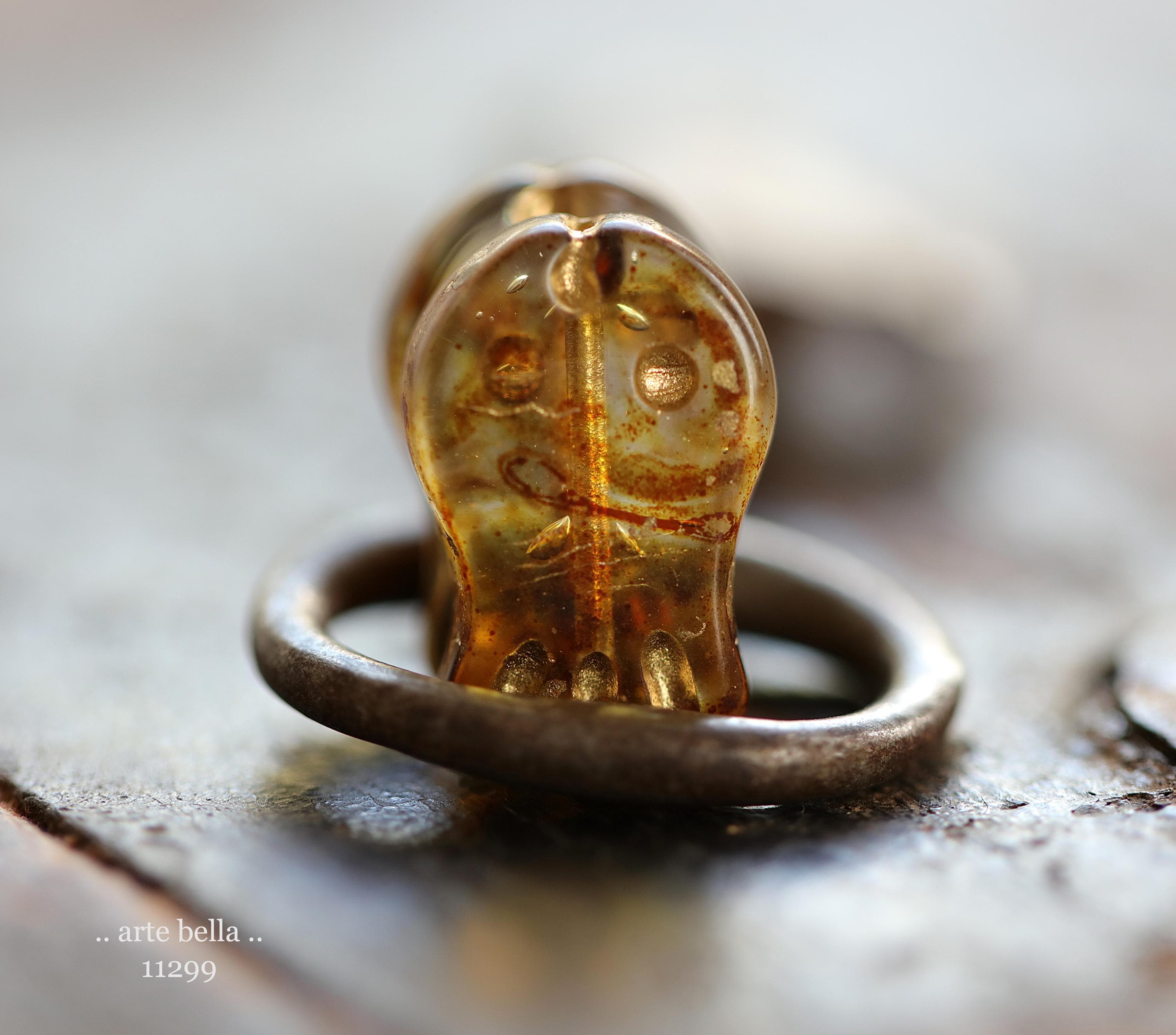 New .. GOLDEN BROWN SWIMMERS .. 6 Premium Picasso Czech Glass Fish Bead Mix 19x12mm (11299-6) .. jewelry supplies