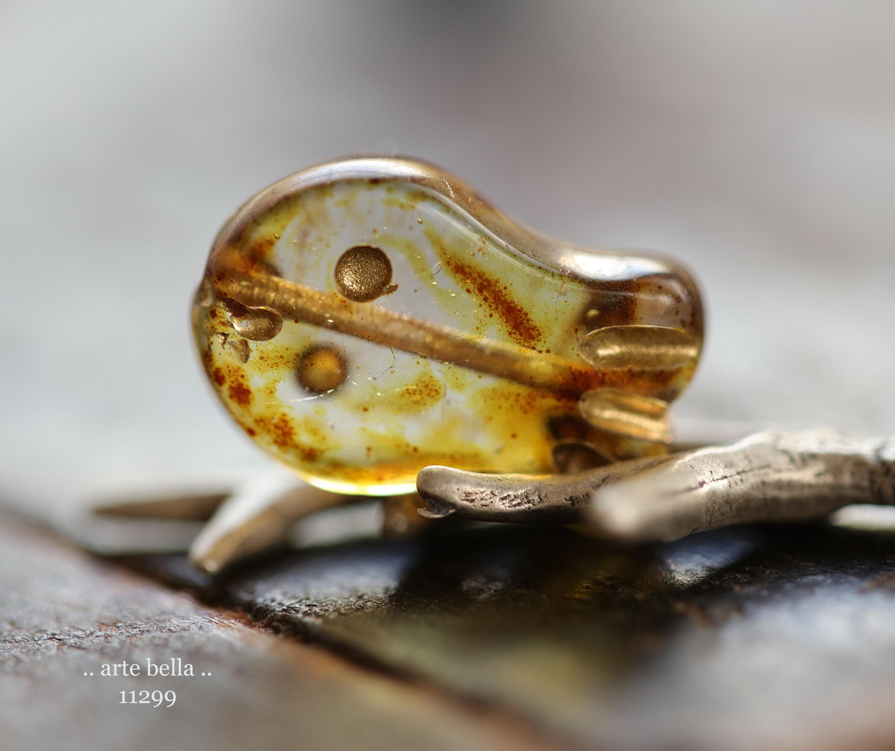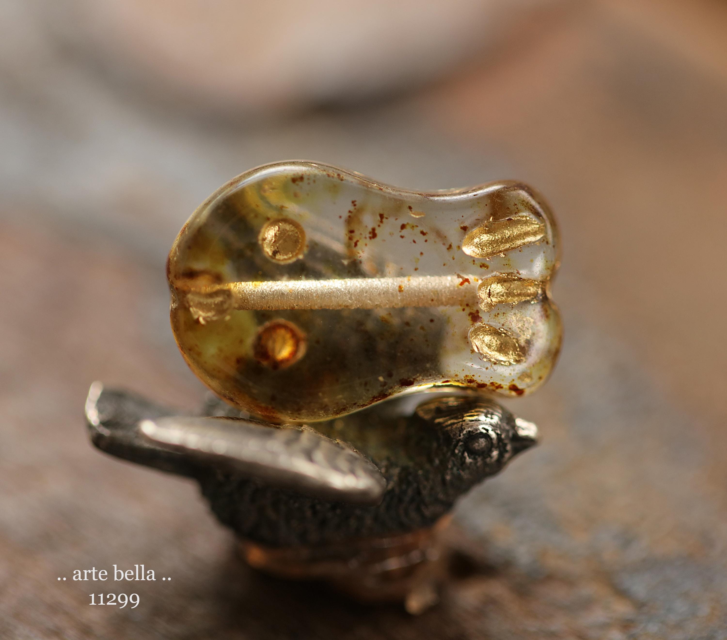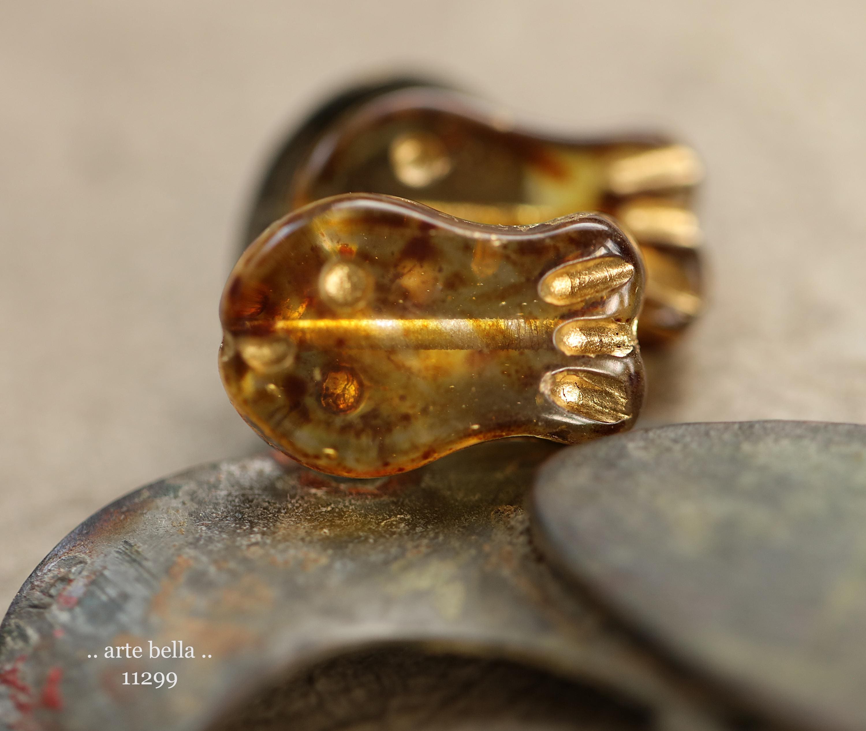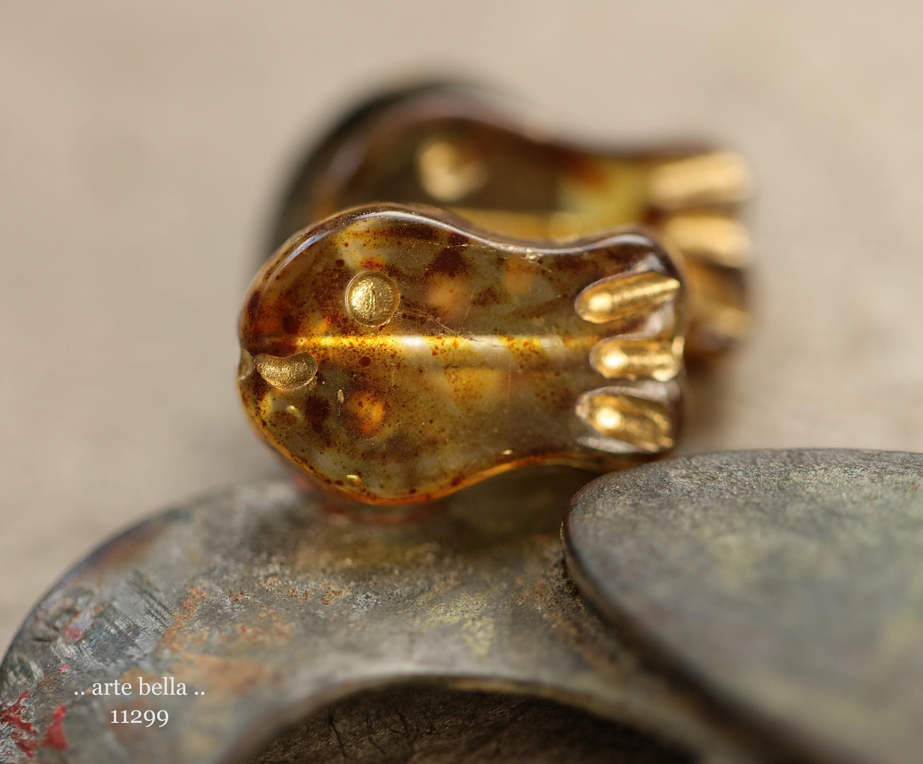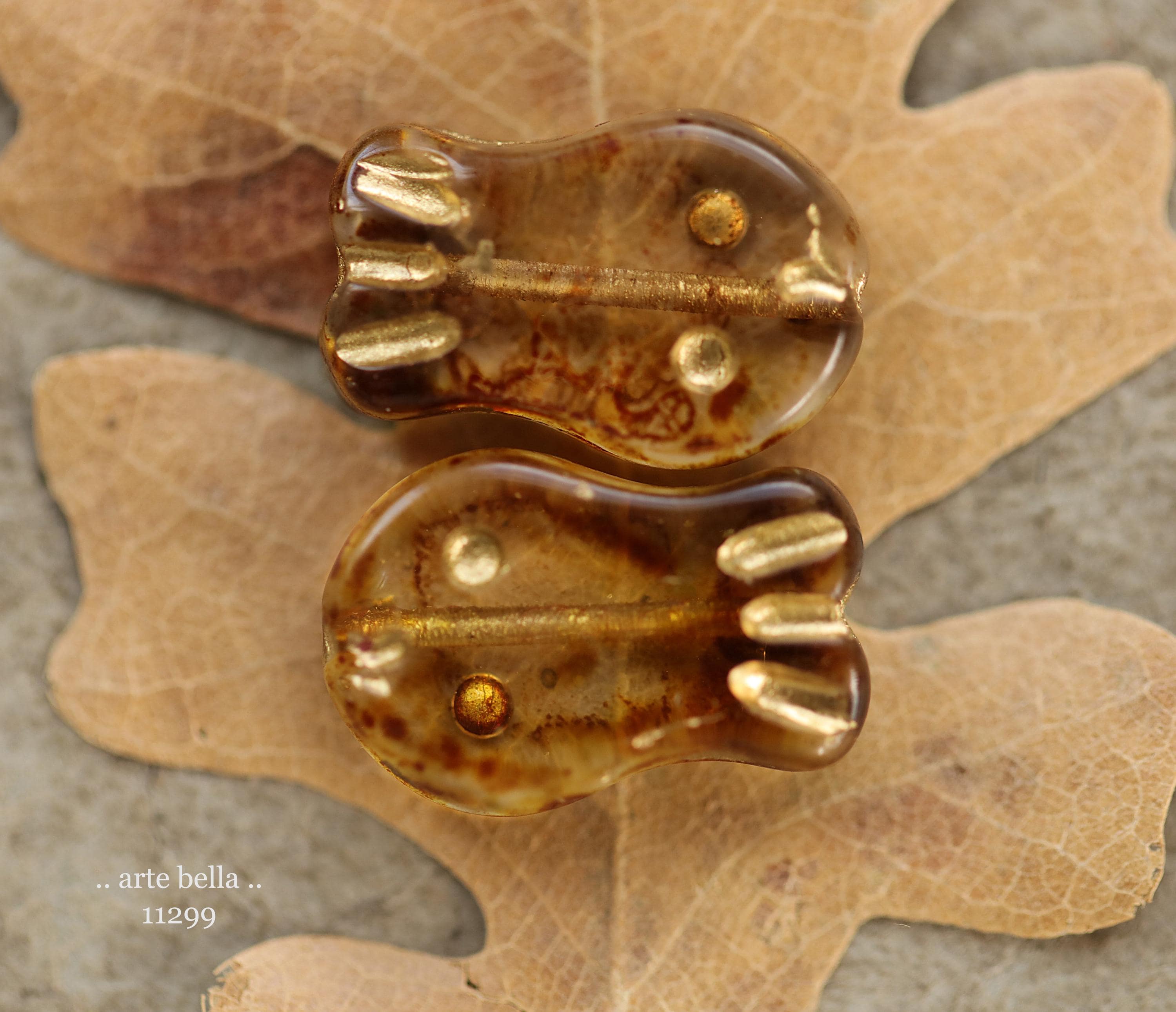 New .. GOLDEN BROWN SWIMMERS .. 6 Premium Picasso Czech Glass Fish Bead Mix 19x12mm (11299-6) .. jewelry supplies