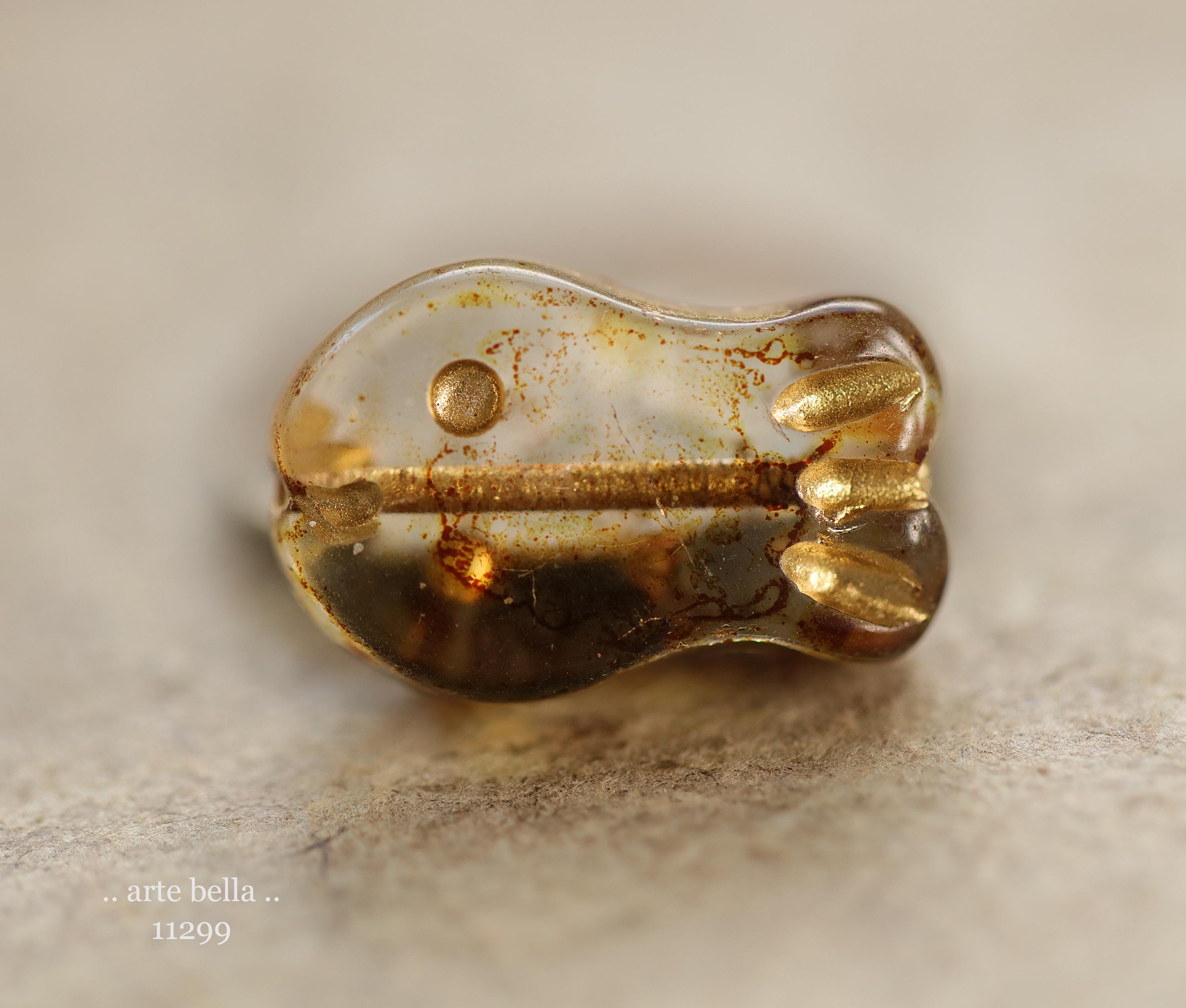 Clear base glass with full coat Picasso and gold metallic wash. **PLEASE NOTE: As seen in my pictures, each fish is unique and one of a kind .. you will receive a random mix of 6 beads.**